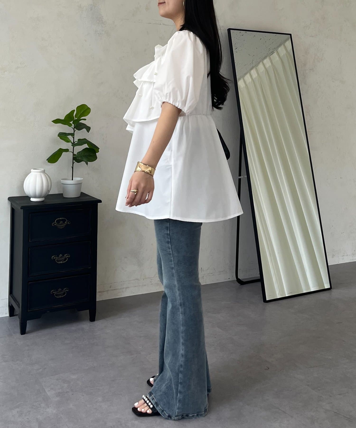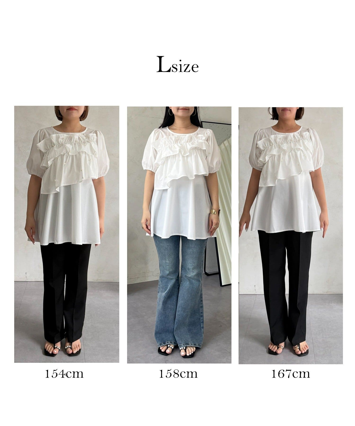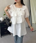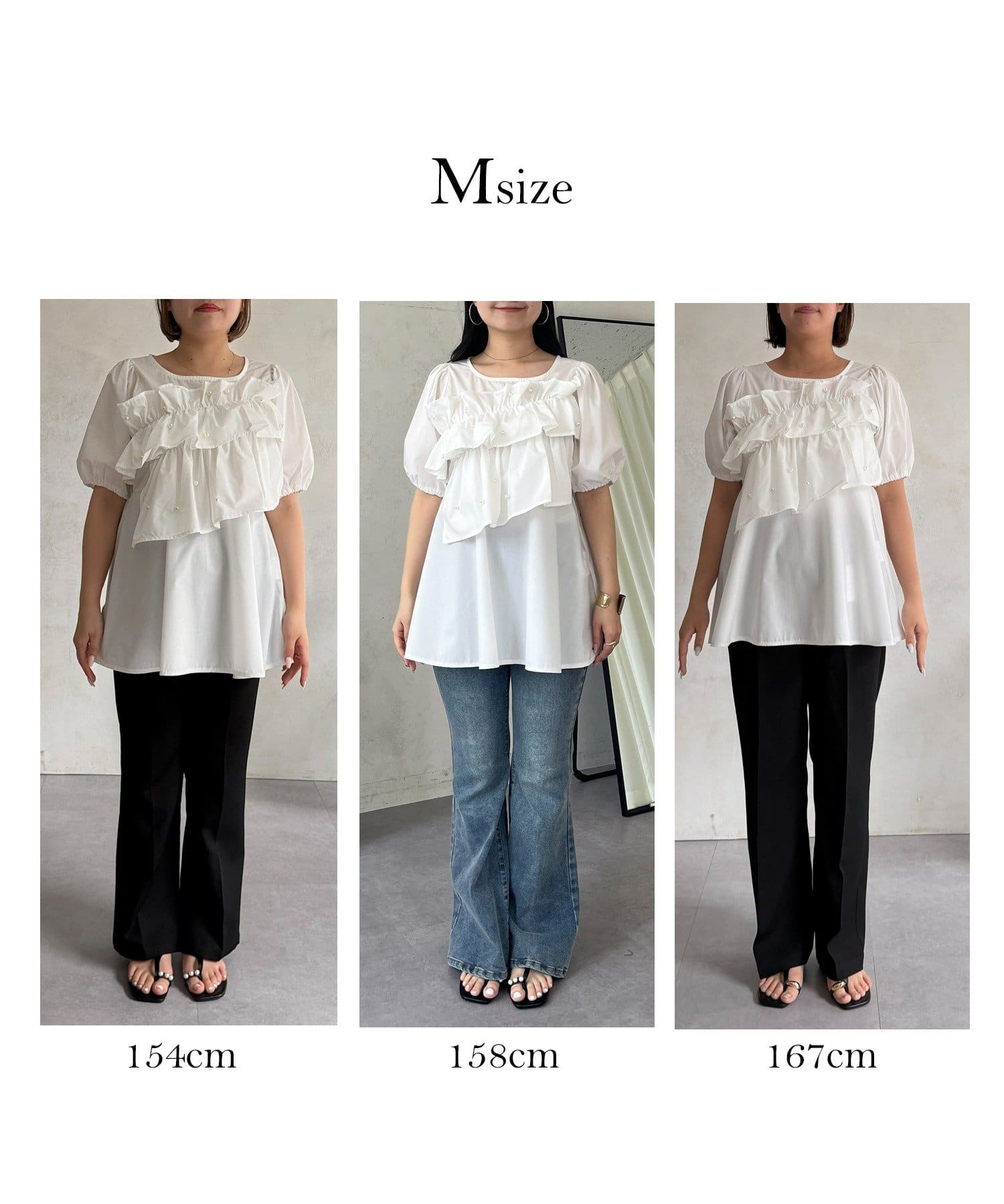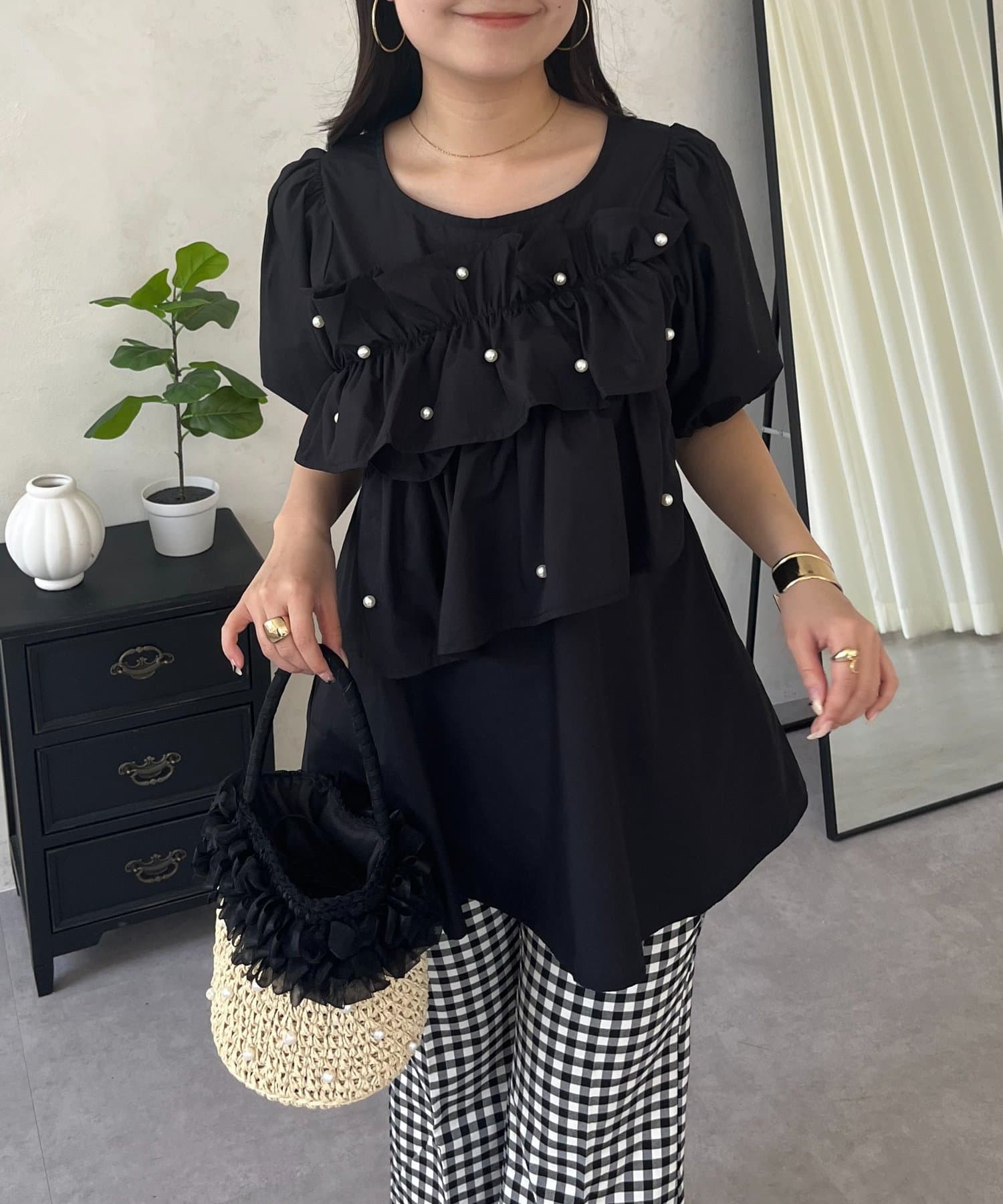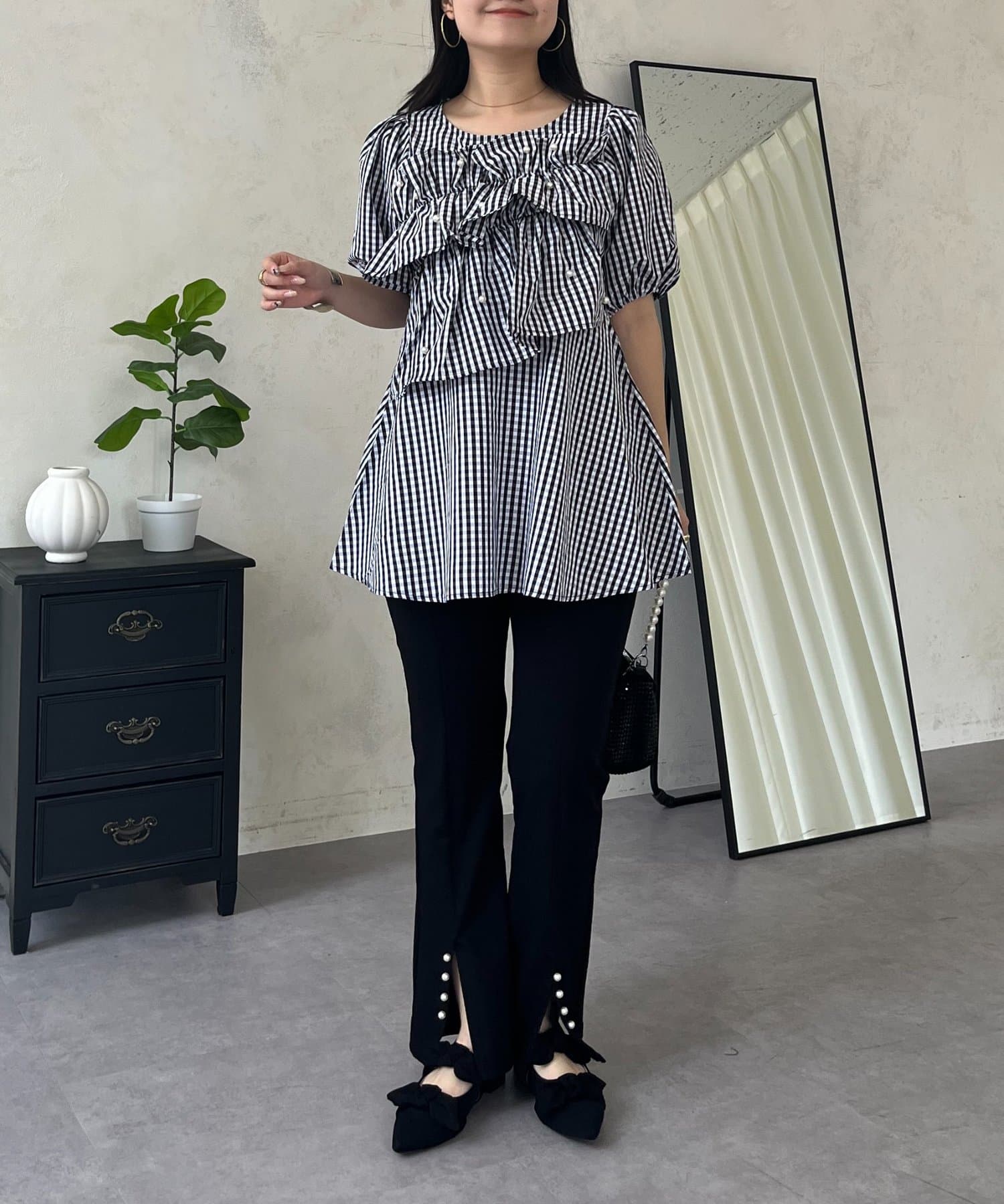 フロントフリルパールペプラムブラウス