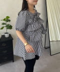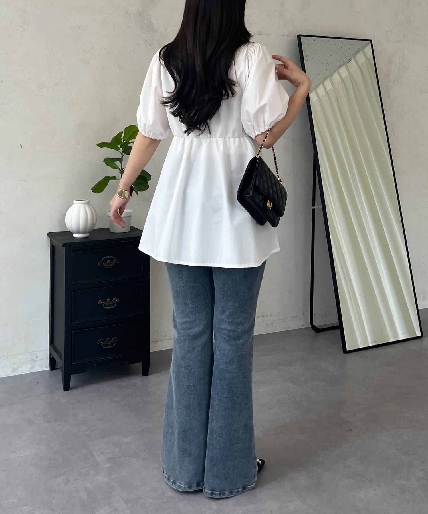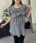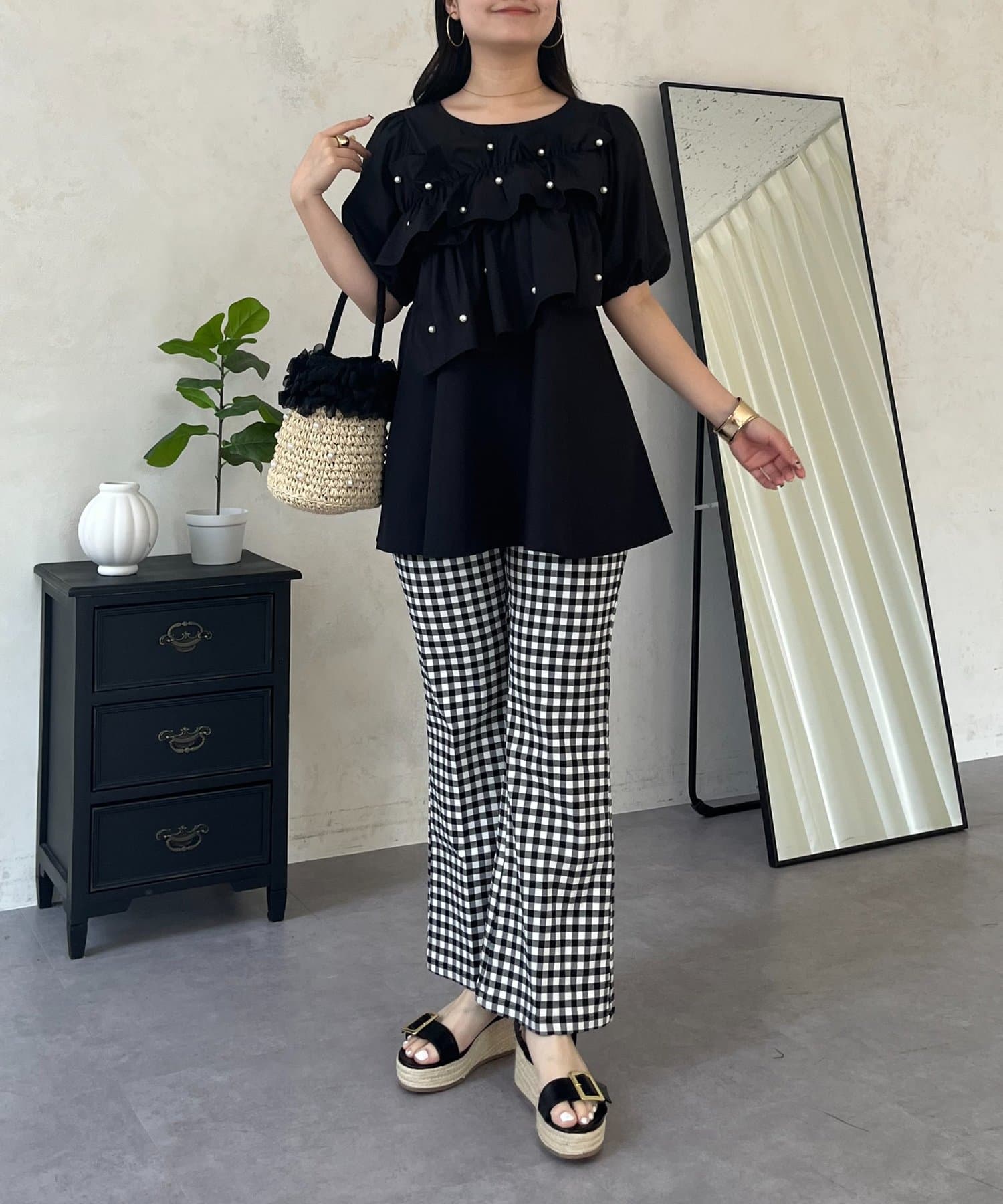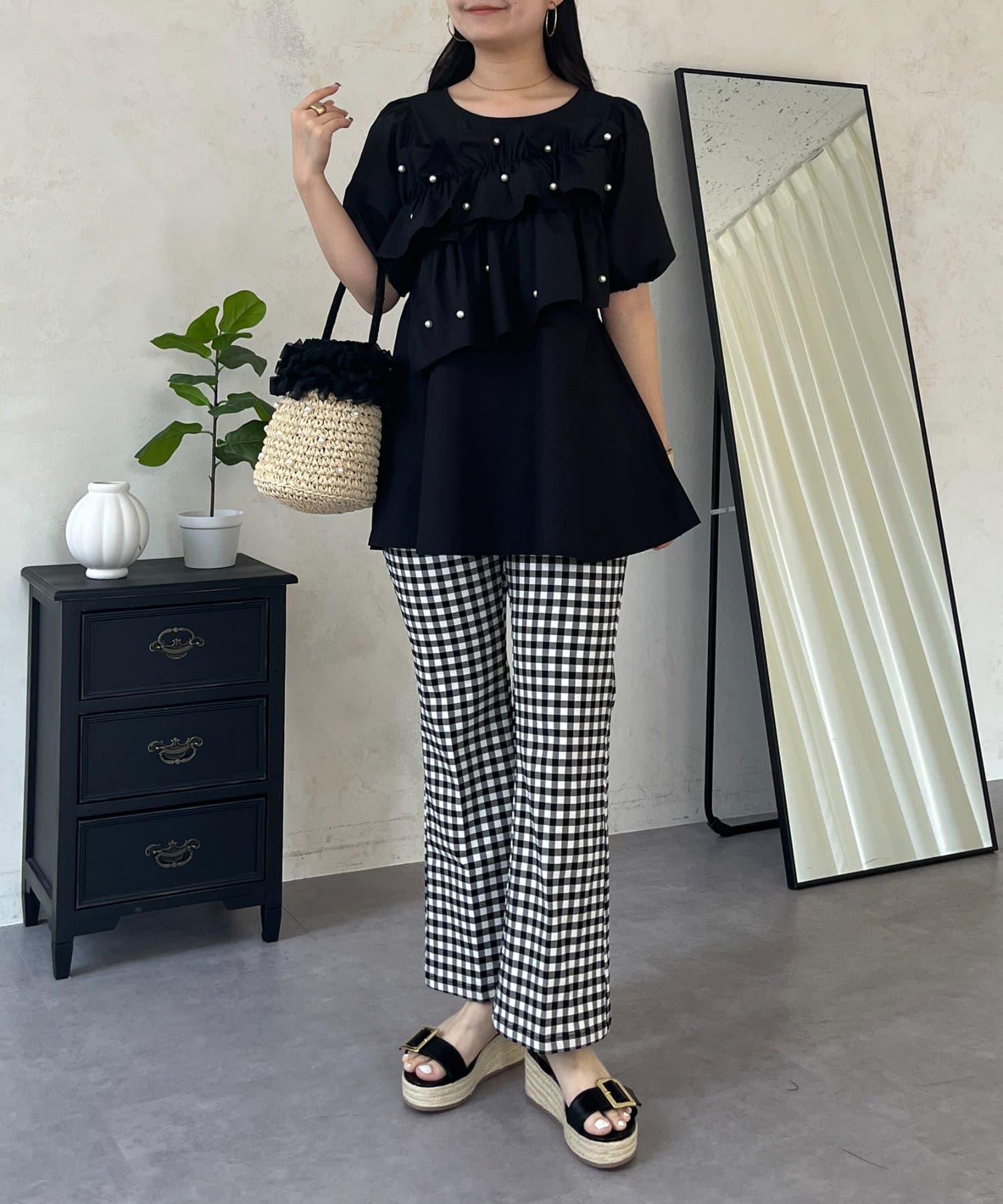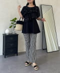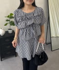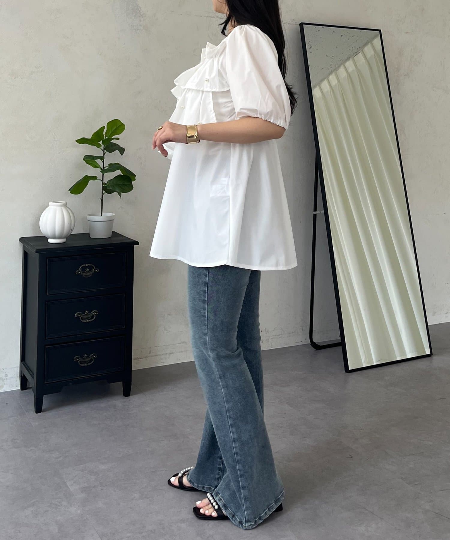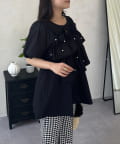 フロントフリルパールペプラムブラウス