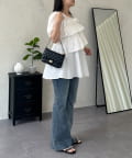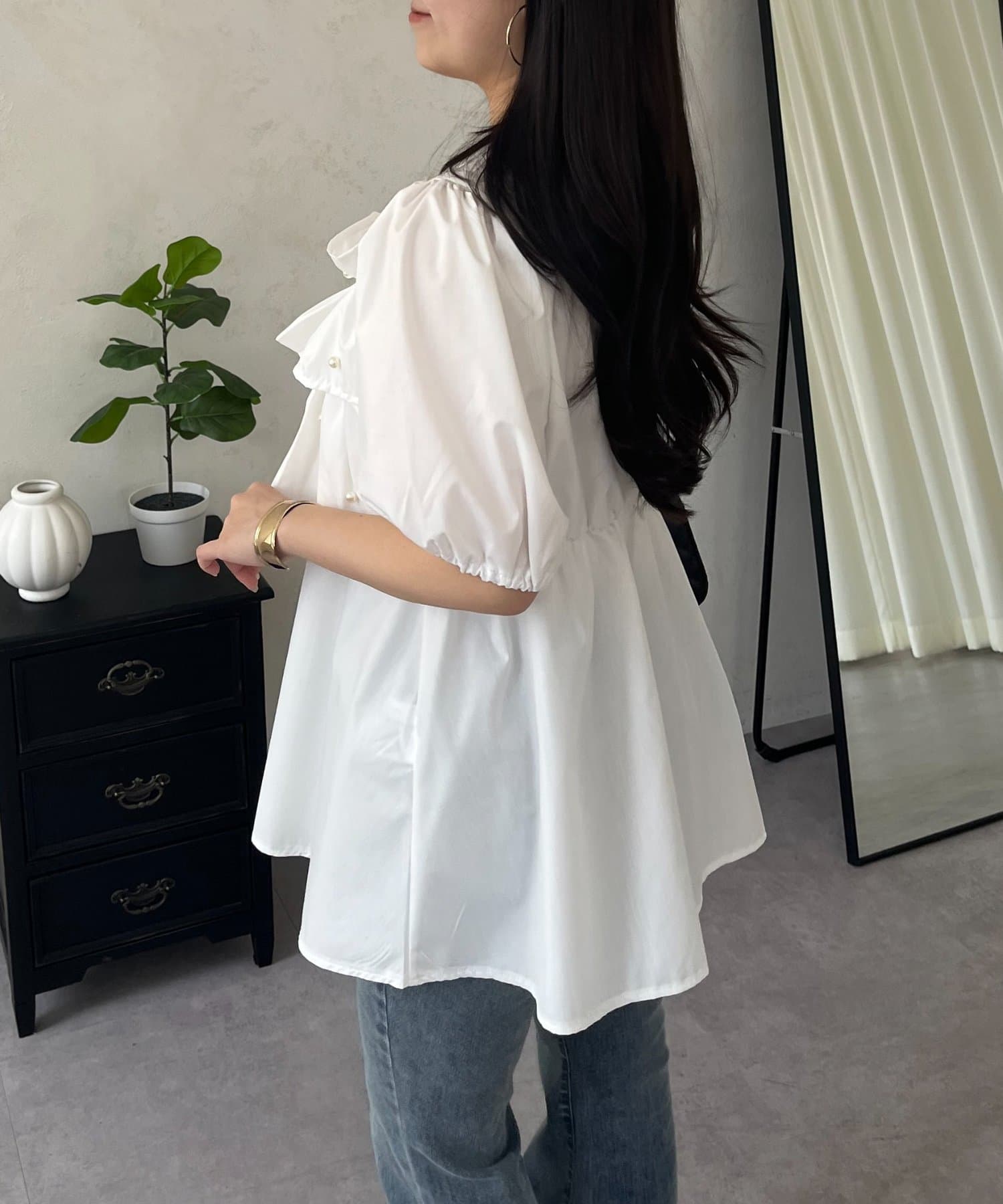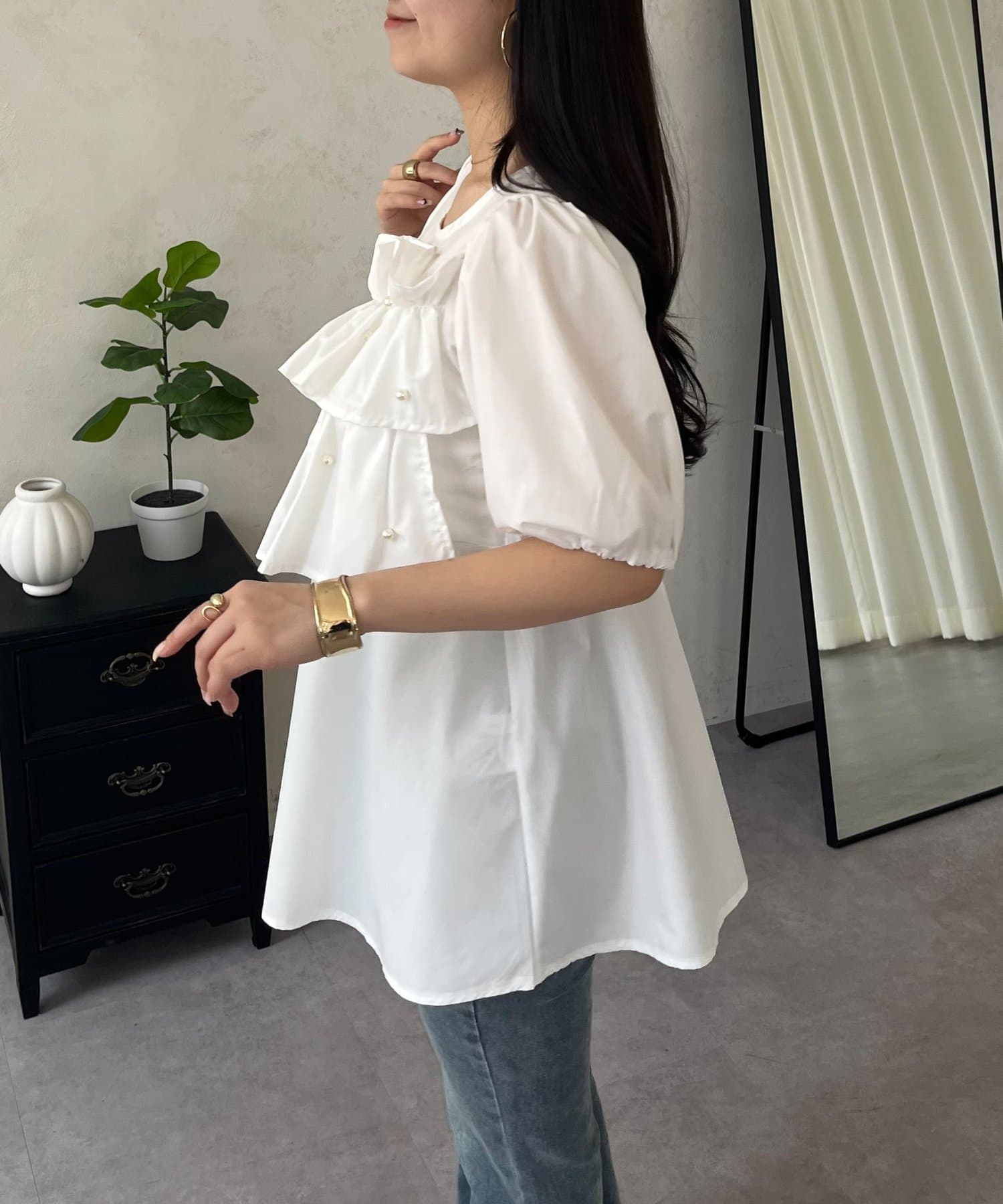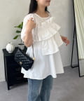 • prose verse(プロズヴェール) フロントフリルパールペプラムブラウス