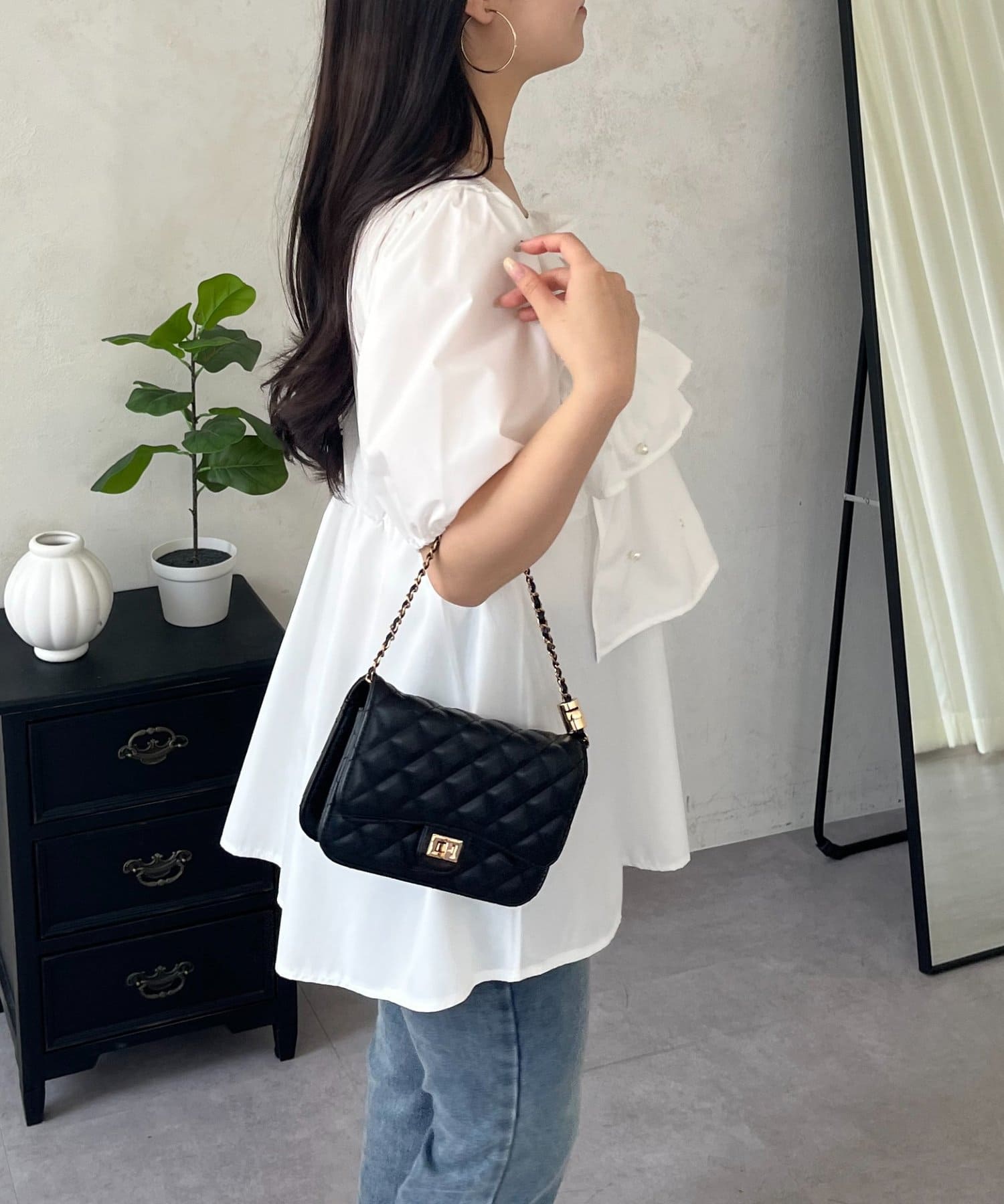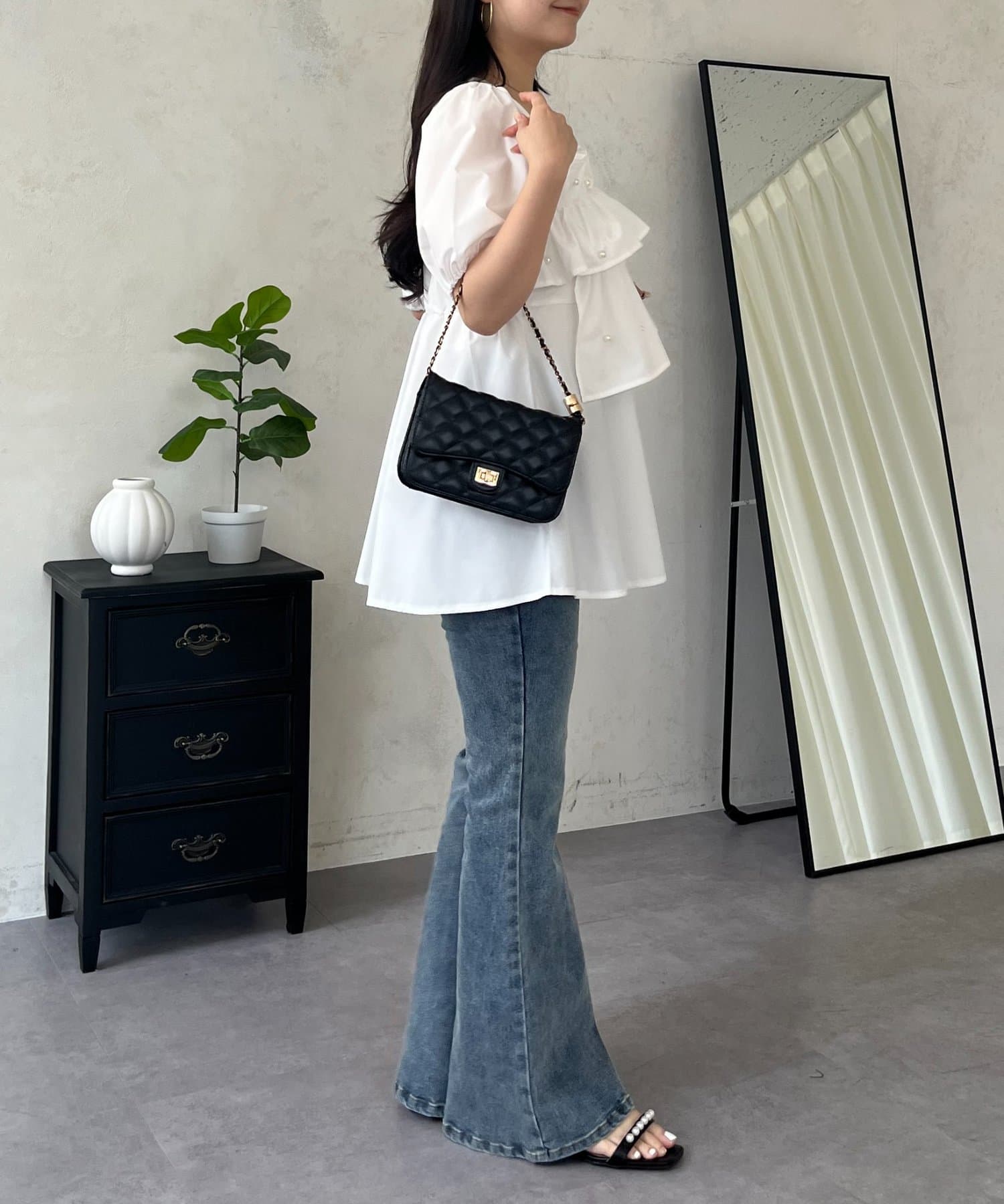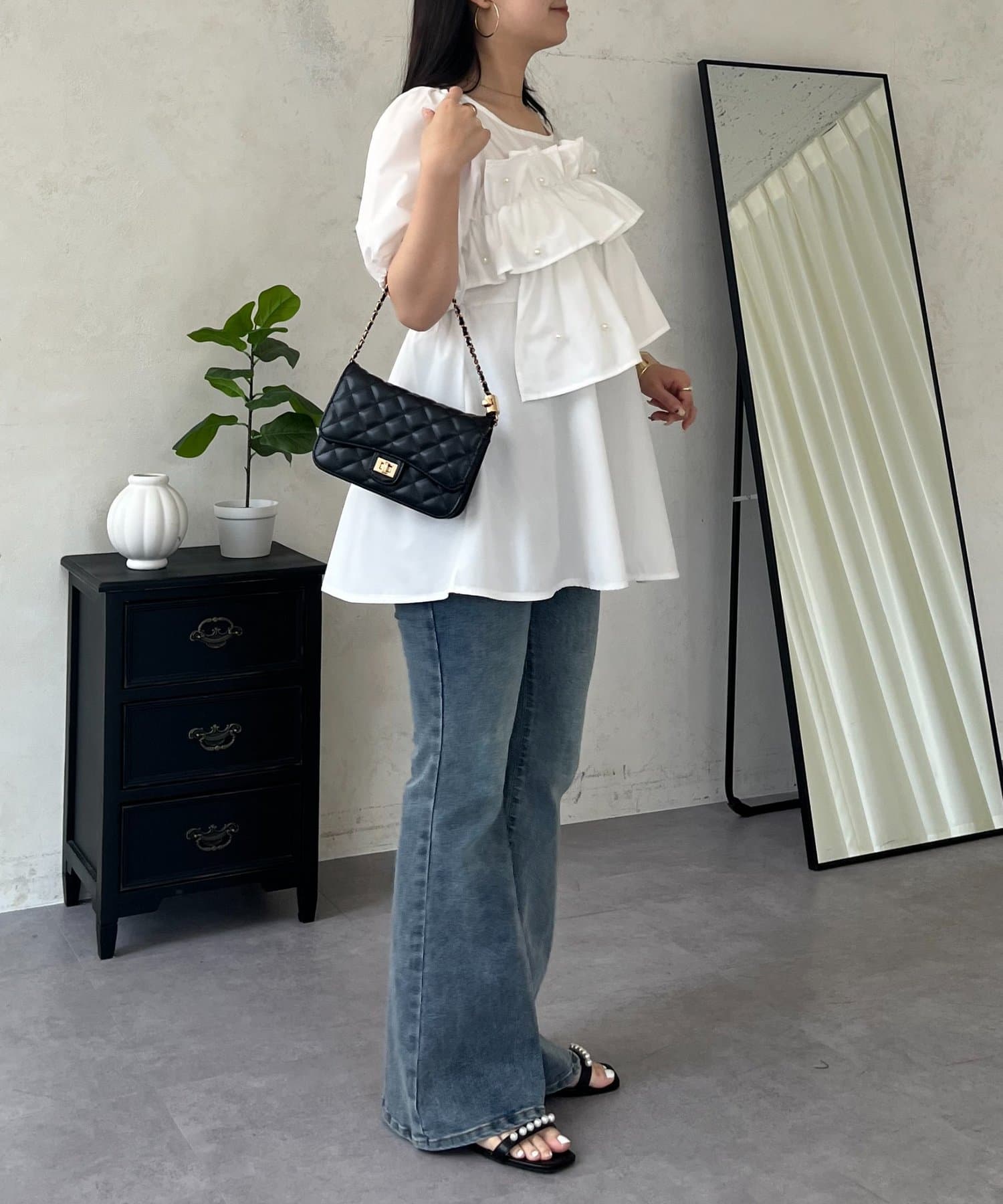 ペプラム/フリルブラウス/パール/大人可愛い