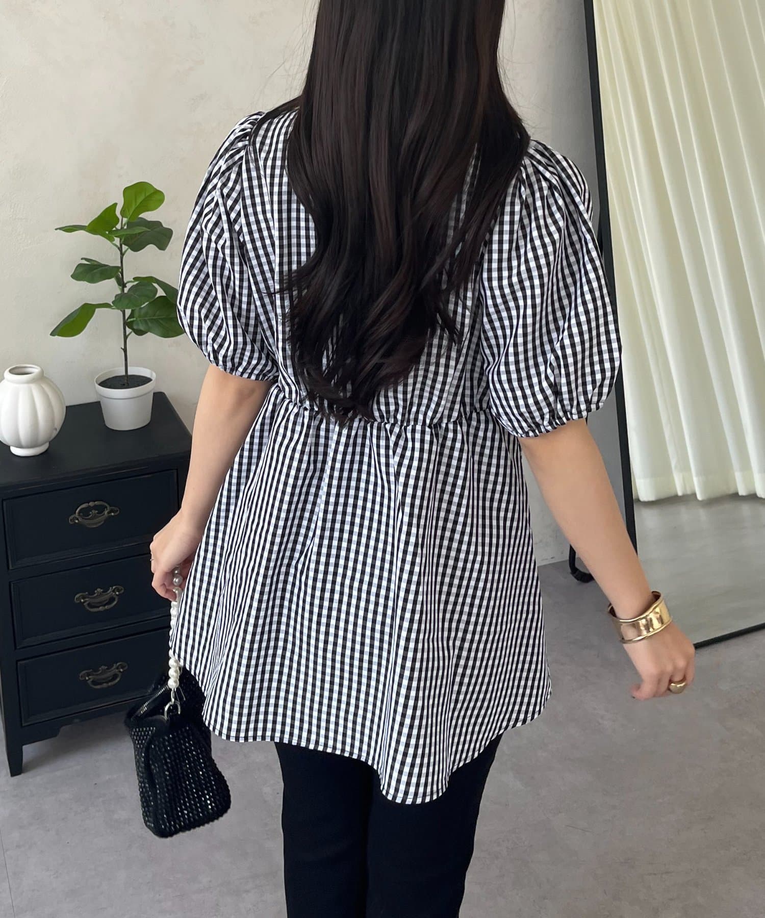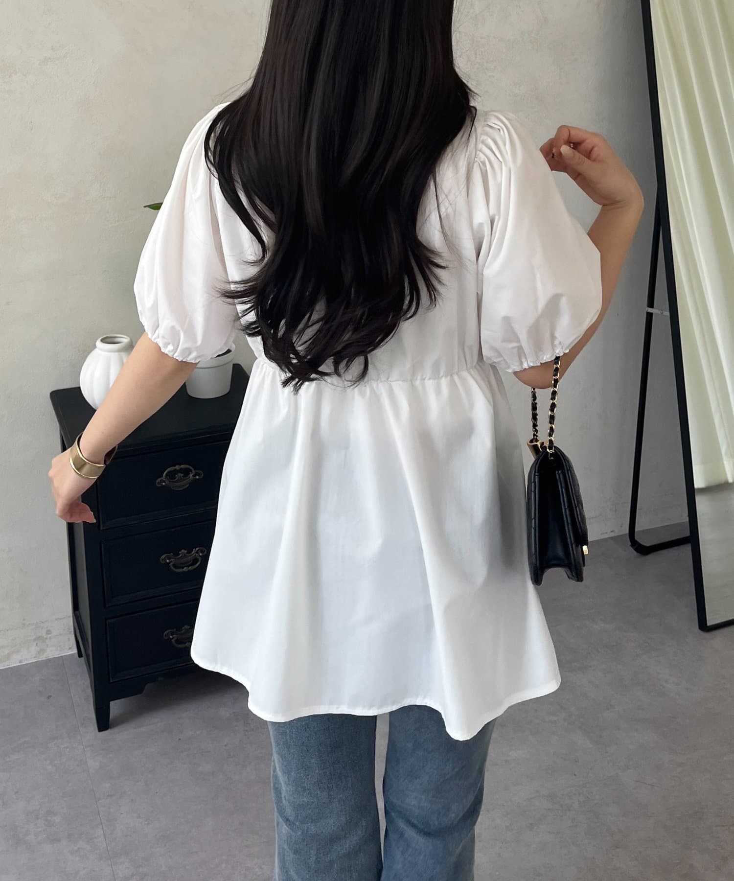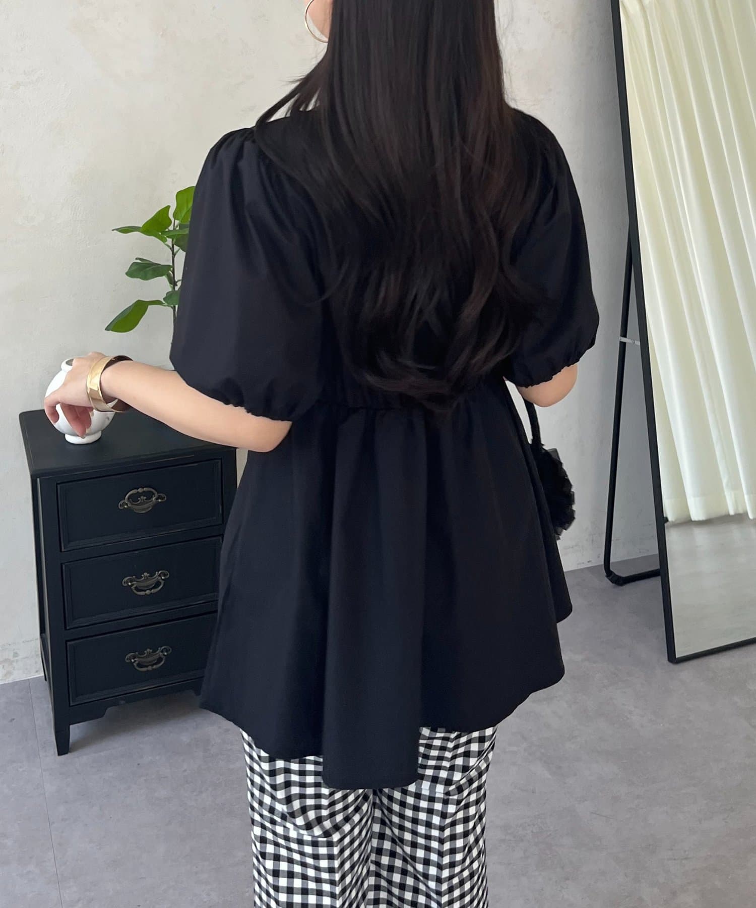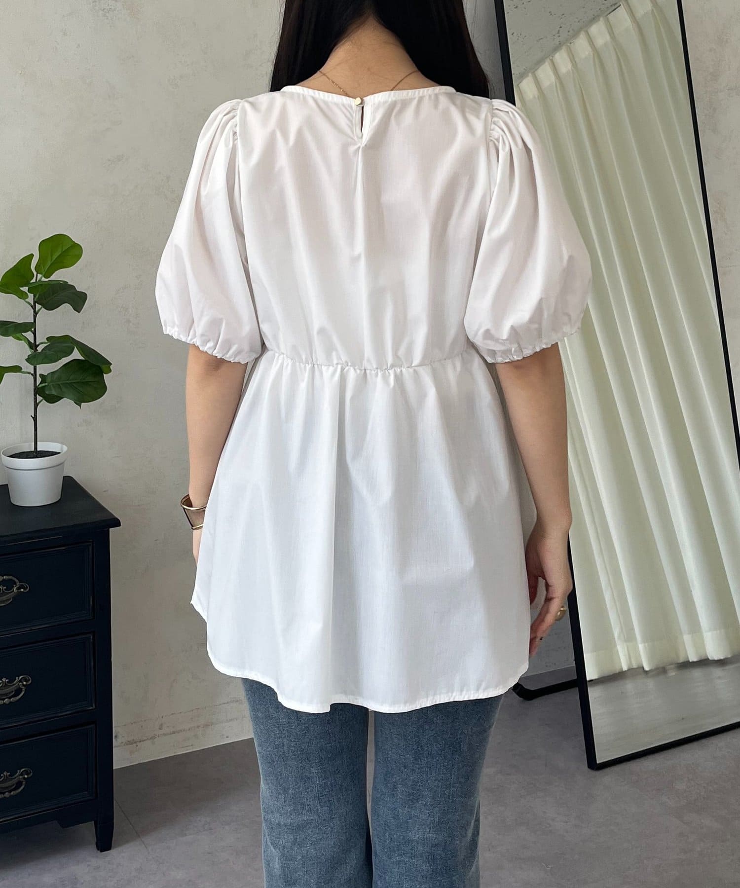●ボリューム感のあるパフスリーブが、二の腕をカバーしつつ女性らしいシルエットを演出