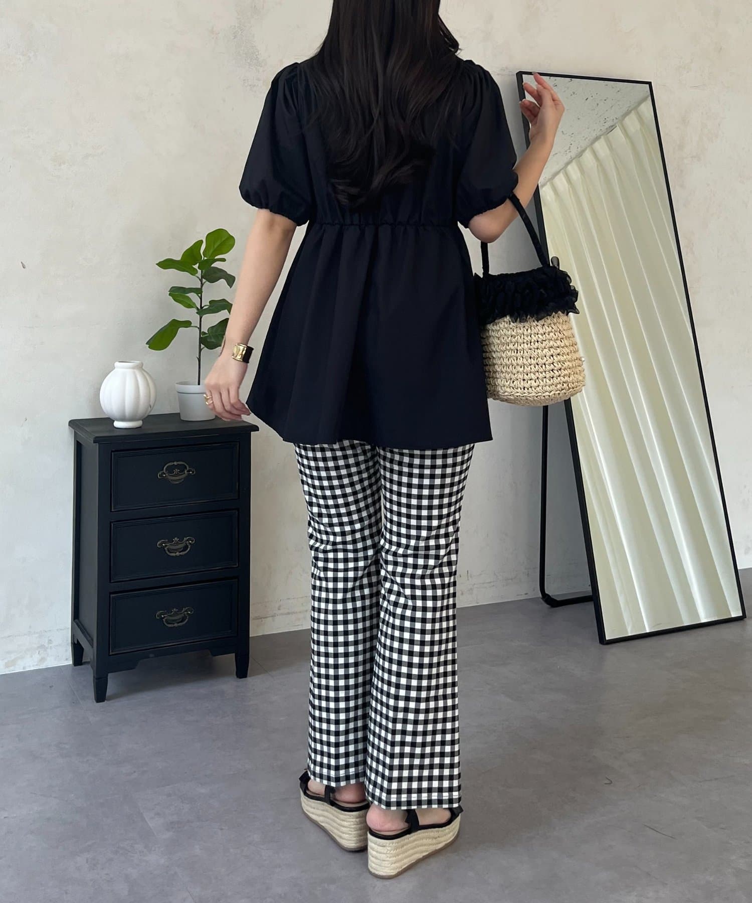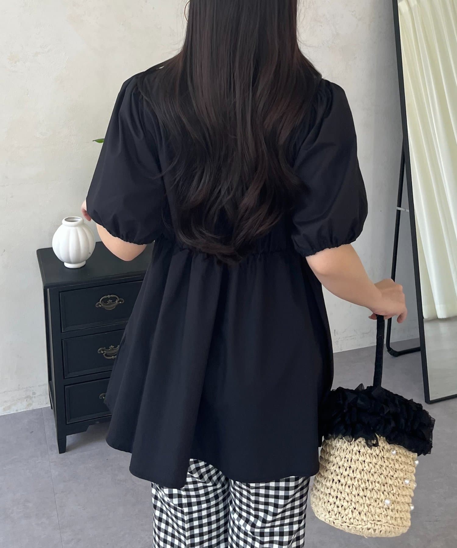 ●ふんわりと広がるペプラムデザインが、気になるウエストやヒップ周りを自然にカバー