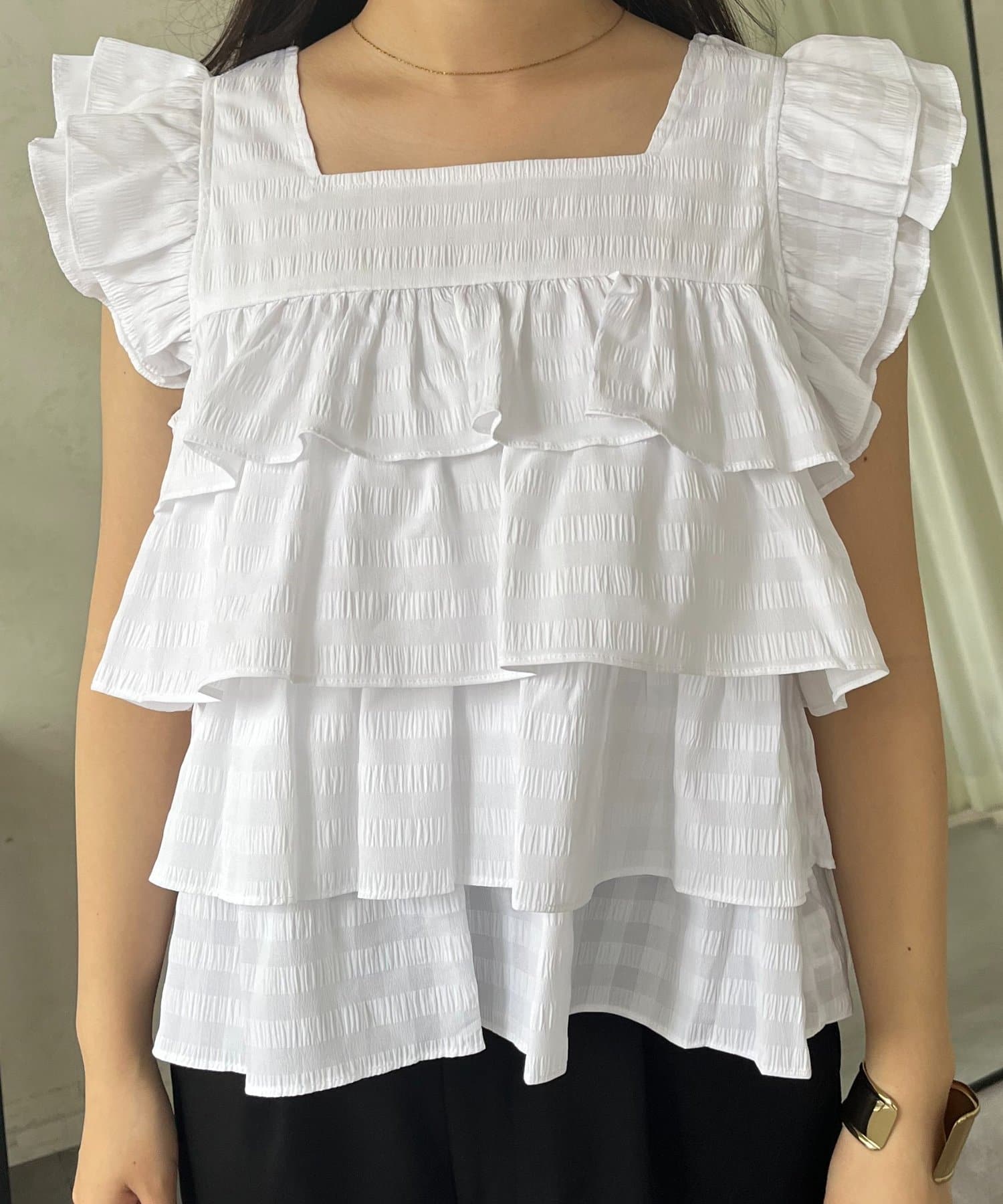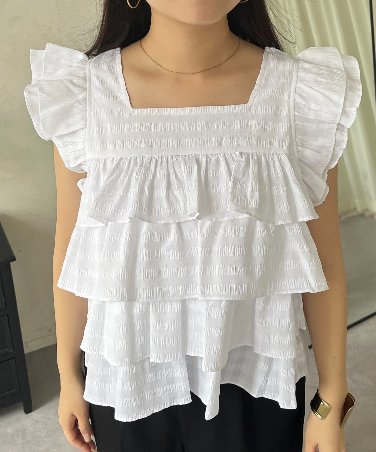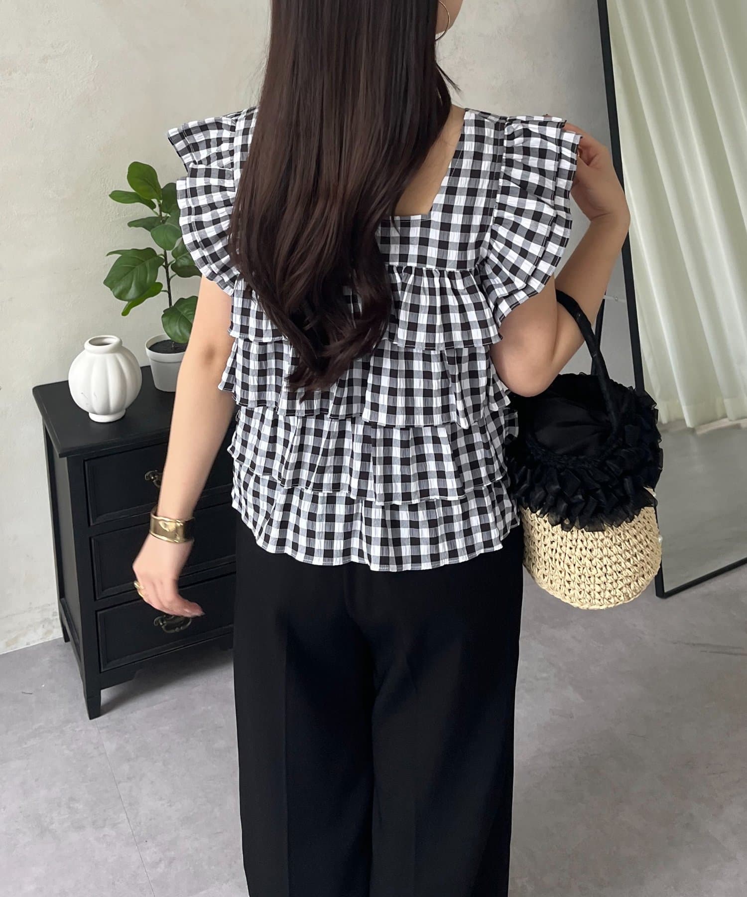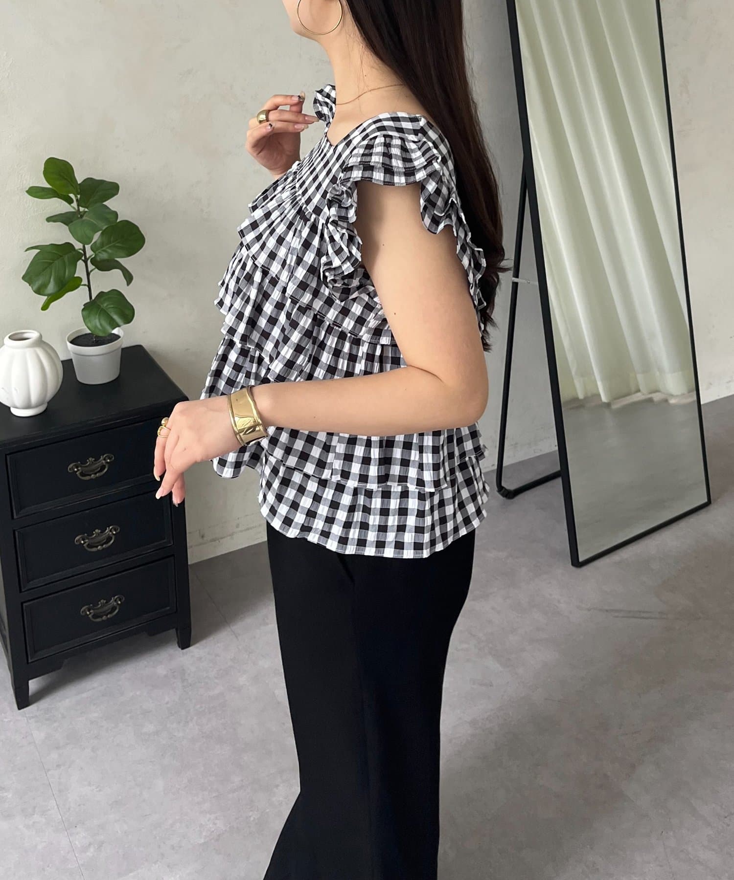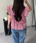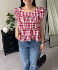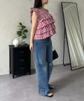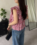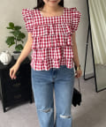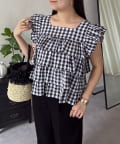 スクエアネックティアードフリルギンガムブラウス