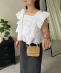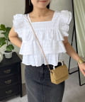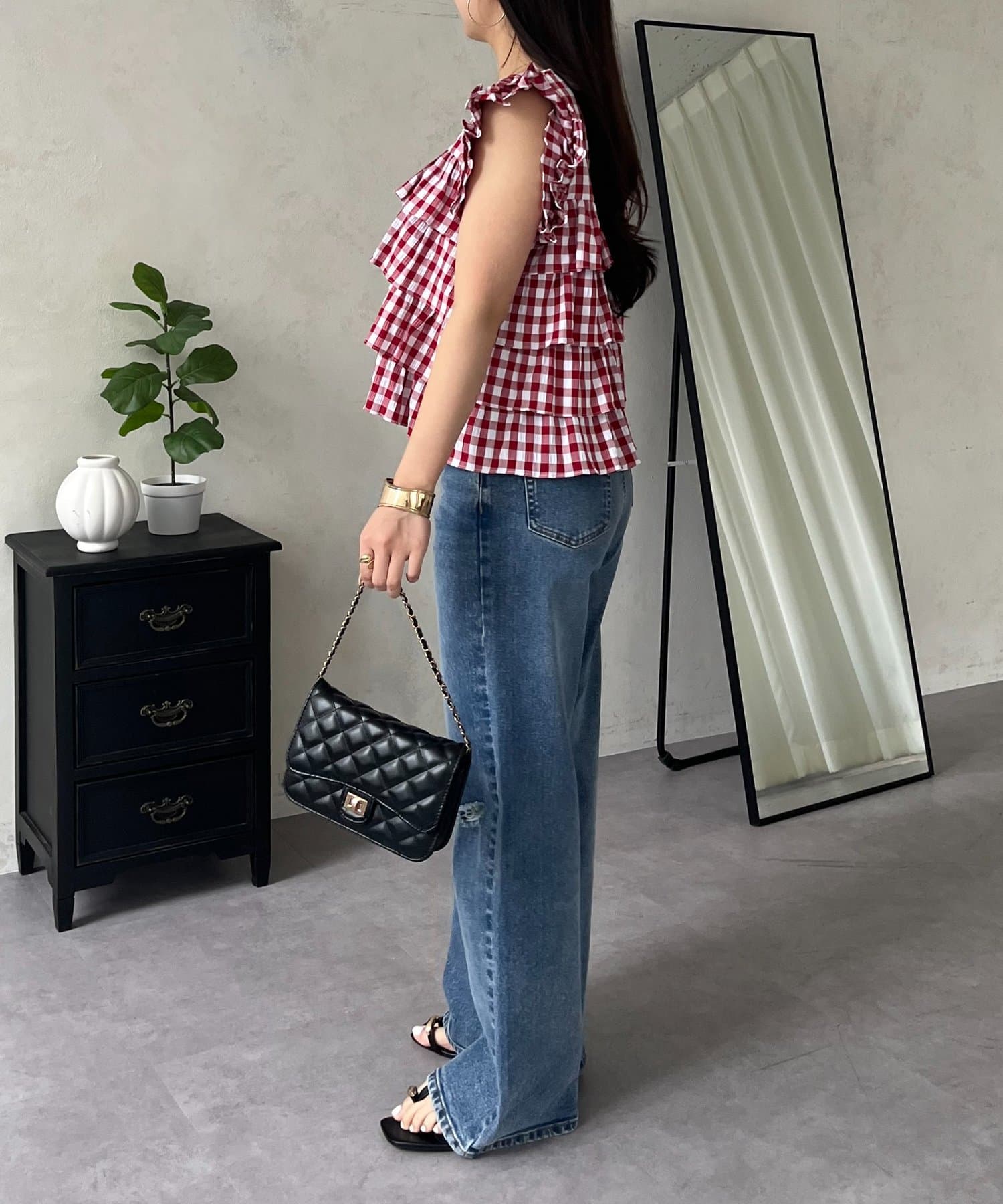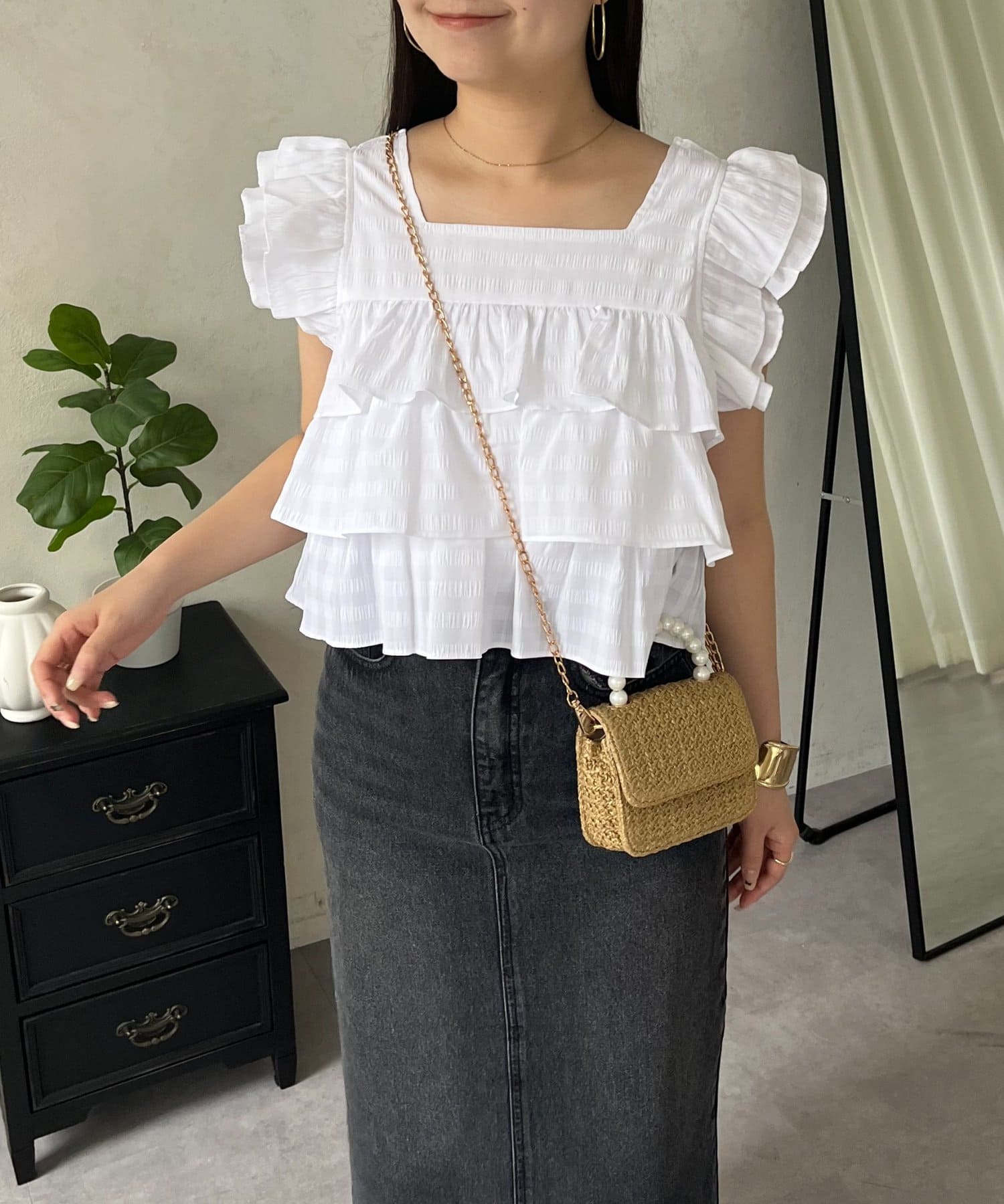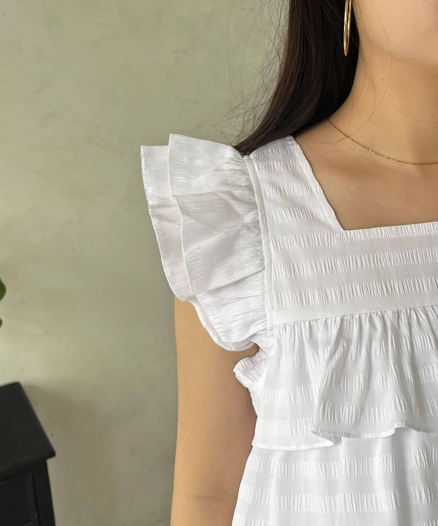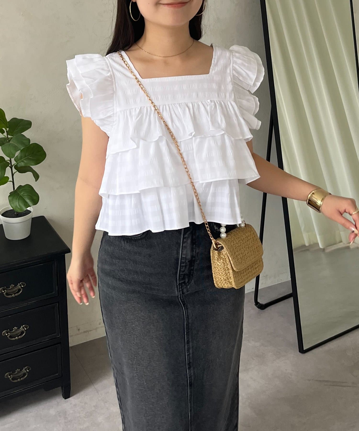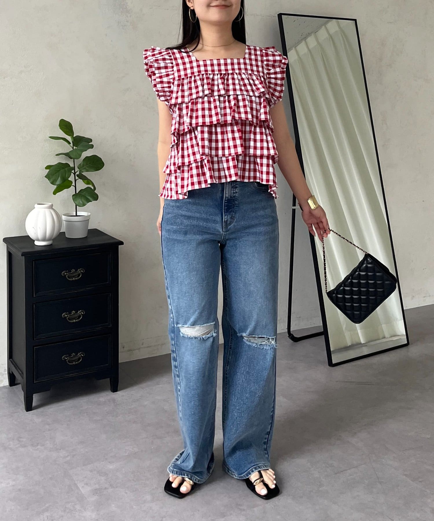 スクエアネックティアードフリルギンガムブラウス