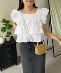prose verse(プロズヴェール) スクエアネックティアードフリルギンガムブラウス