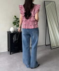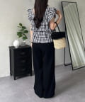 ●さりげないギガムチェック柄の生地が、甘すぎない大人の可愛らしさを引き立てます。