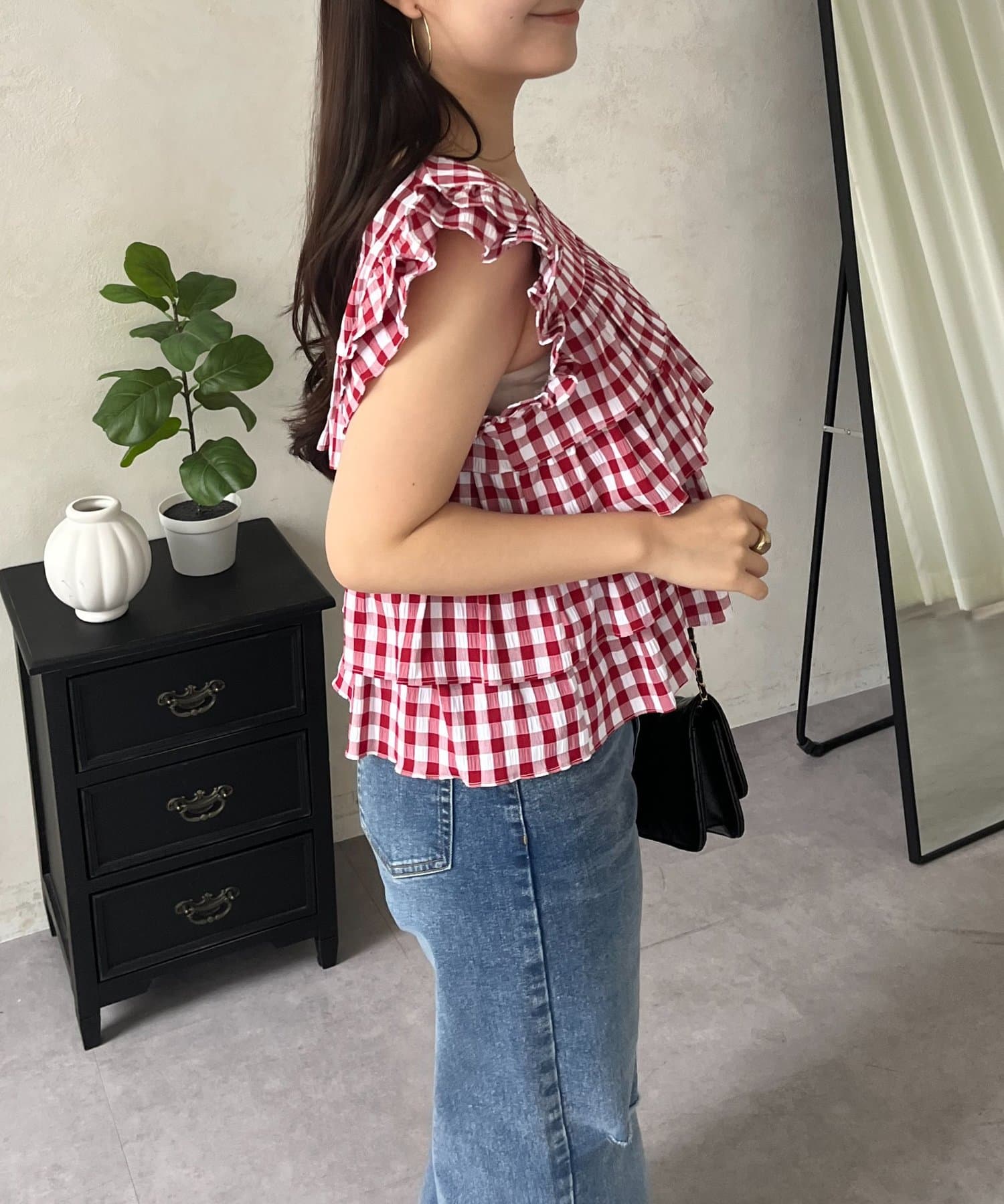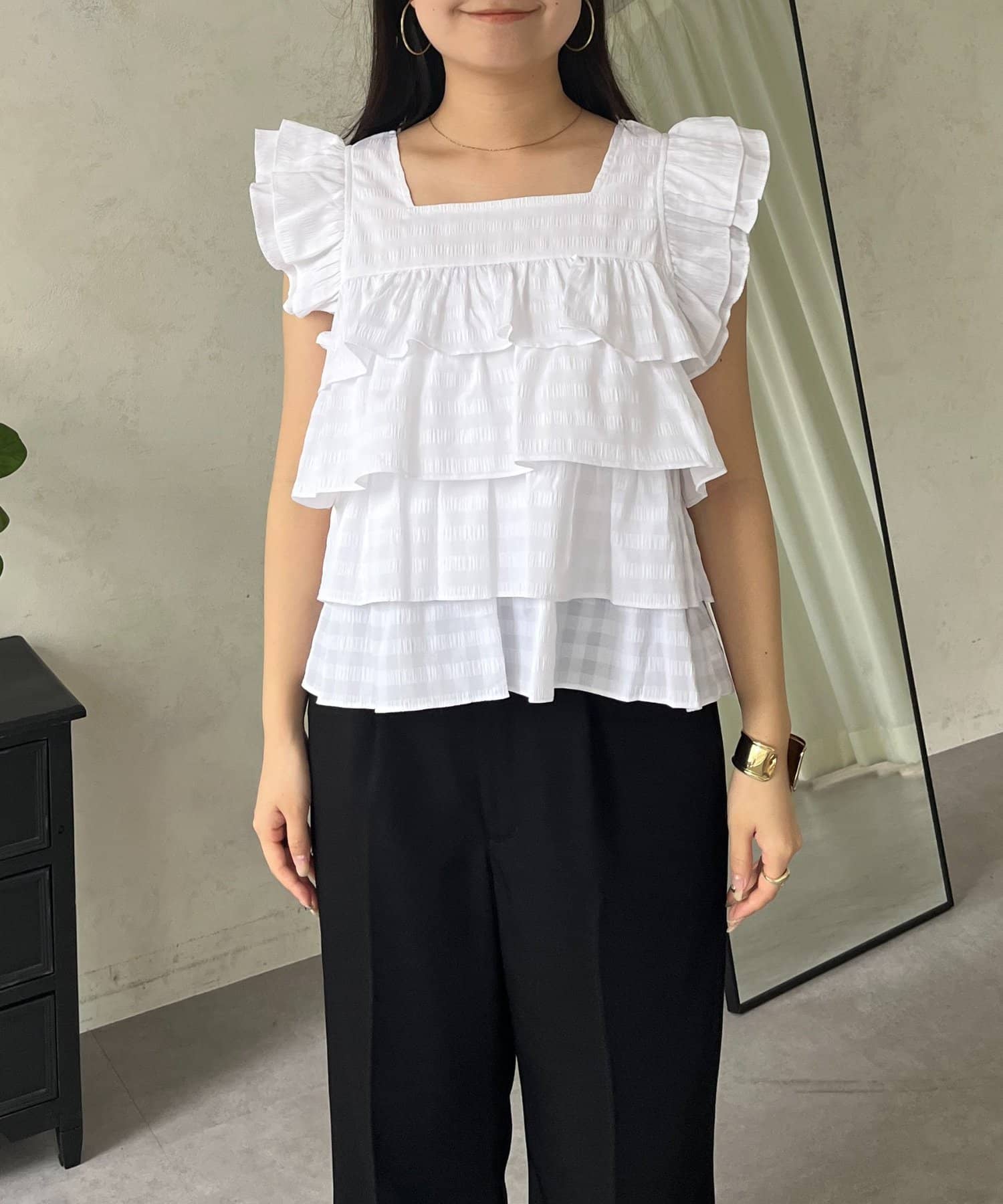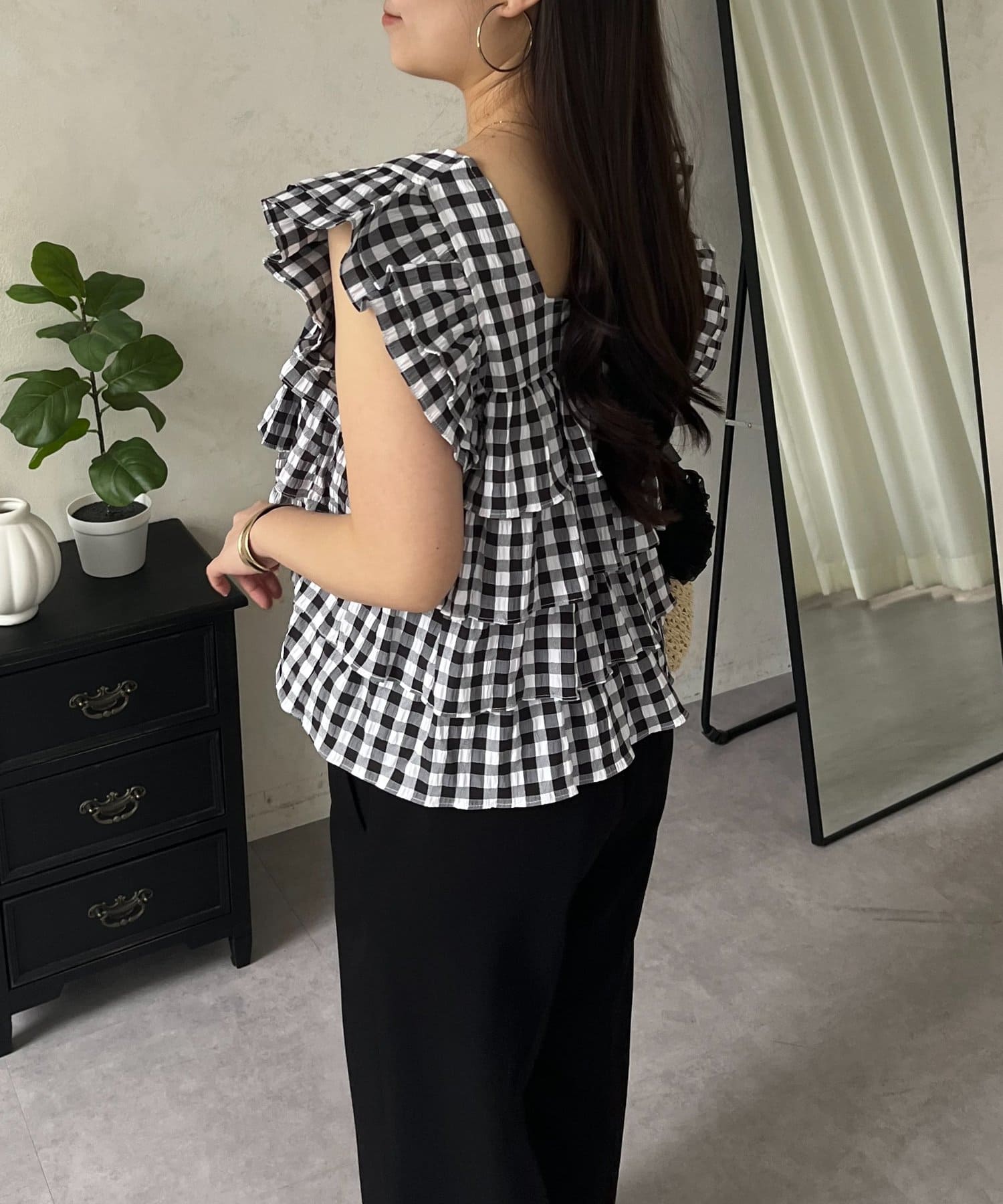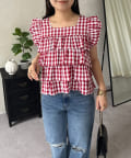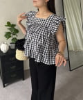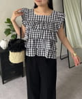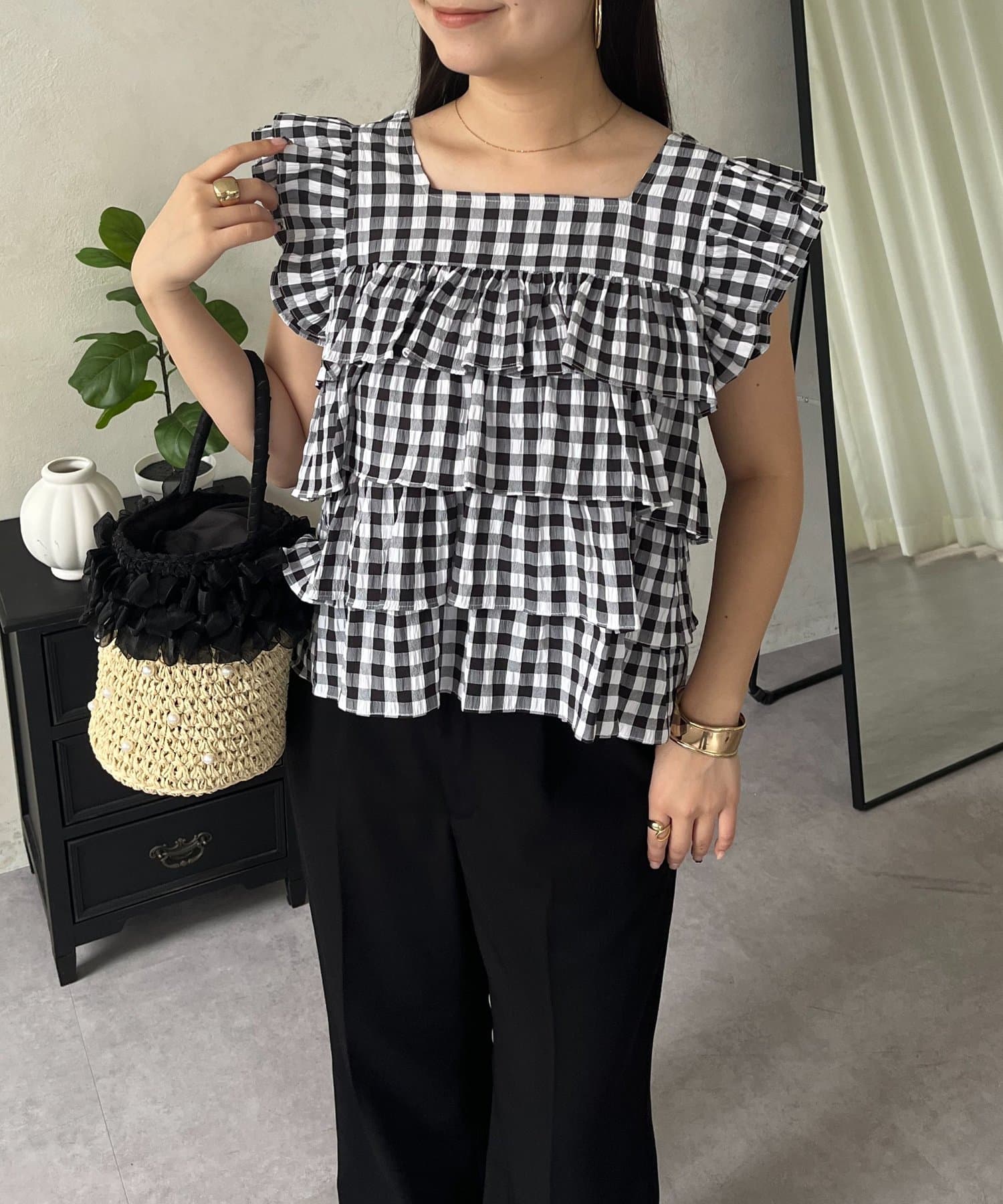 ティアードブラウス/スクエア/ギンガムチェック/大人可愛い