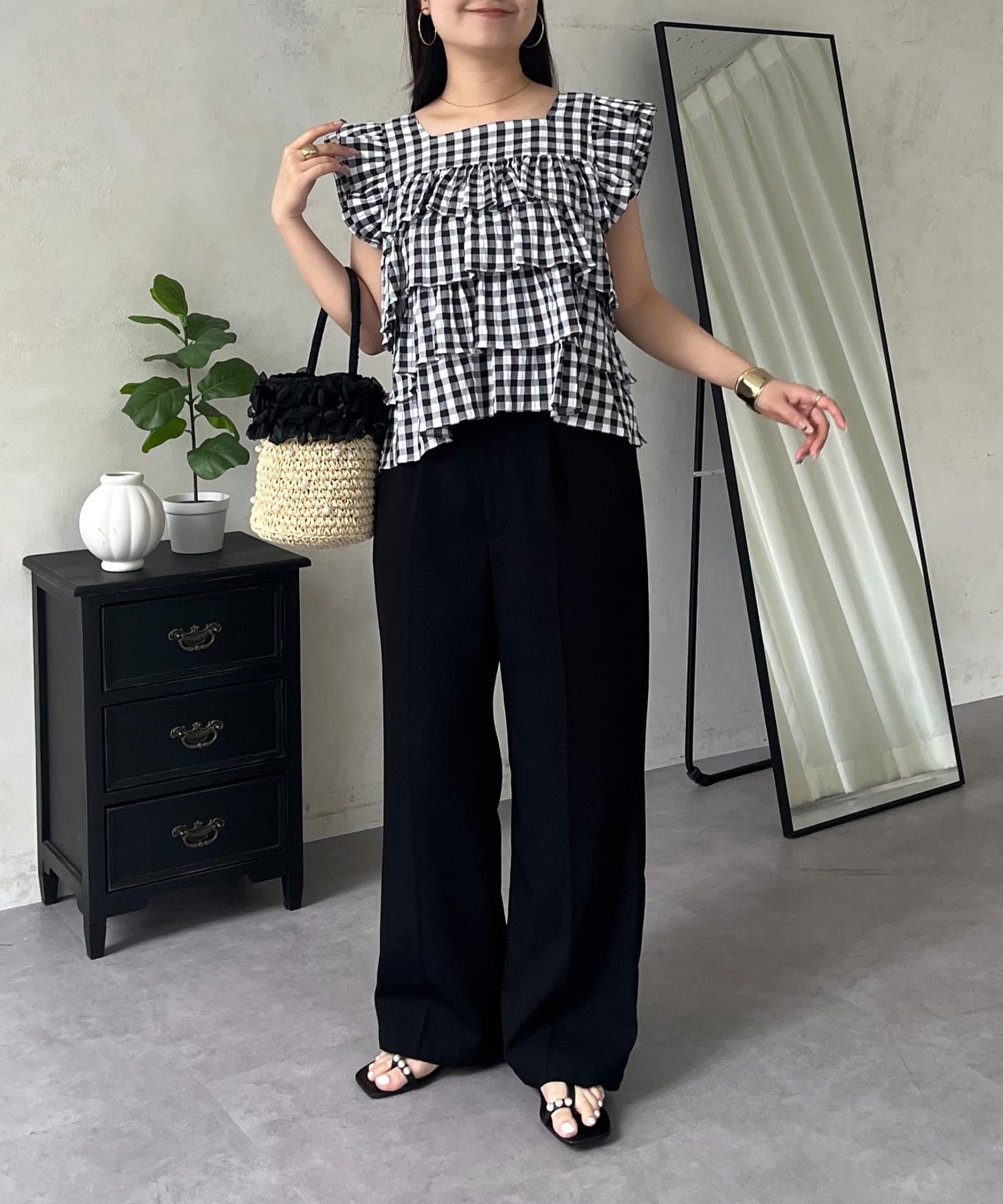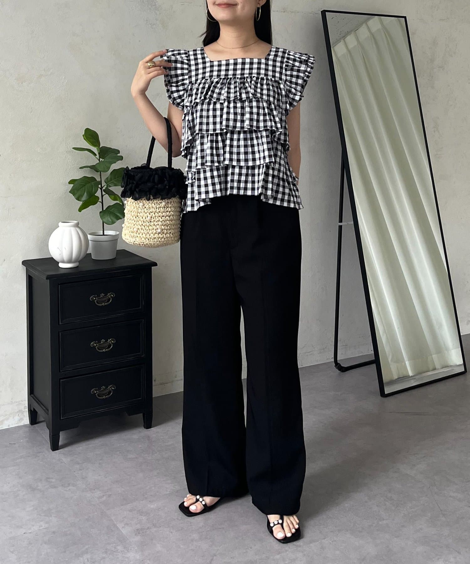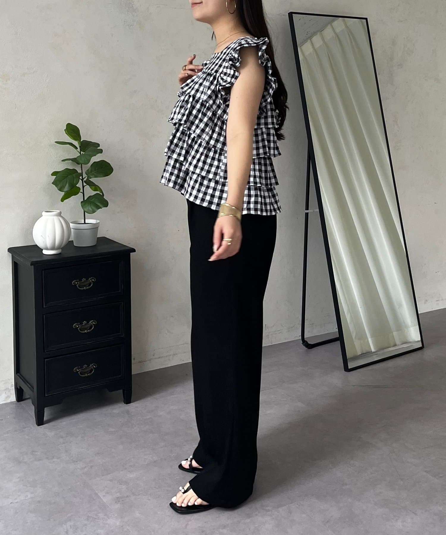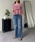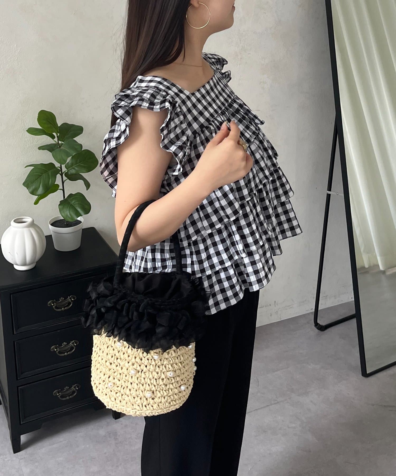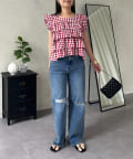 ティアードブラウス/スクエア/ギンガムチェック/大人可愛い