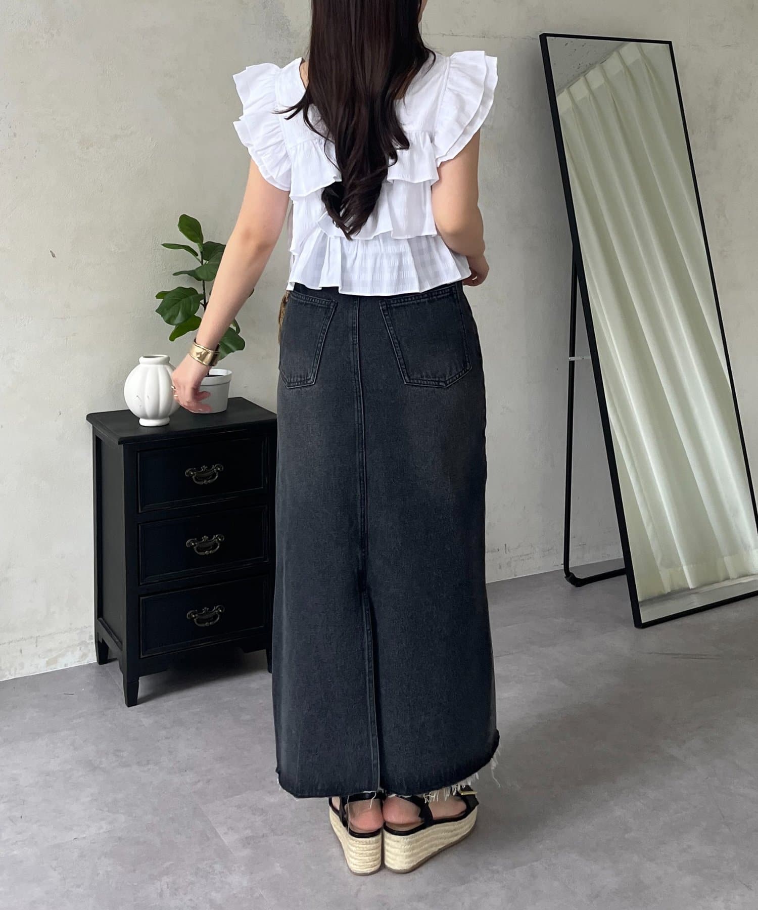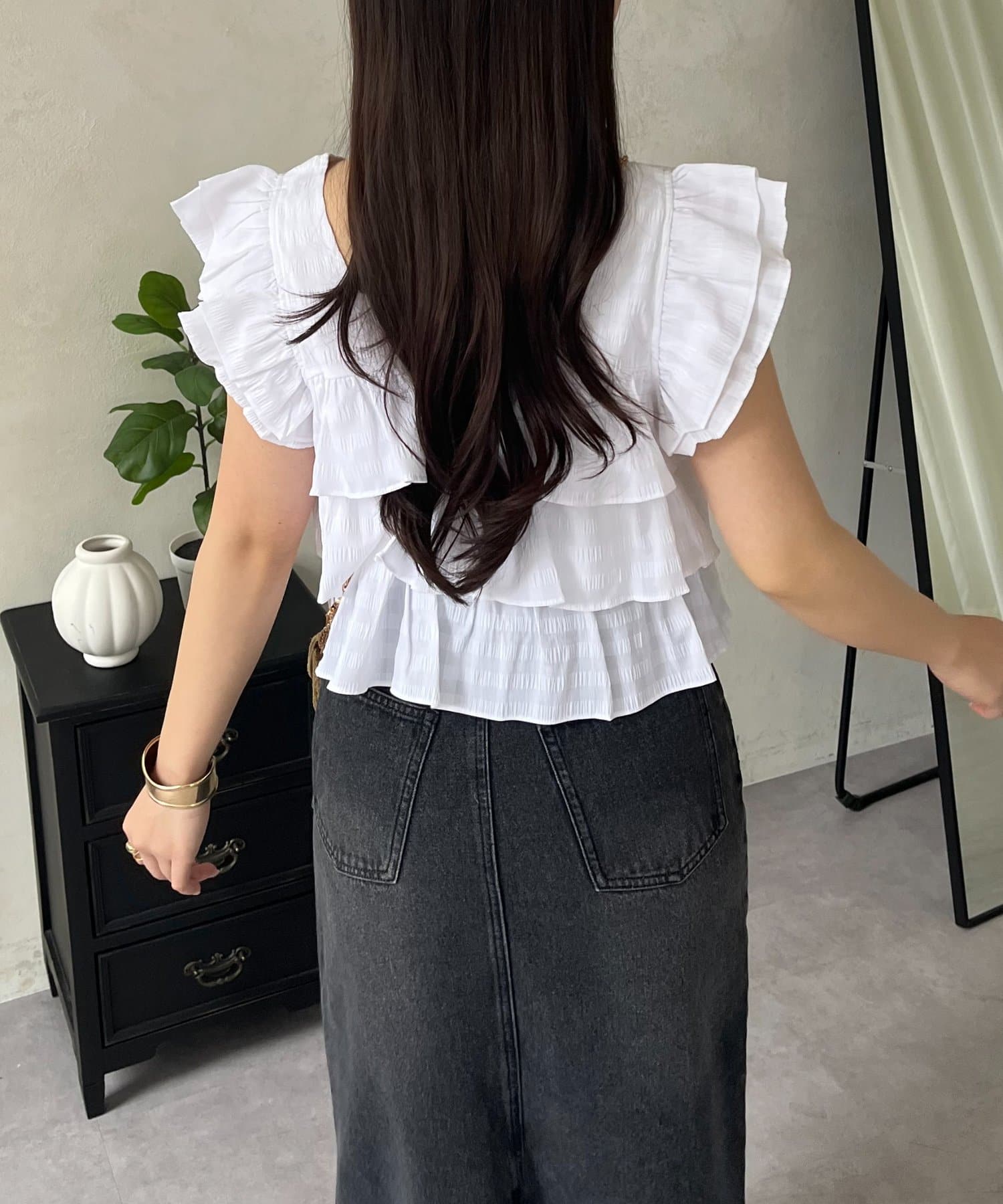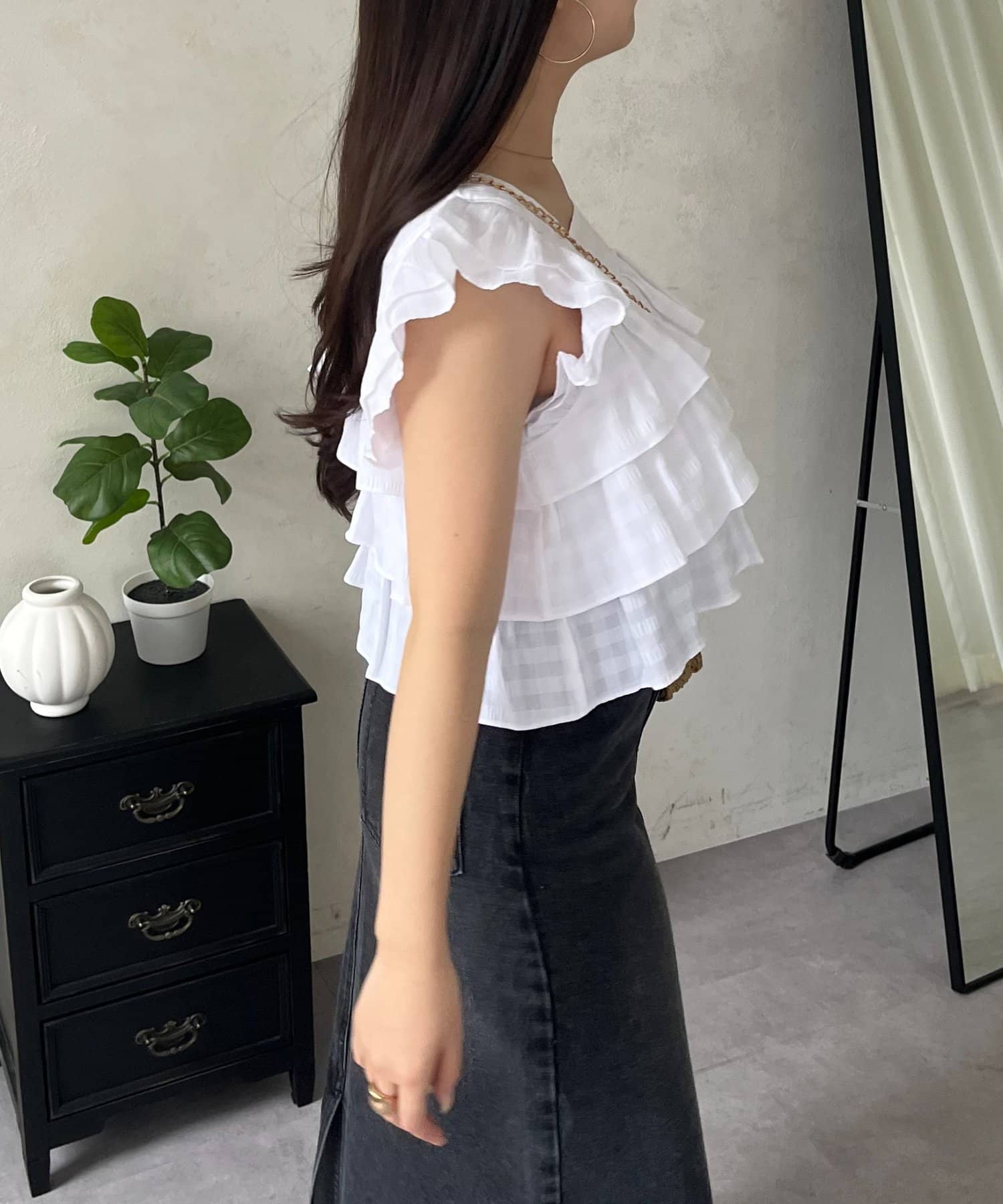 ●何層にも重なったティアードフリルが動くたびに揺れ、女性らしさを演出