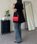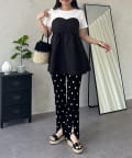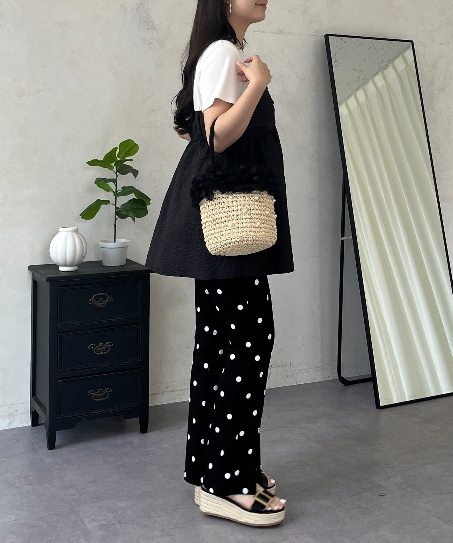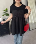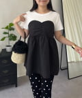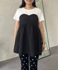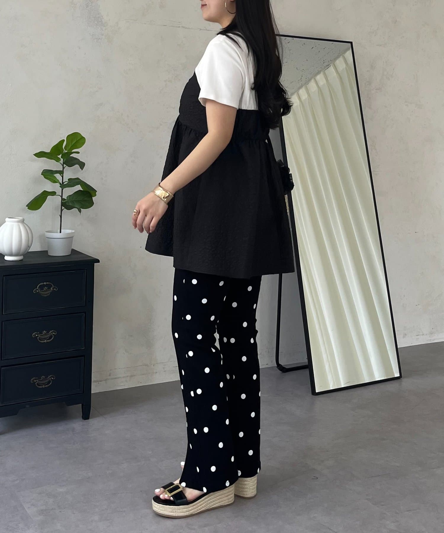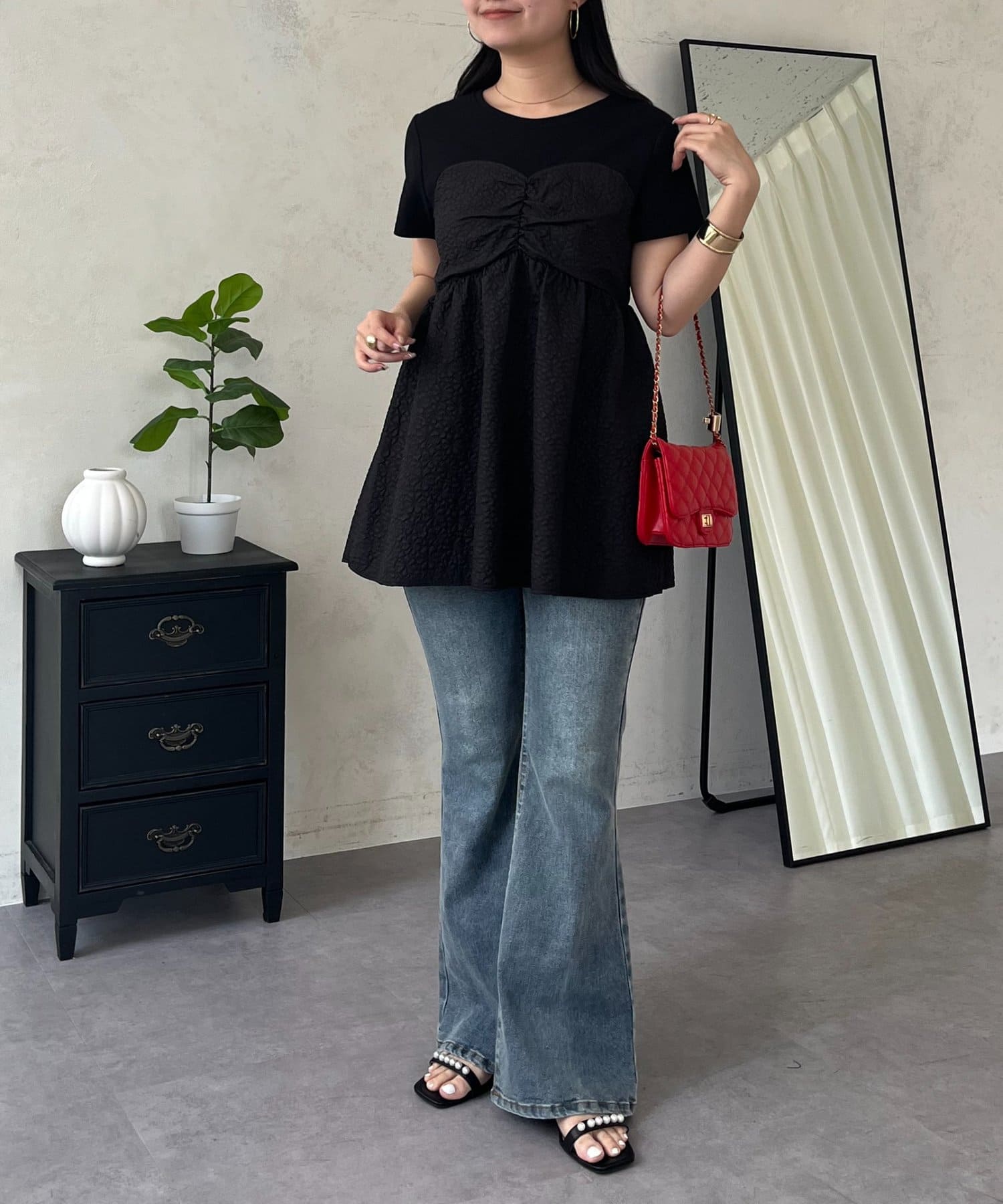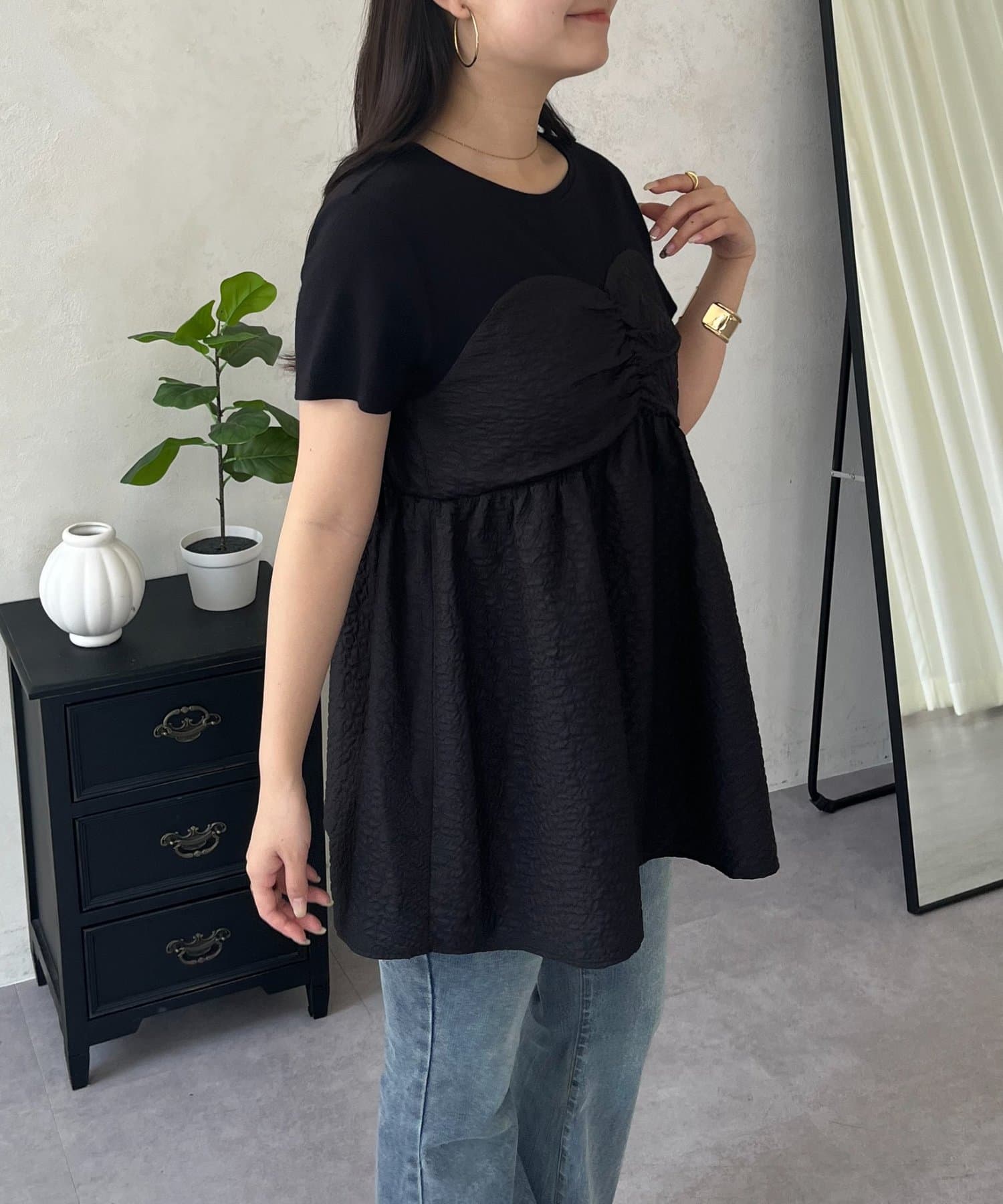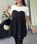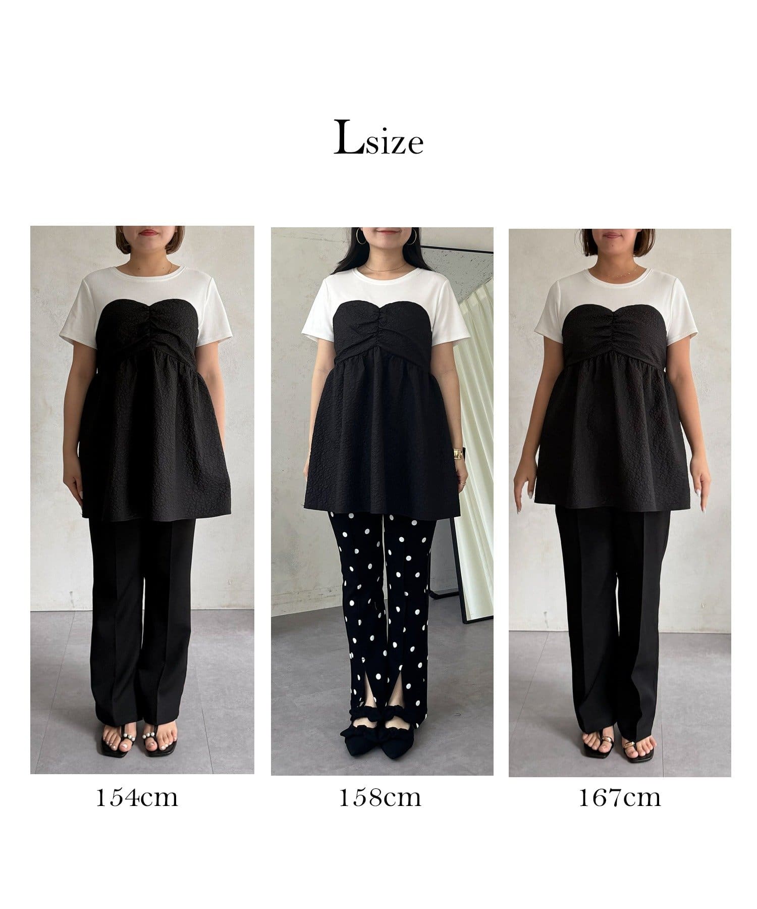 ●Tシャツに立体感のあるジャガードビスチェを重ねたようなドッキングデザインで、コーデに悩まずお洒落が完成