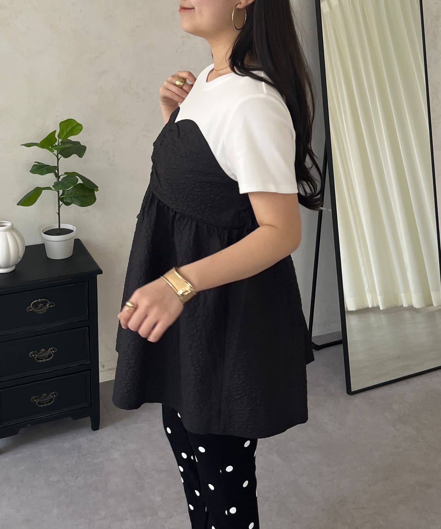 一枚で旬顔コーデが完成!ジャガードビスチェドッキングTシャツ