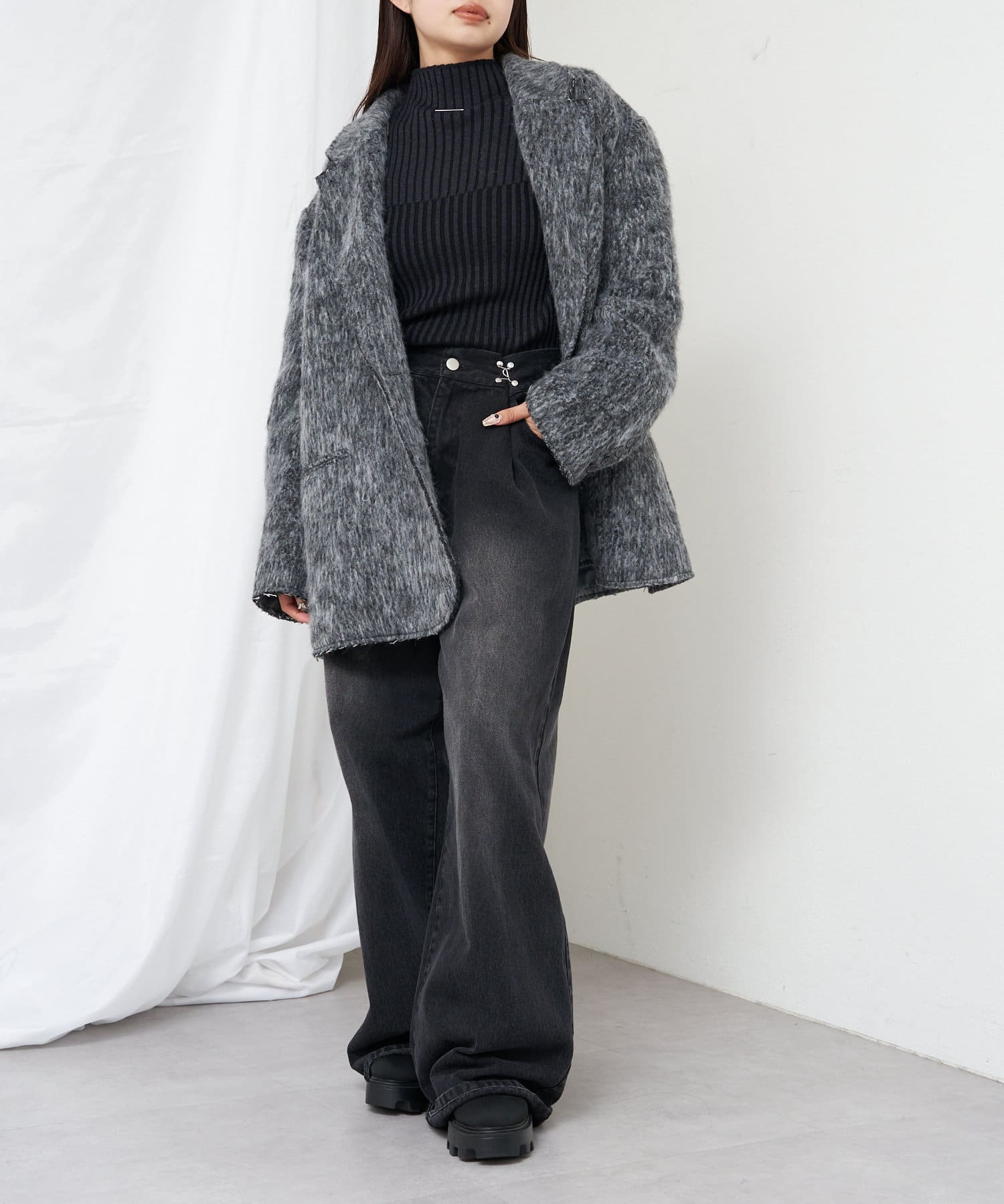 トップスがシュッとした形のため、ボトムスの形を選ばずスタイリングしていただけます○