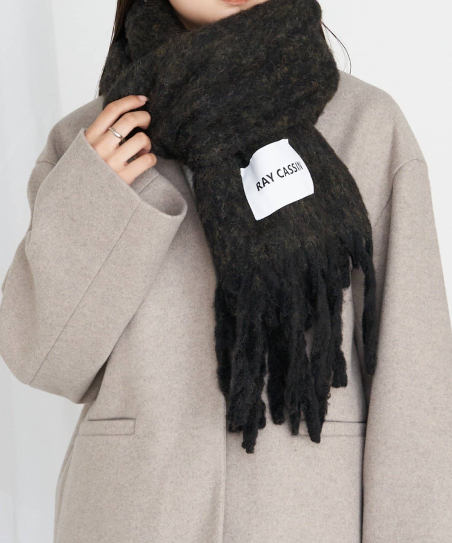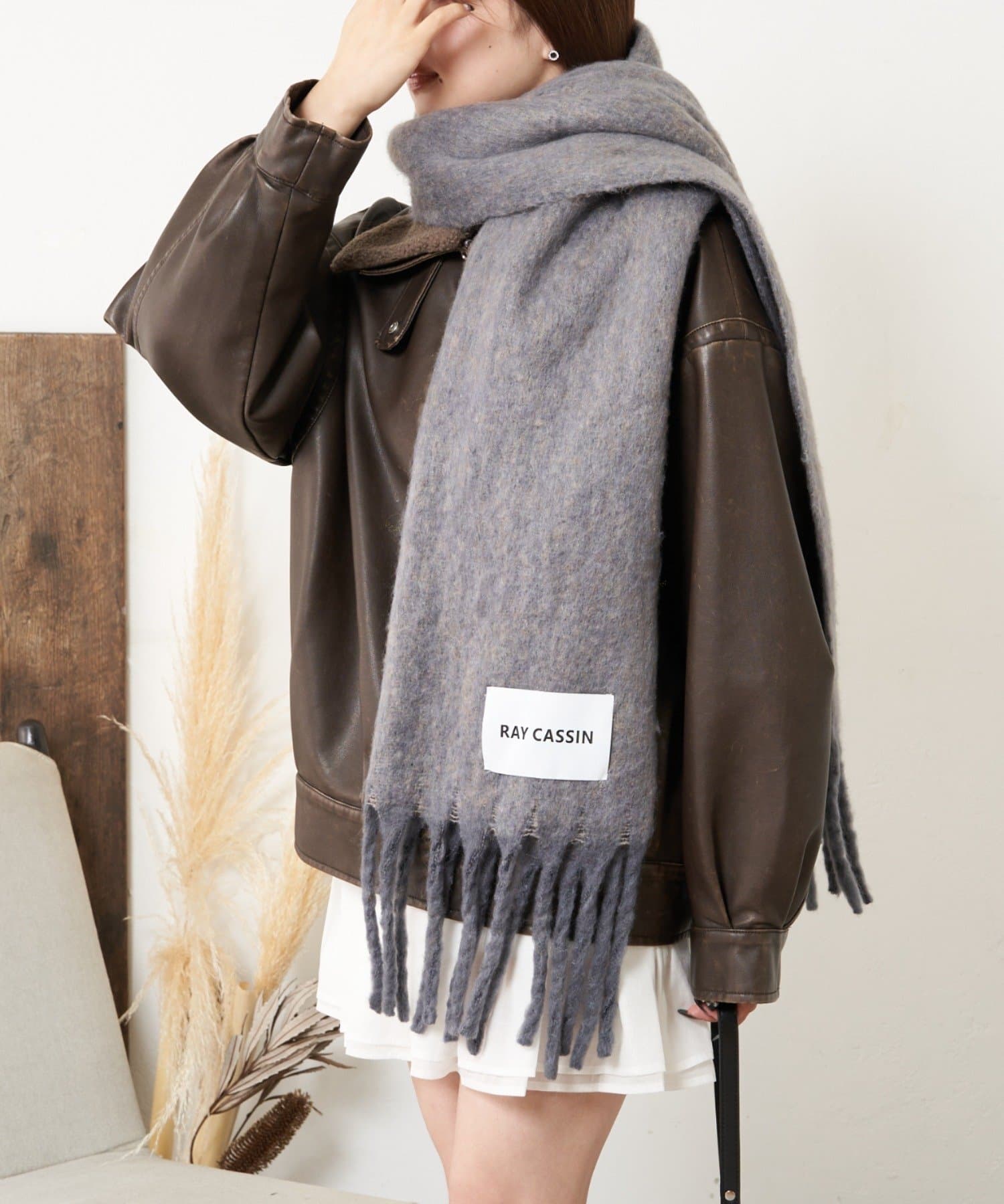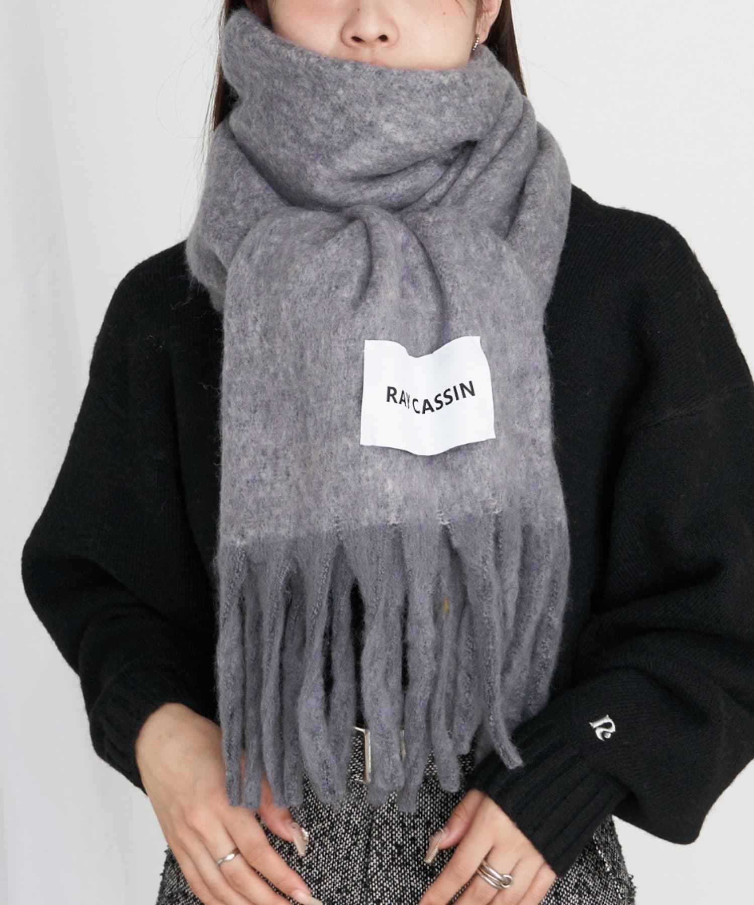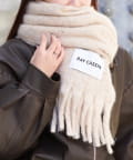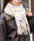 大きいブランドネームが入ったマフラーです。