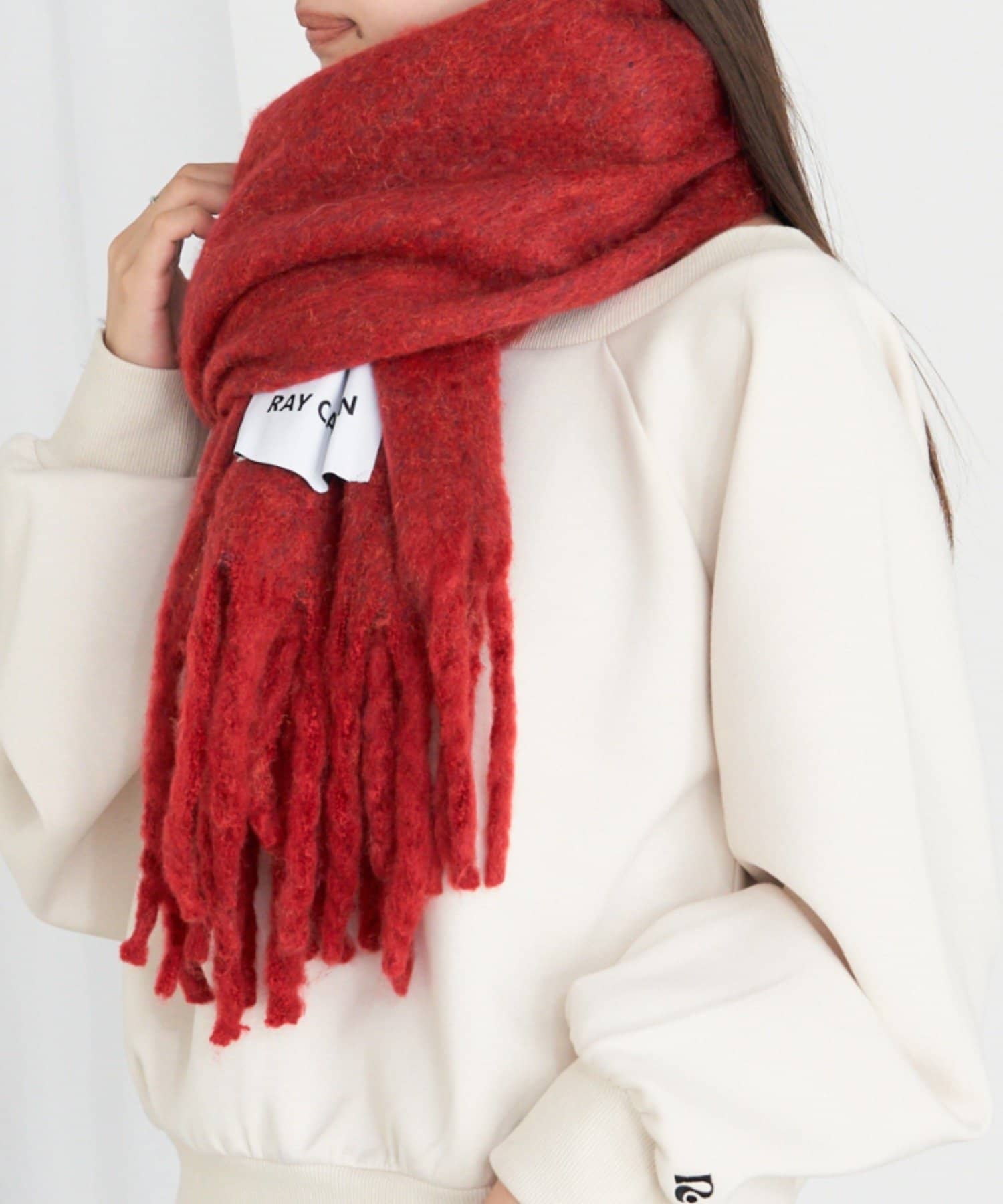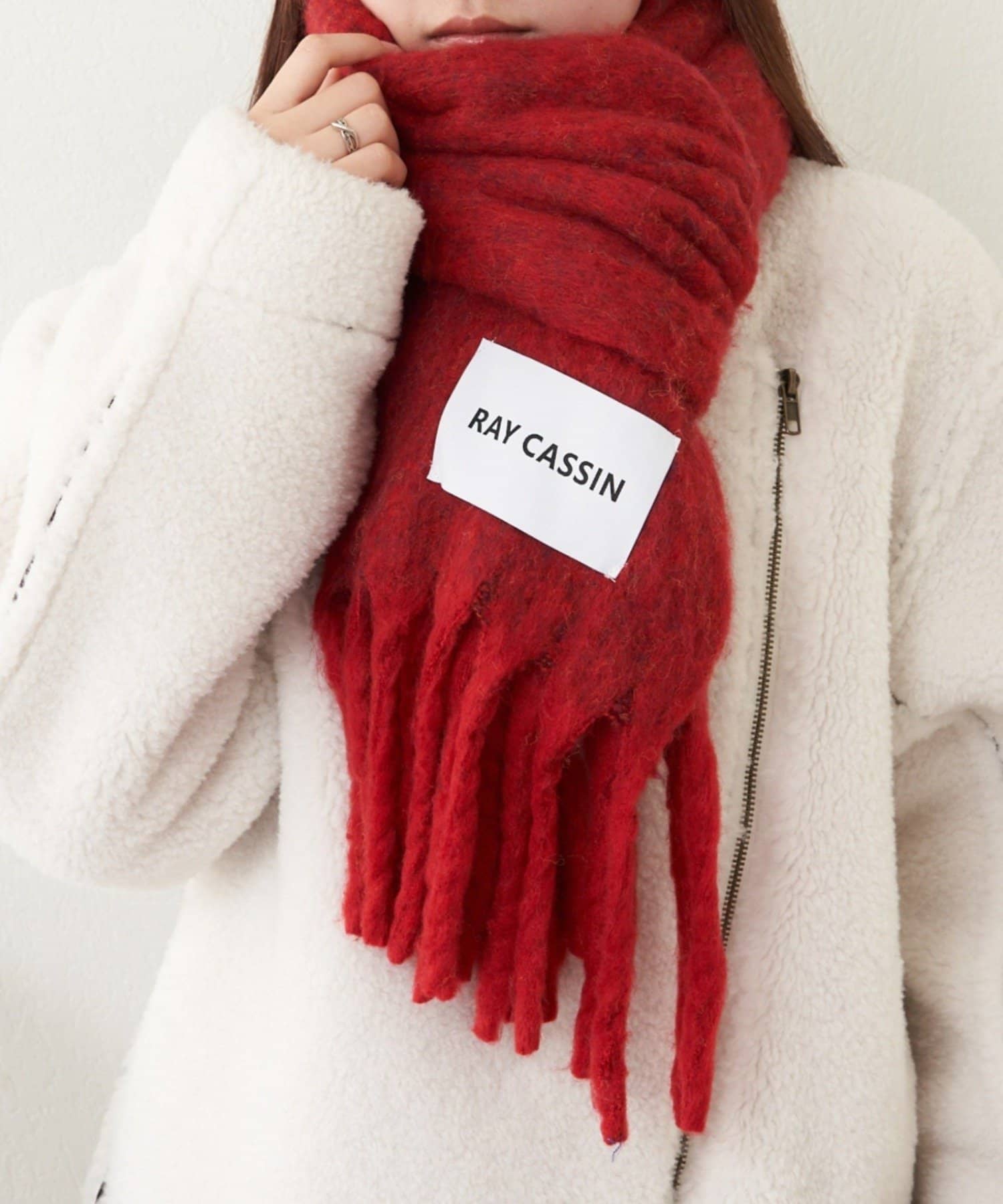 赤色が目を惹くマフラー