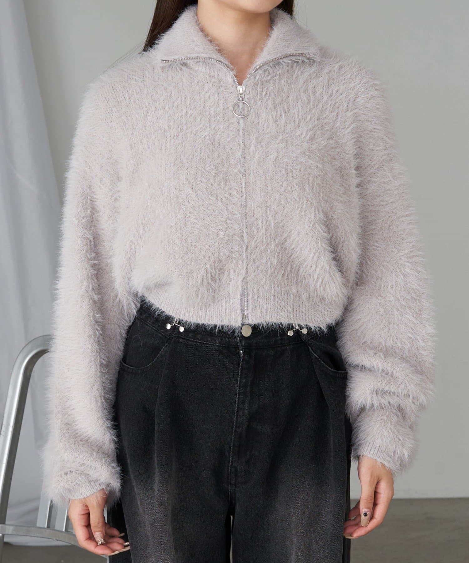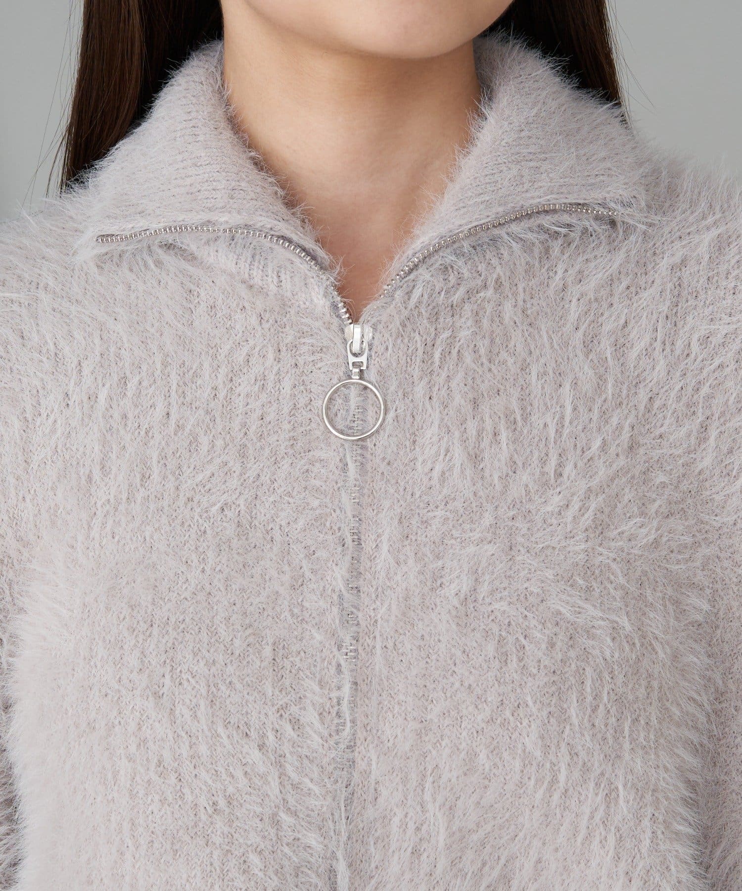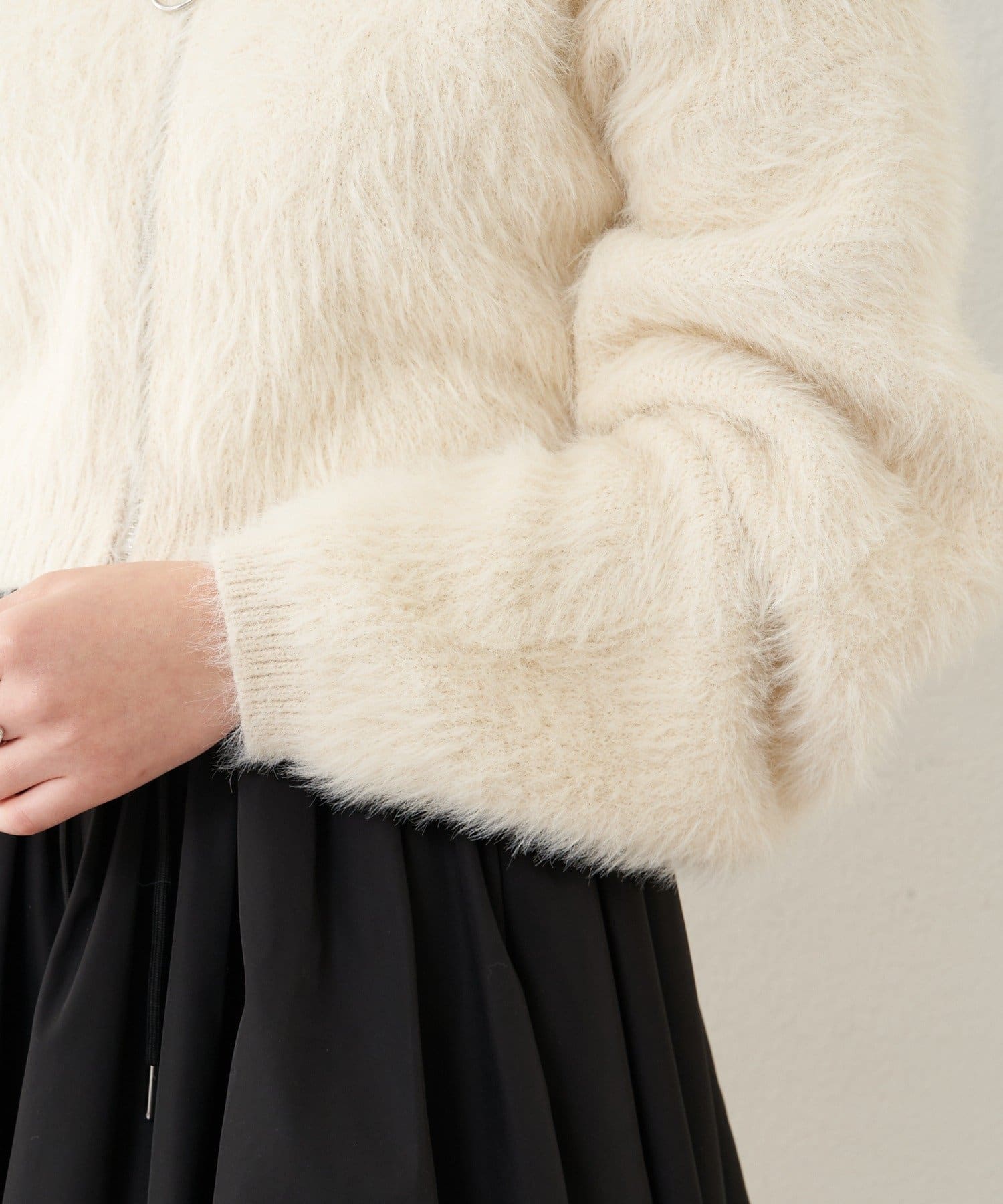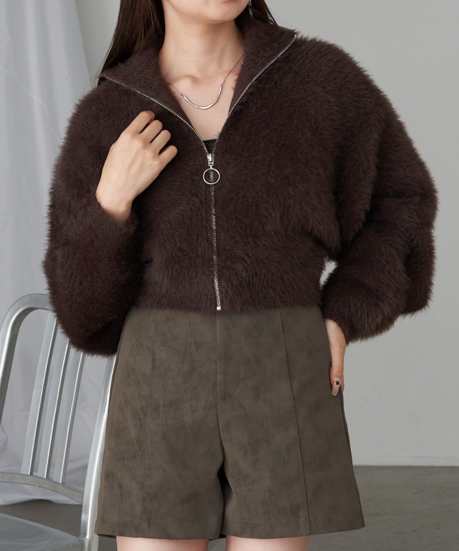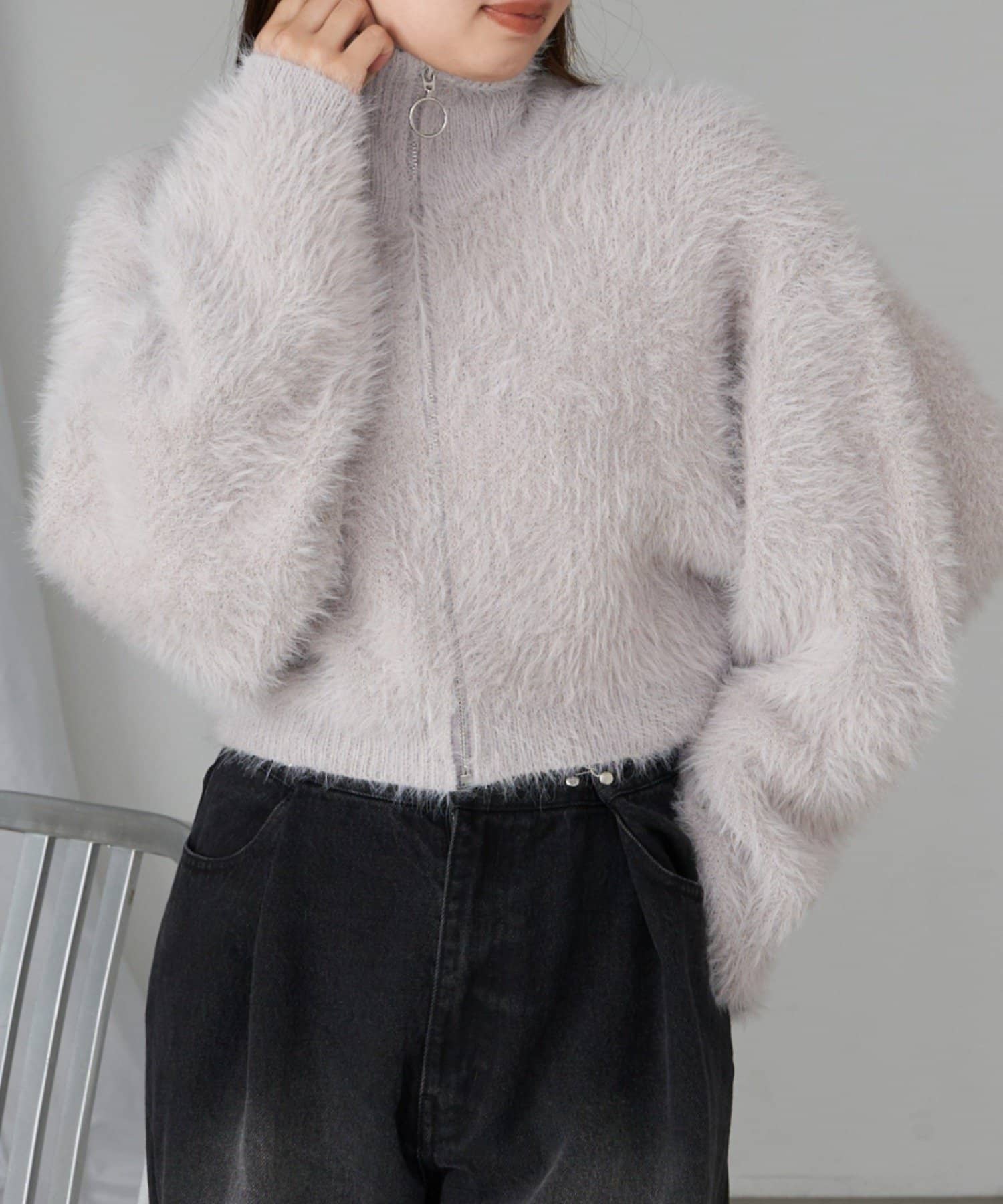 ・ジップデザインがカジュアル感を残しつつもシャギー素材が甘さをプラス