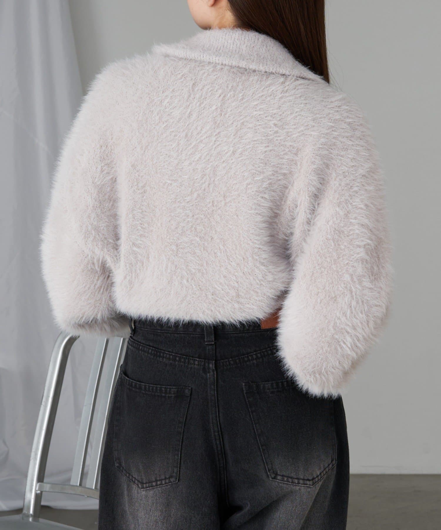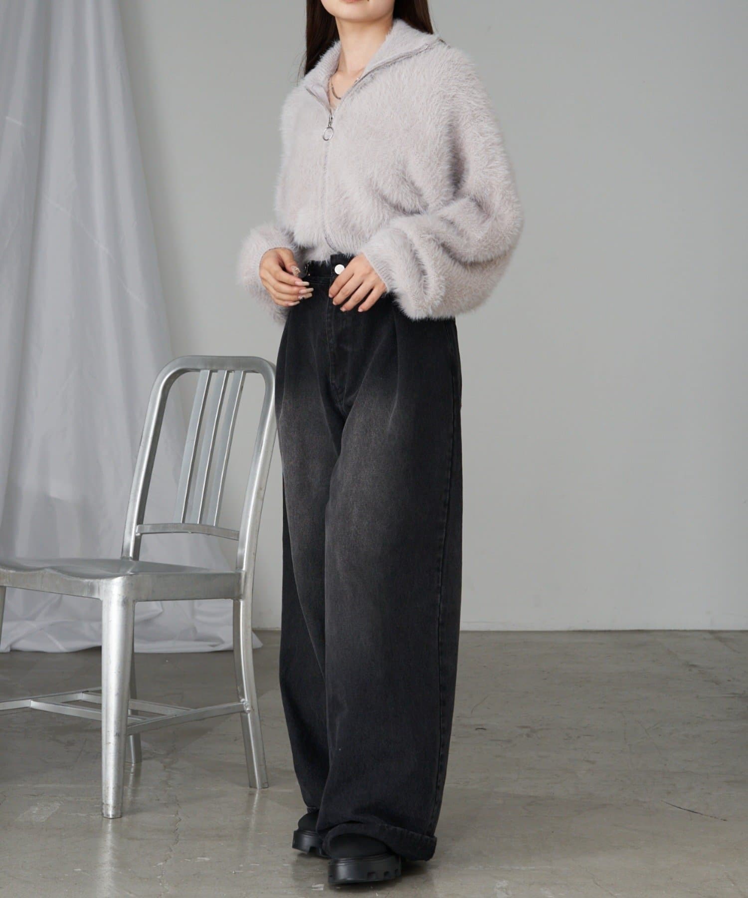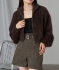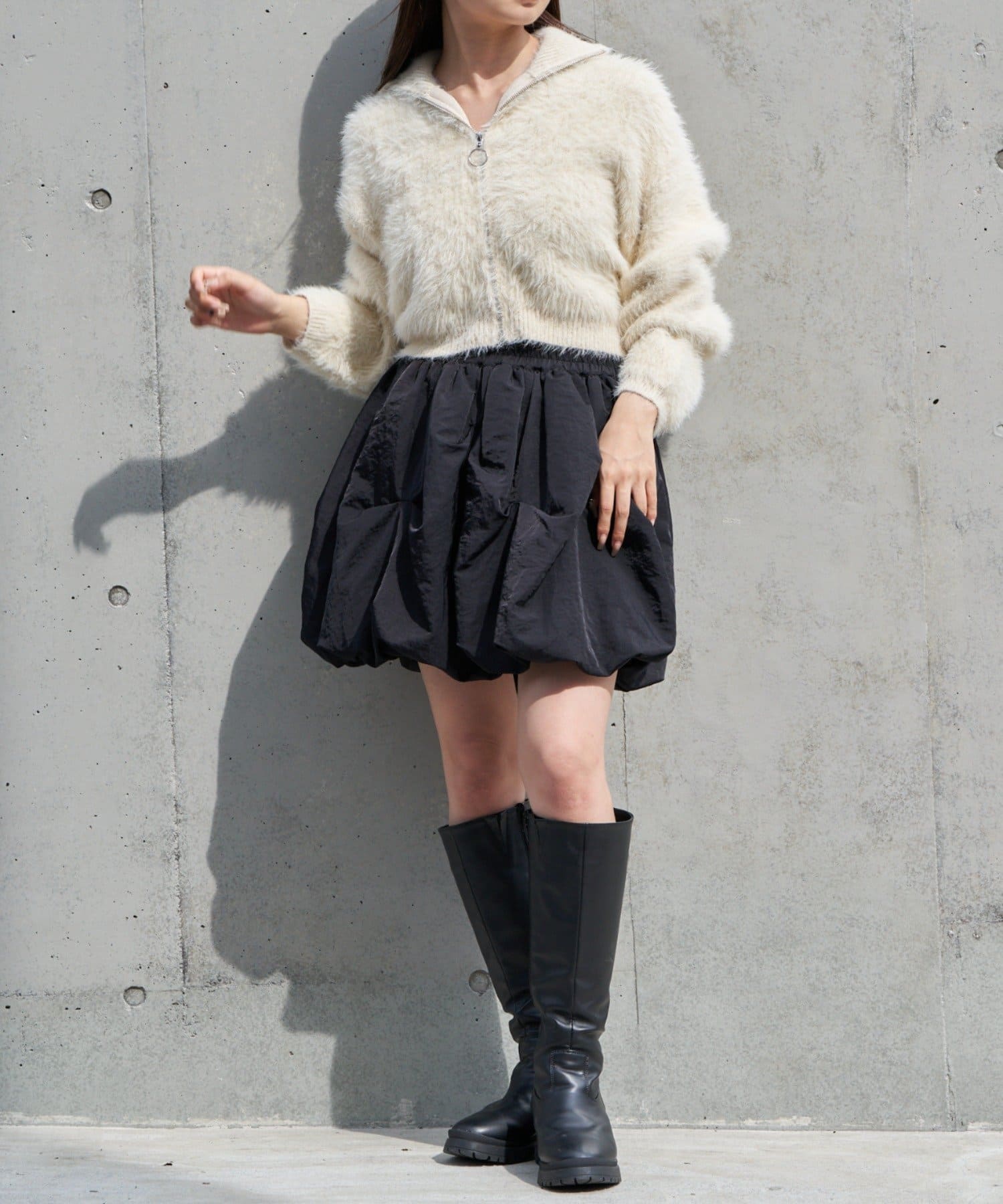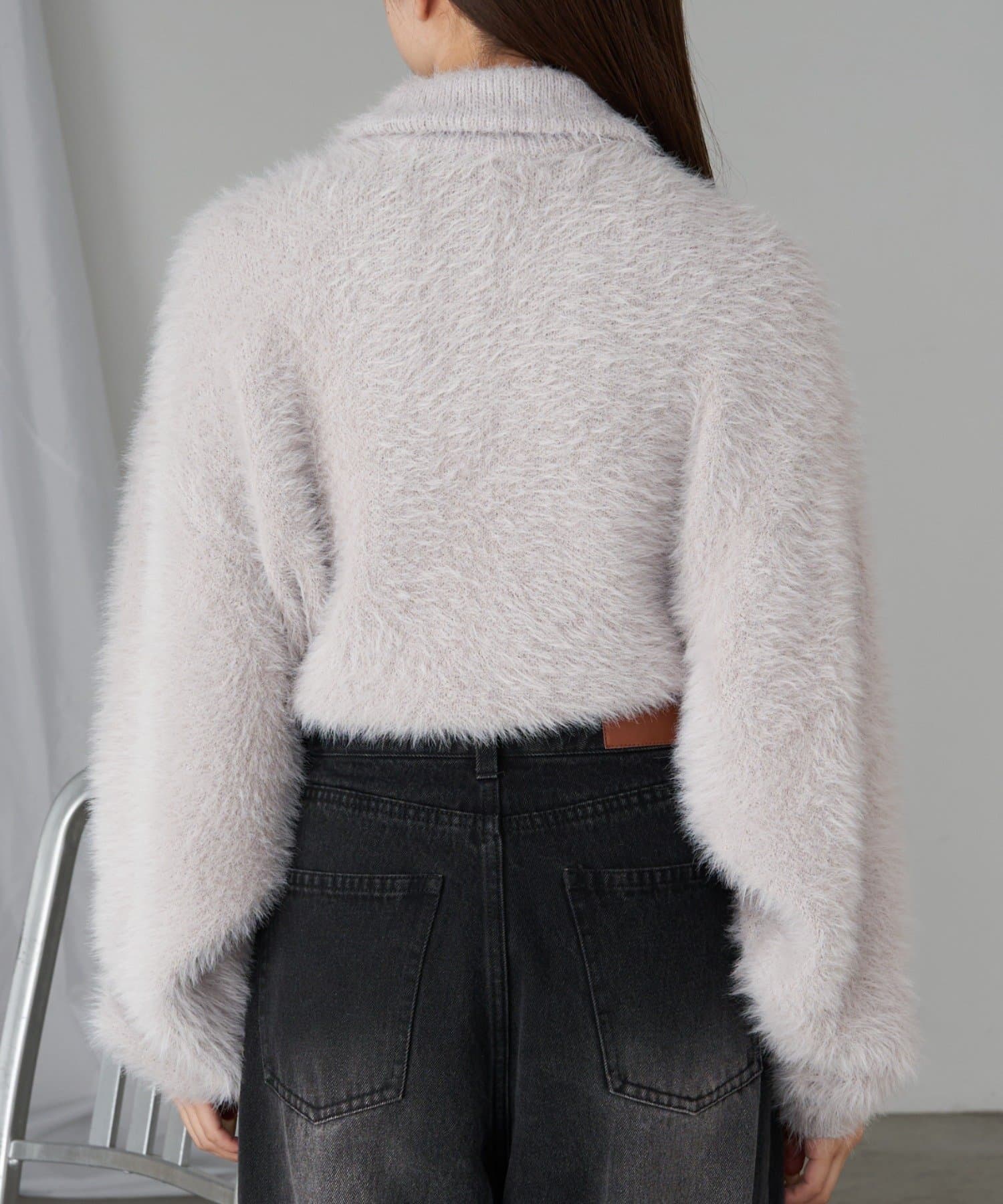・ジップデザインがカジュアル感を残しつつもシャギー素材が甘さをプラス
