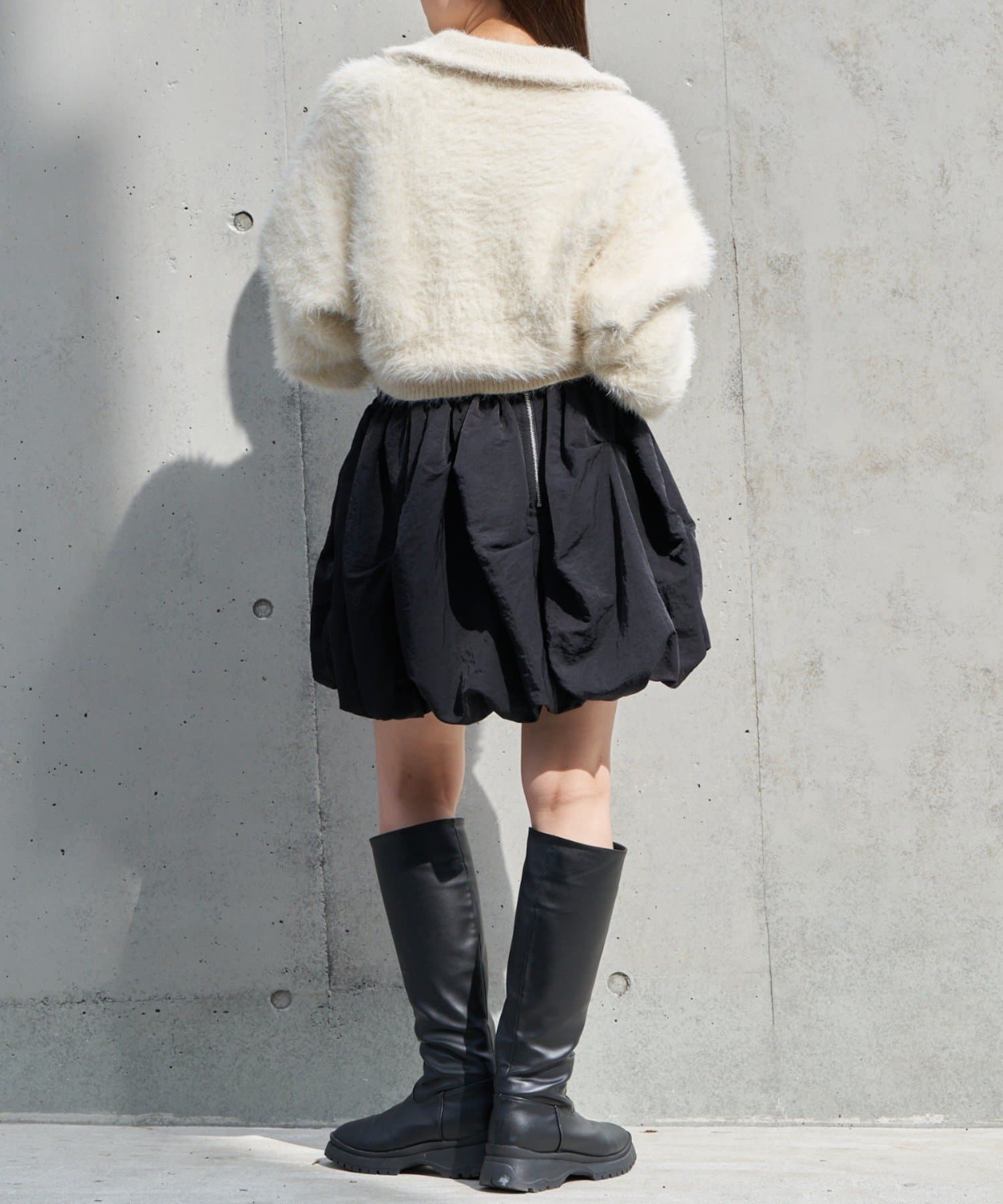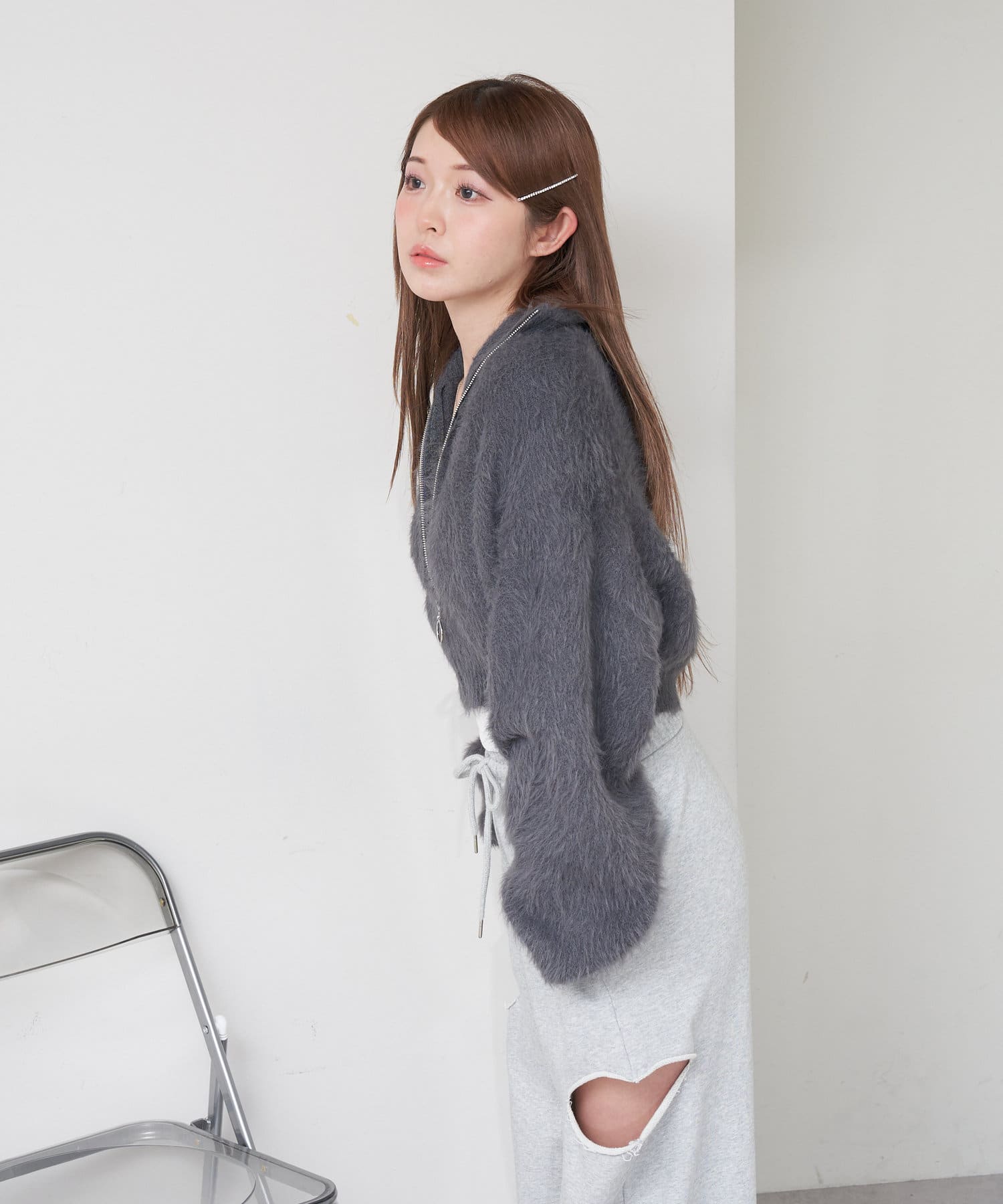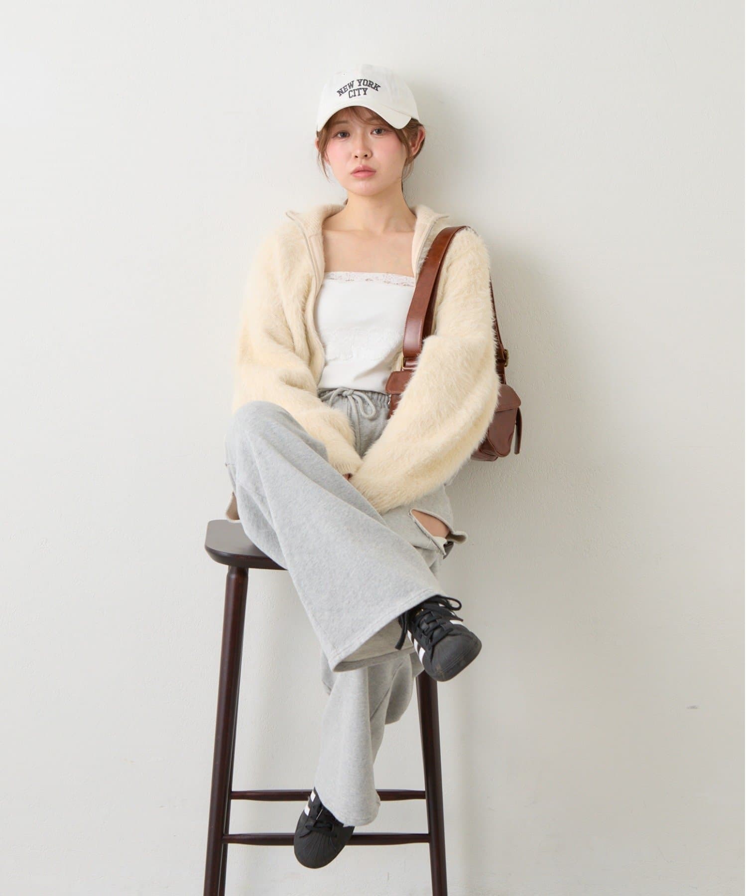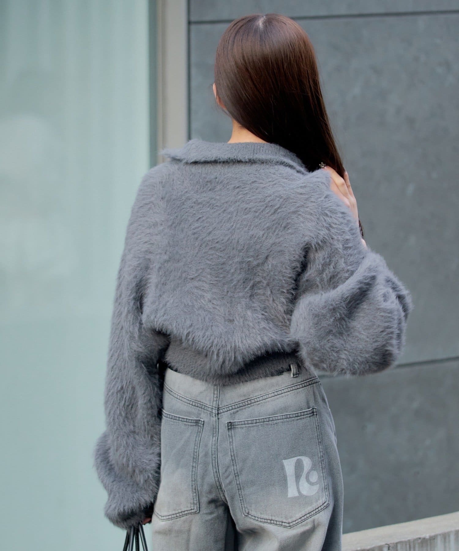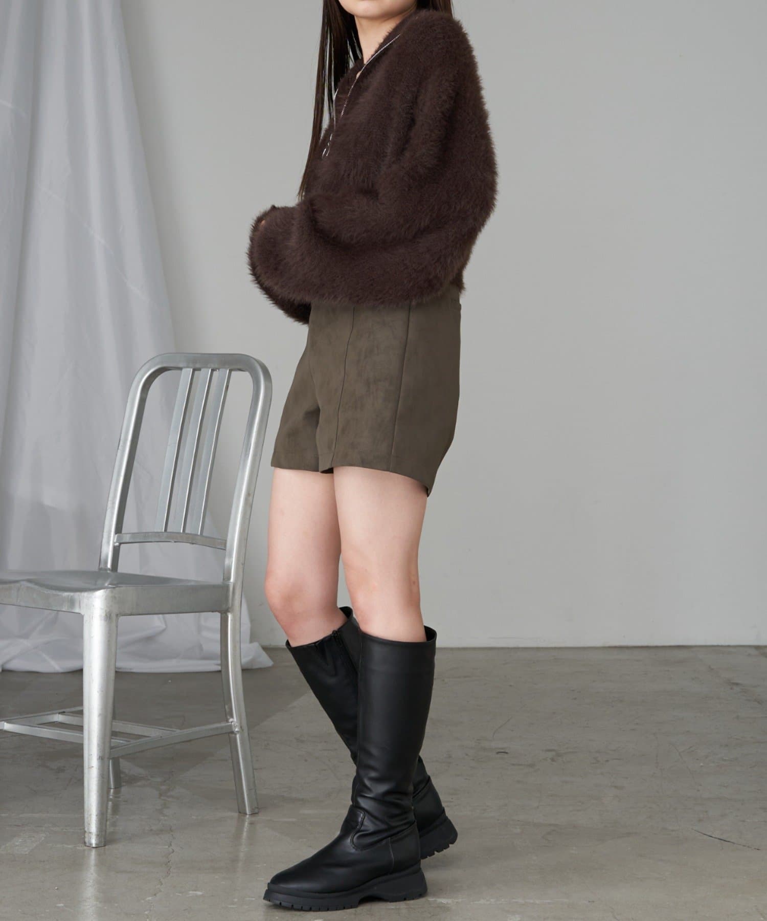 ・ジップデザインがカジュアル感を残しつつもシャギー素材が甘さをプラス