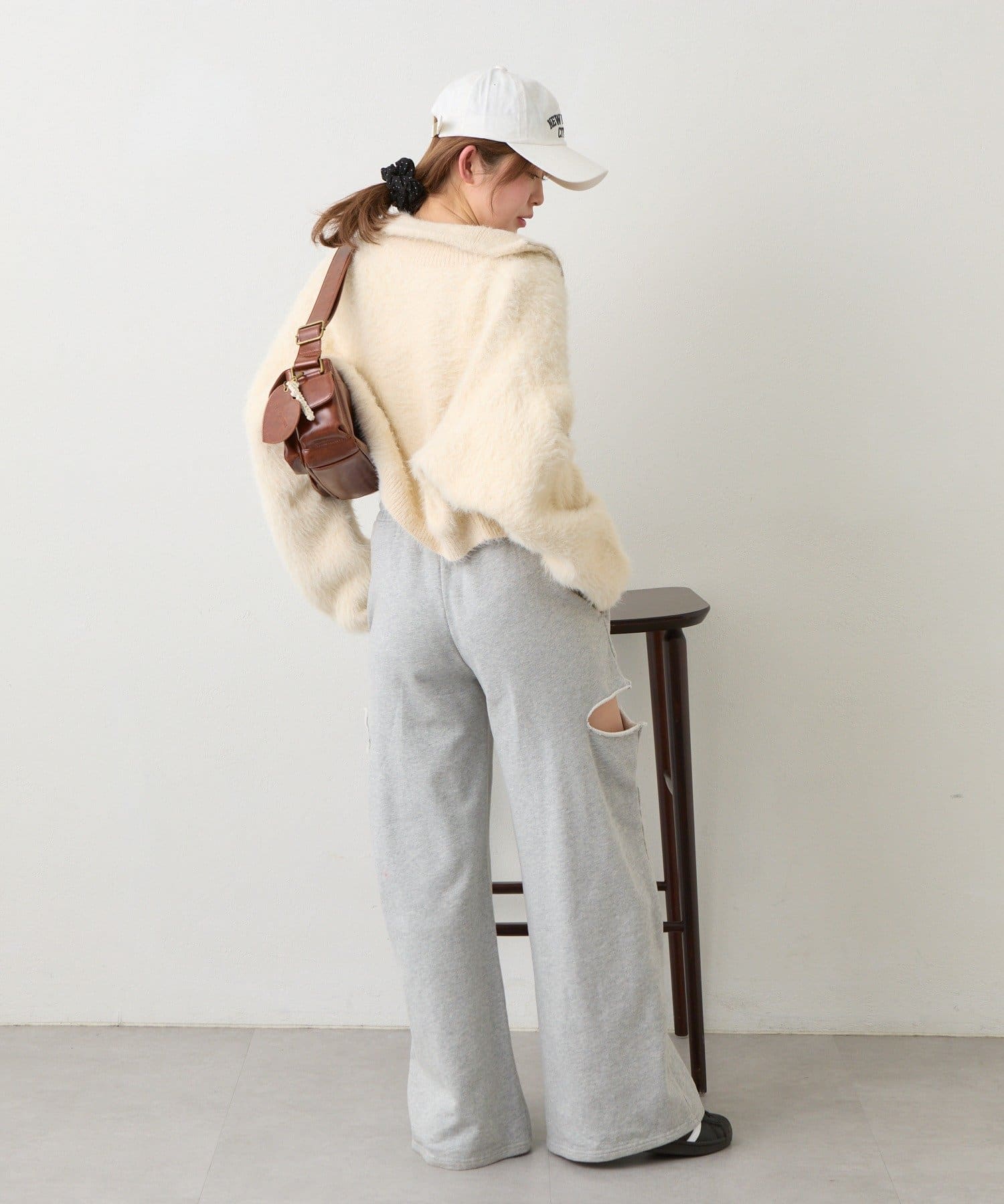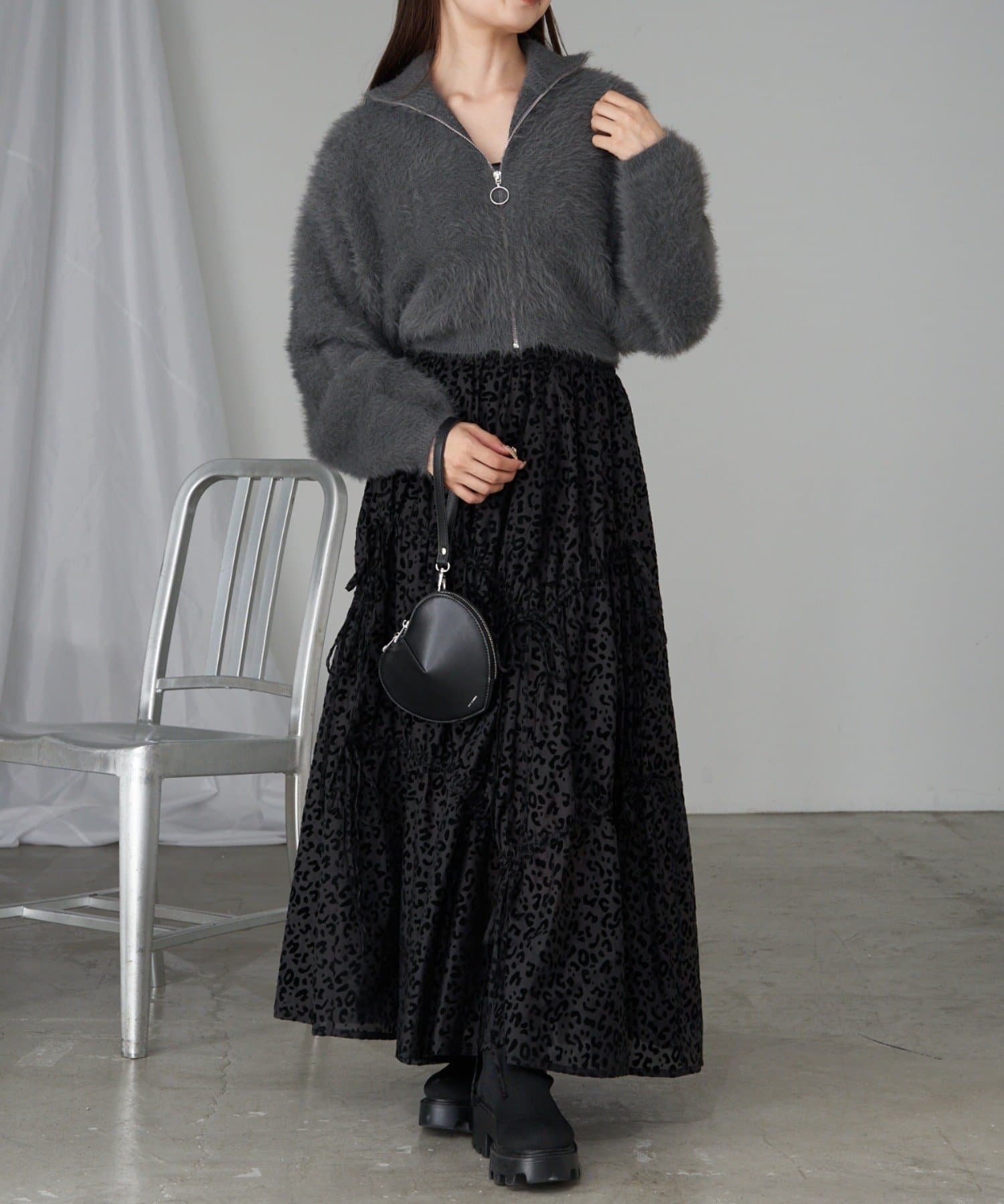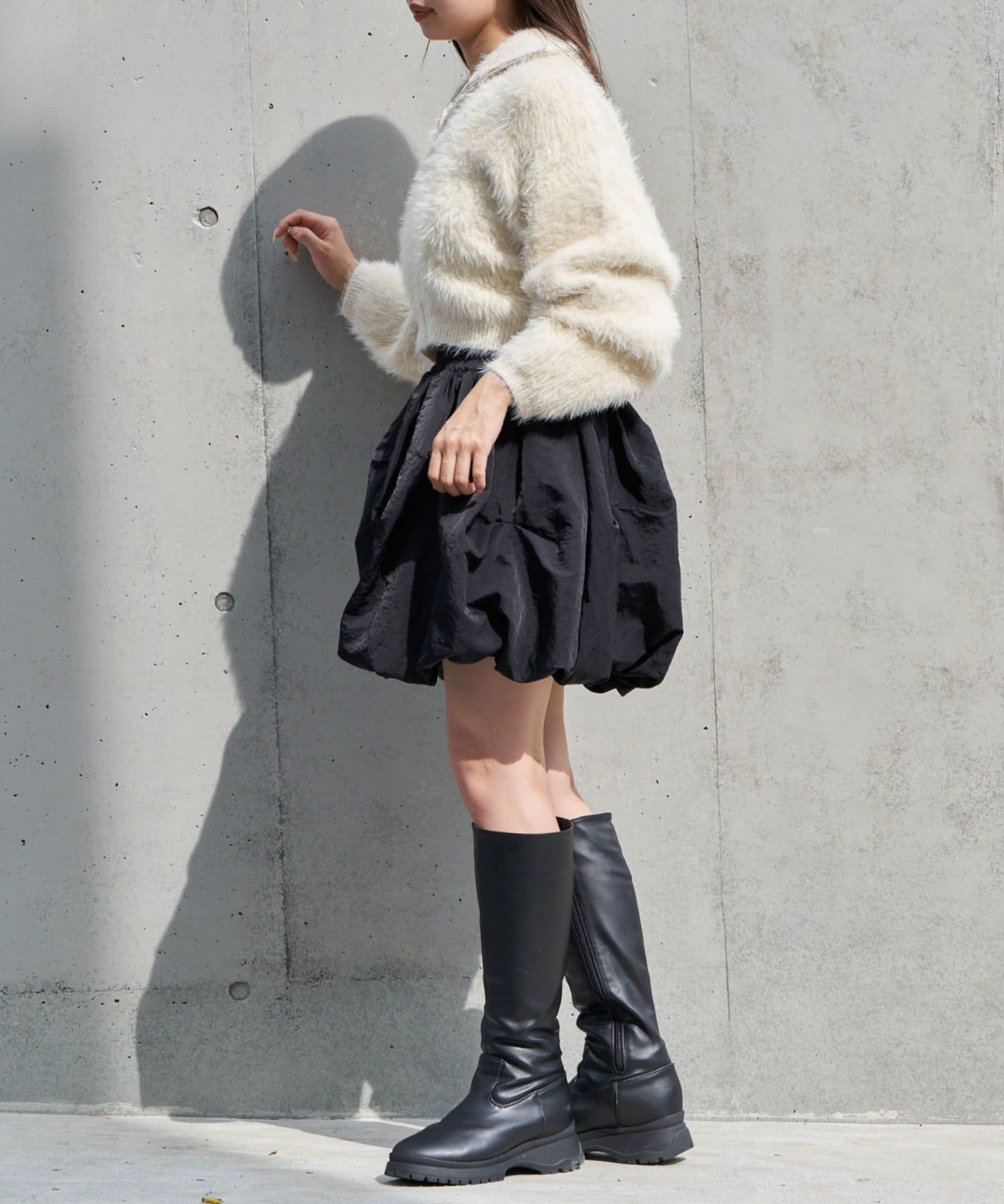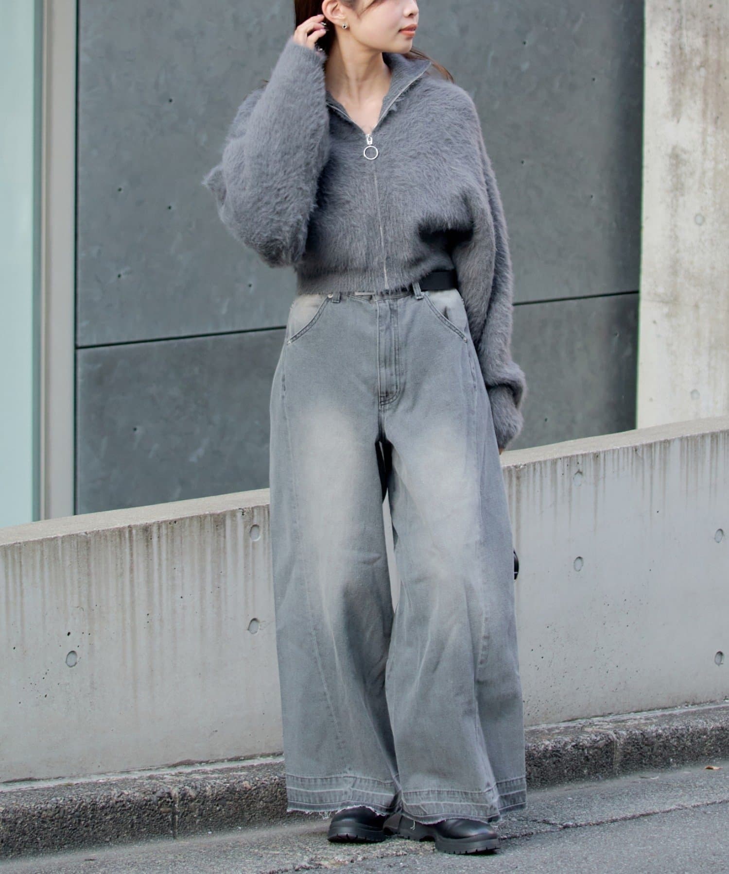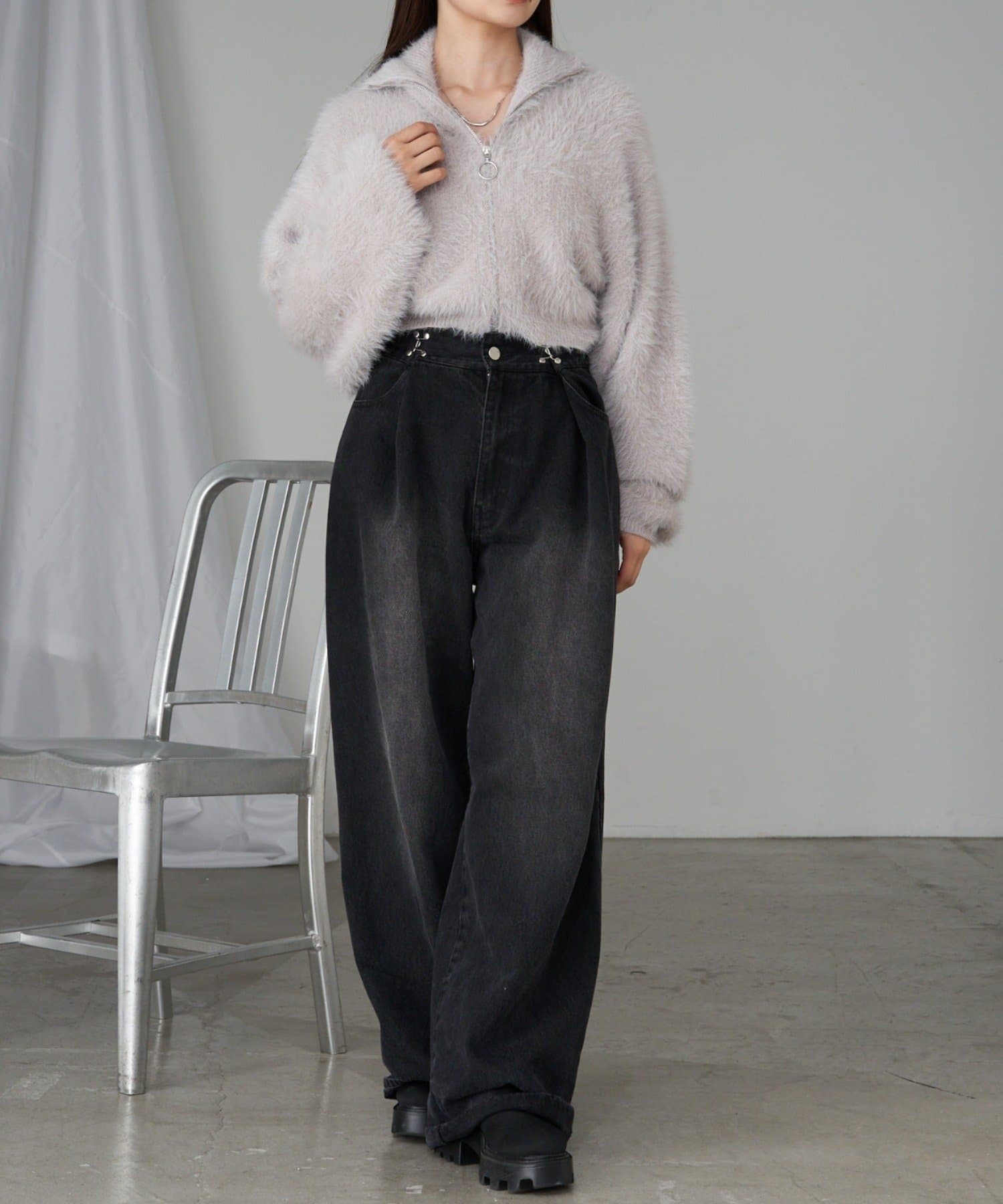 ・ジップデザインがカジュアル感を残しつつもシャギー素材が甘さをプラス
