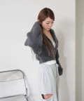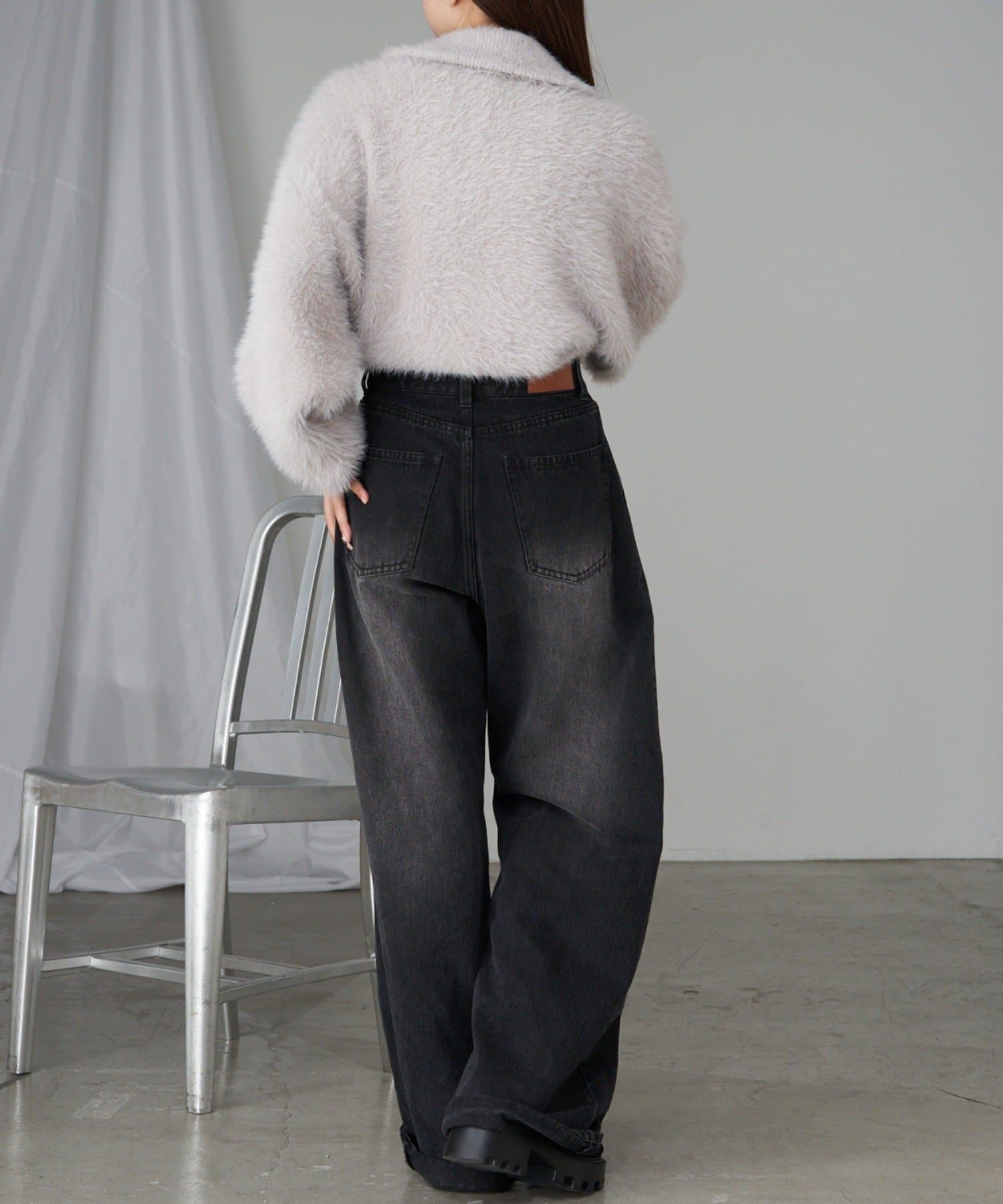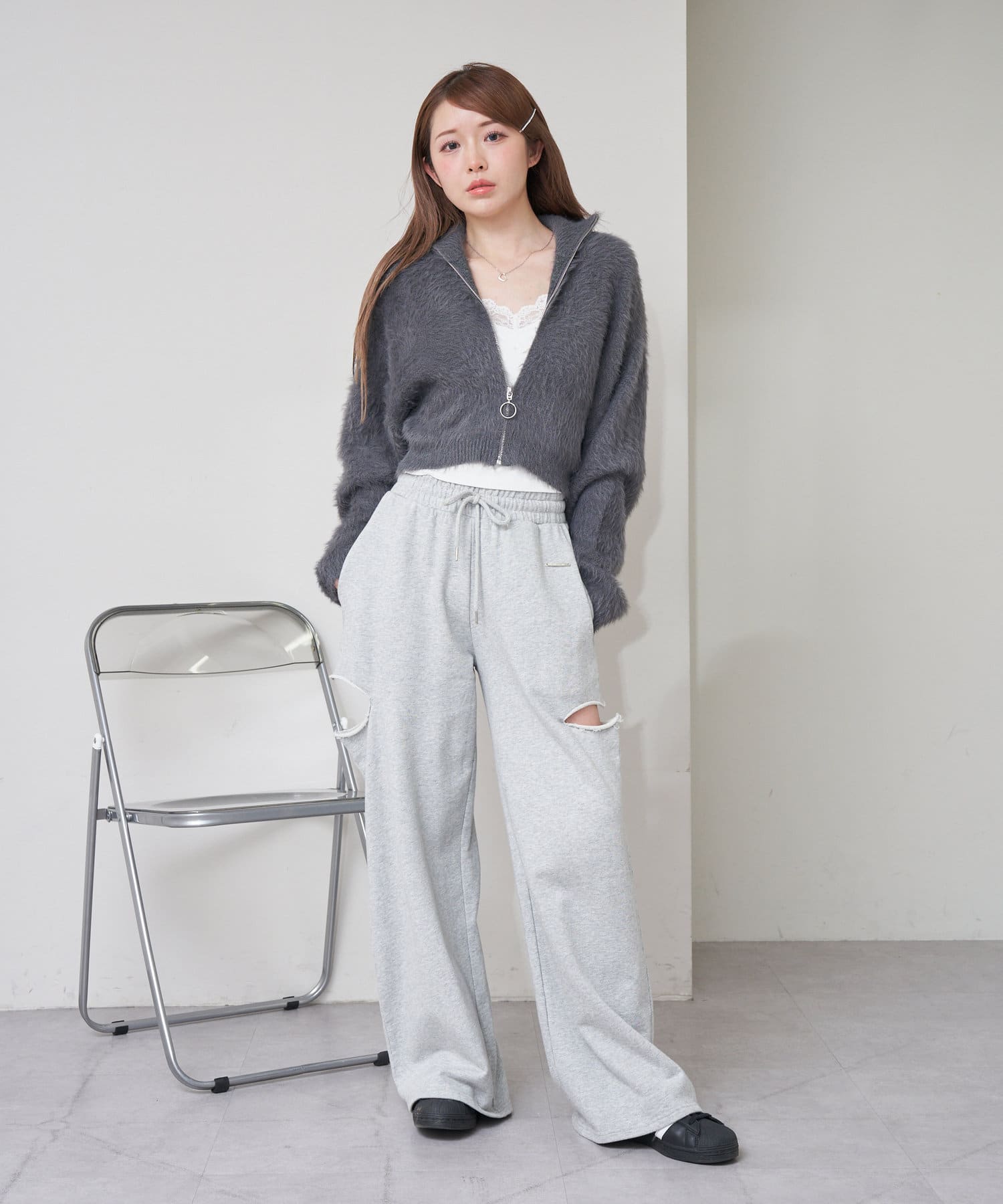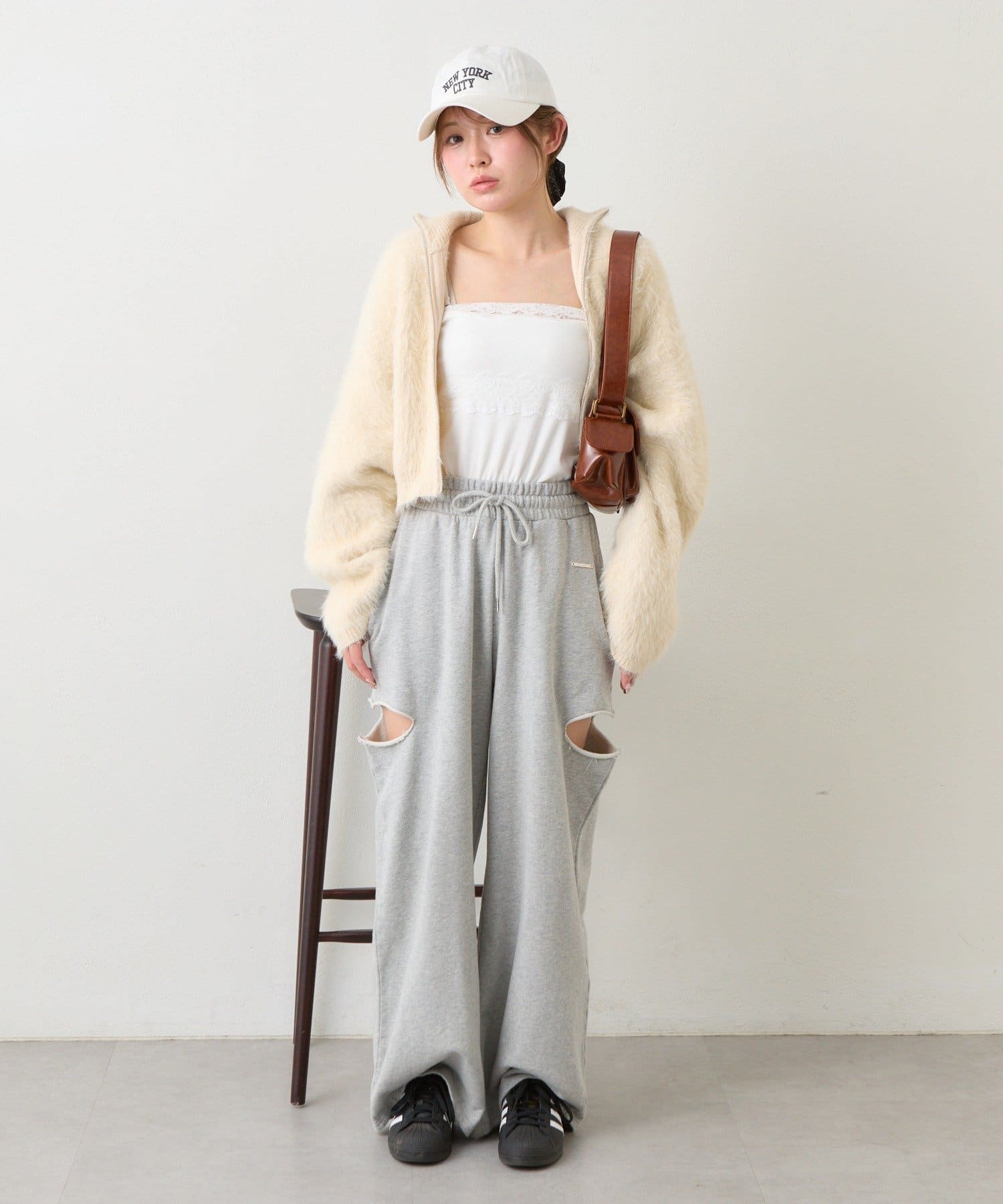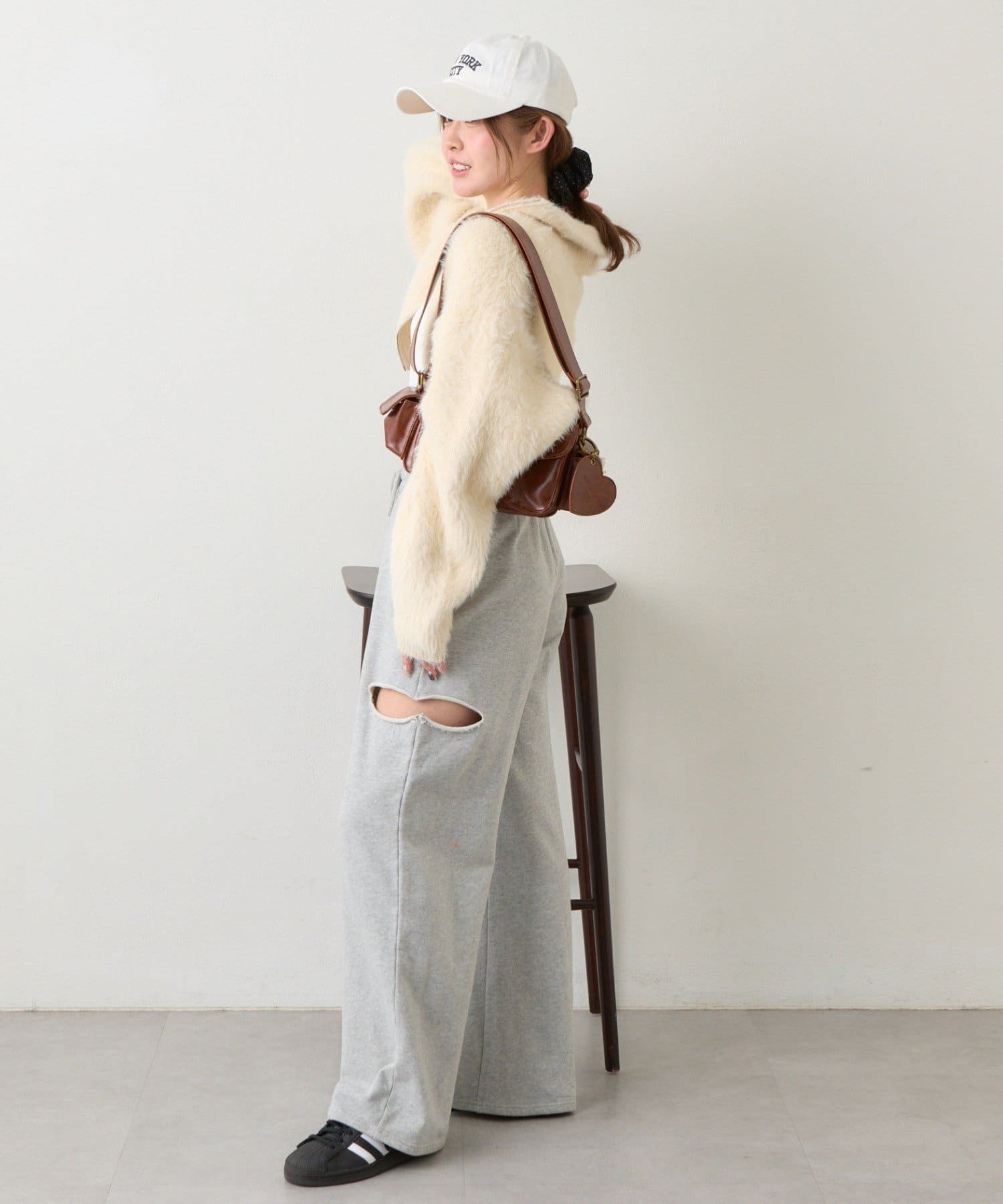 ・ジップデザインがカジュアル感を残しつつもシャギー素材が甘さをプラス