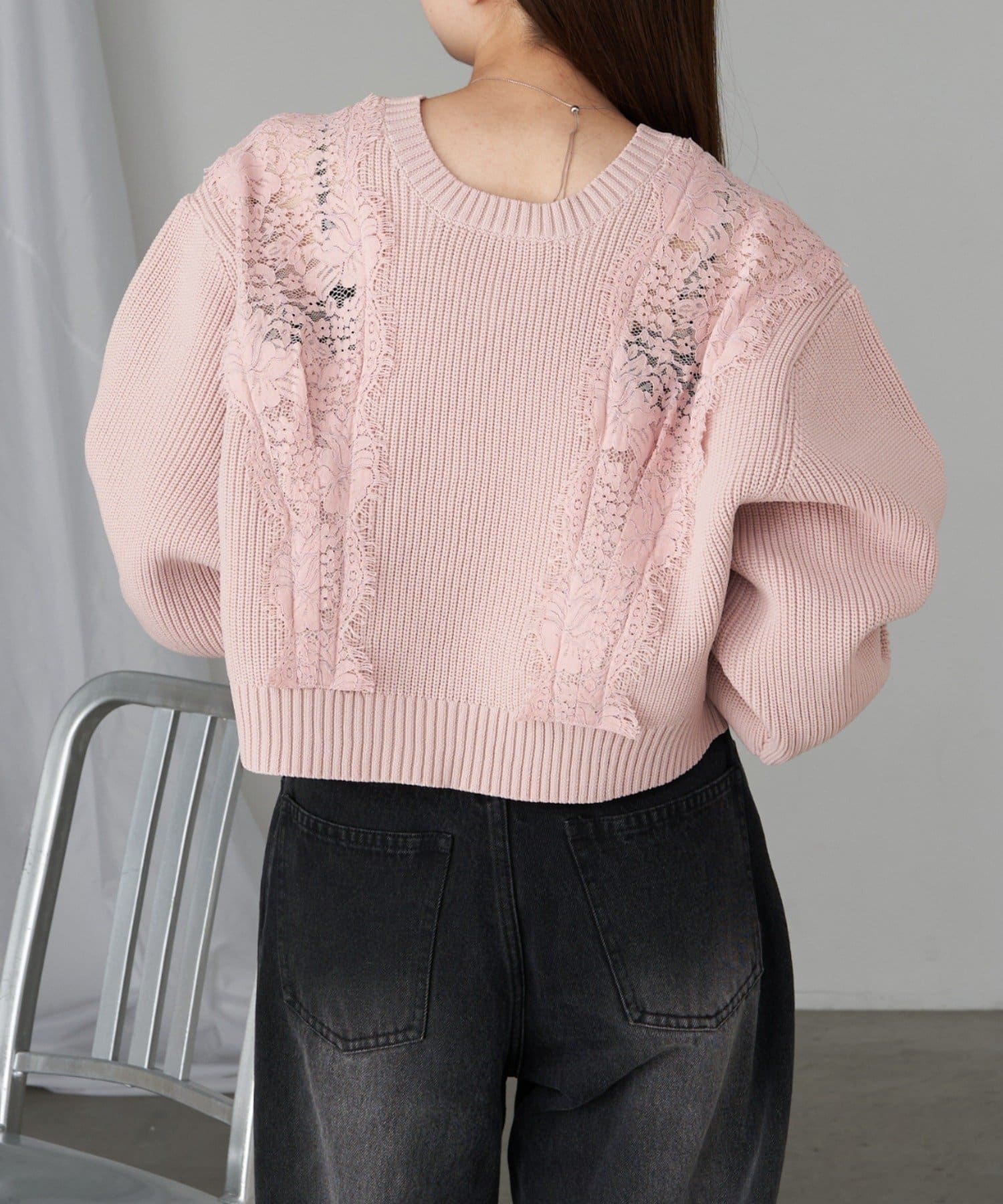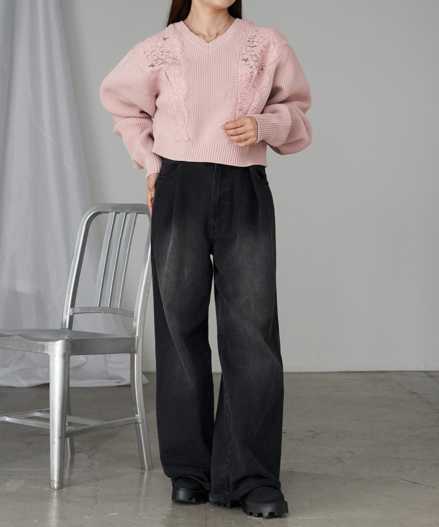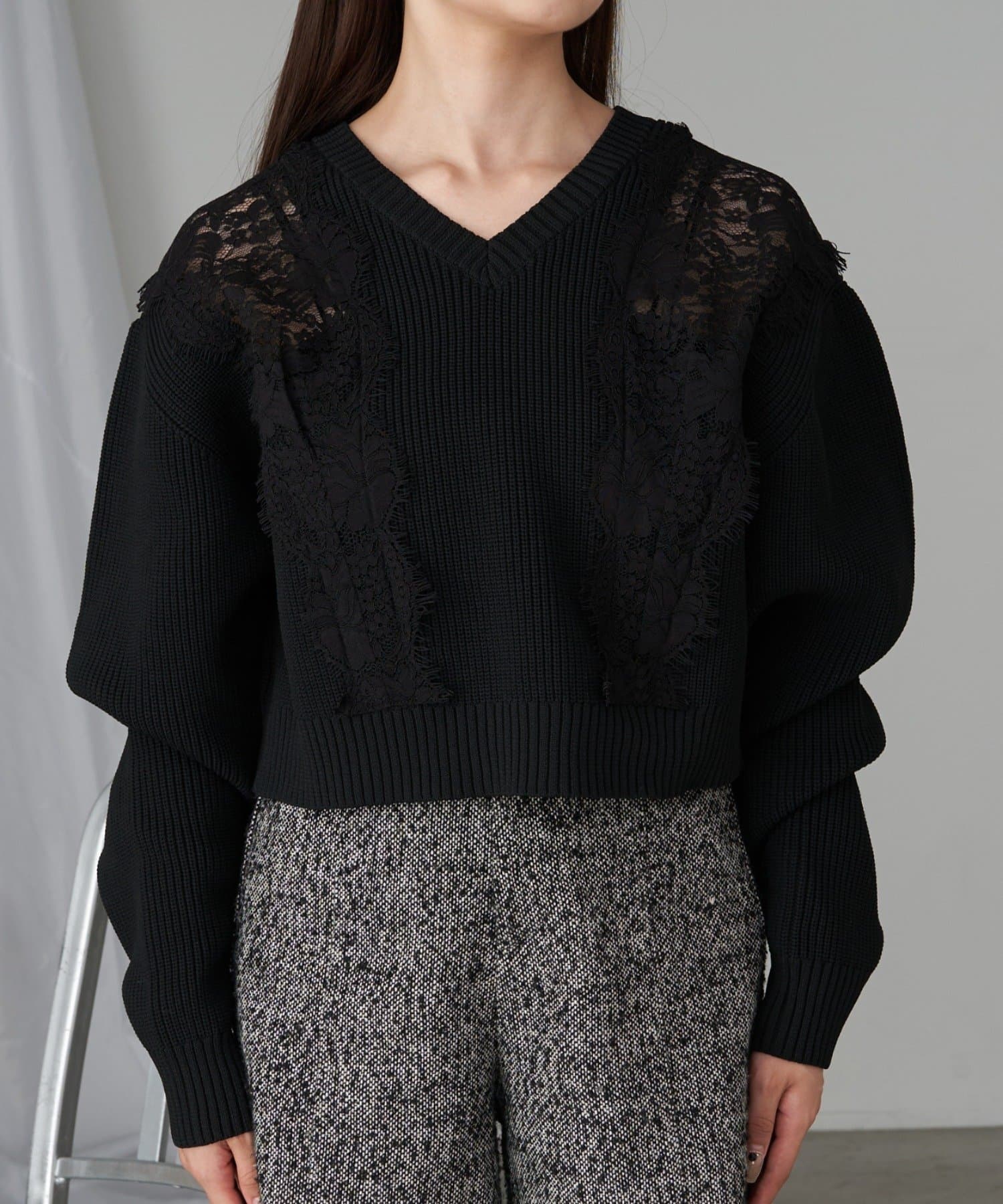 【RAY CASSIN】レース切り替えニット