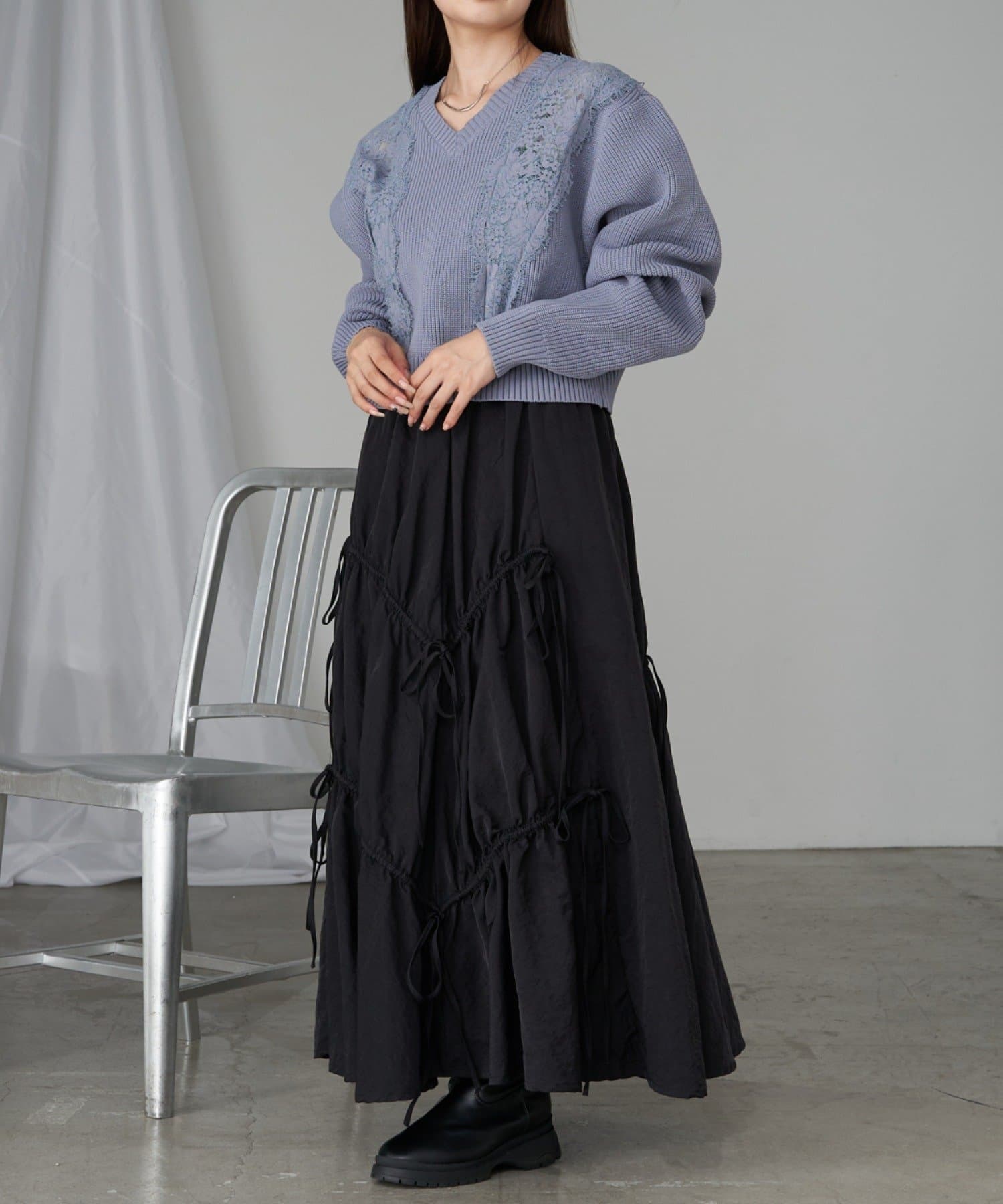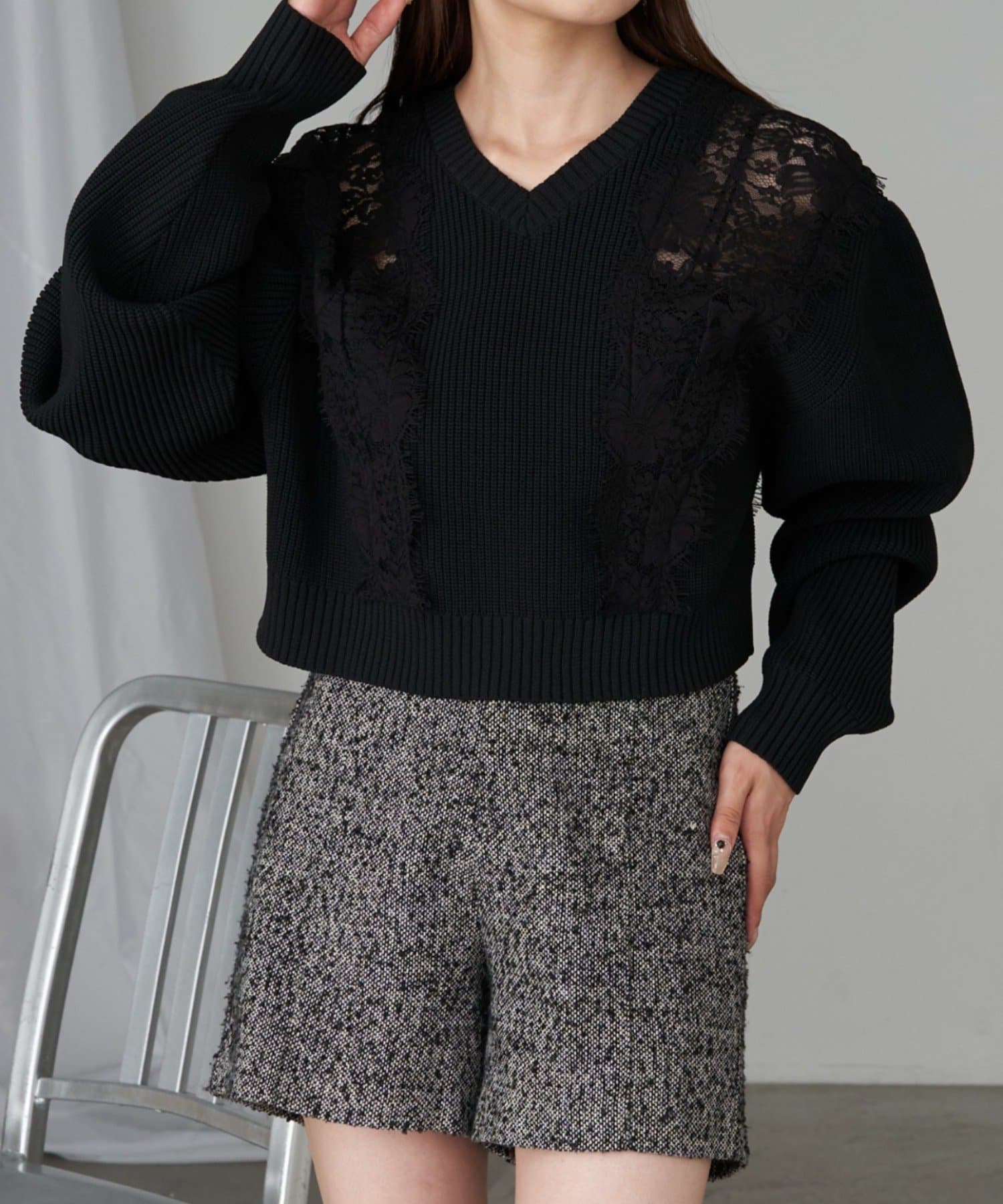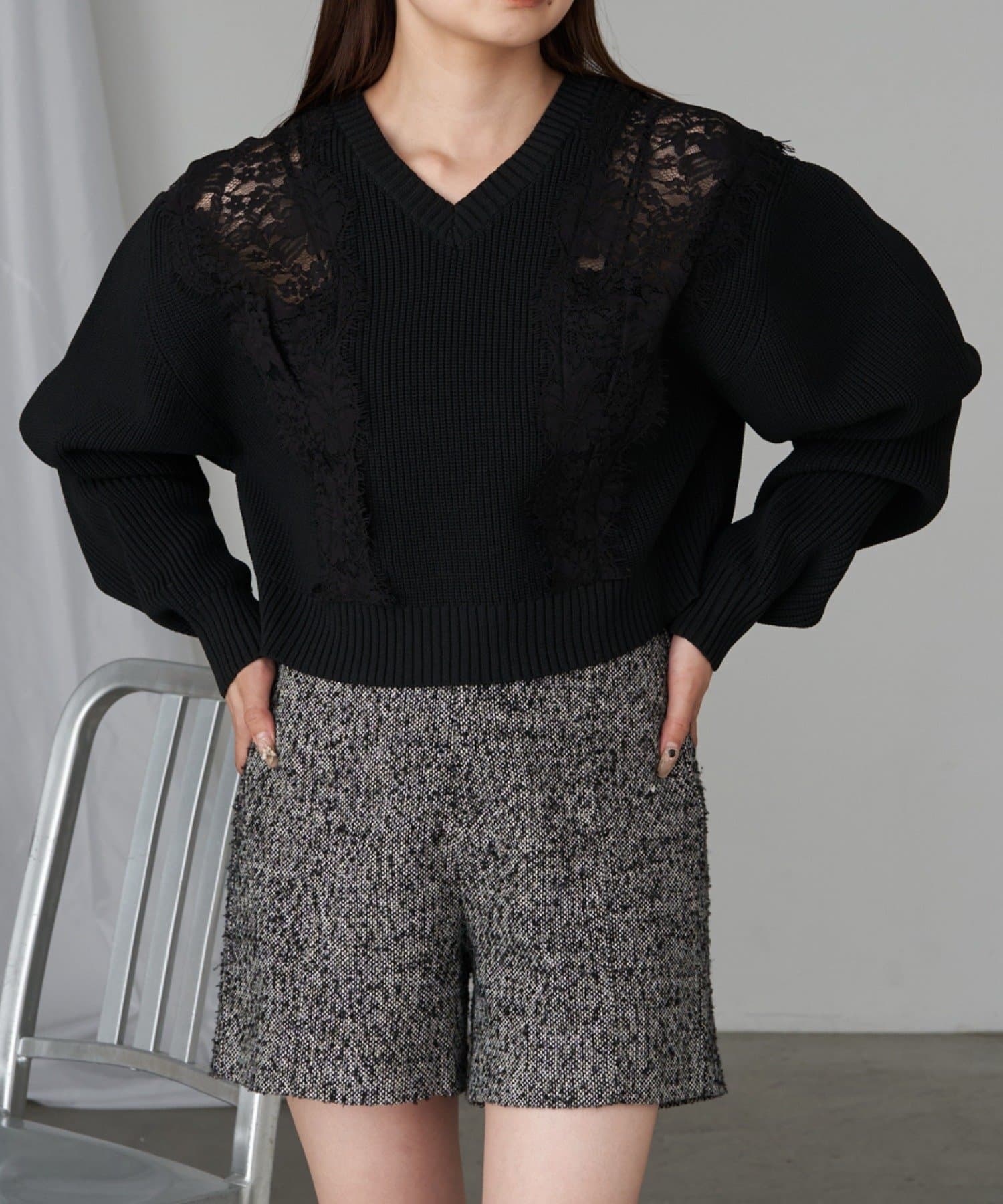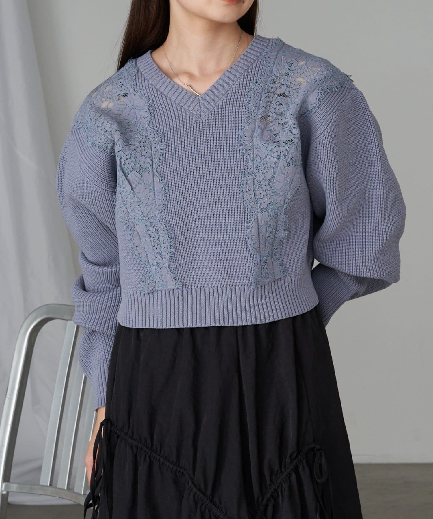 【RAY CASSIN】レース切り替えニット