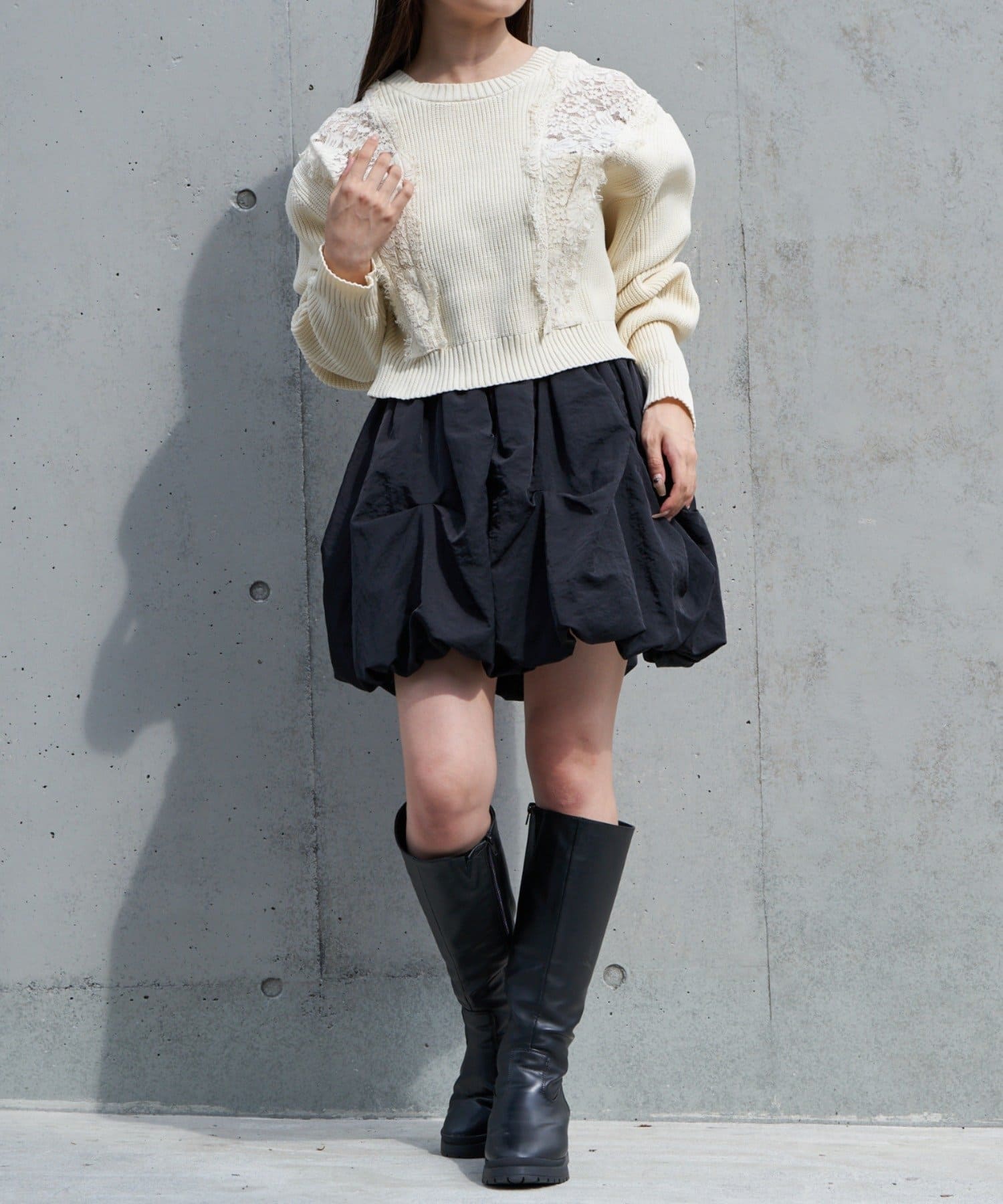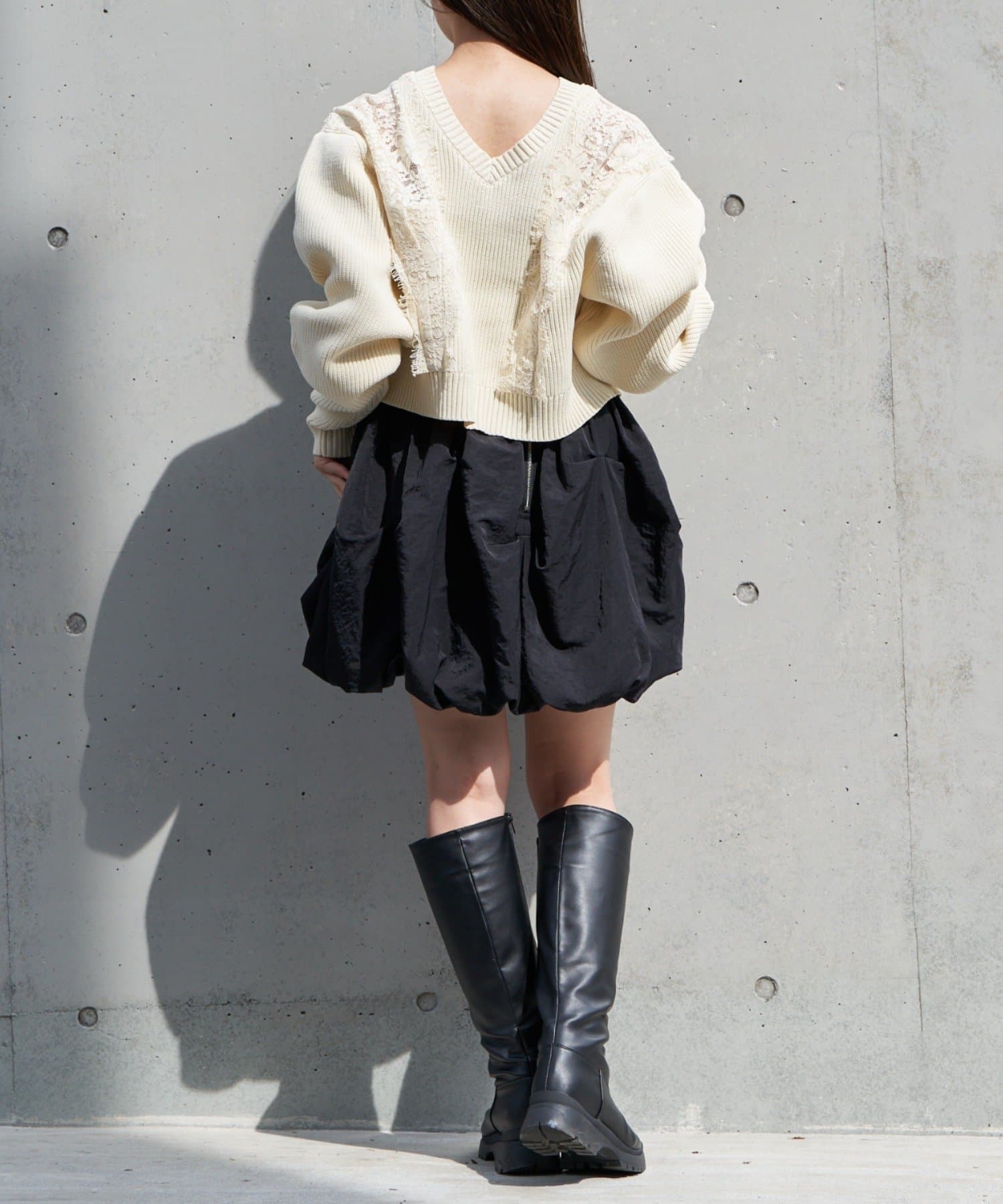 丈感もちょうどよく、クロップド丈すぎない短丈トップスなので、どんなボトムスにも合わせやすい○
