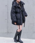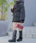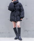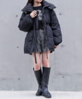 ミニ丈ボトムスにロングブーツ合わせでモードに。