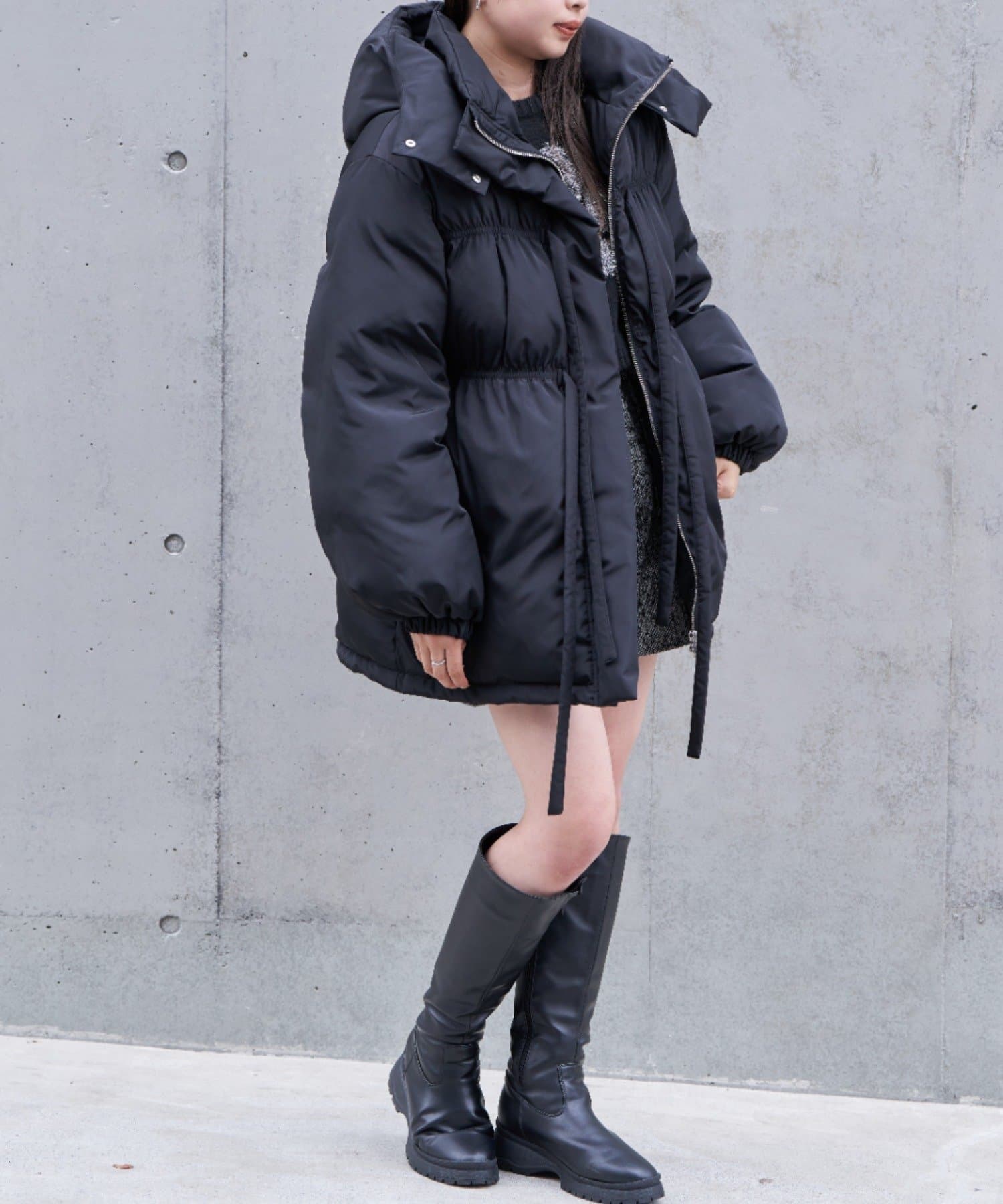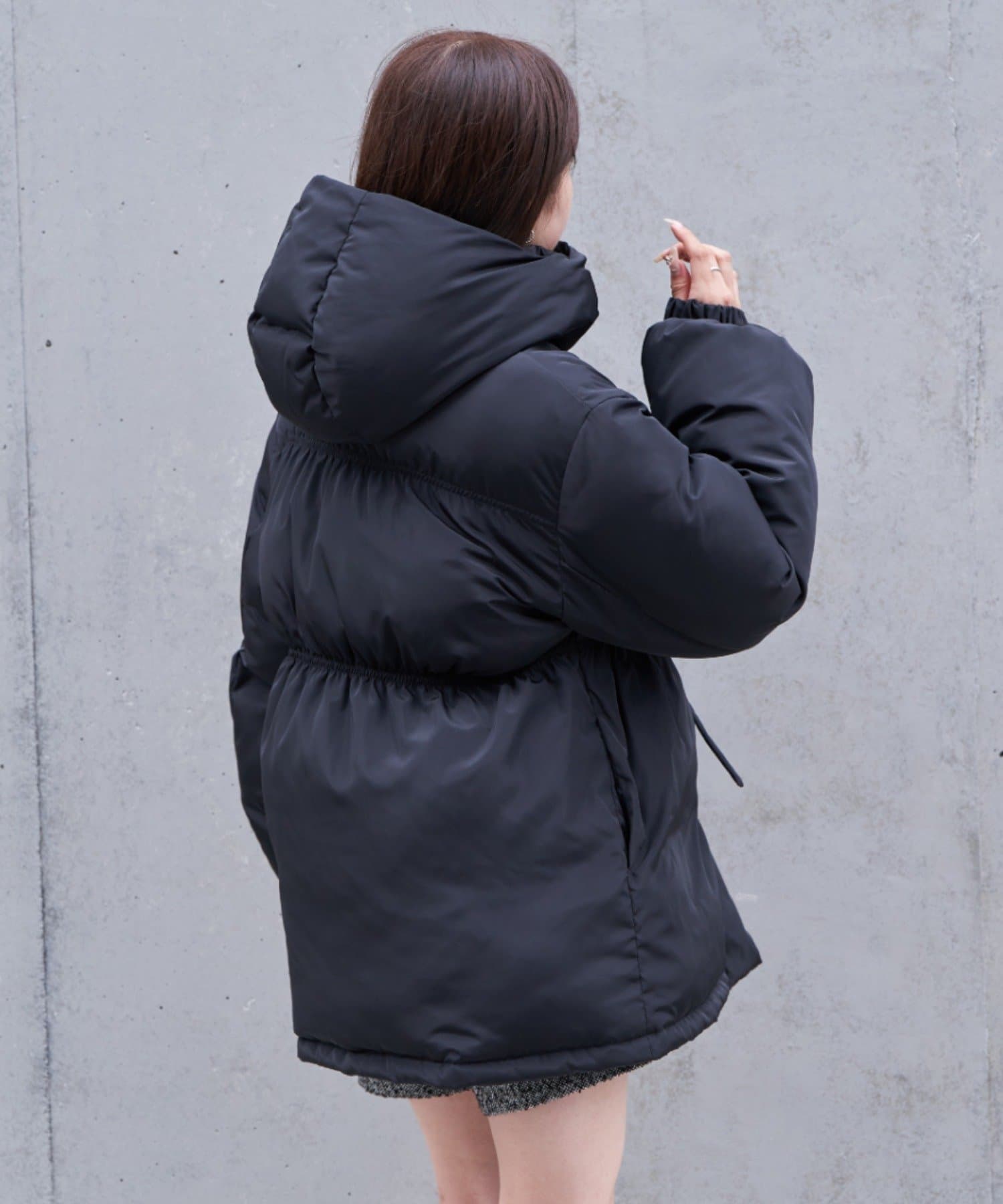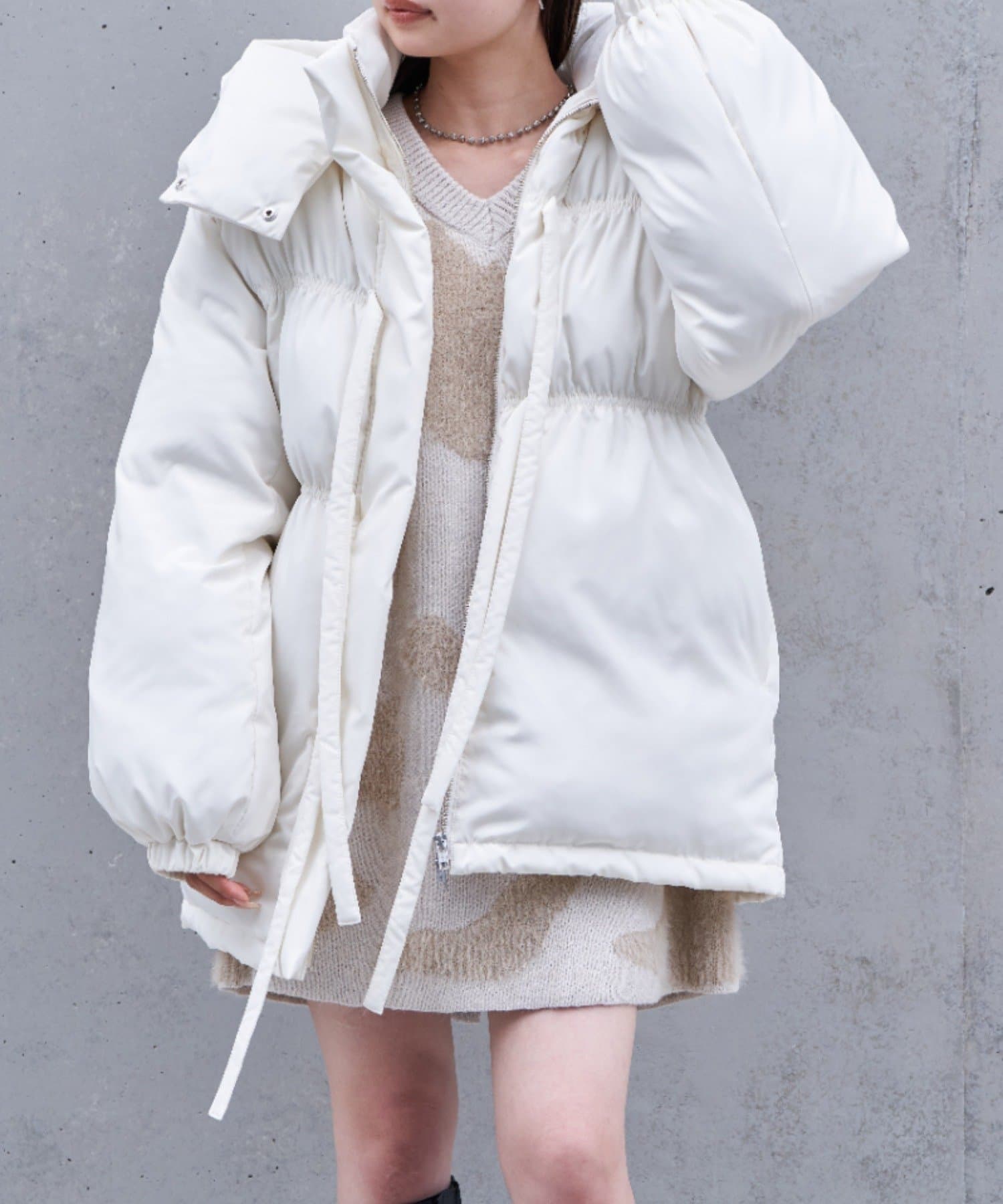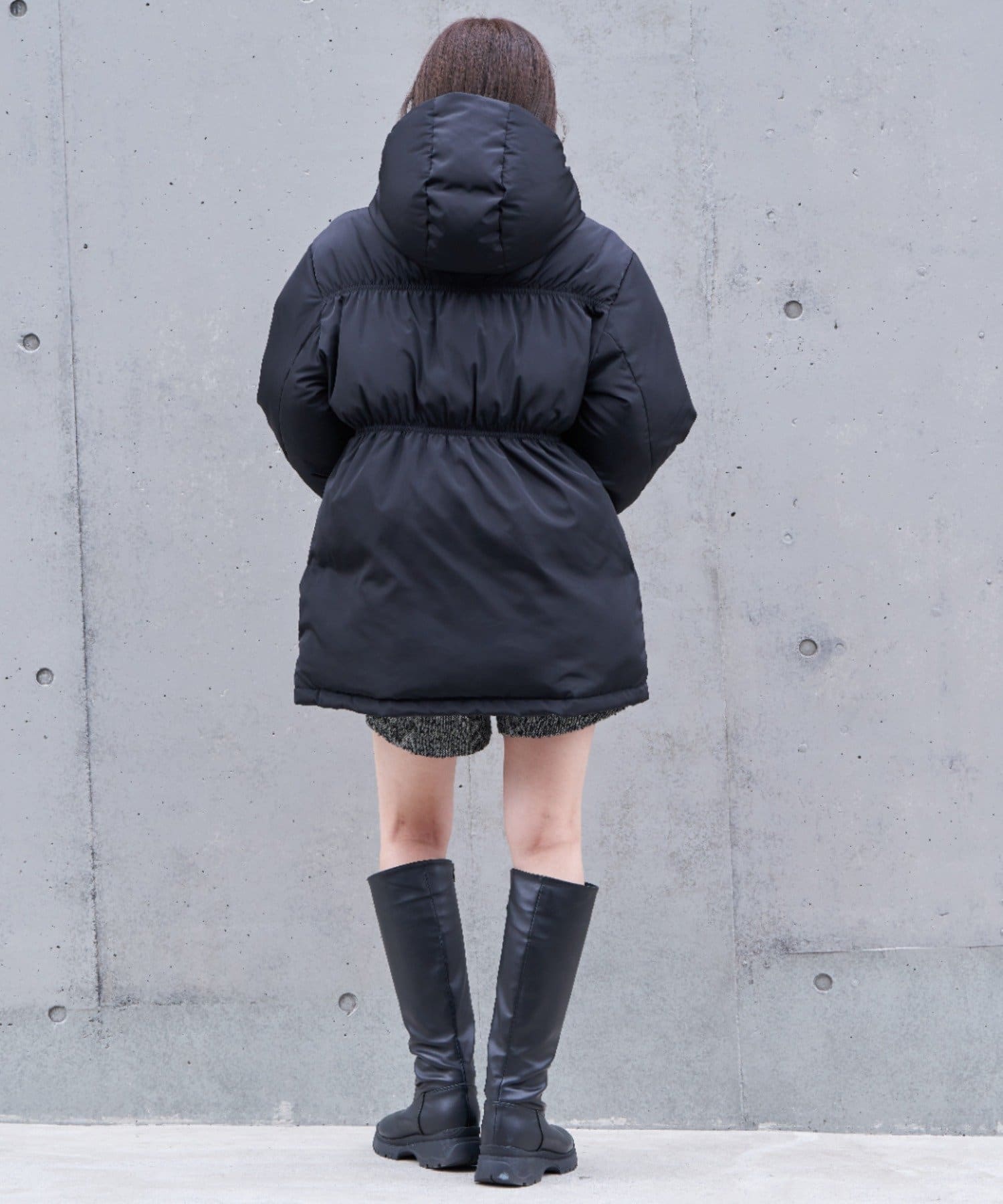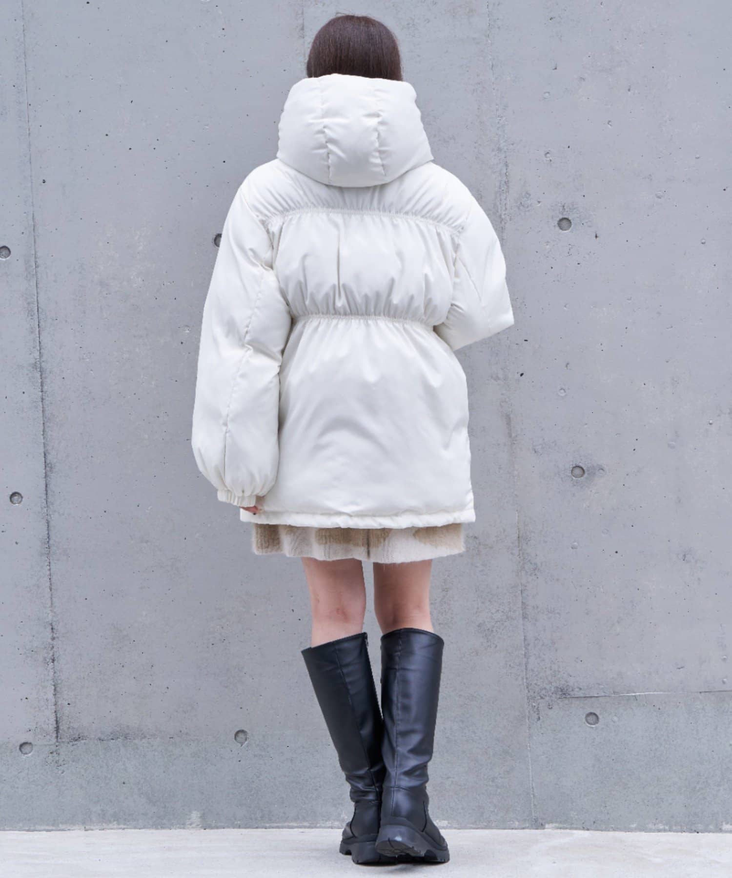 胸元の位置とウエストの高い位置にギャザーが入っていて、ダウンだけど着膨れせず着用○