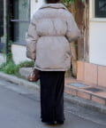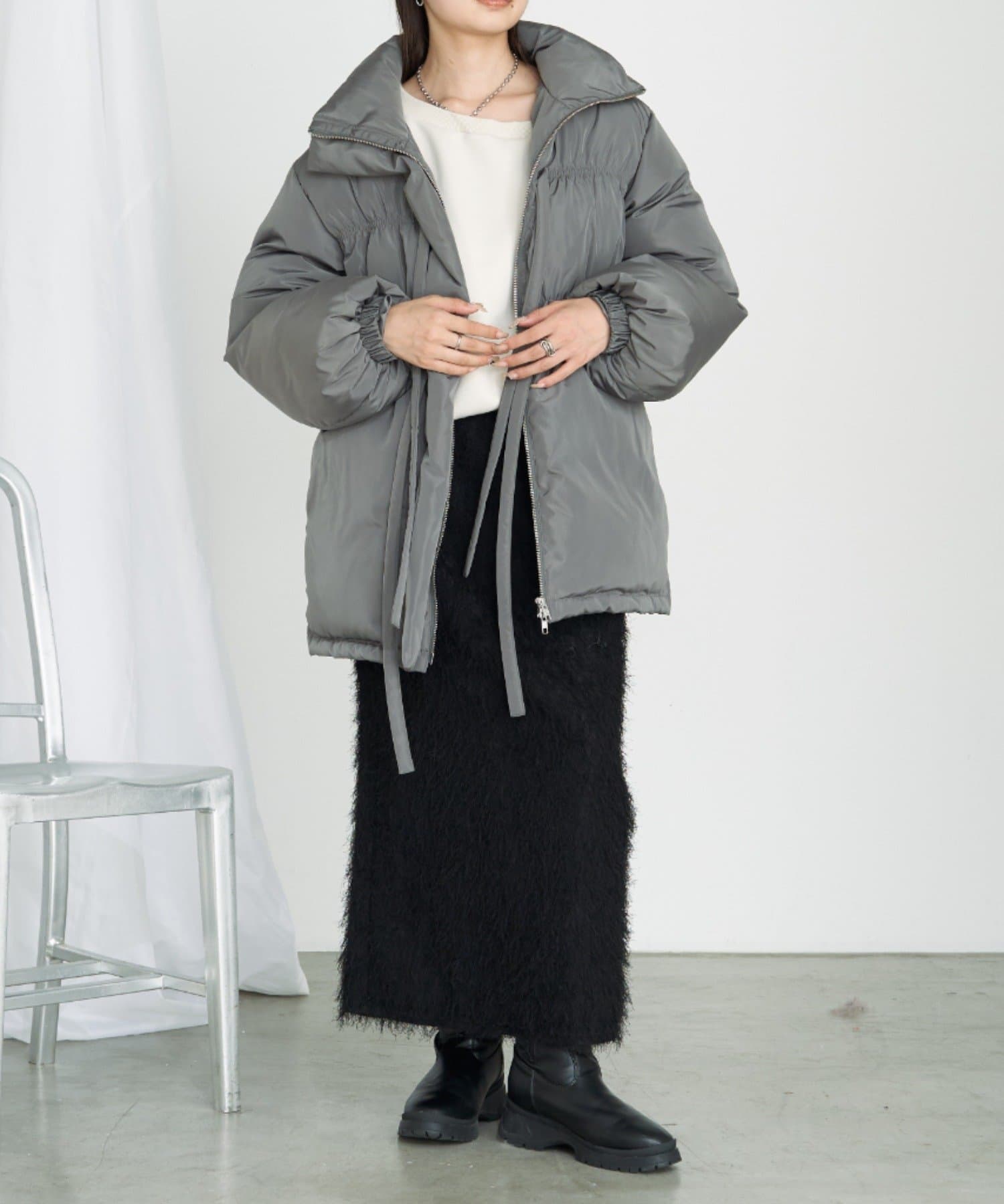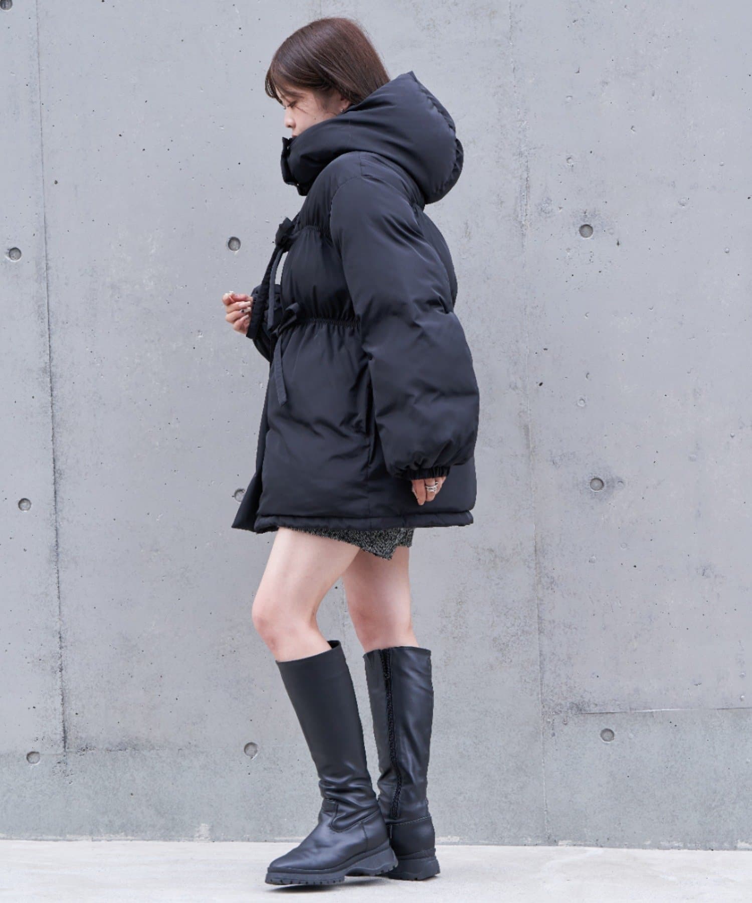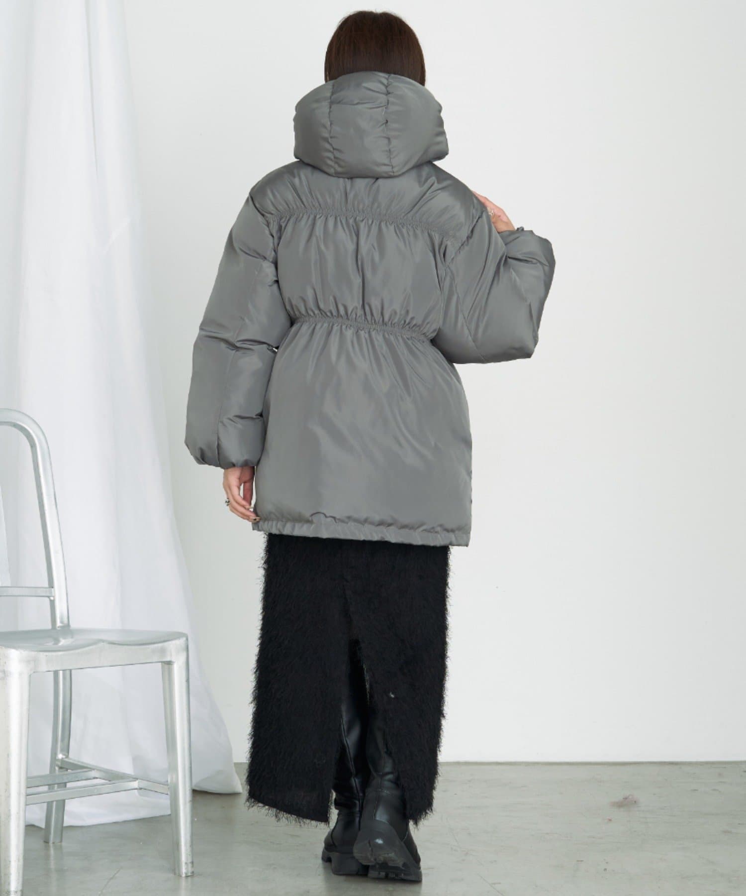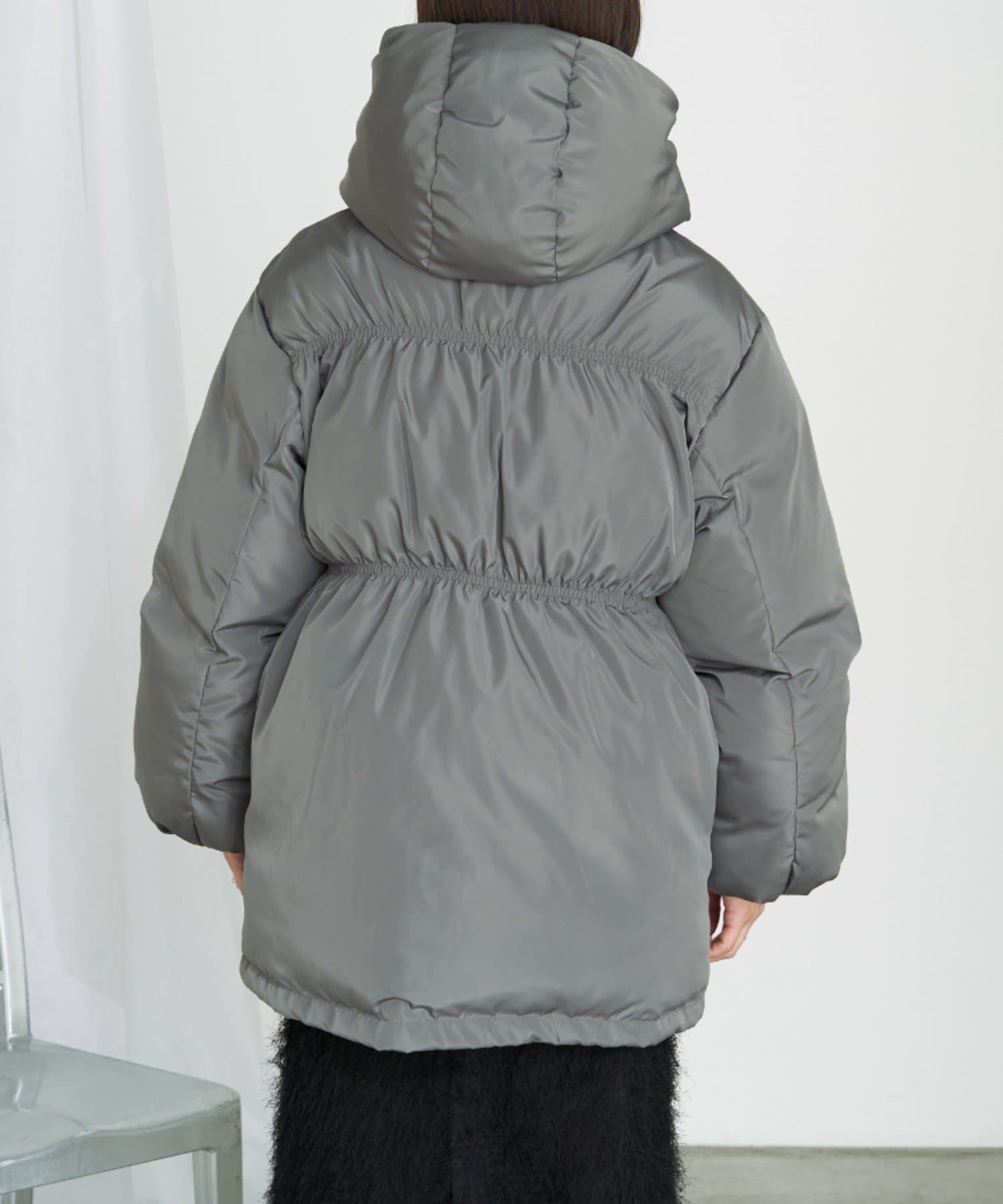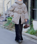 胸元の位置とウエストの高い位置にギャザーが入っていて、ダウンだけど着膨れせず着用○