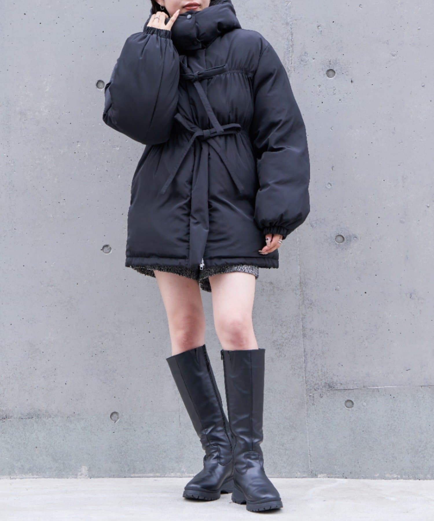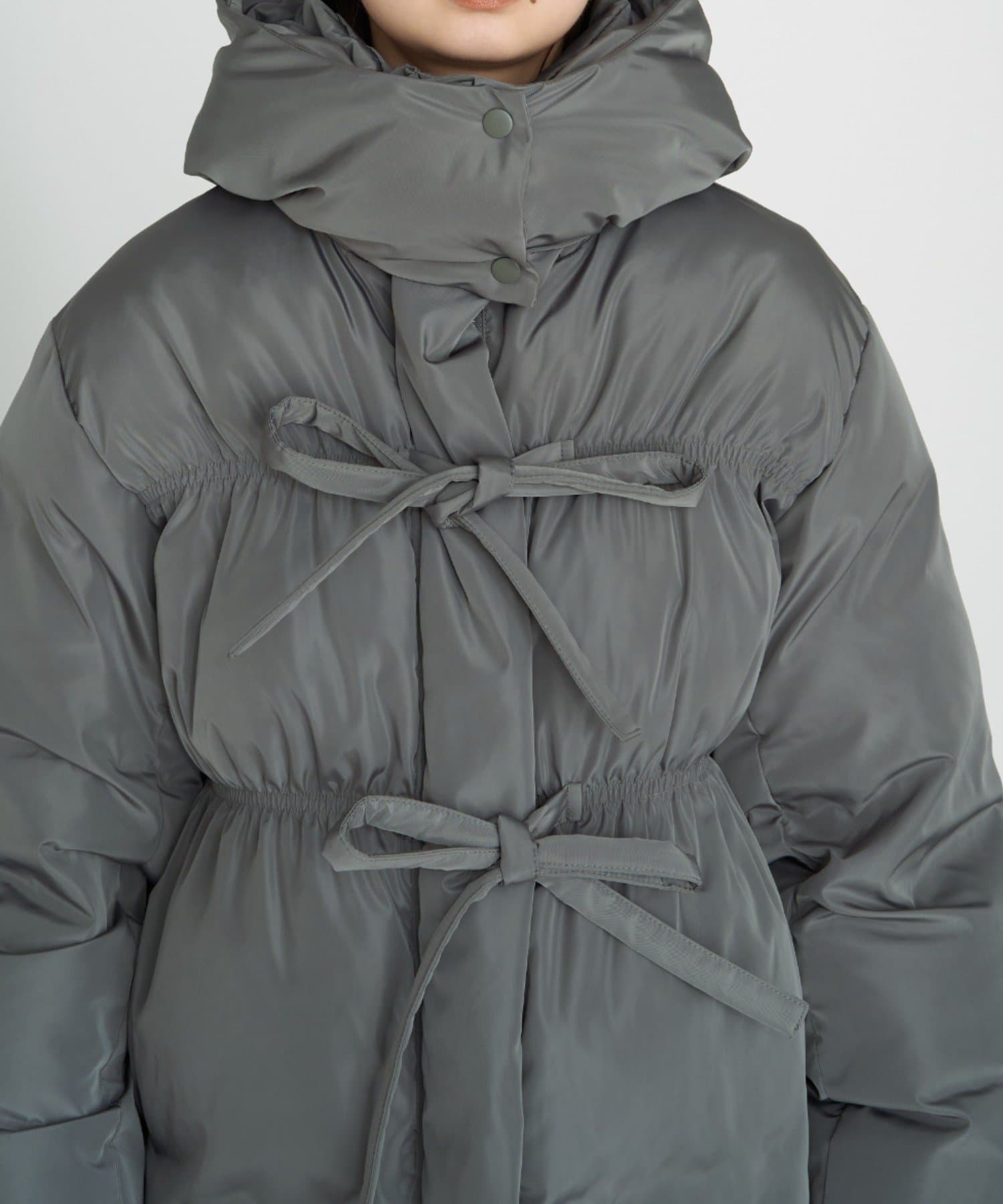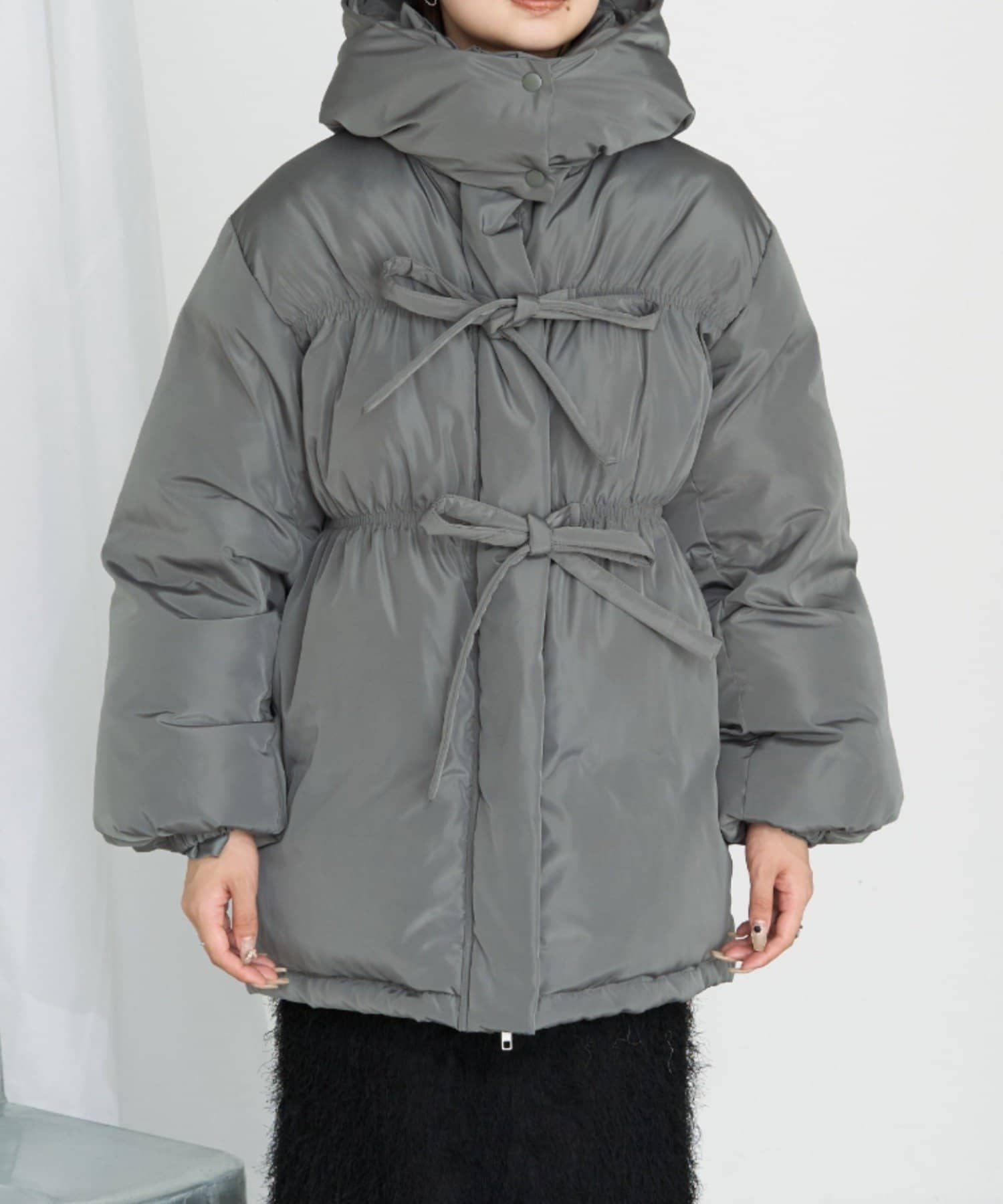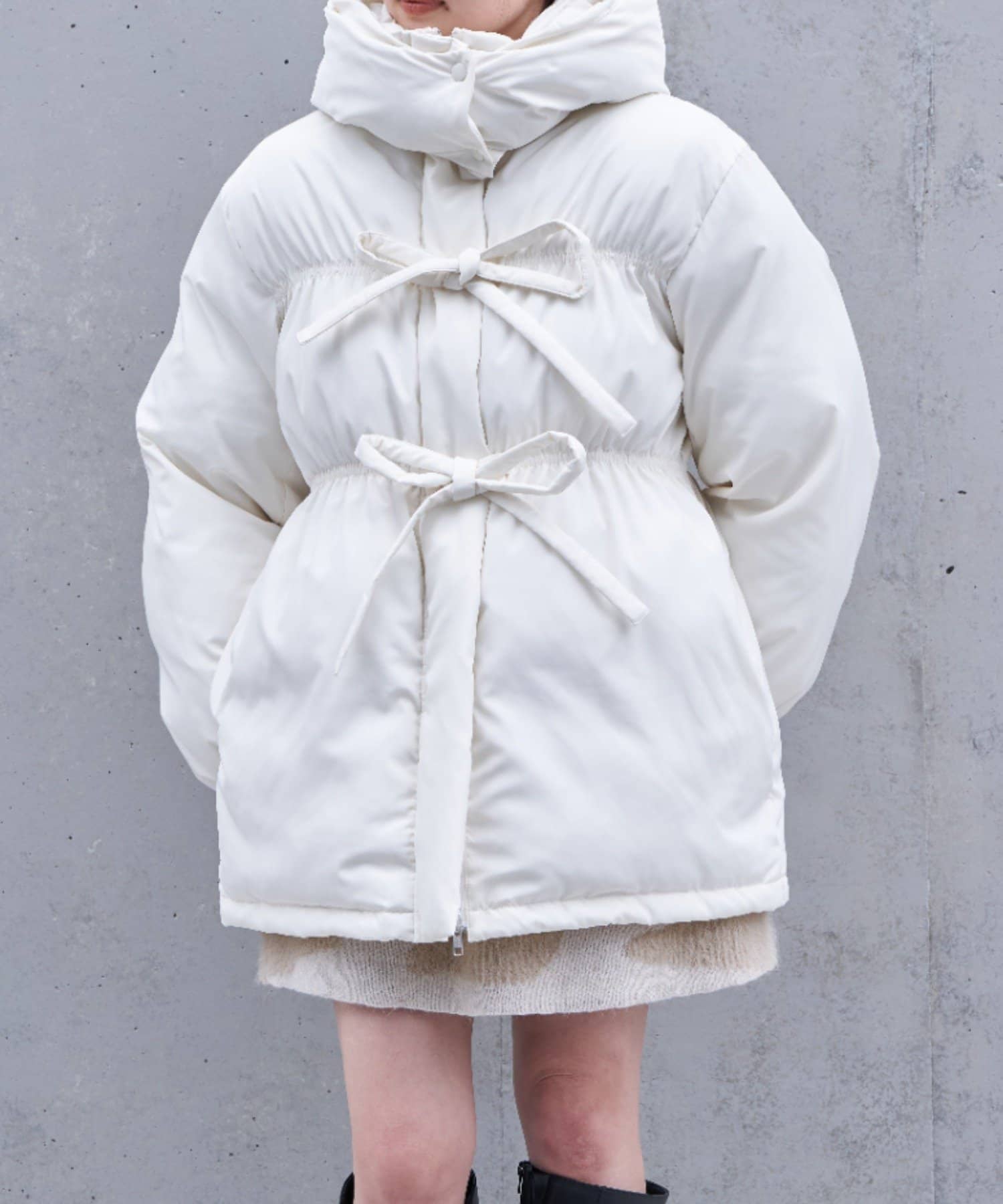 【フード取り外し可】リボン中綿ダウンジャケット /ブルゾン
