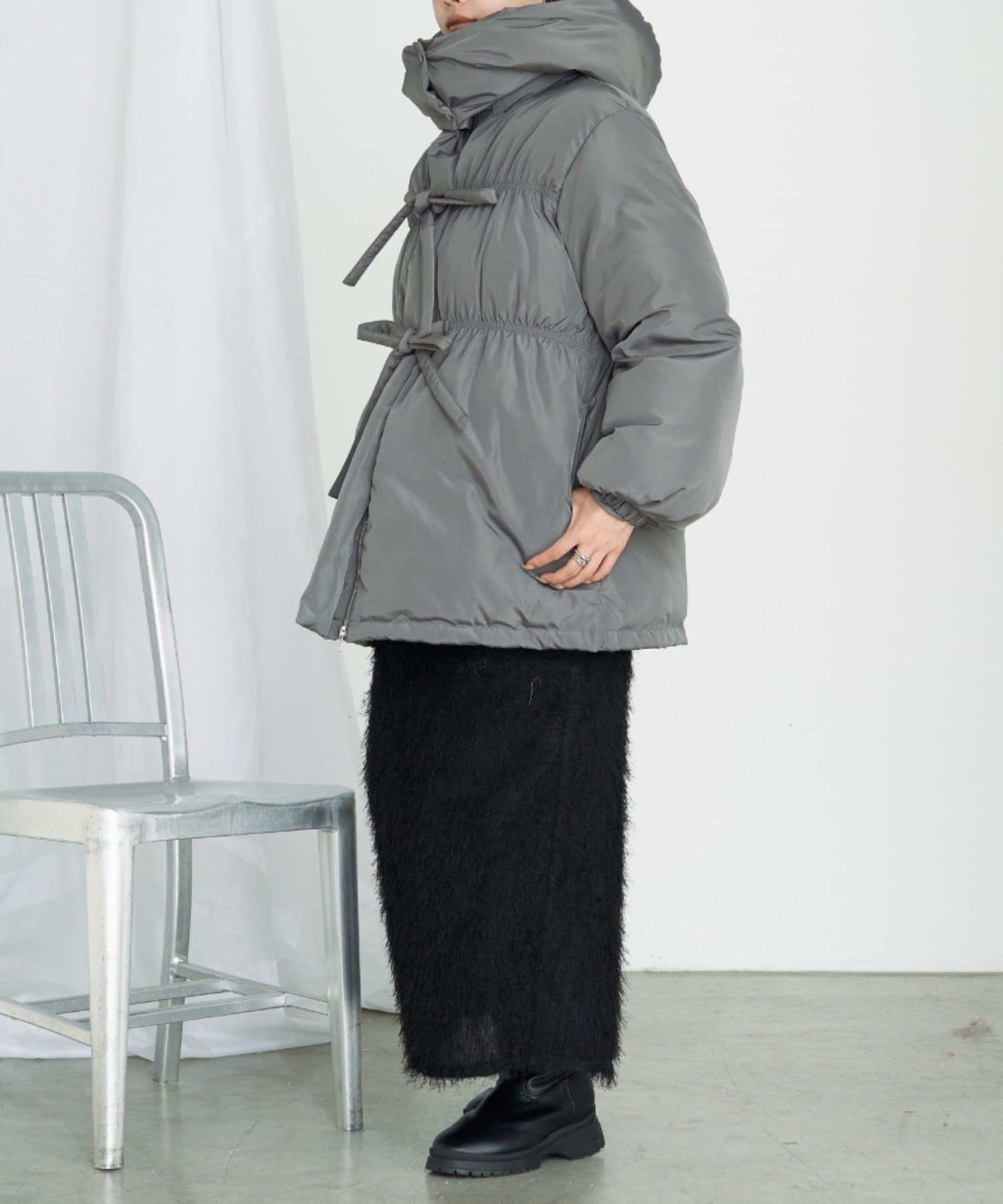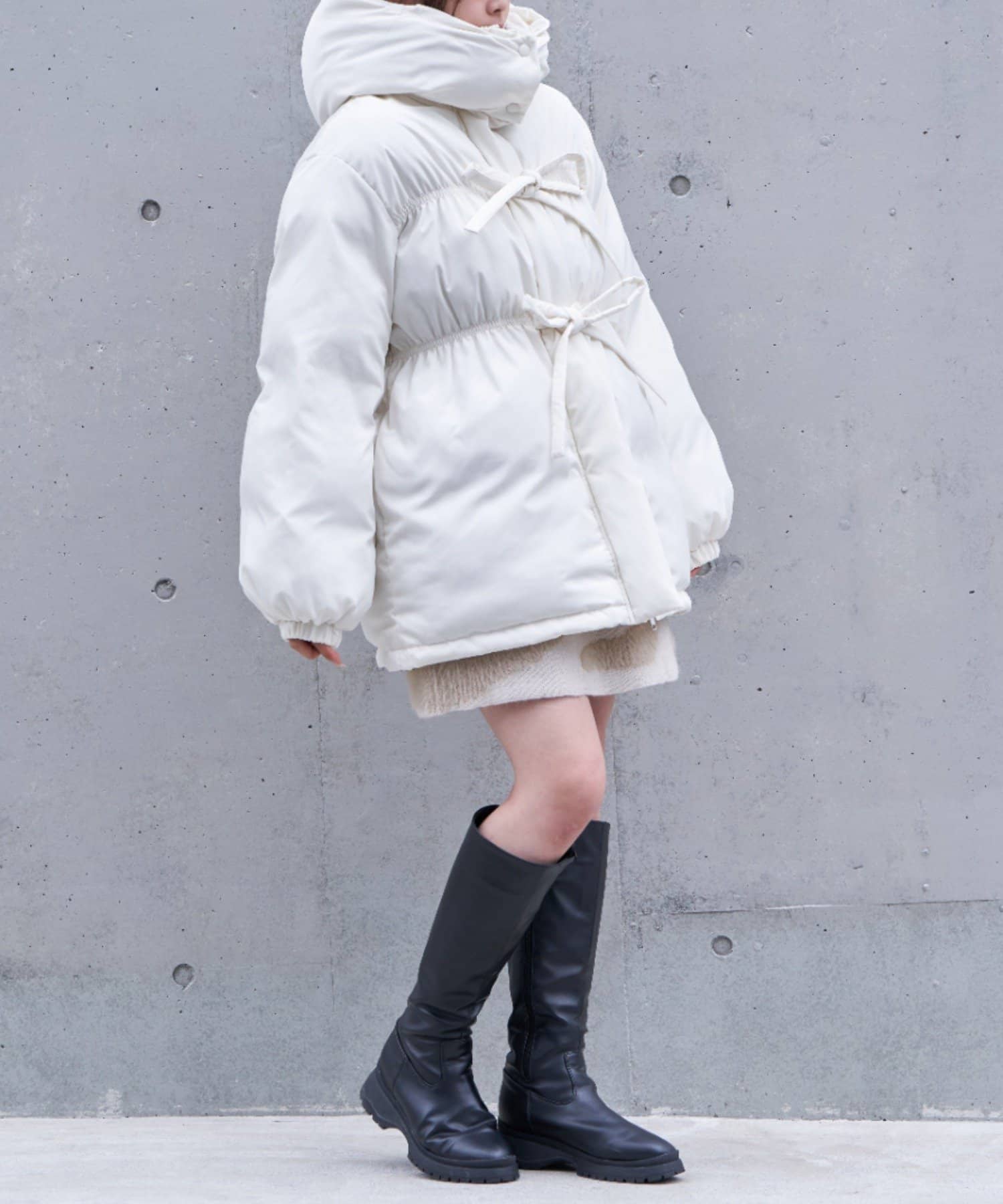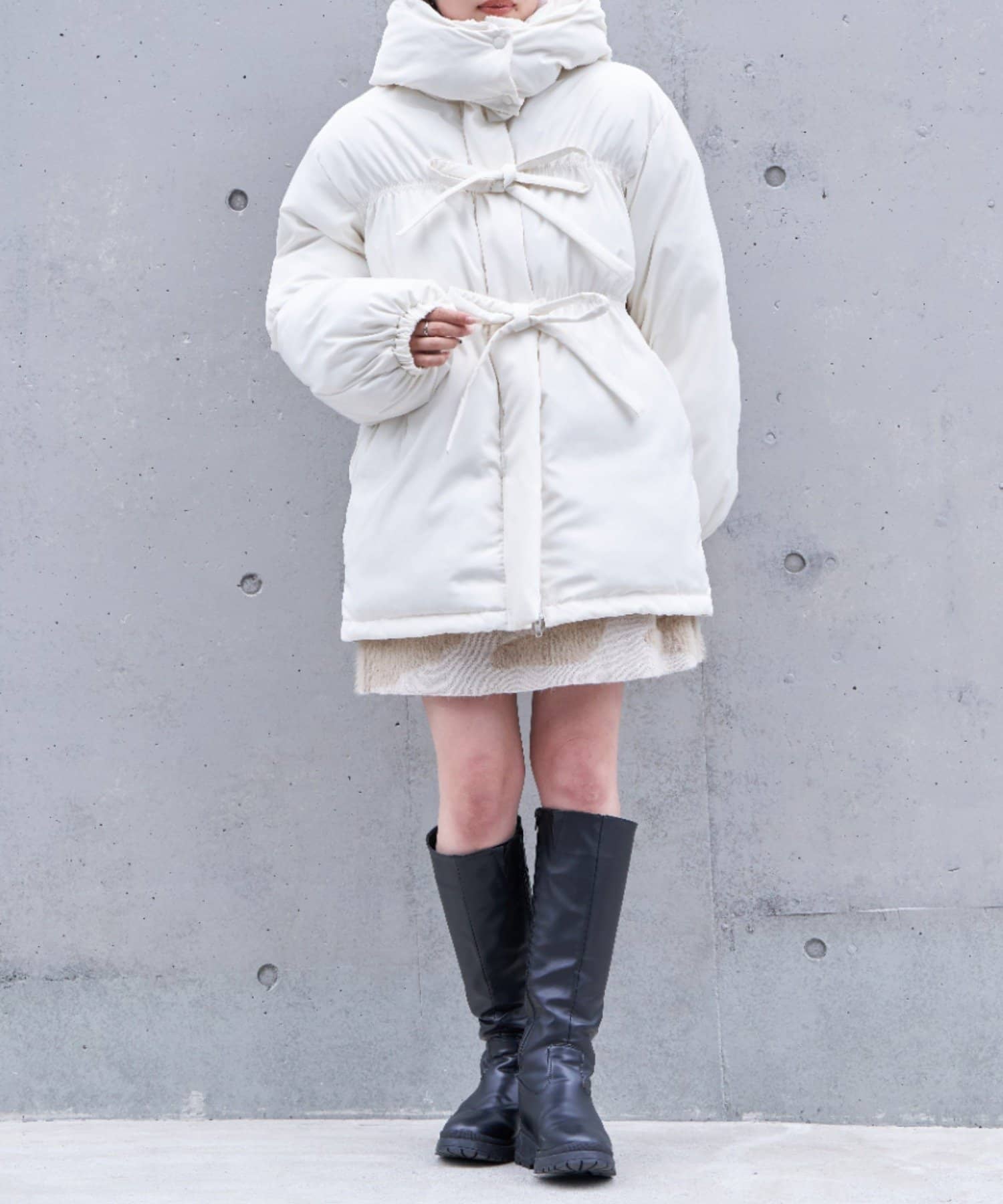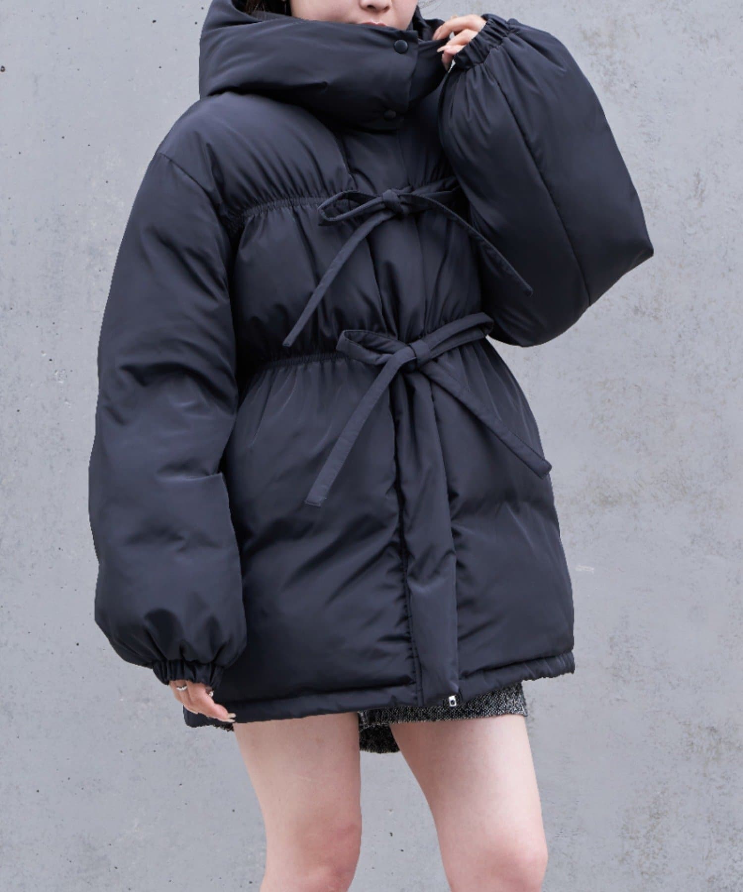 【フード取り外し可】リボン中綿ダウンジャケット /ブルゾン