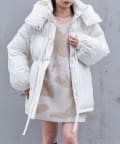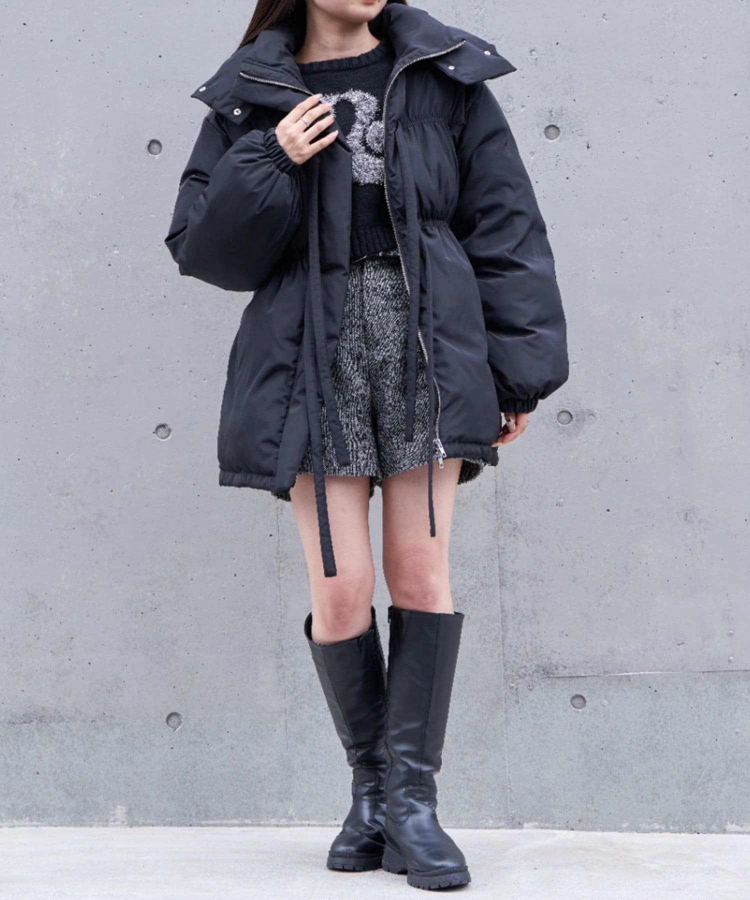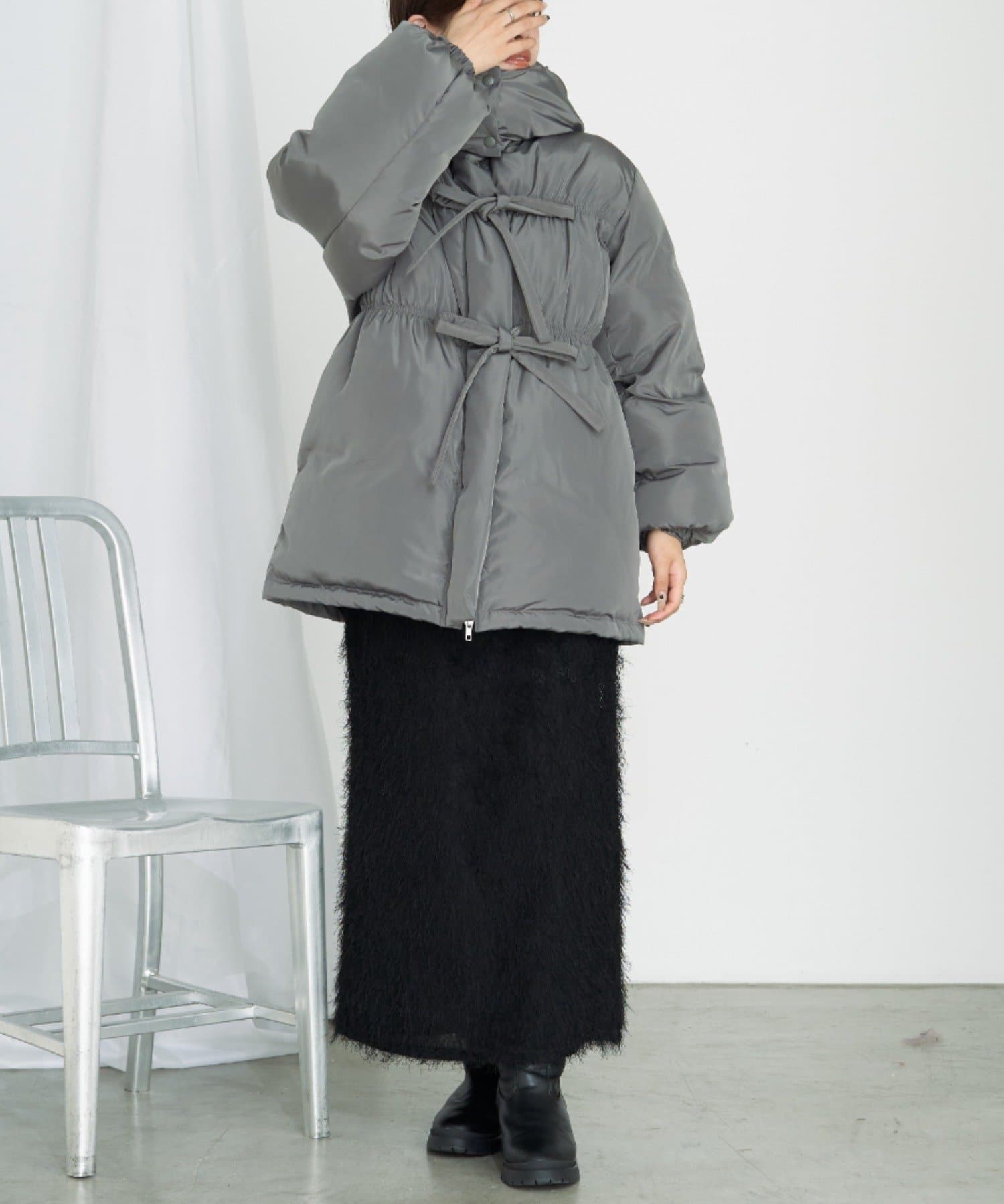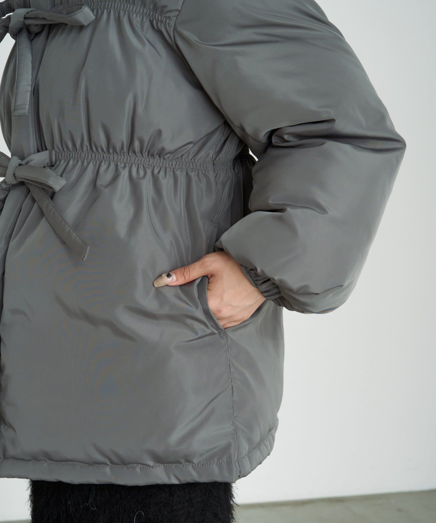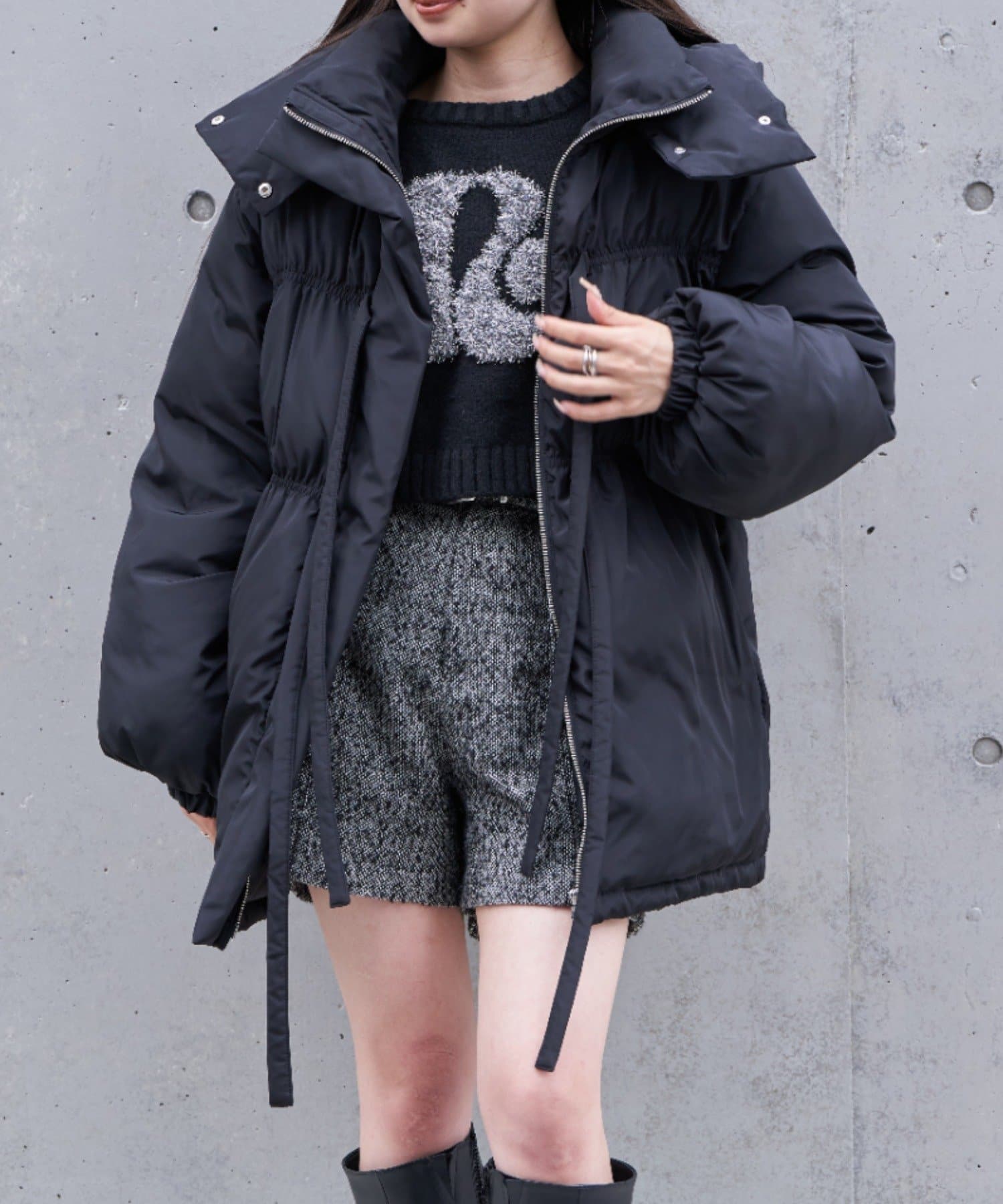 【フード取り外し可】リボン中綿ダウンジャケット /ブルゾン