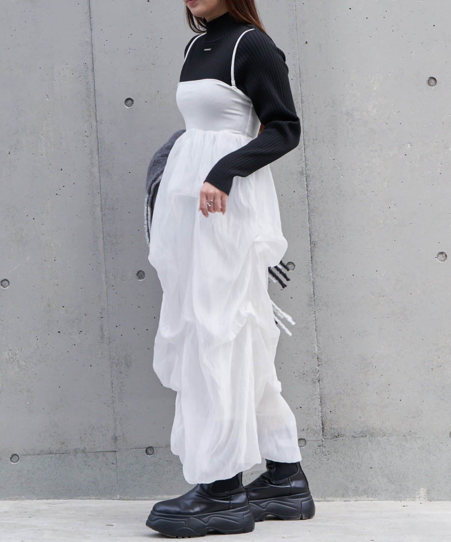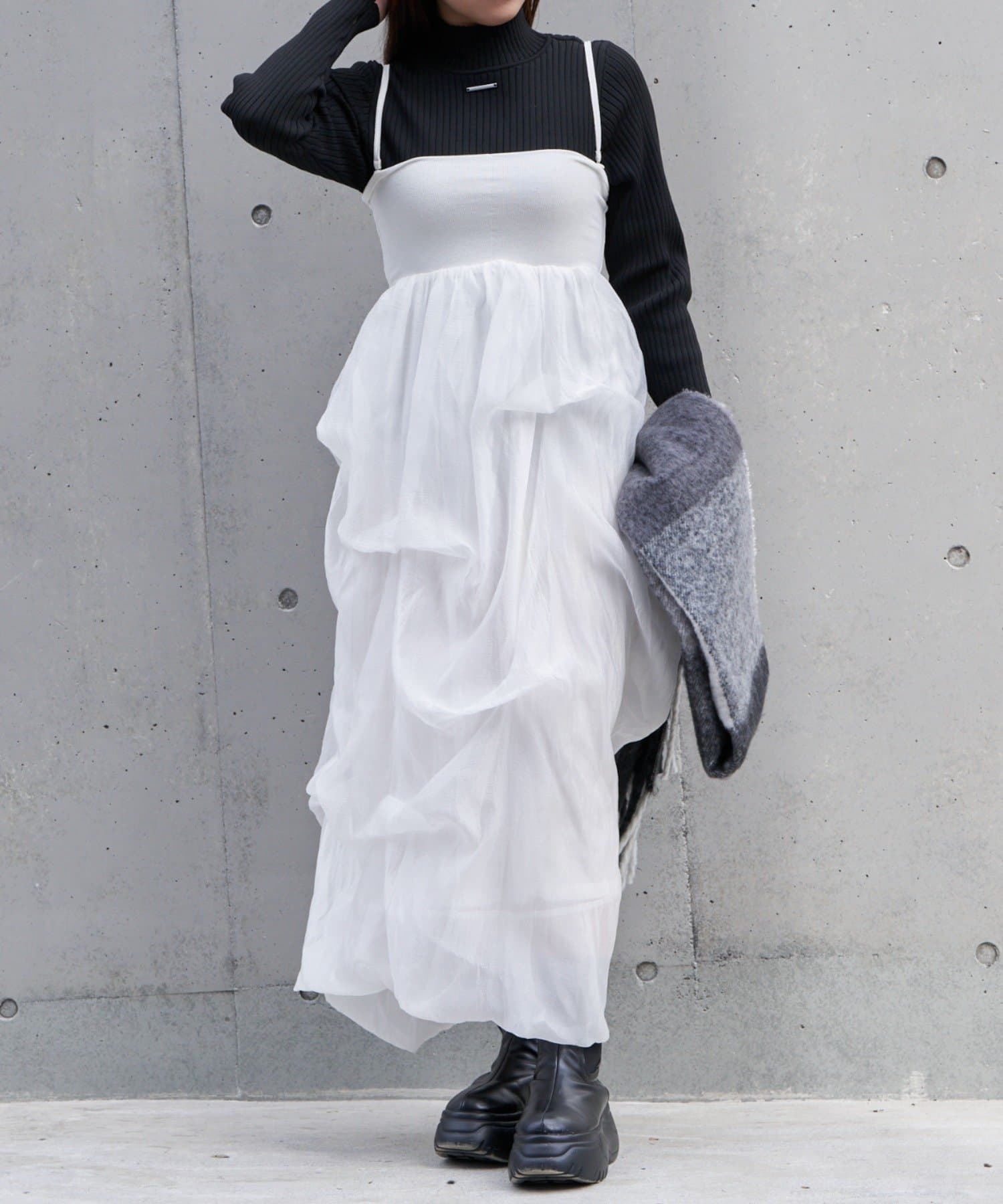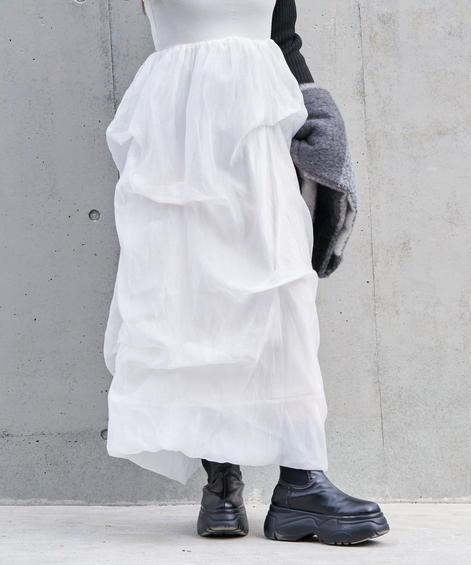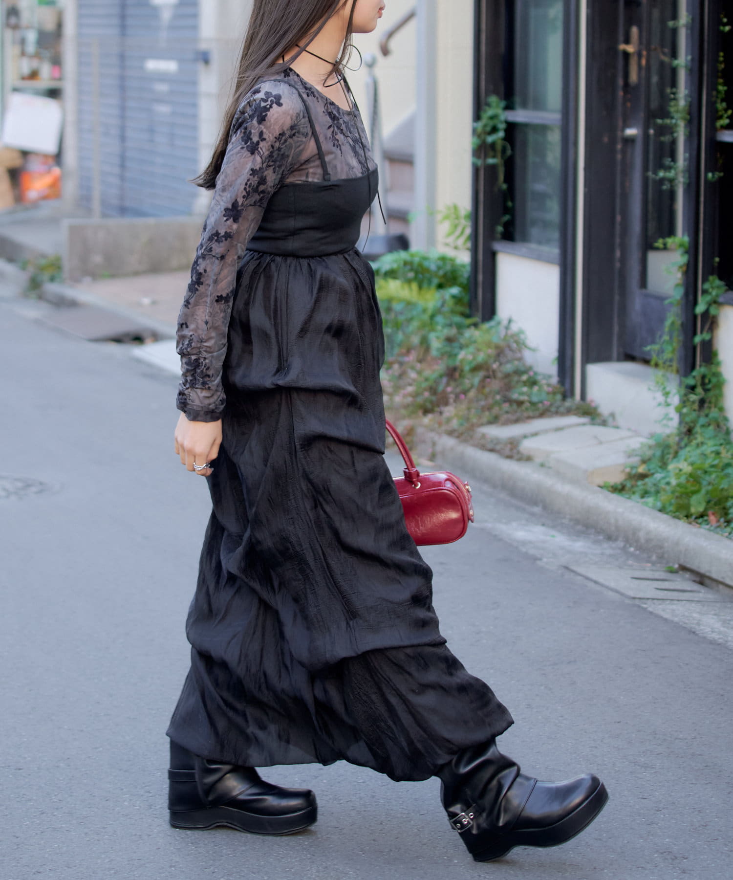 ・ボリューム感のあるティアードスカートが華やかな印象に