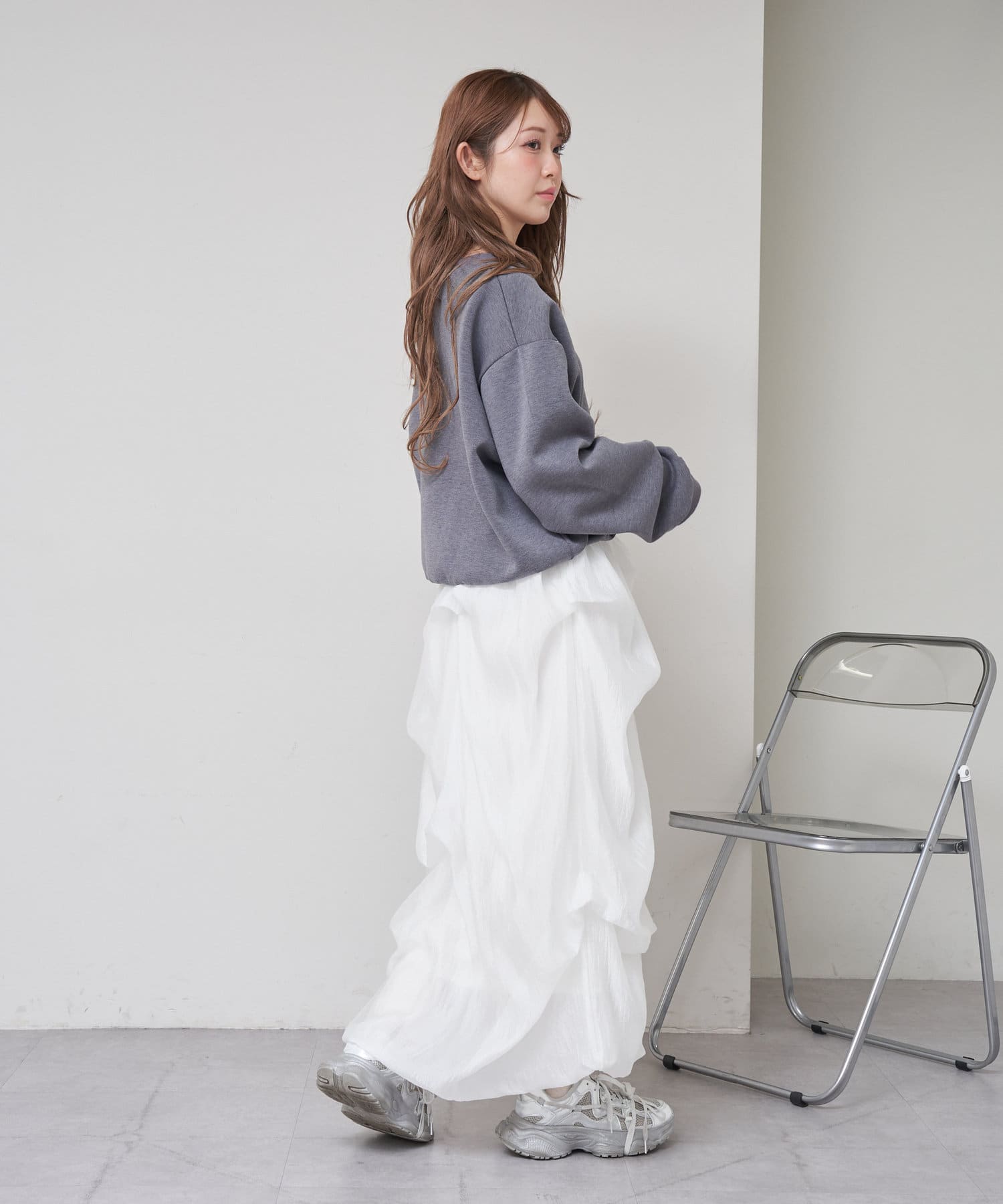 ・クロップド丈のスウェット合わせでカジュアルダウンするのもおすすめ