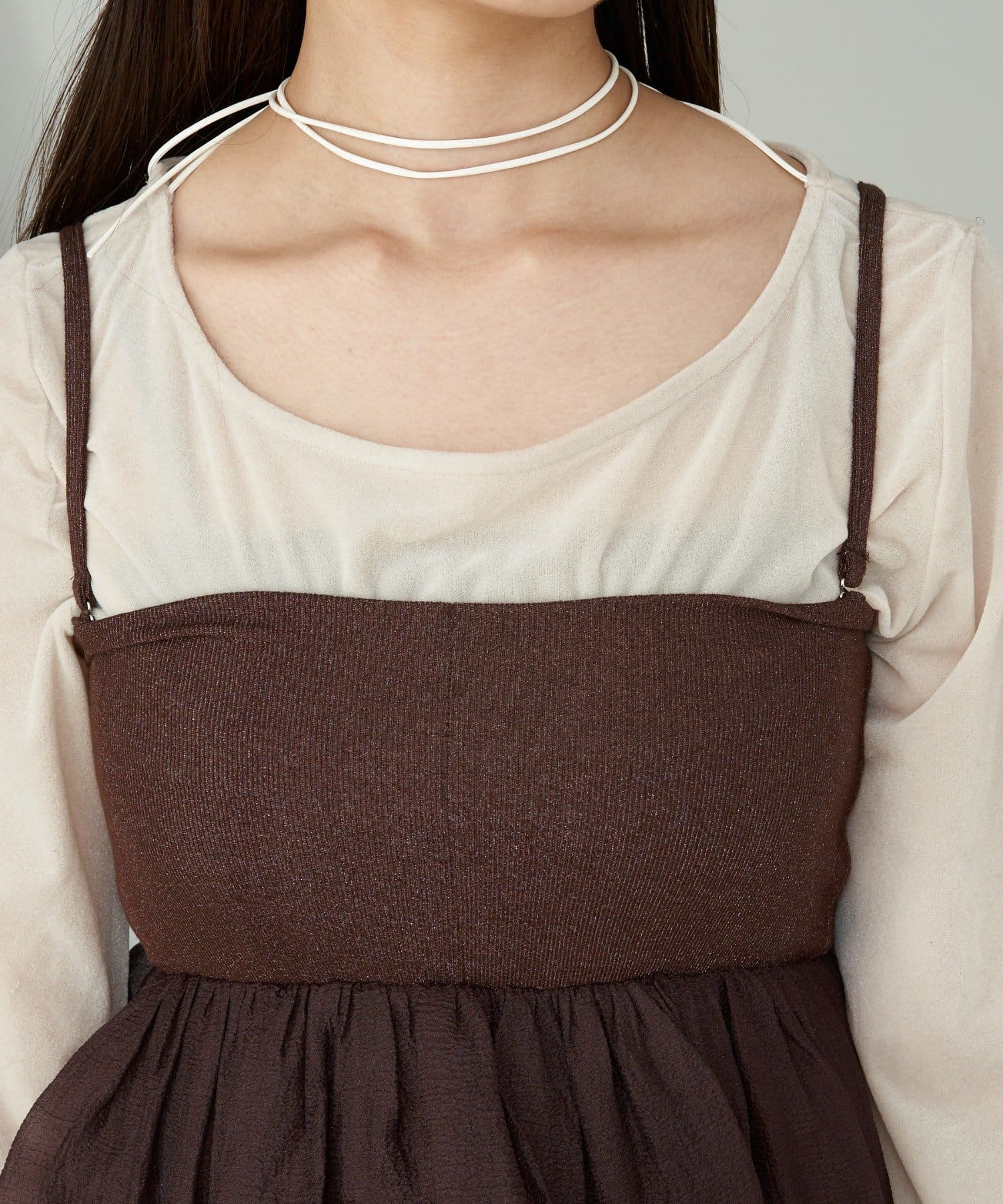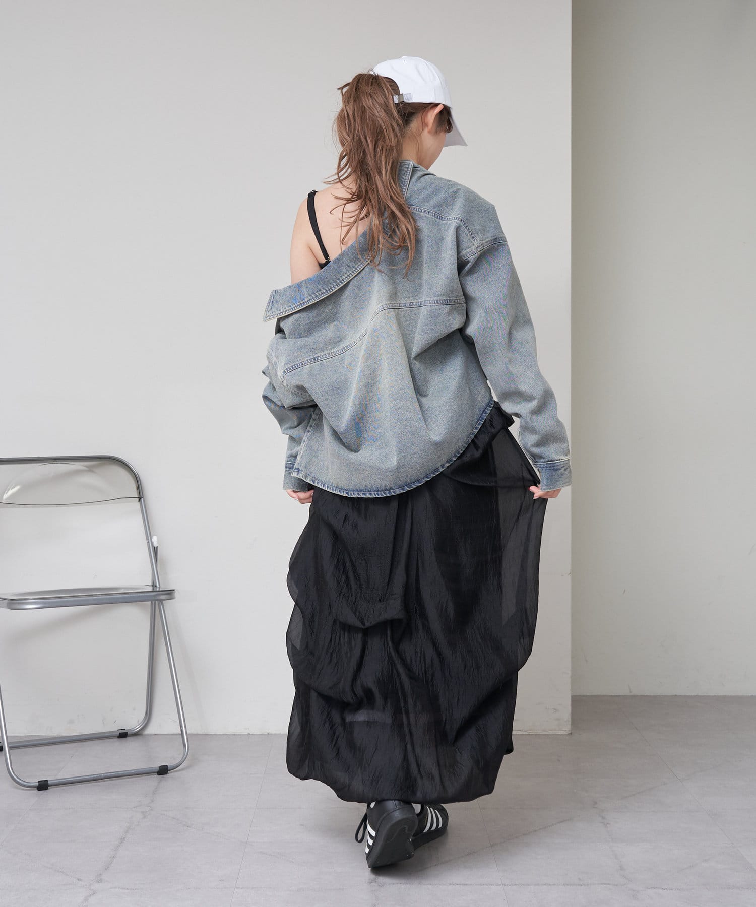 ・シアー素材のインナーやリブニットと合わせて自由自在に着用できます