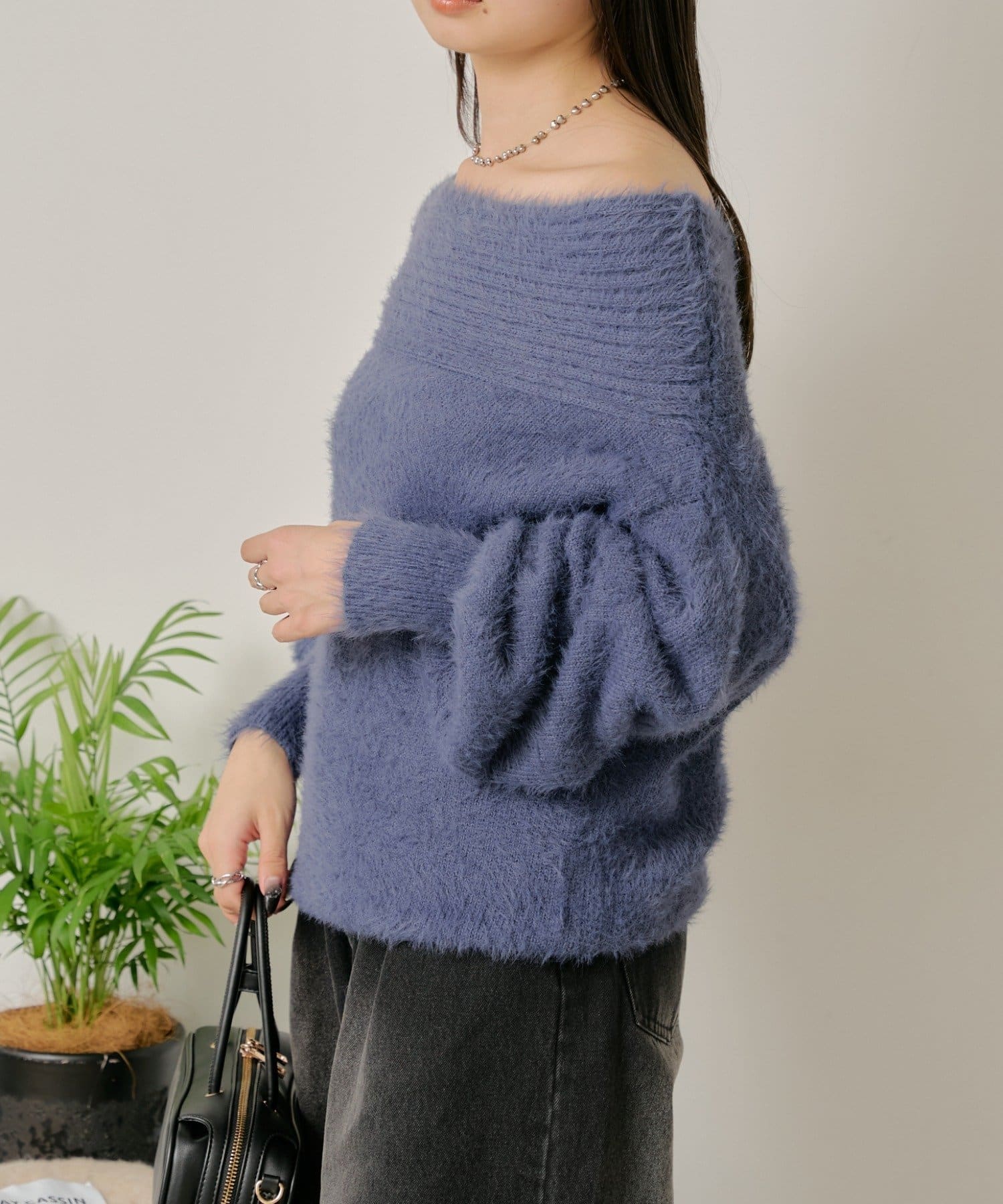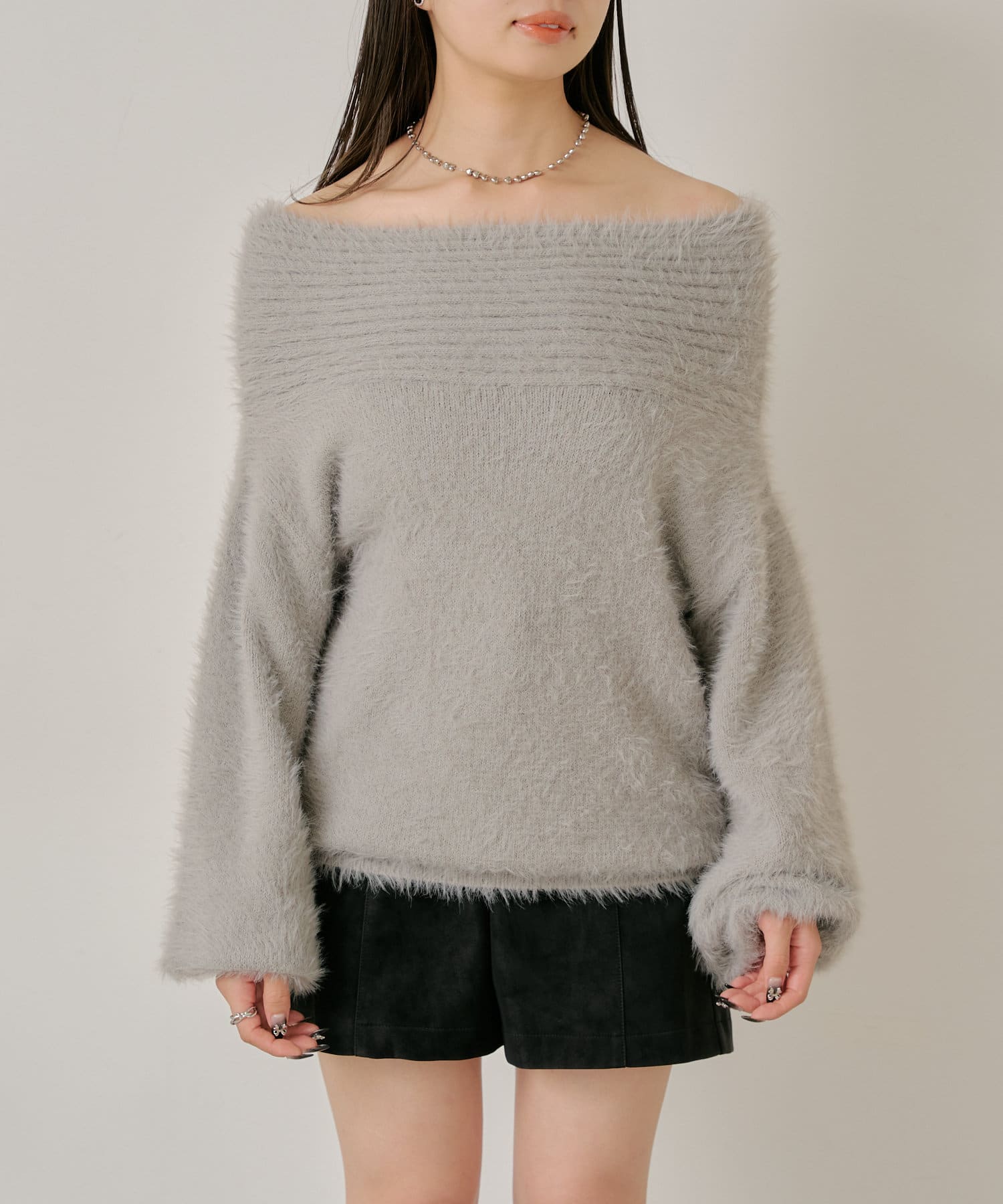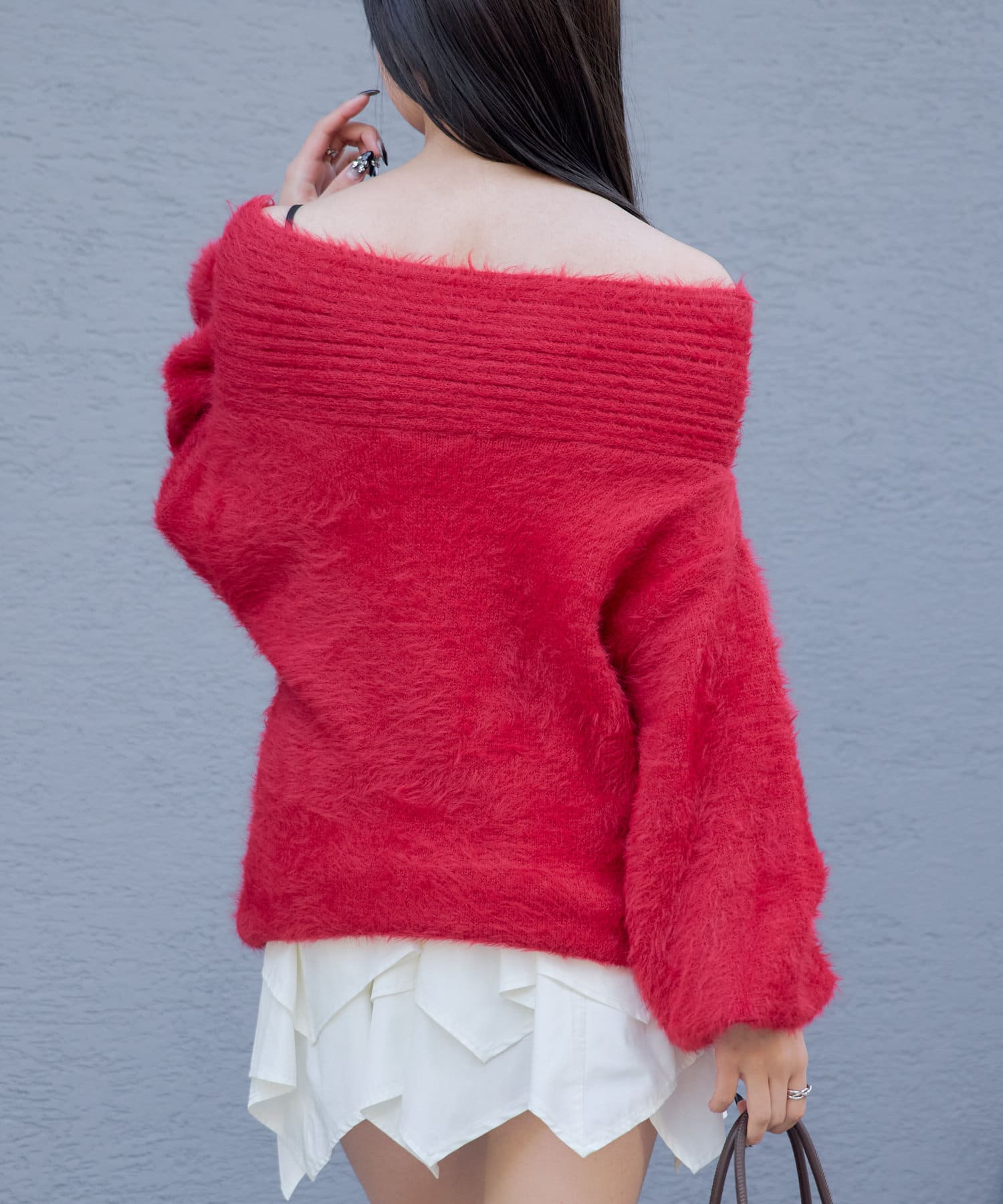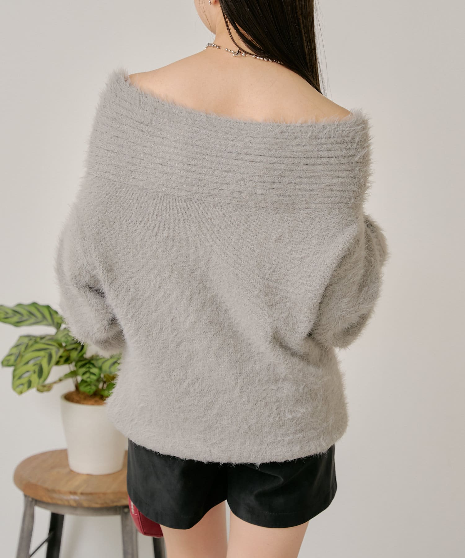 シャギーオフショルニット