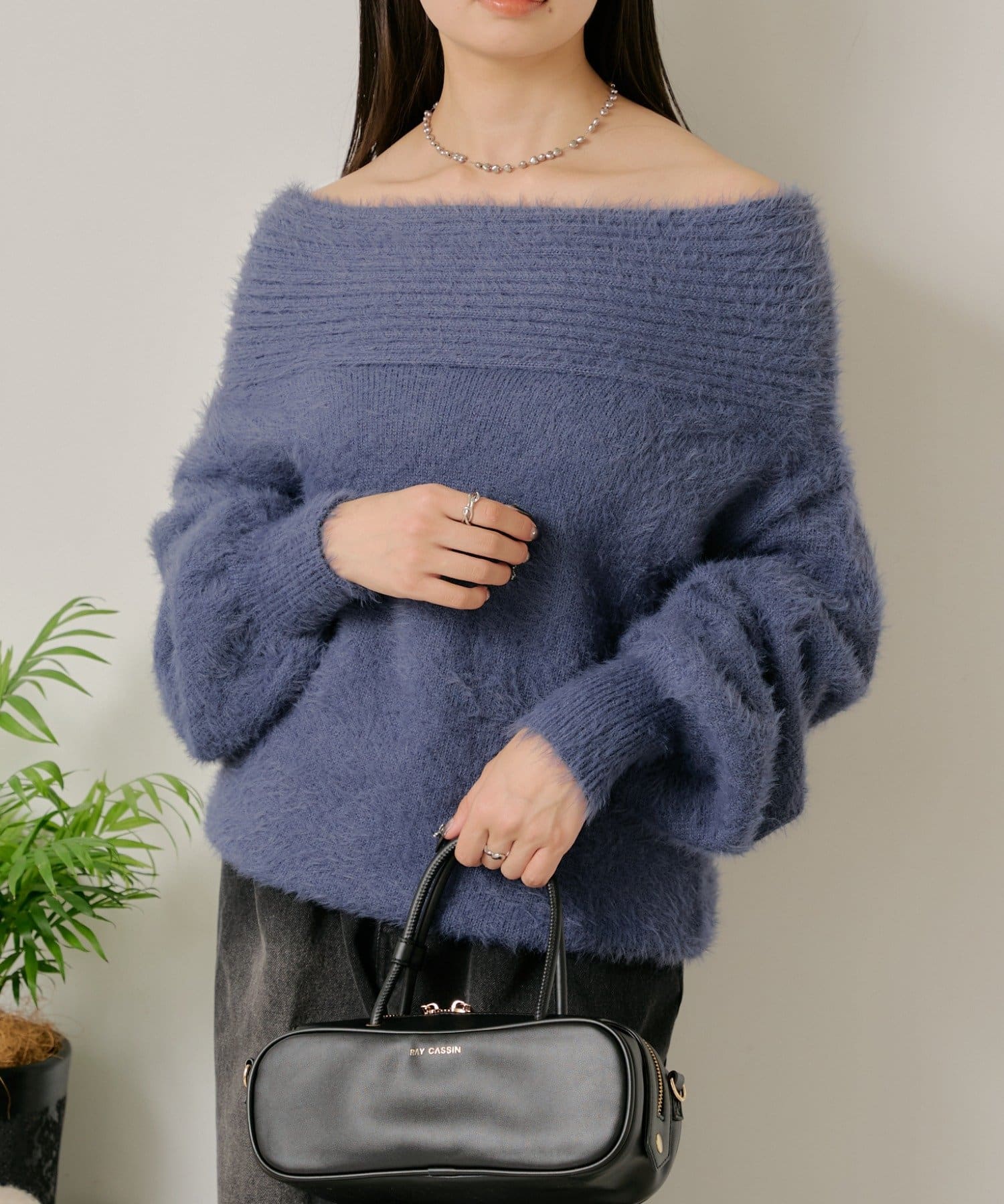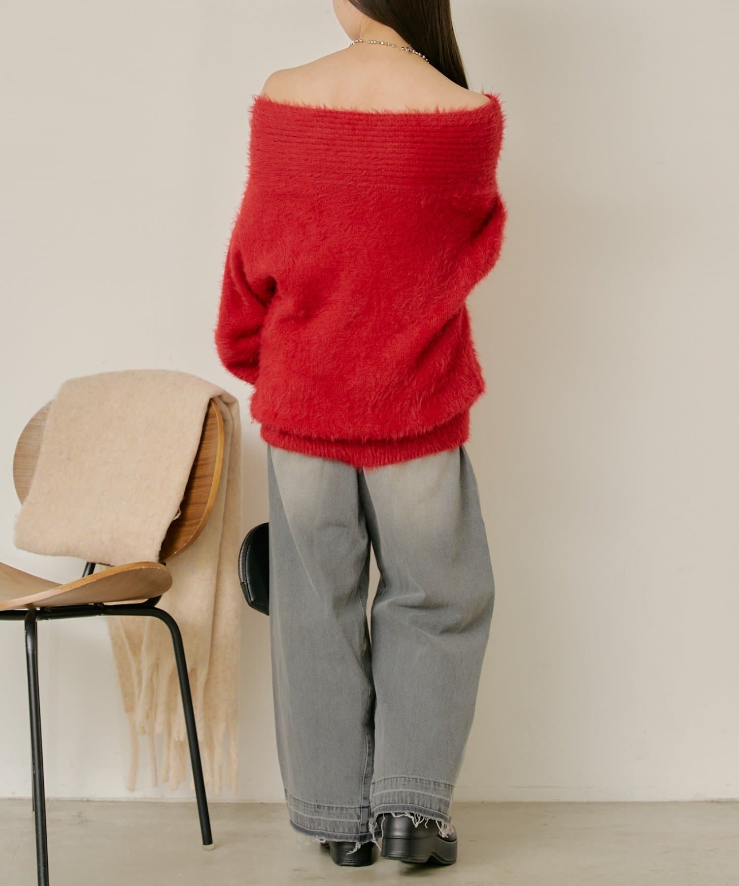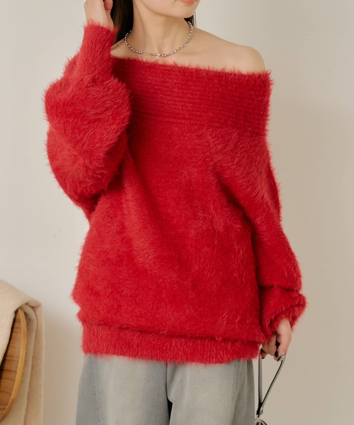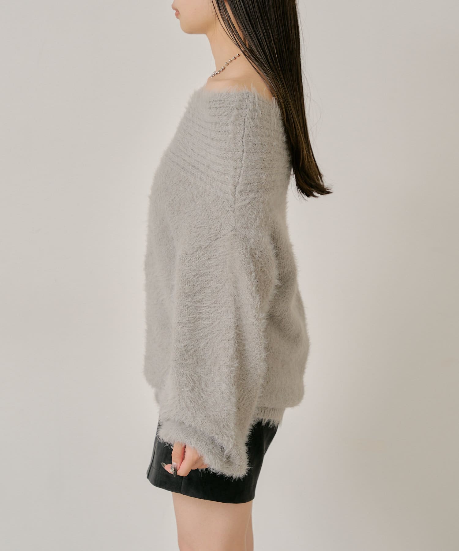シャギーオフショルニット