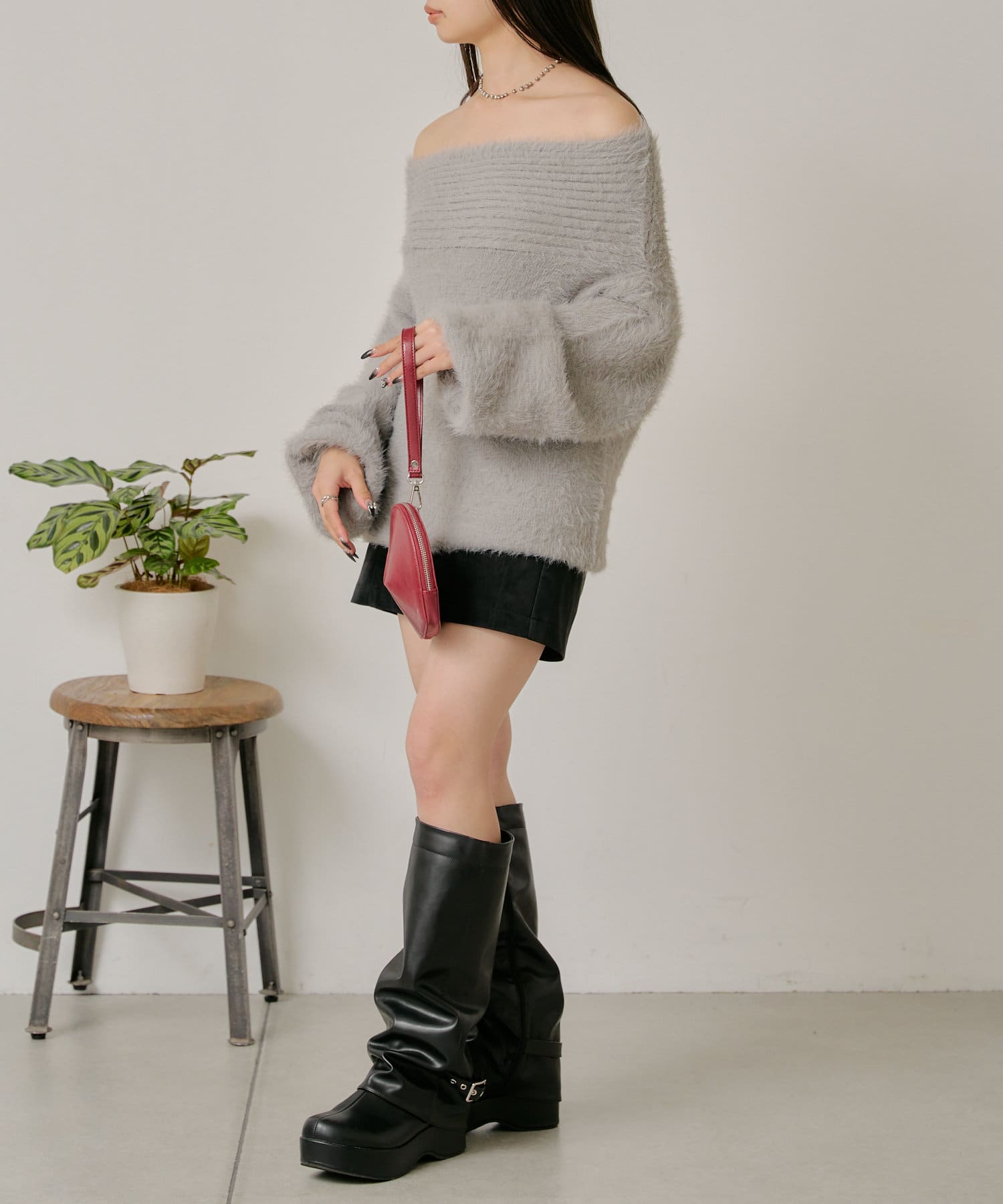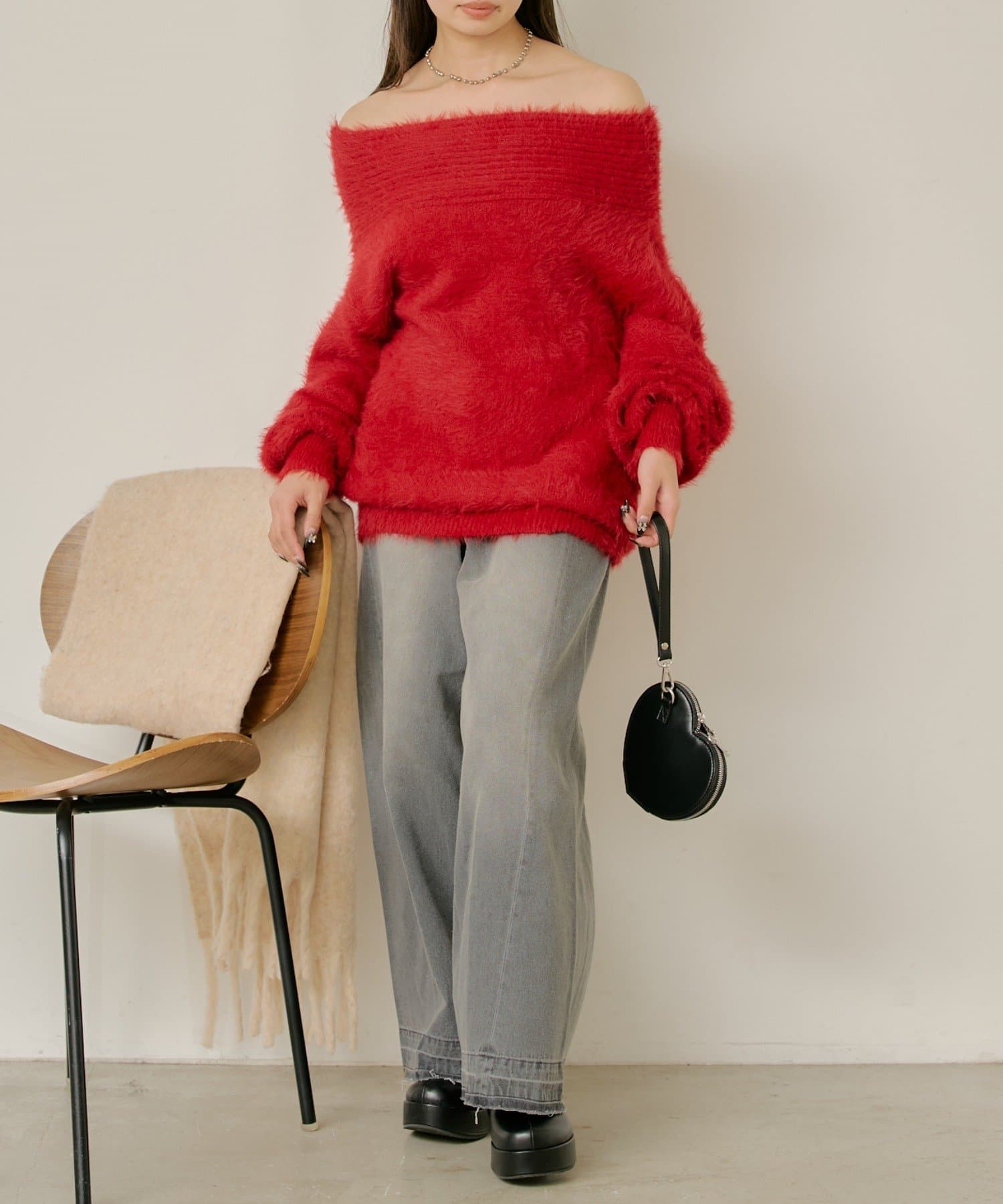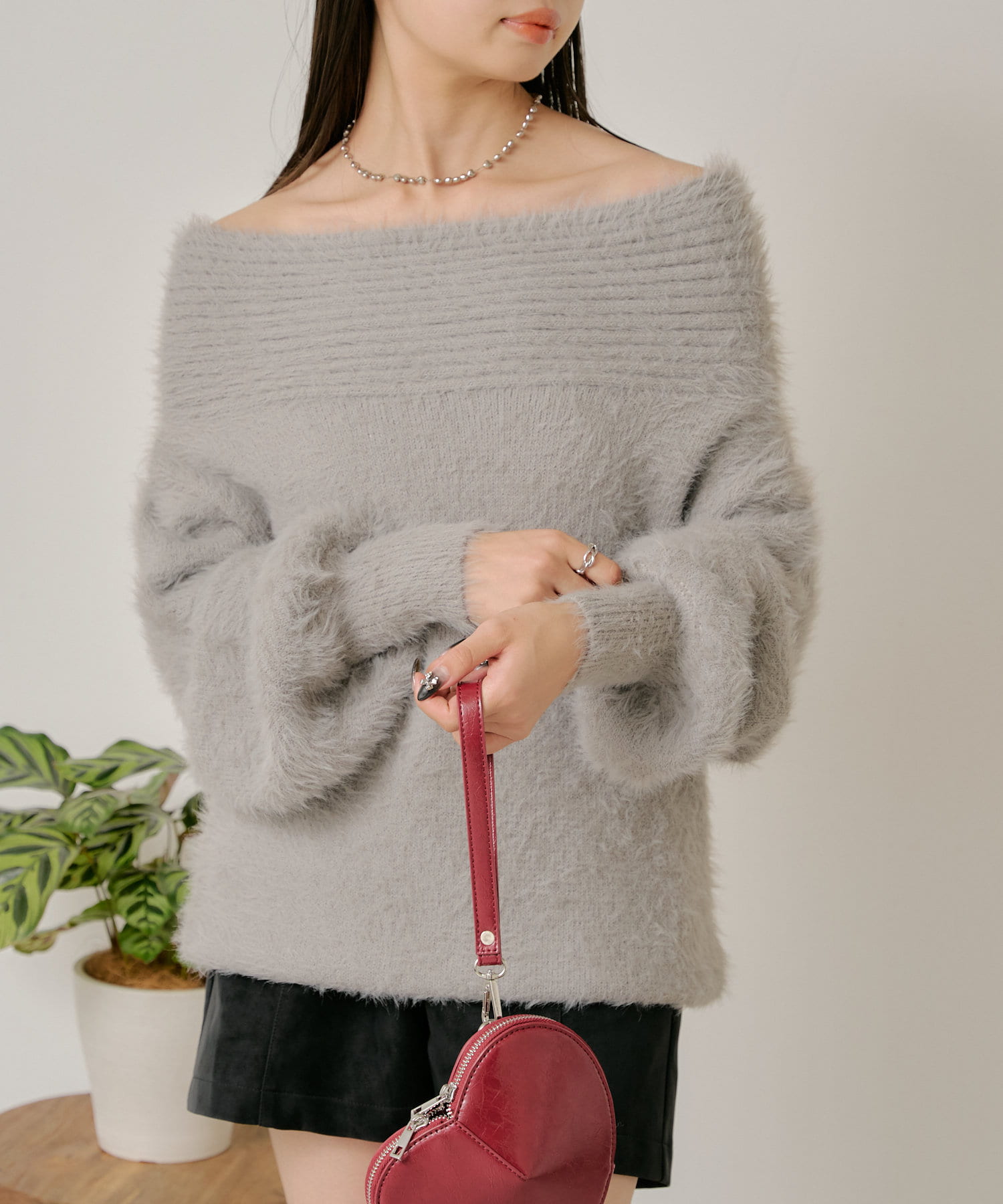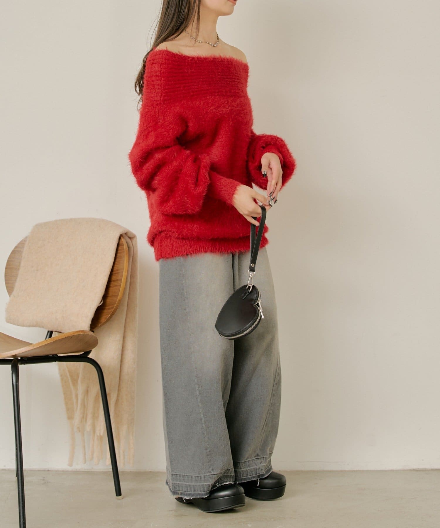 シャギーオフショルニット