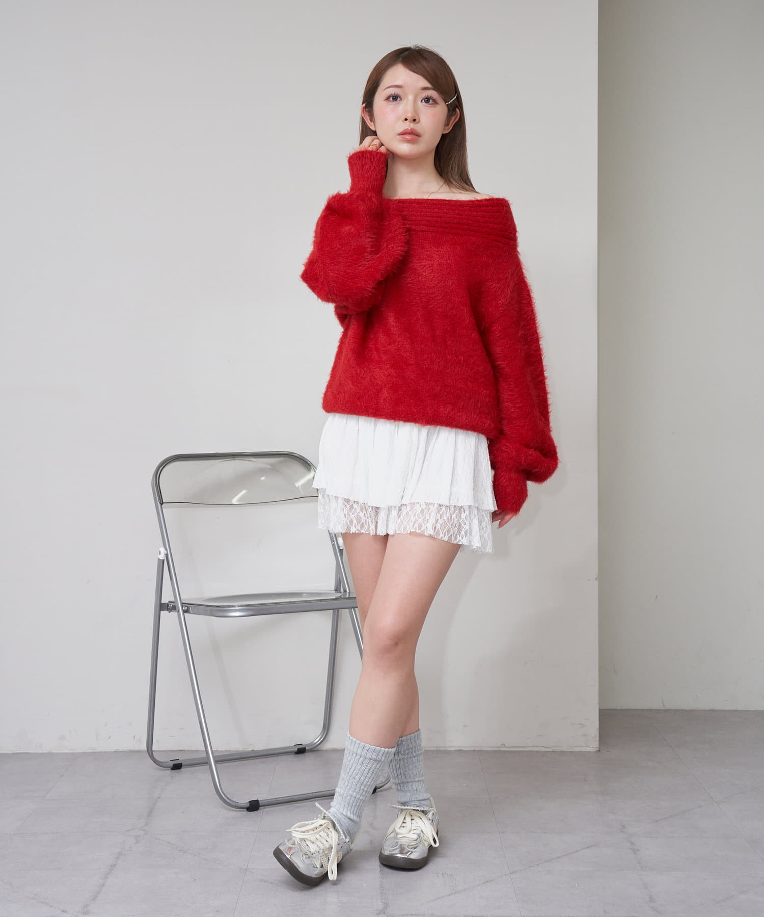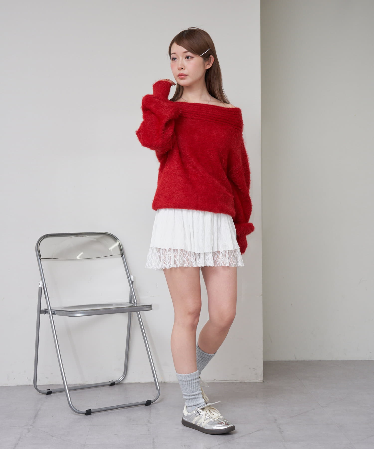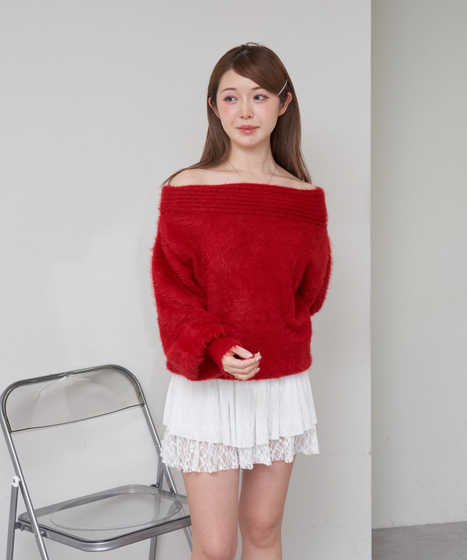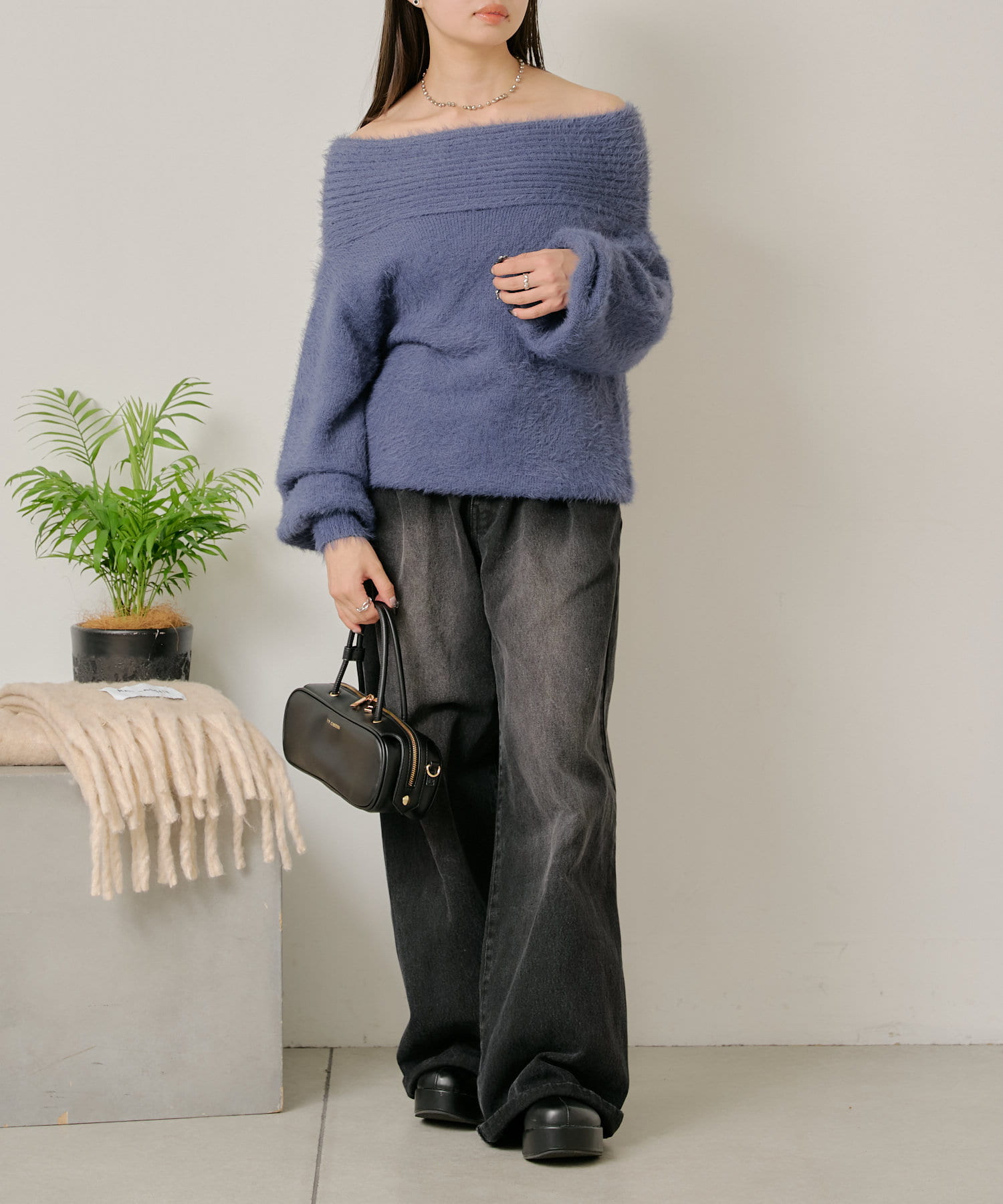 シャギーオフショルニット
