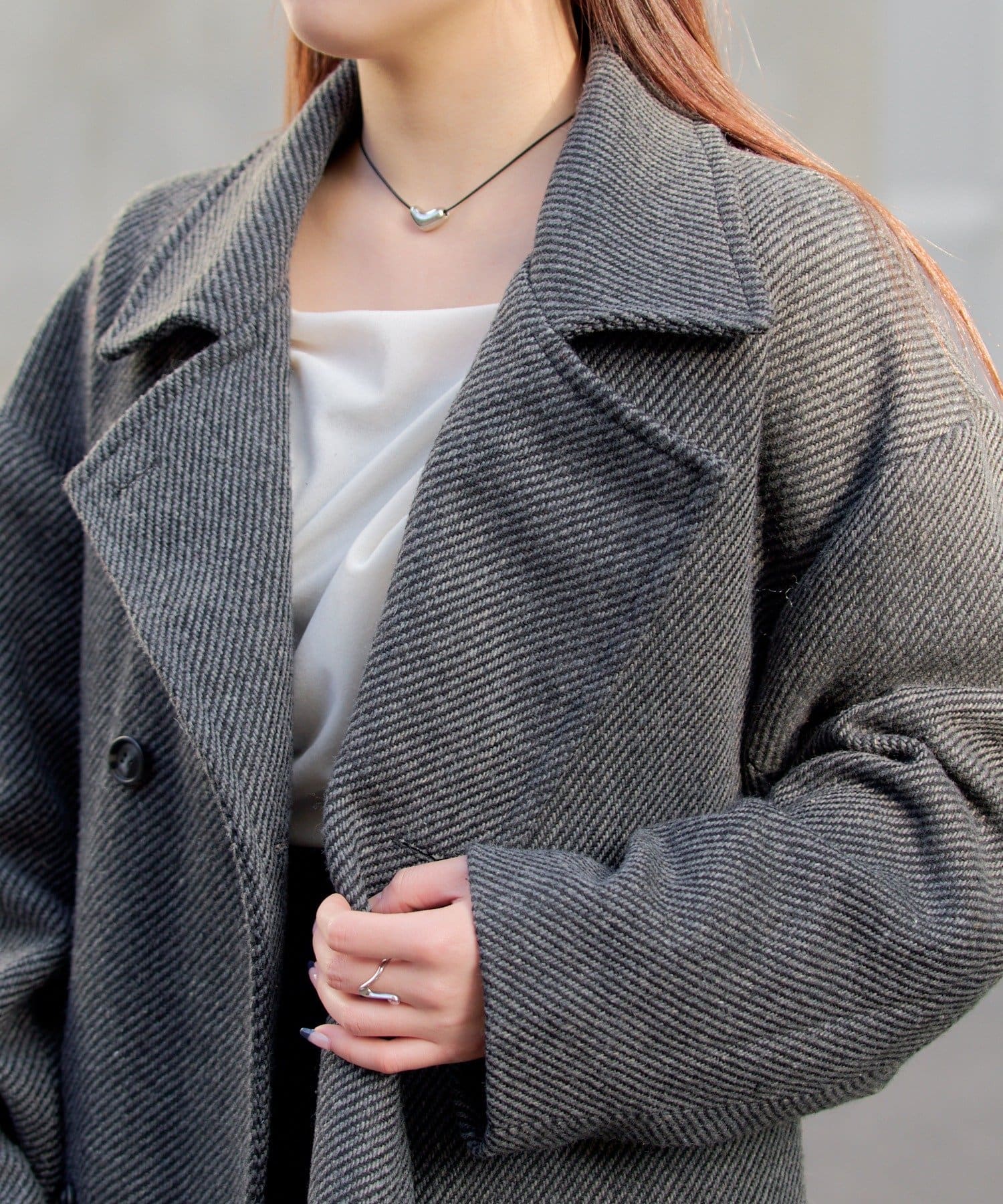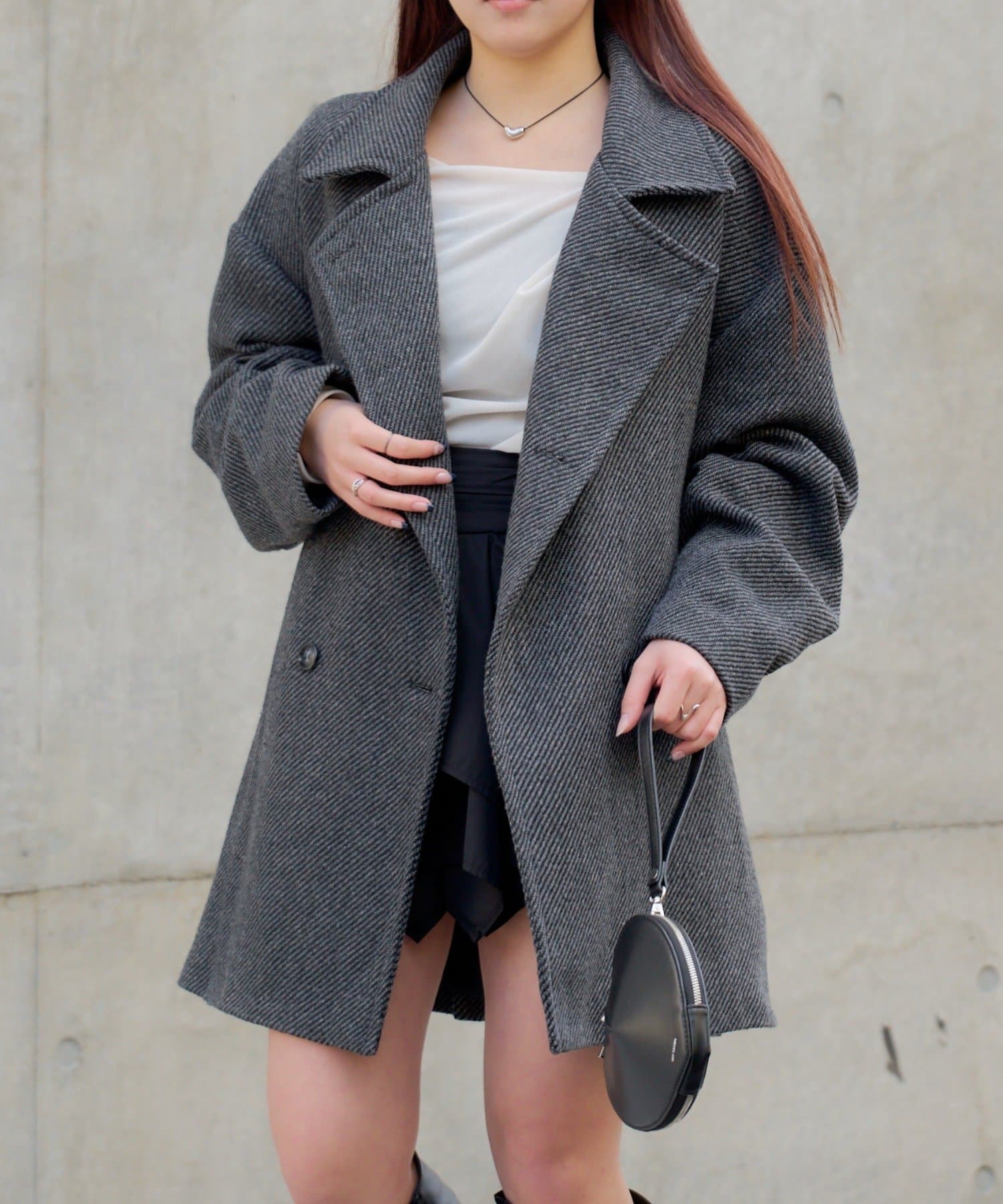 ・大きめの襟とAラインが女性らしさ満点のコート