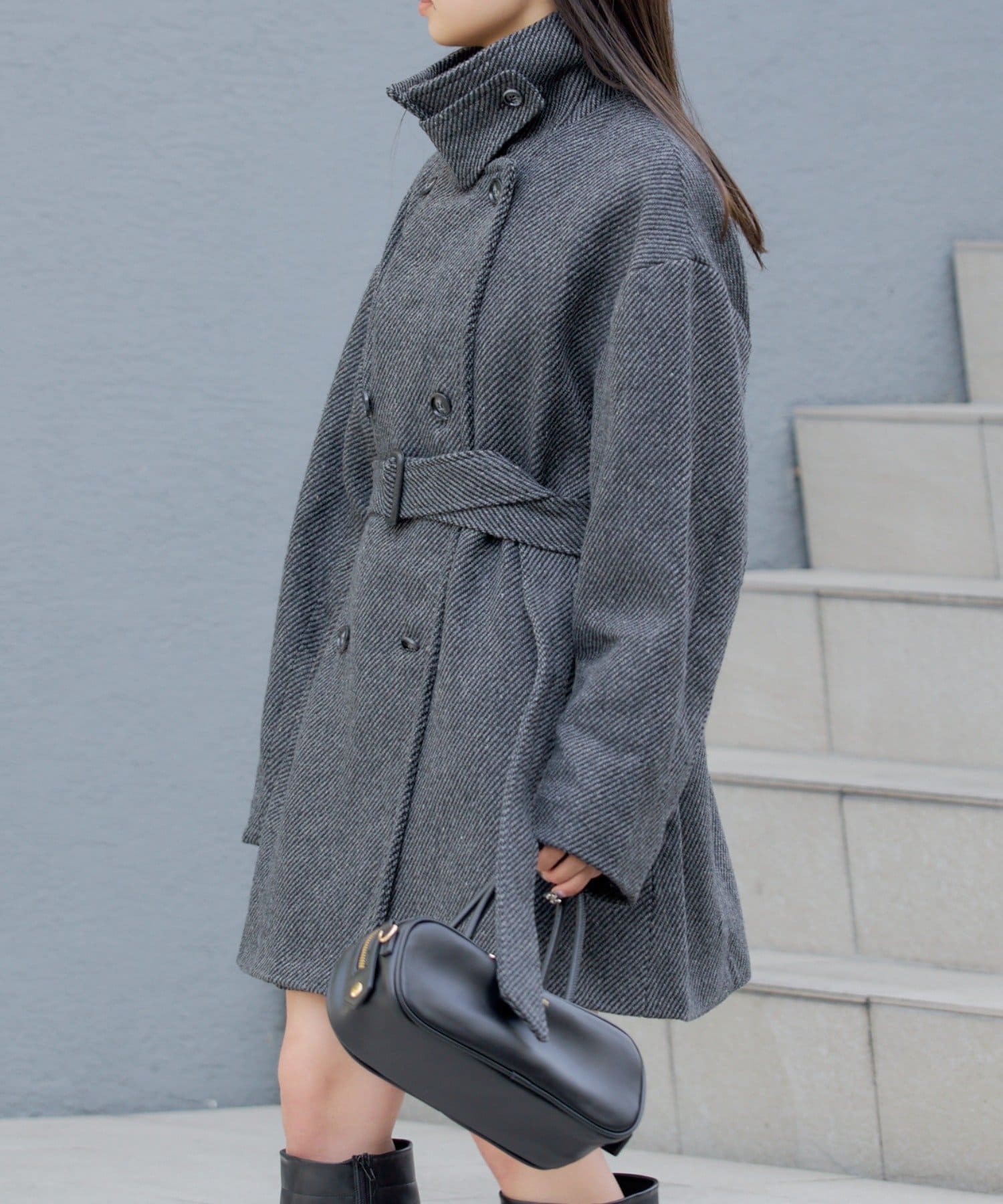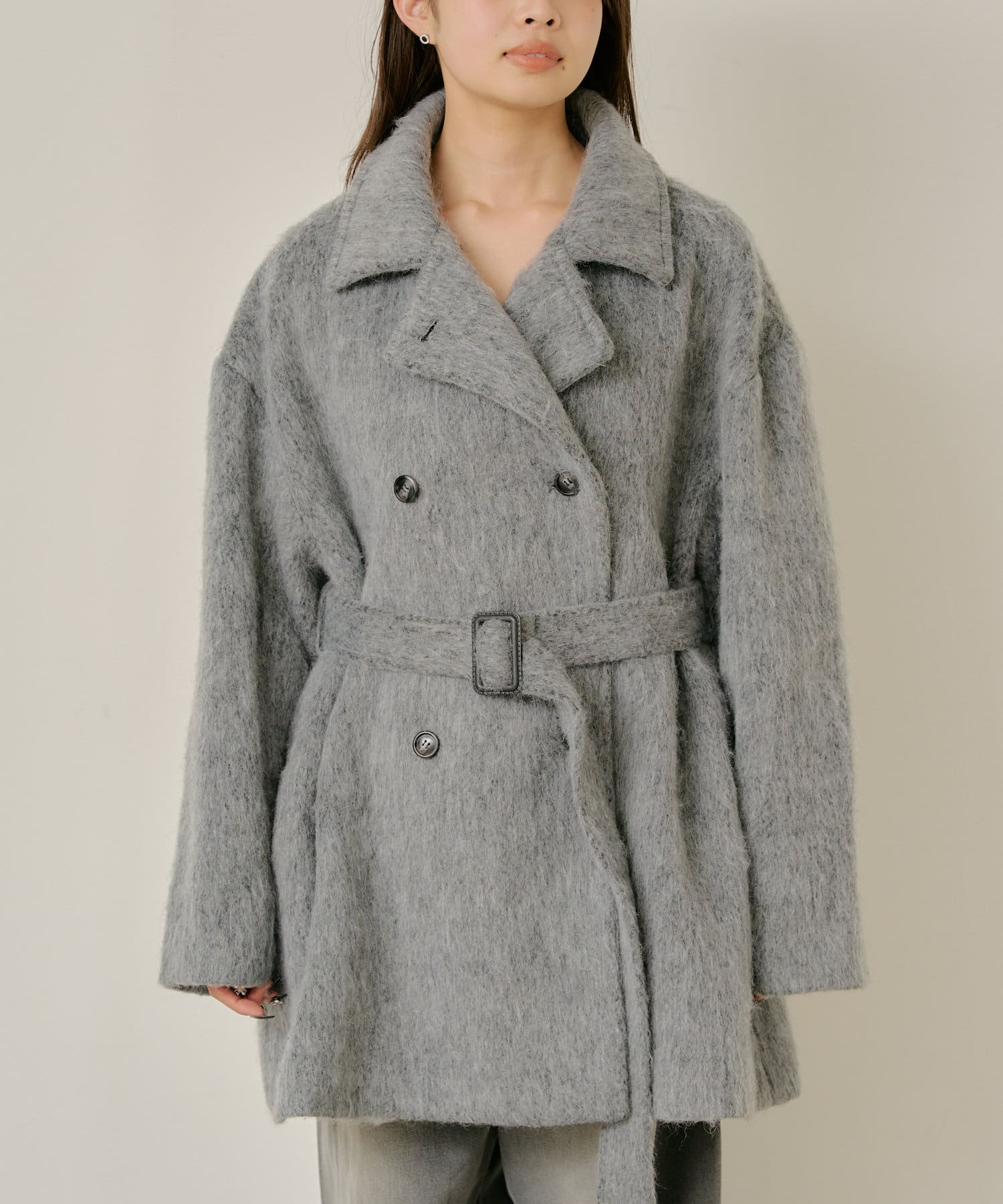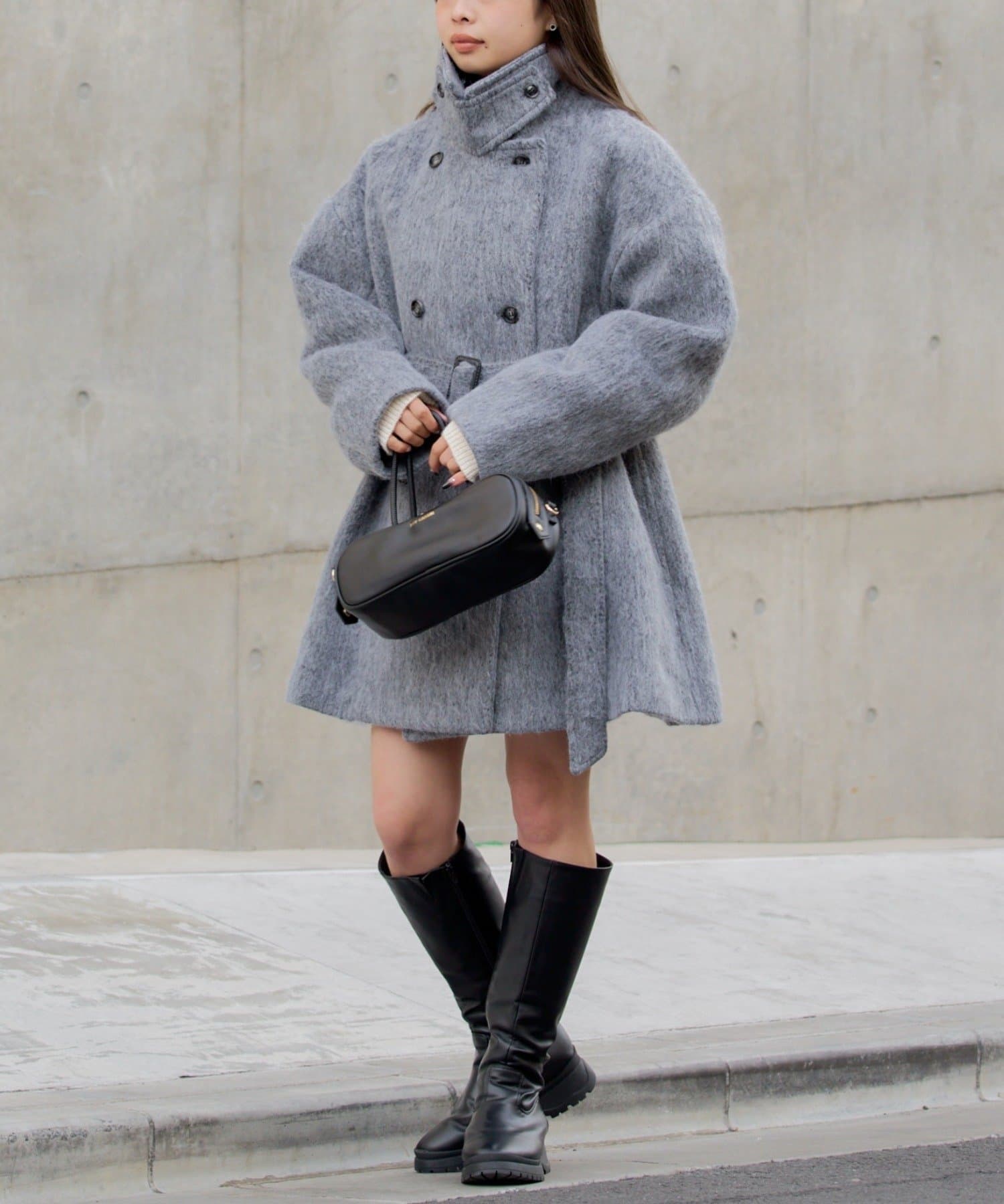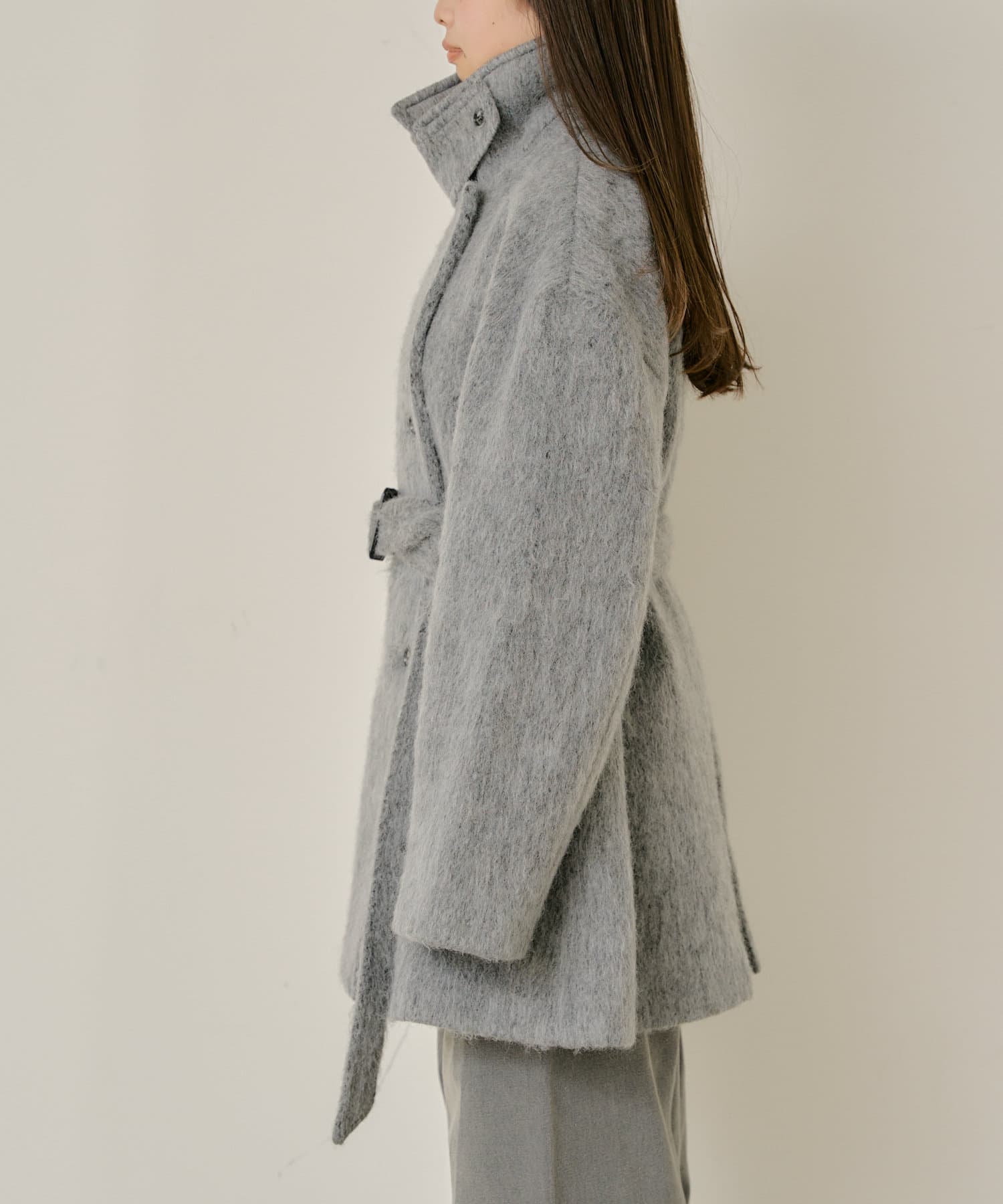 シャギーコート / ピーコート / スタンドカラー / ベルト付き