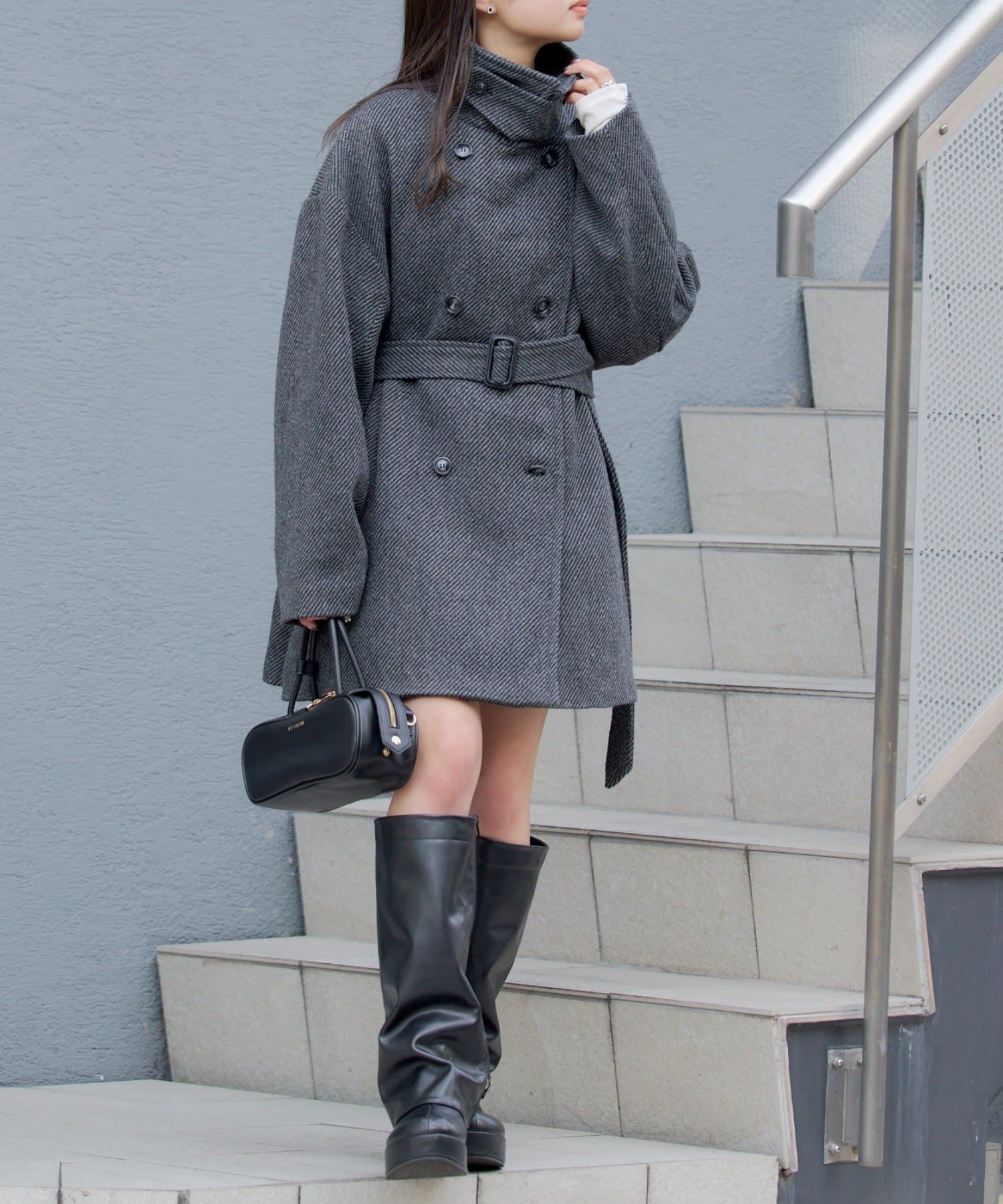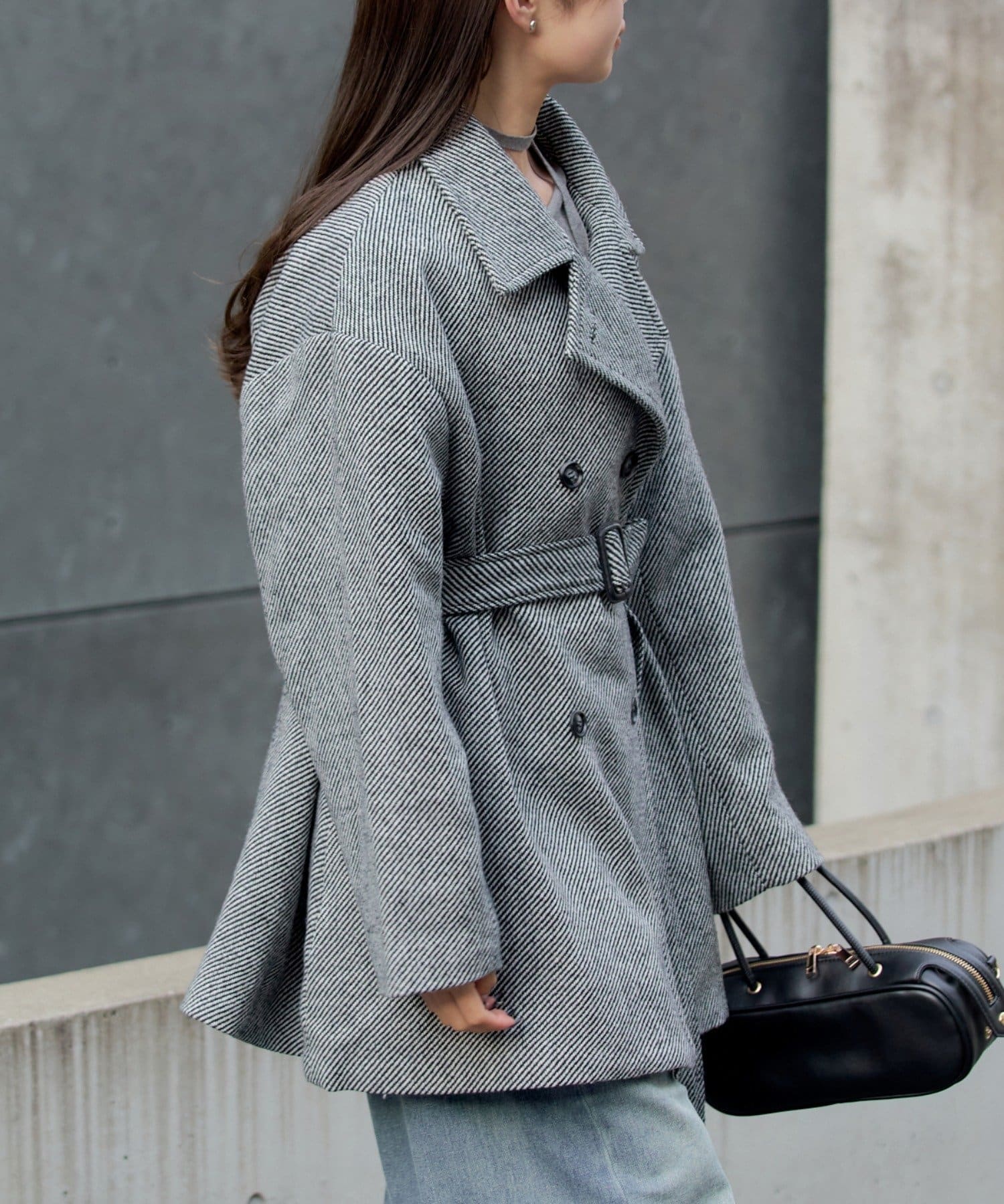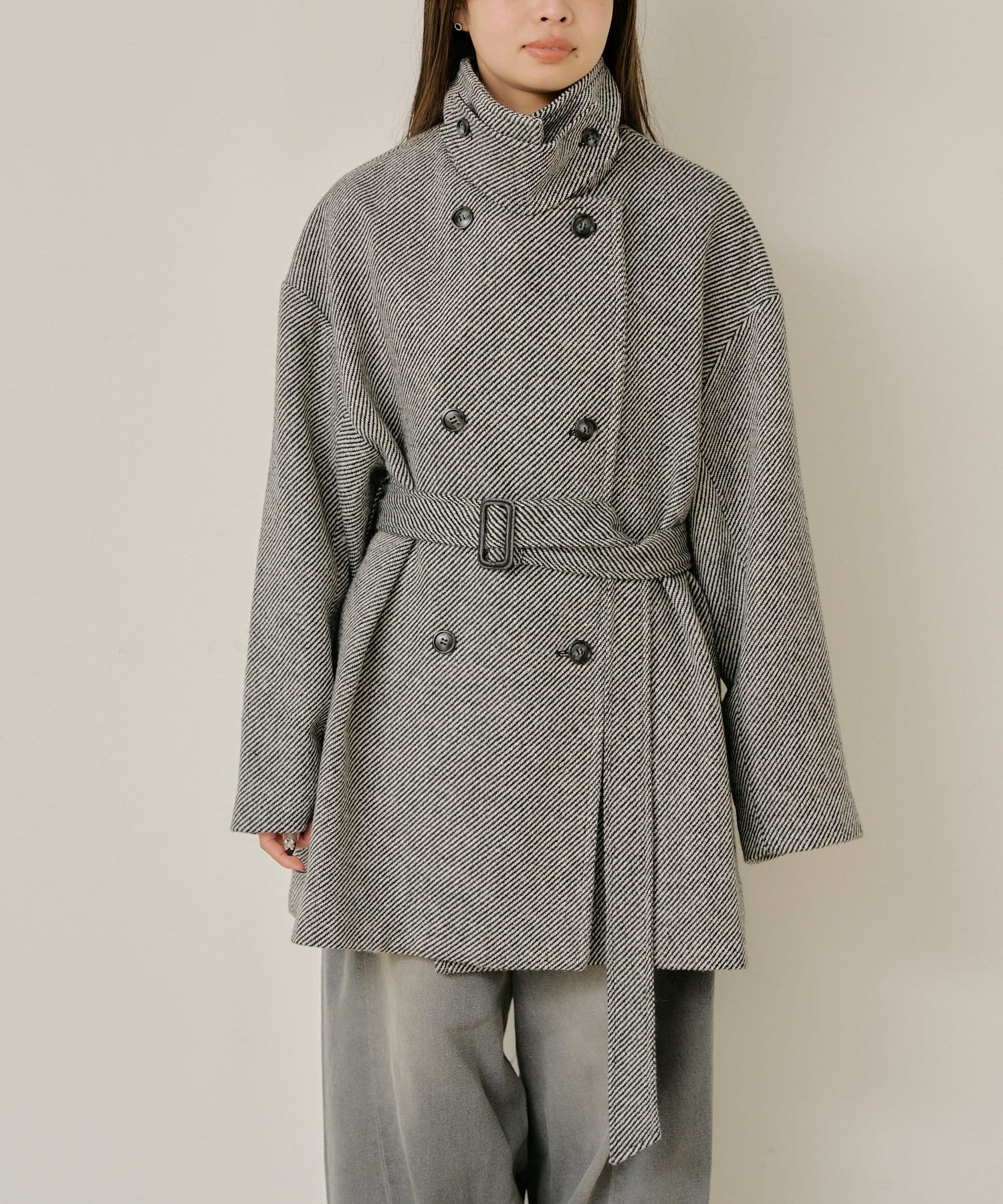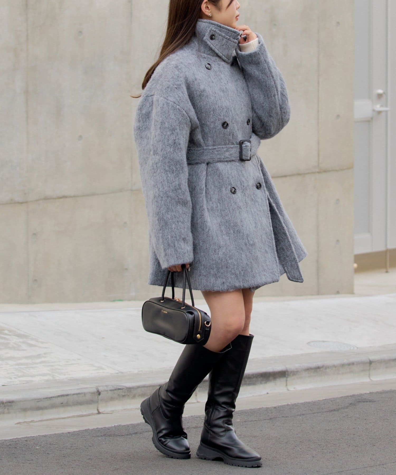 シャギーコート / ピーコート / スタンドカラー / ベルト付き