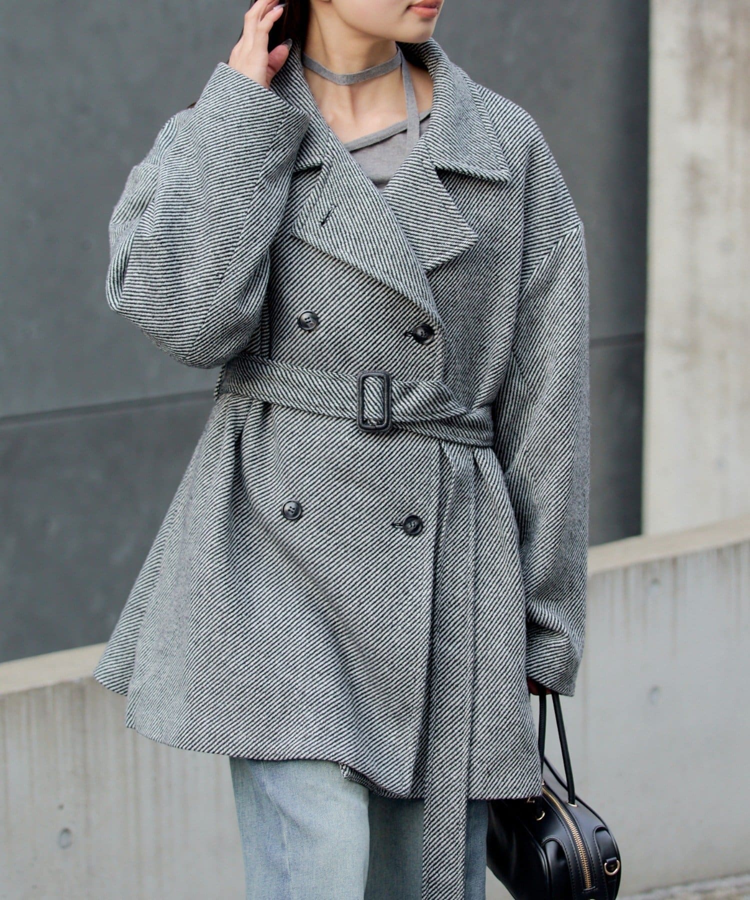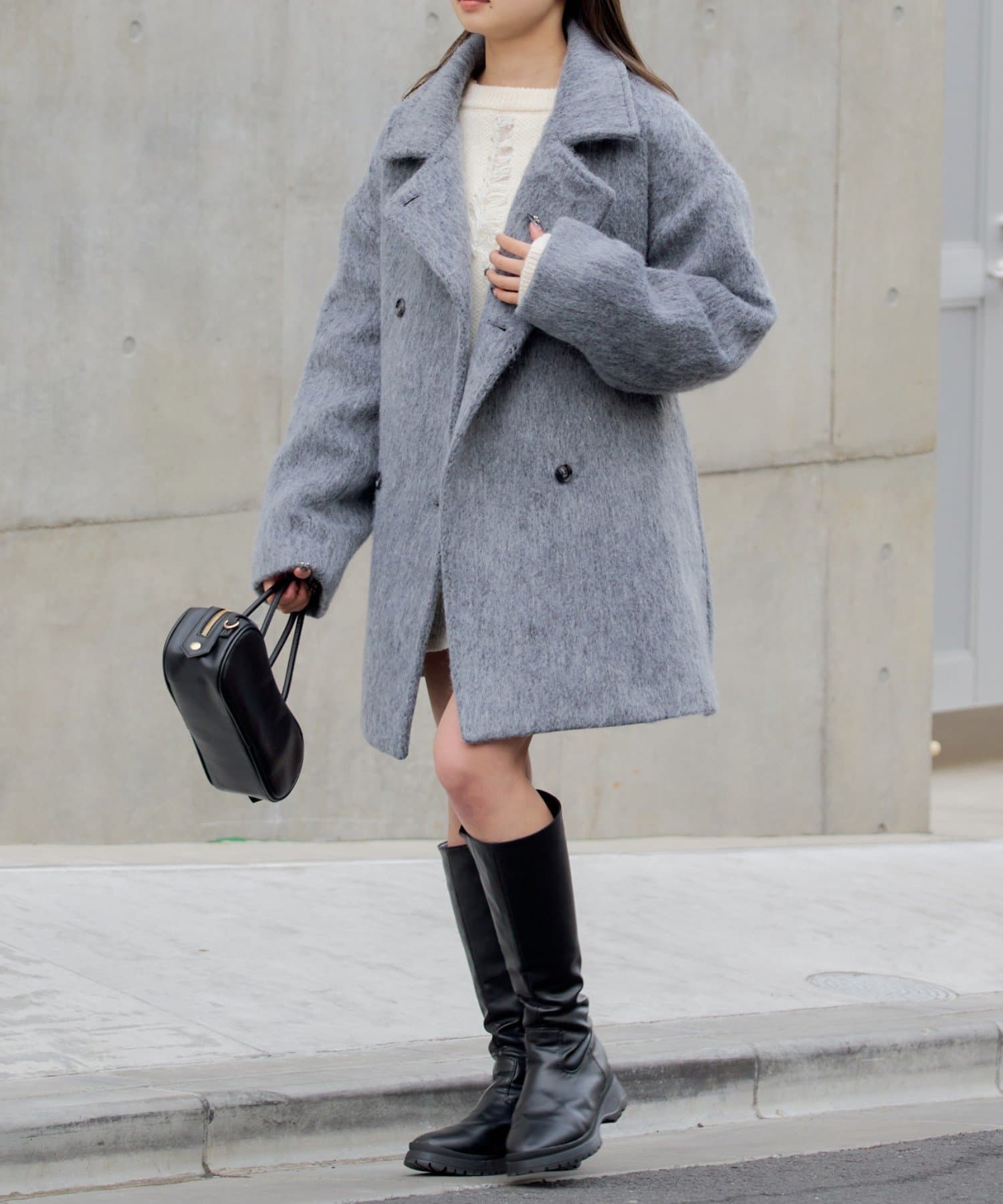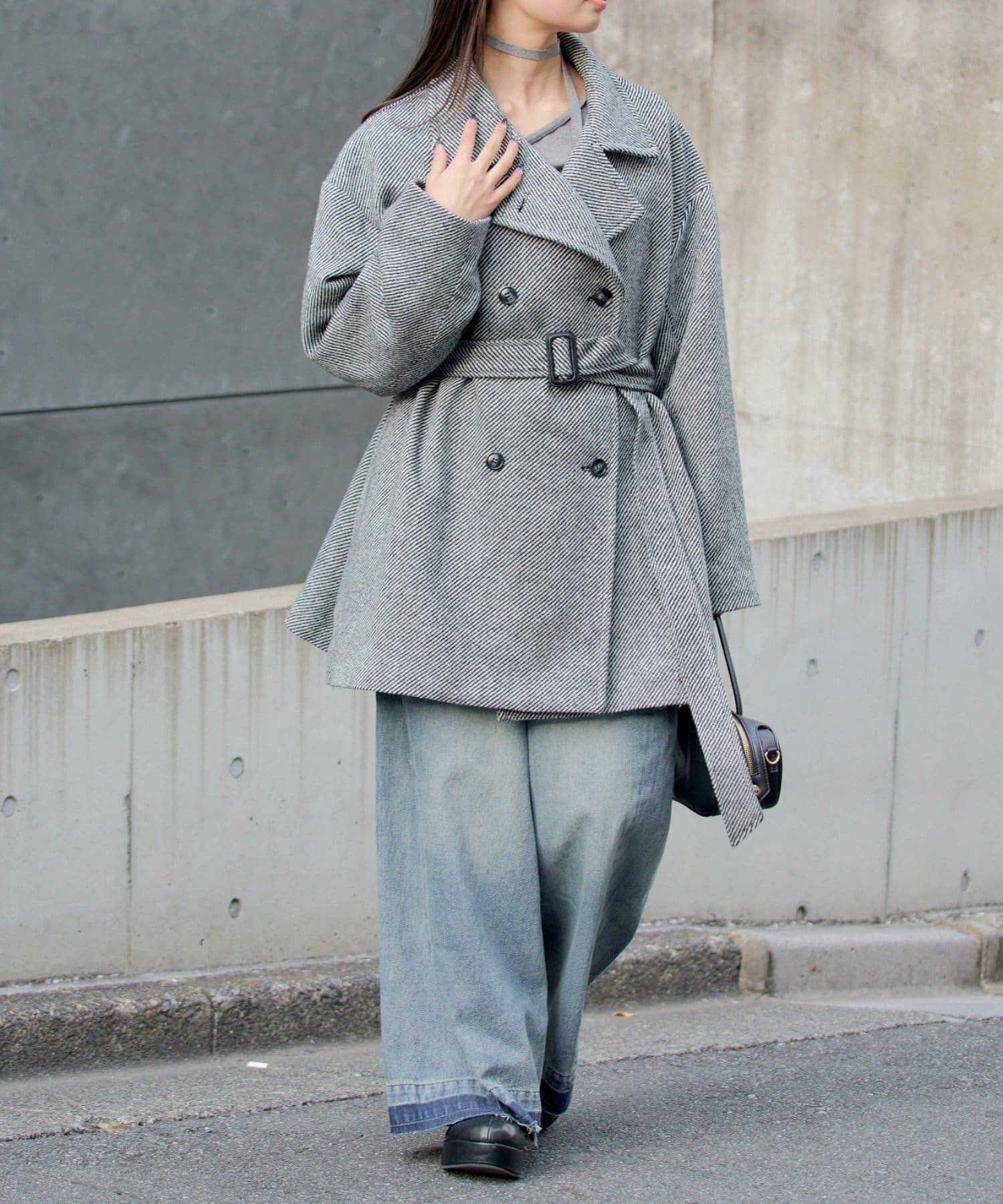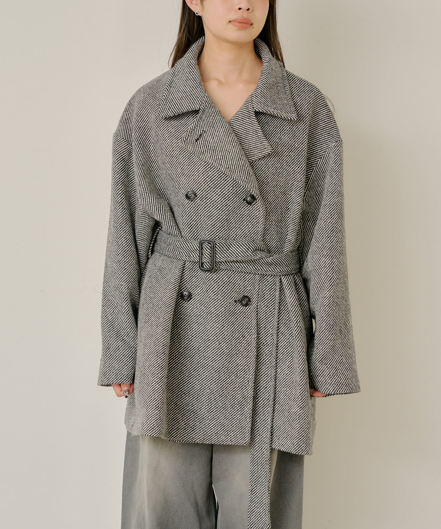 シャギーコート / ピーコート / スタンドカラー / ベルト付き