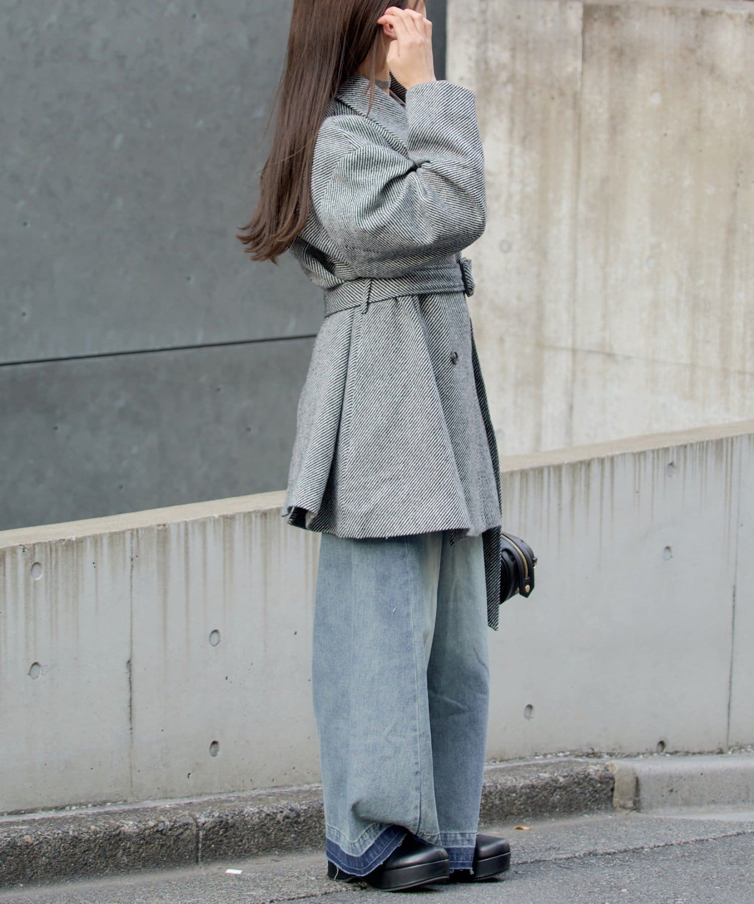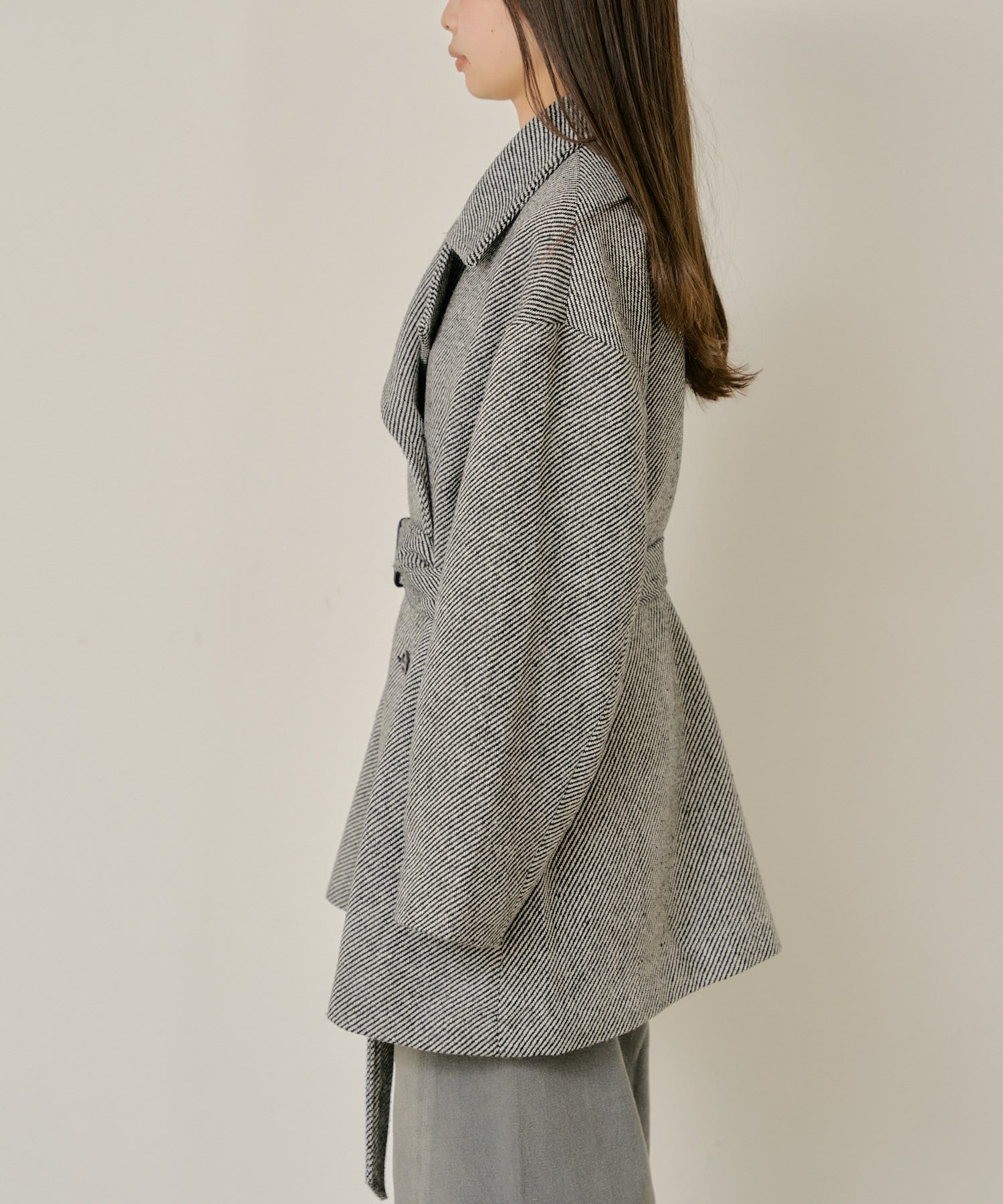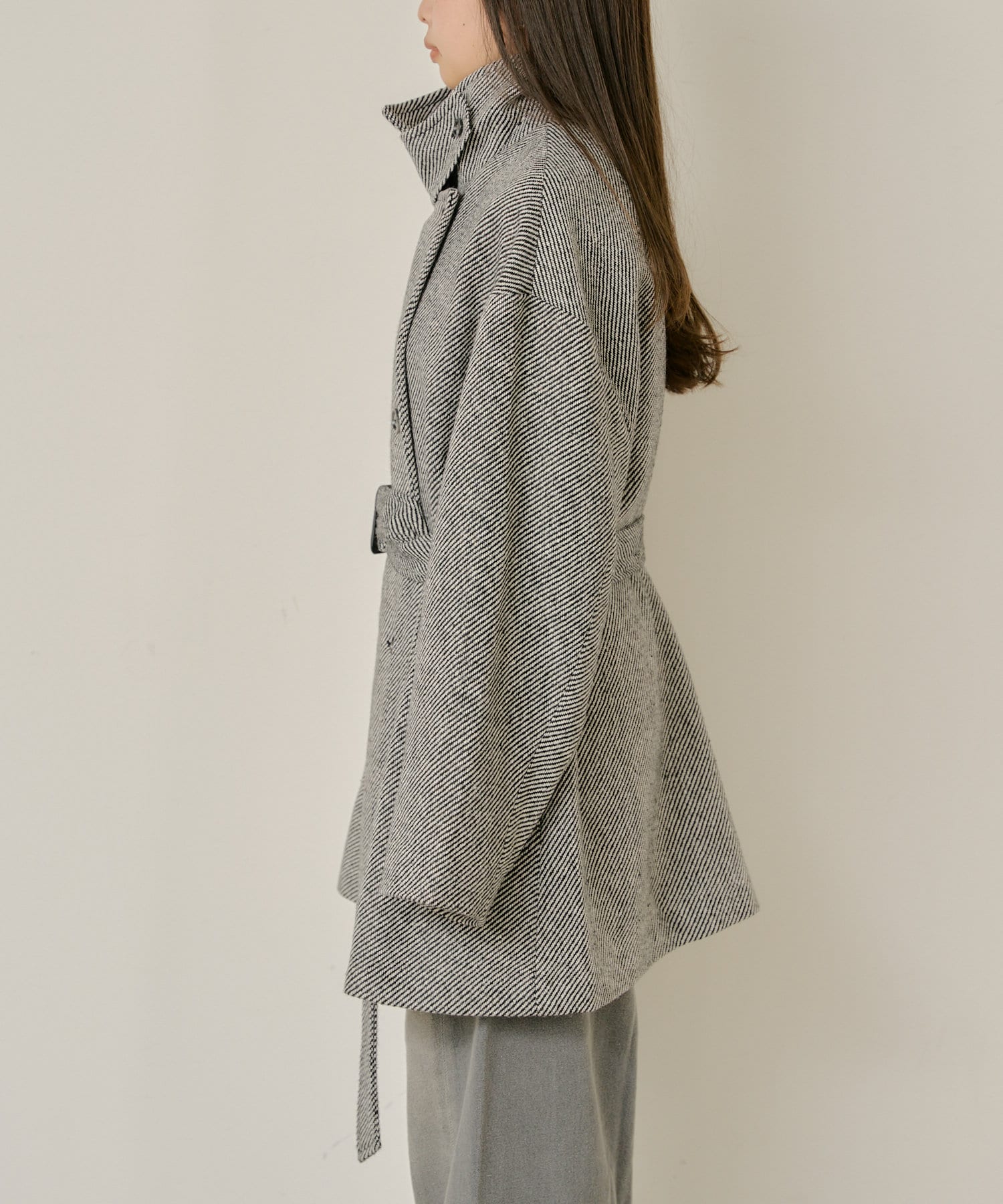 ・スッキリとしたシルエットのため、パンツ/スカートどちらも綺麗に着用できます。