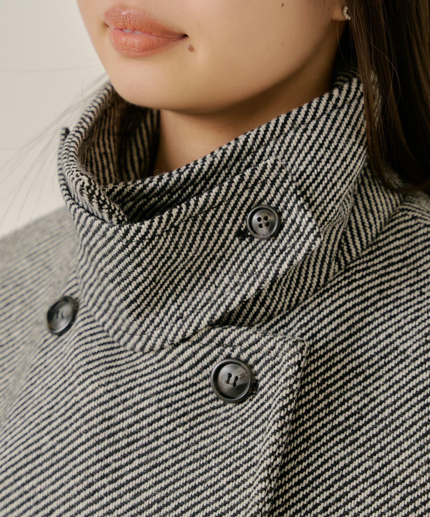 ・ボタンひとつでスタンドカラーとしても着用可能。防寒対策もバッチリです◎