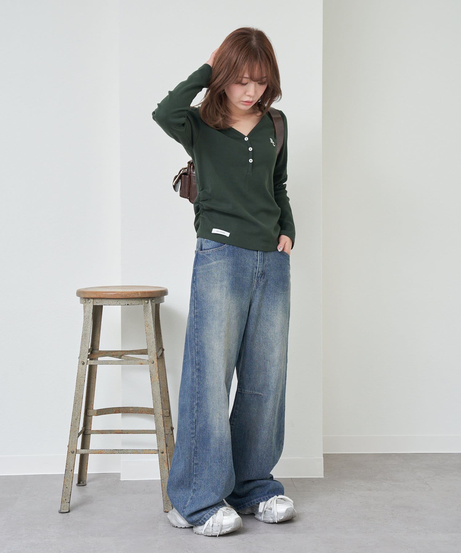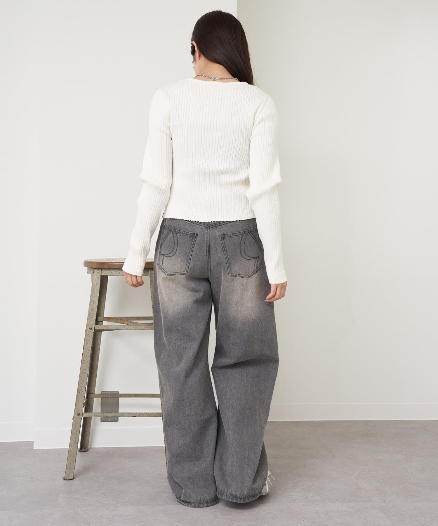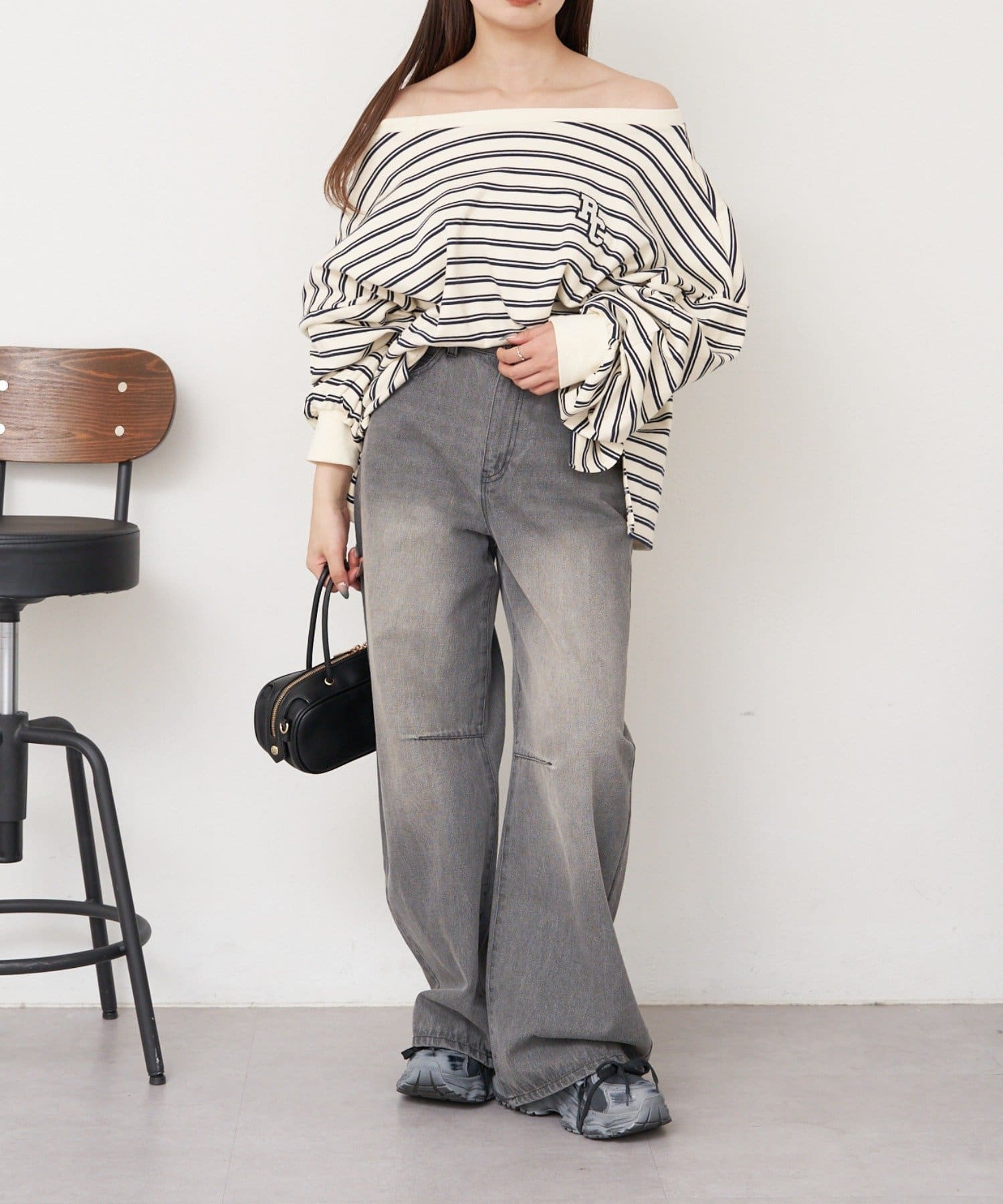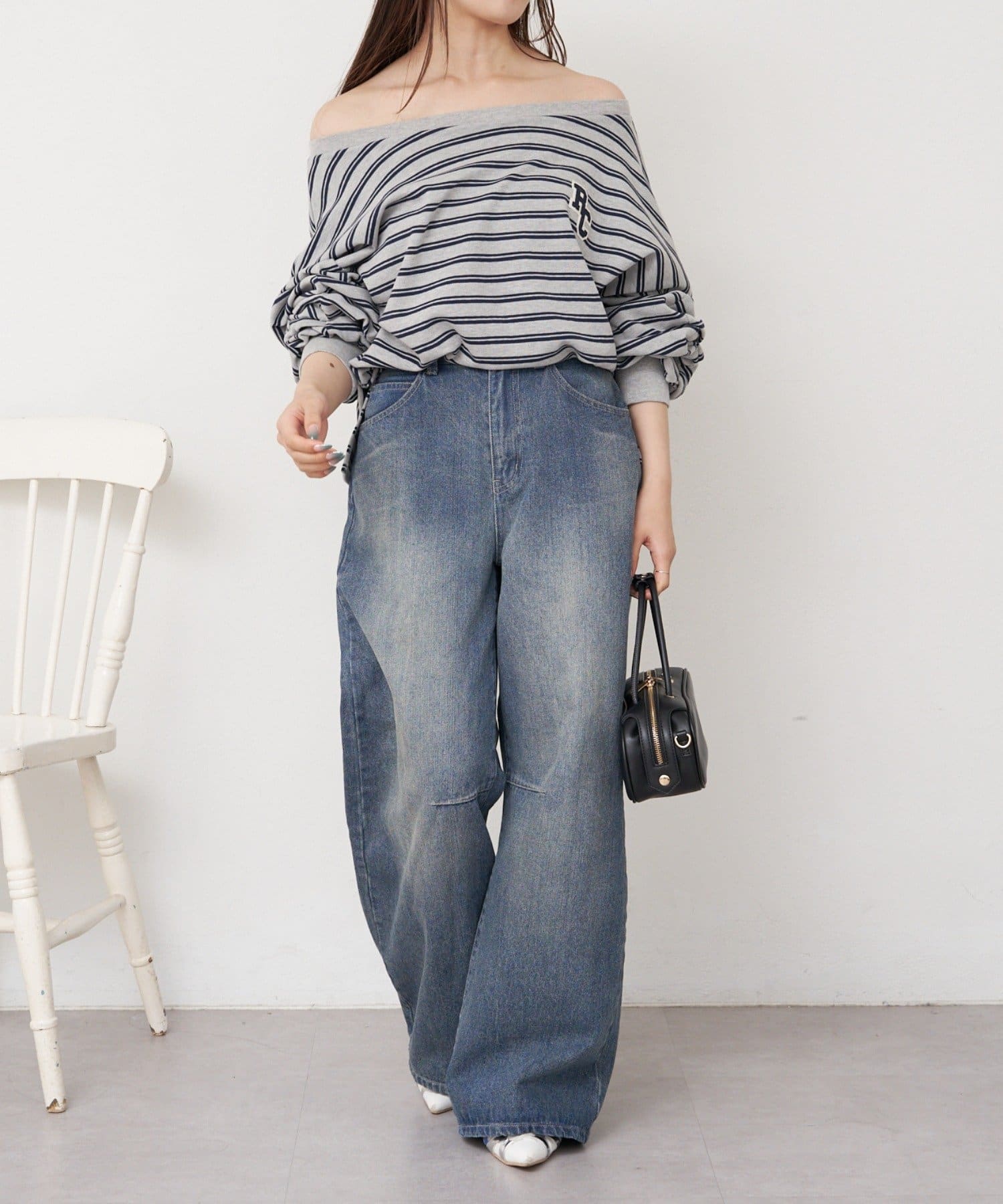 ・程よいルーズ感のデニムなのでトップスを選ばず様々なテイストでお楽しみいただけます。