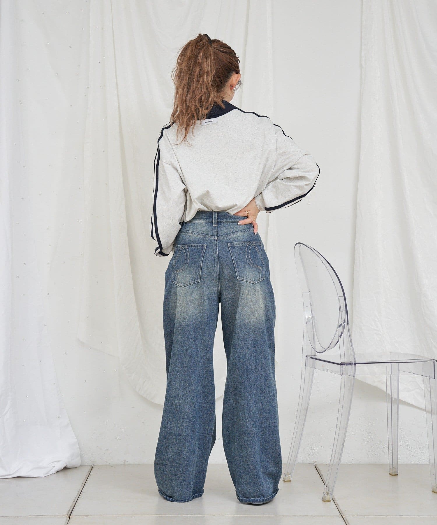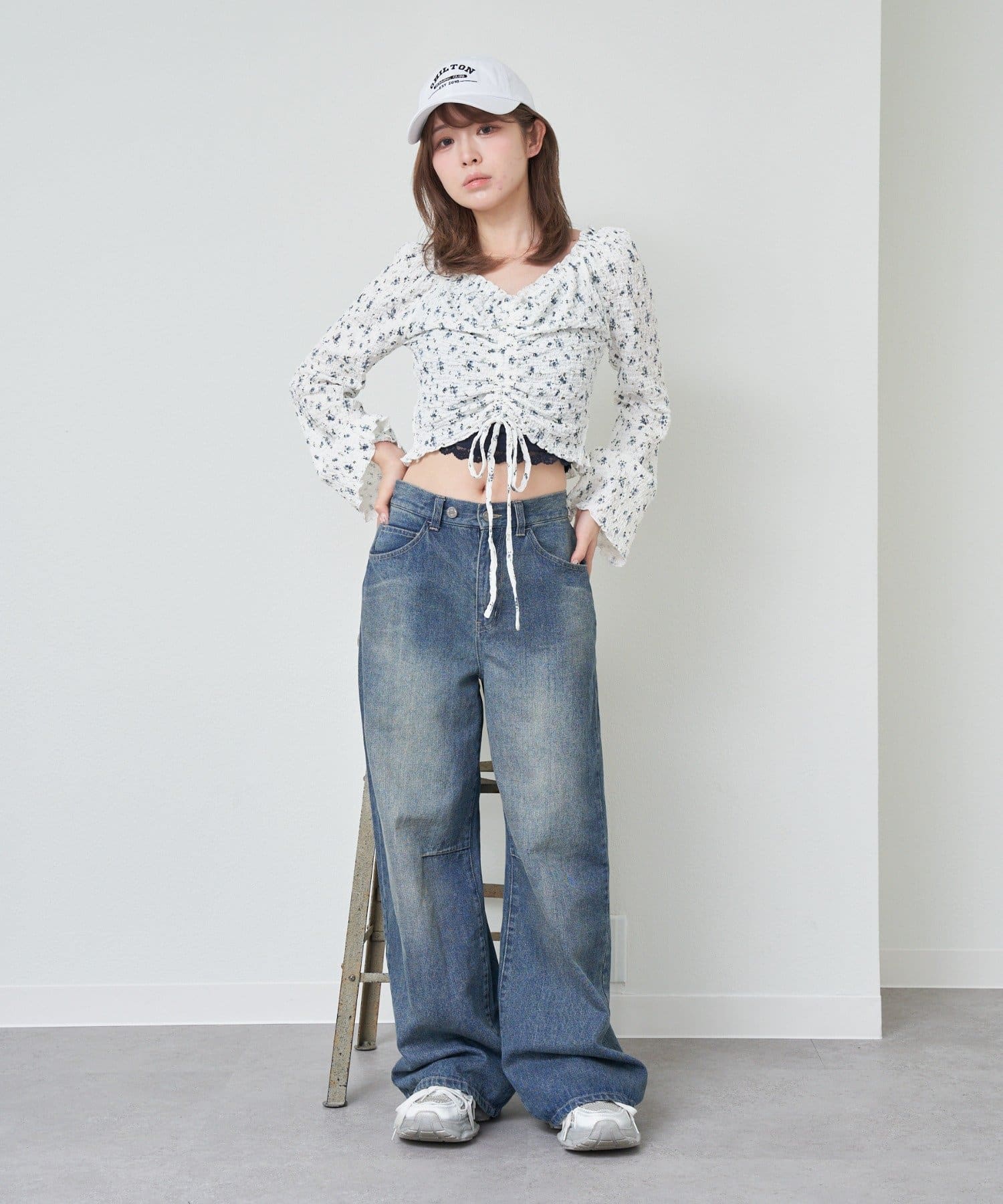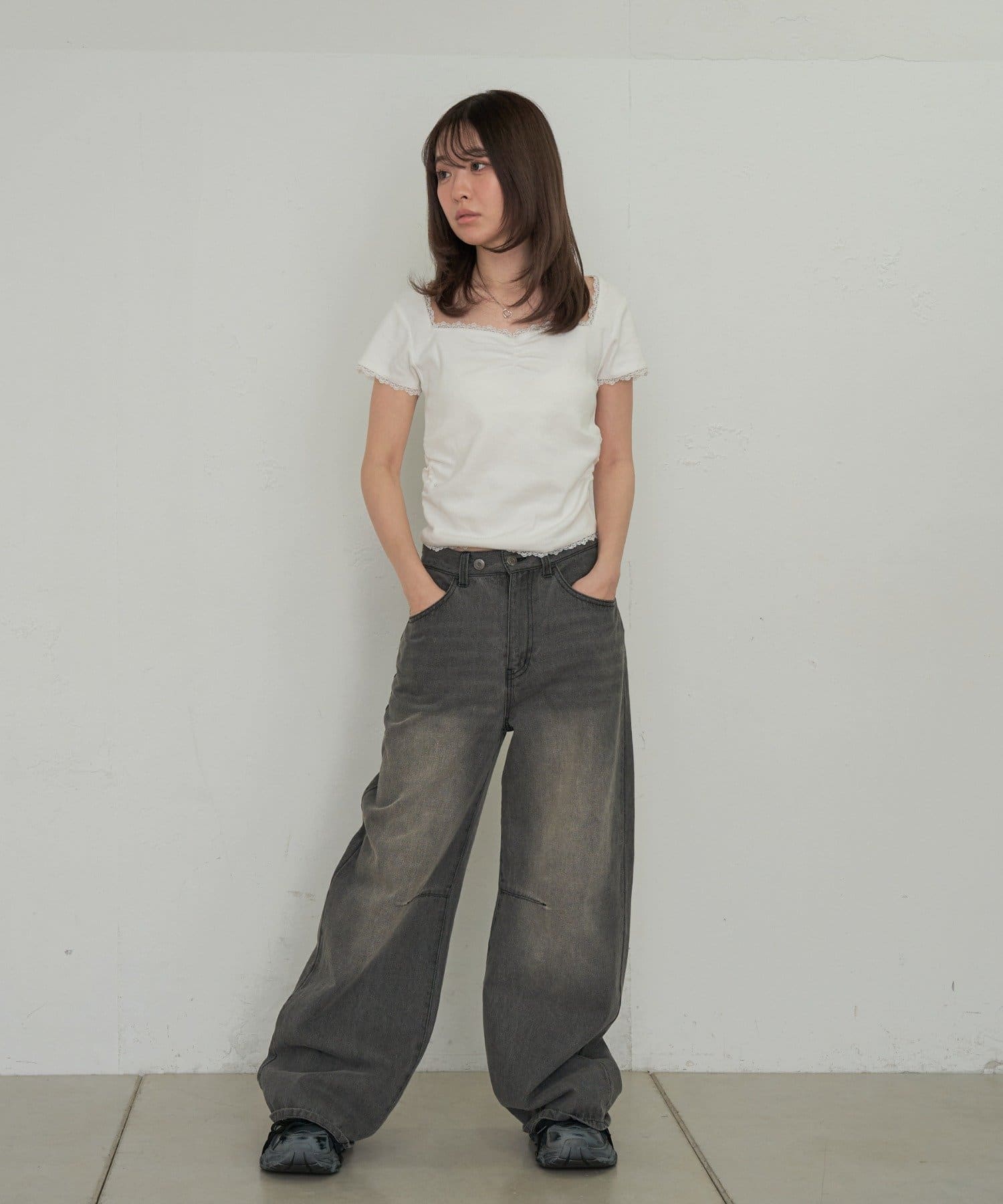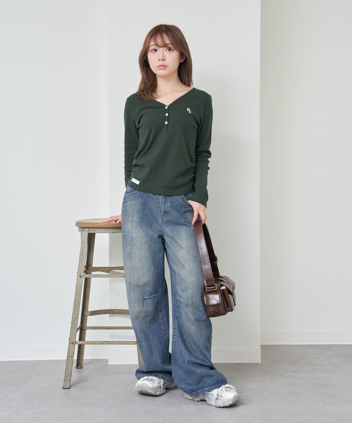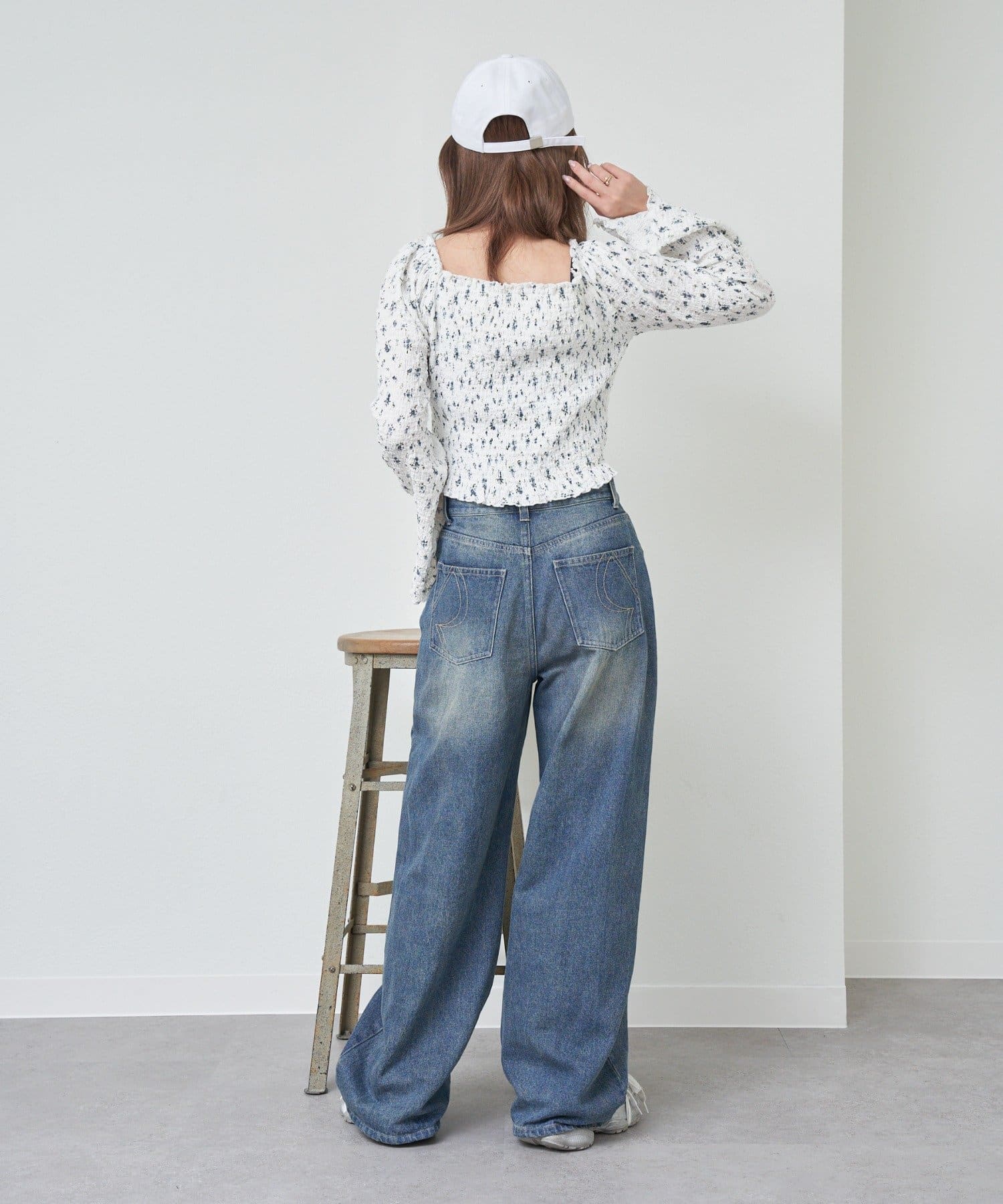 ・程よいルーズ感のデニムなのでトップスを選ばず様々なテイストでお楽しみいただけます。