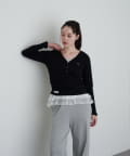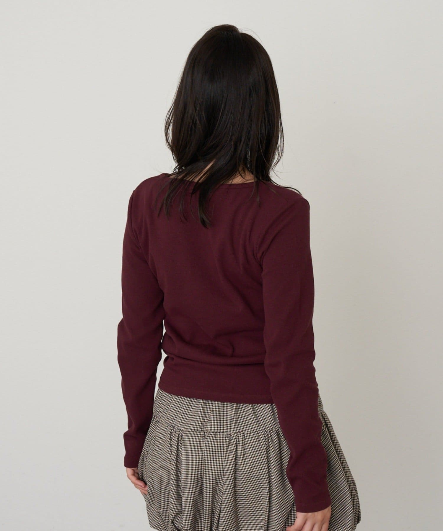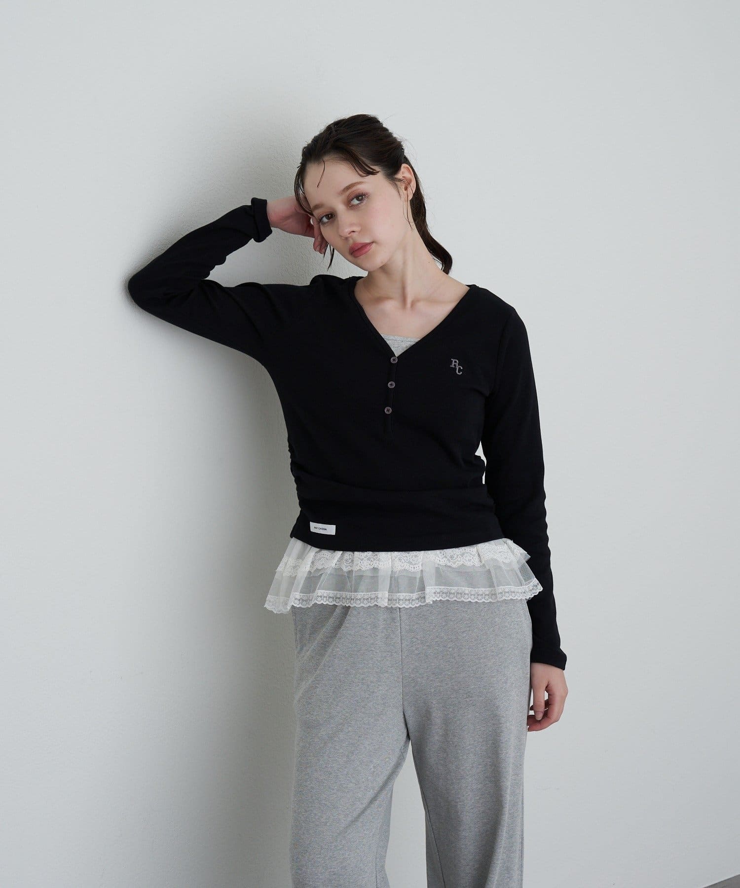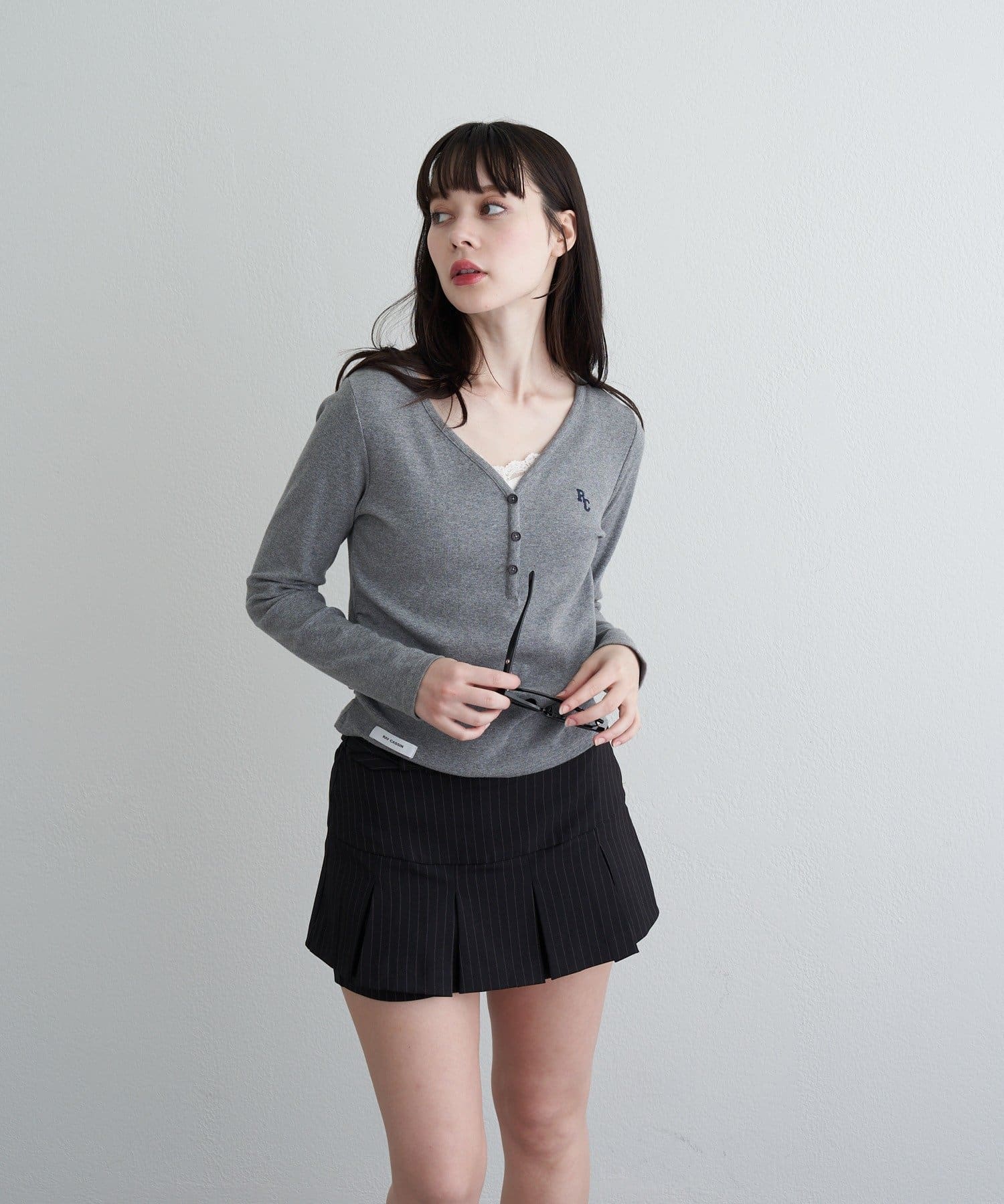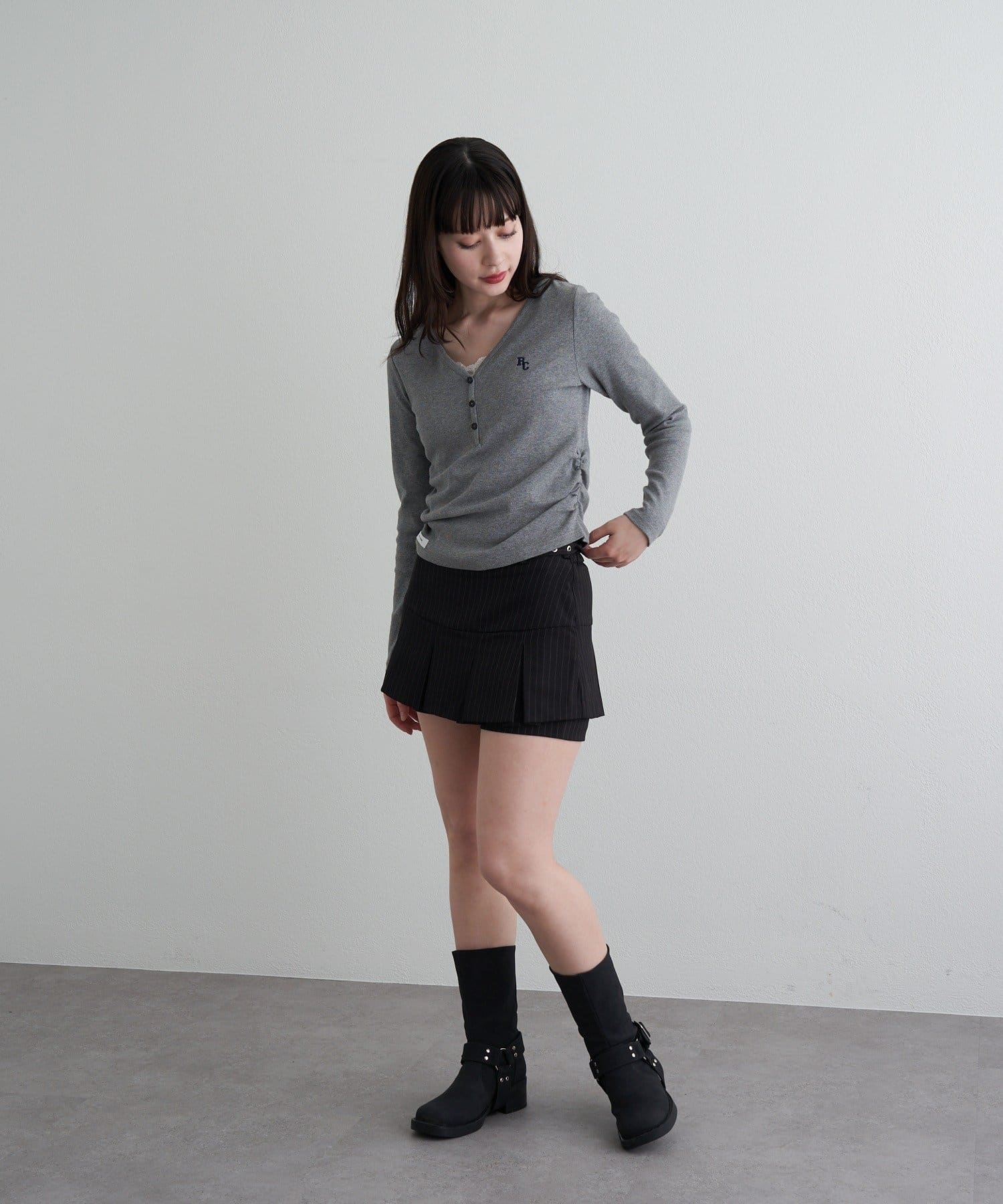 【華奢見えが叶う/追加生産決定】Vネックヘンリー胸刺繍ロングTシャツ