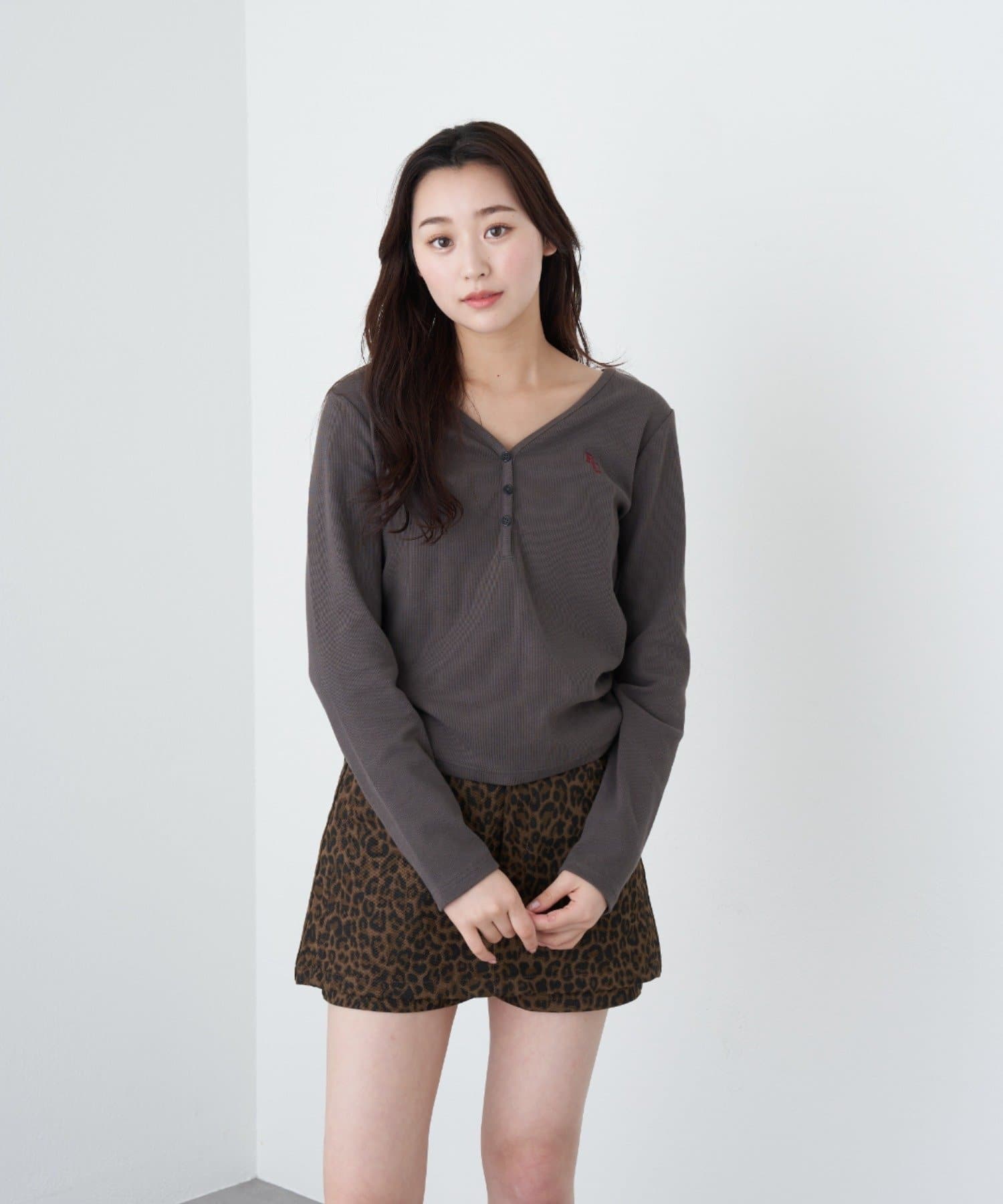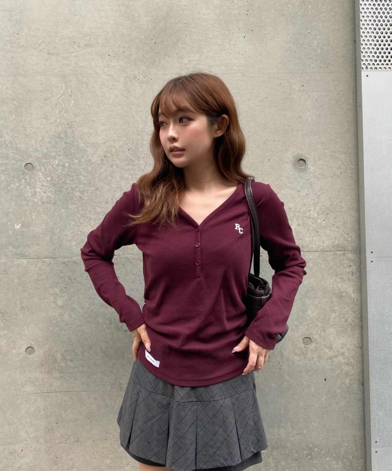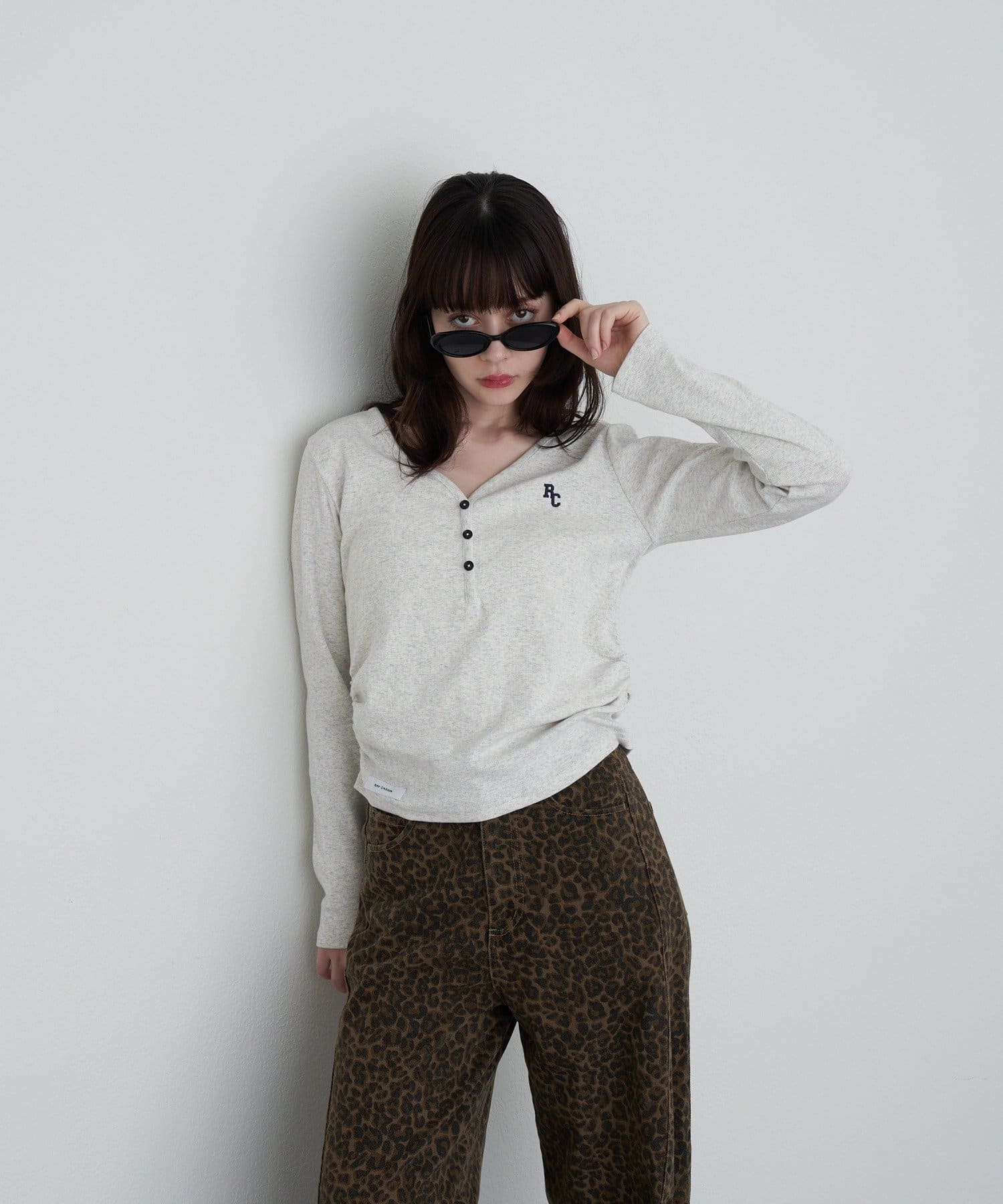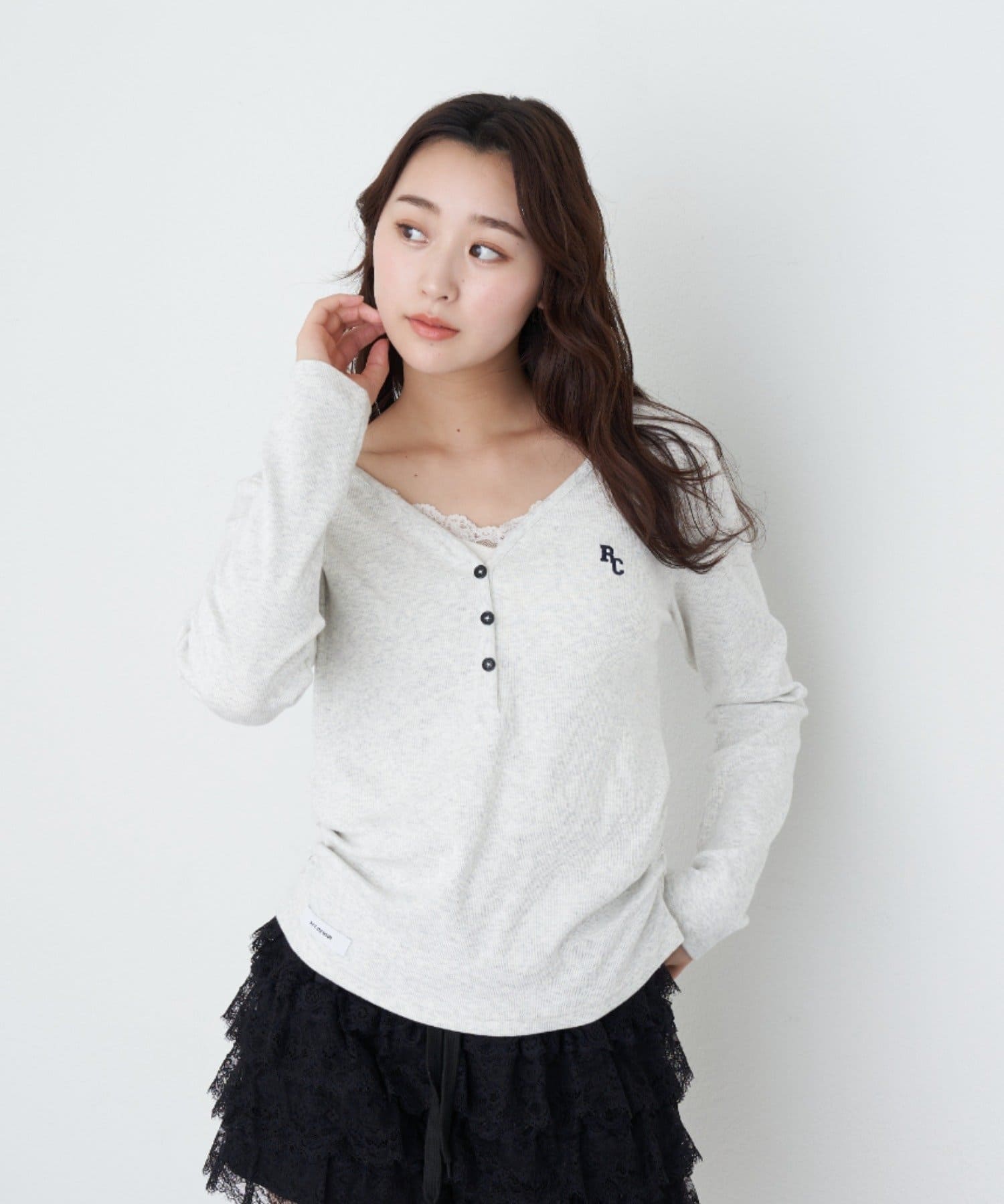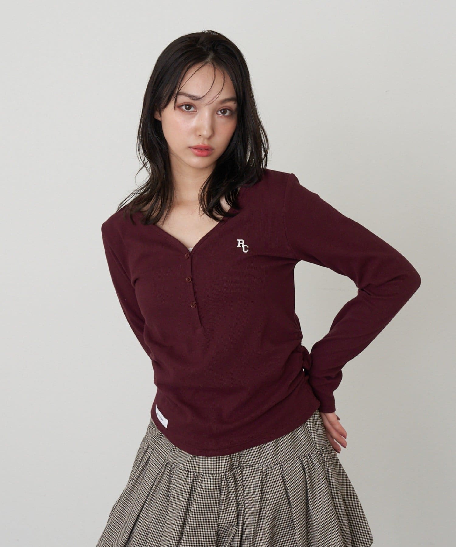 海外ファッション / ヘンリーネック / ロンT / 刺繍デザイン