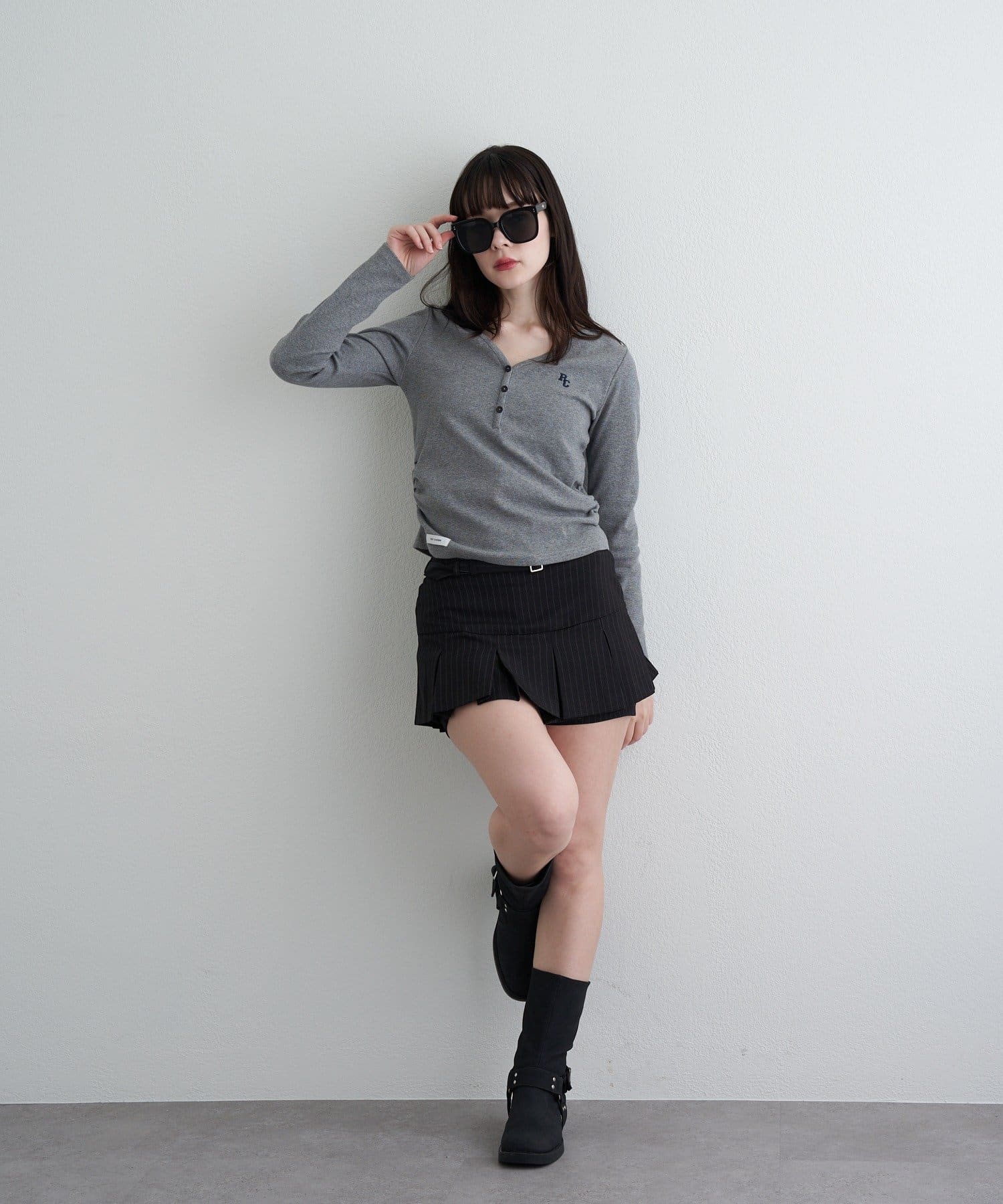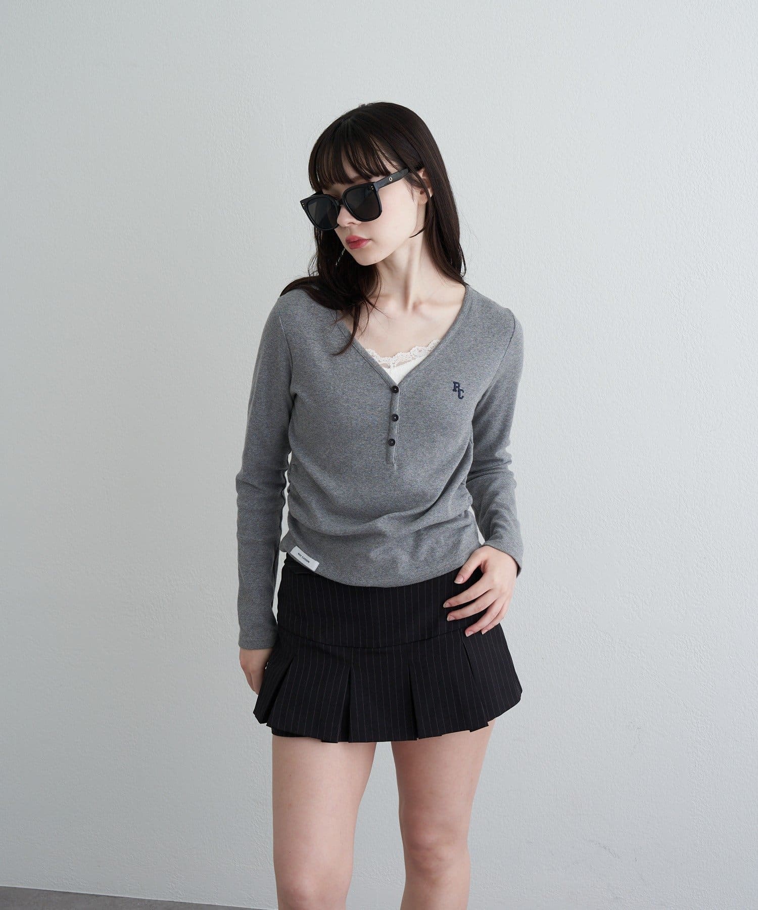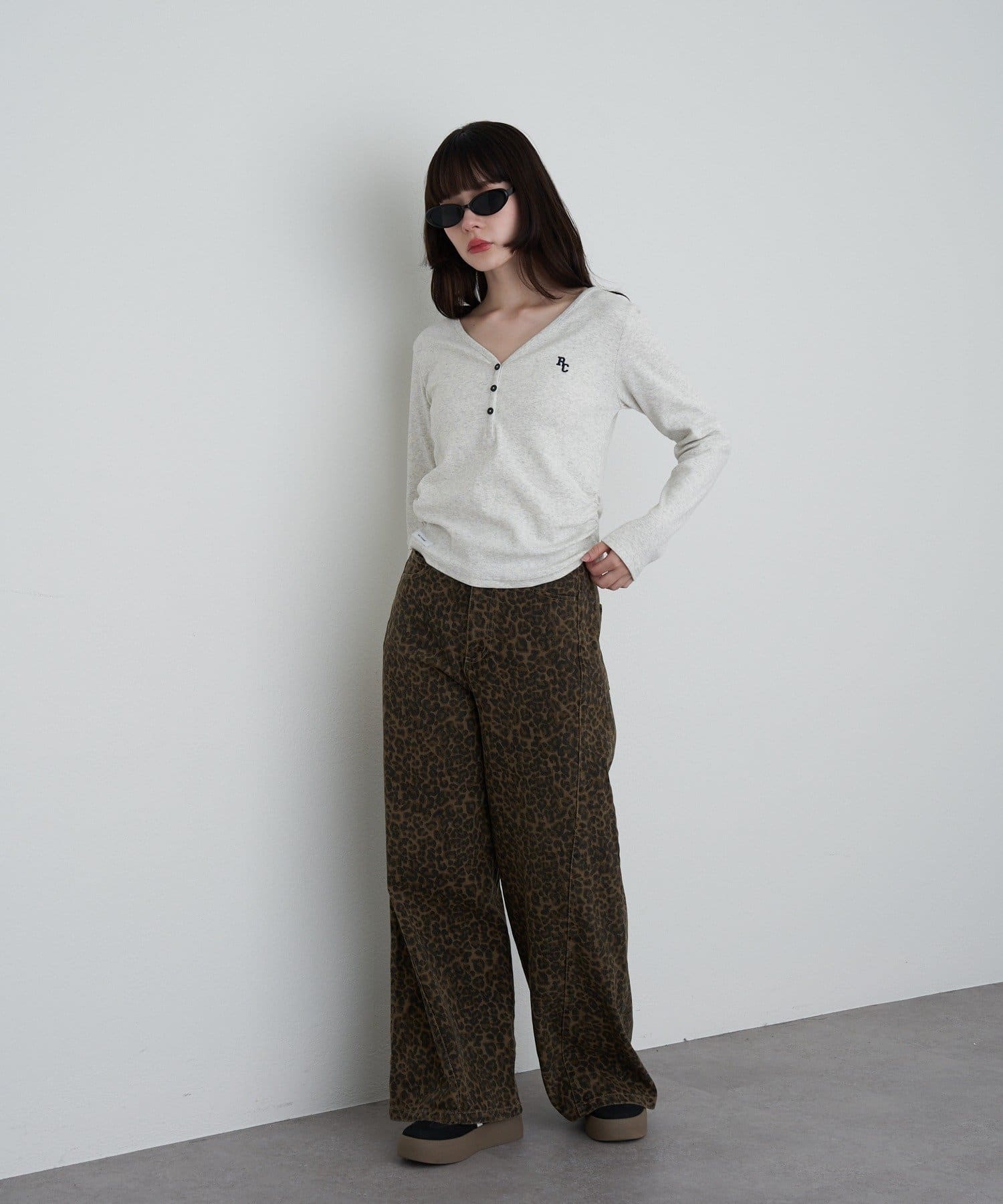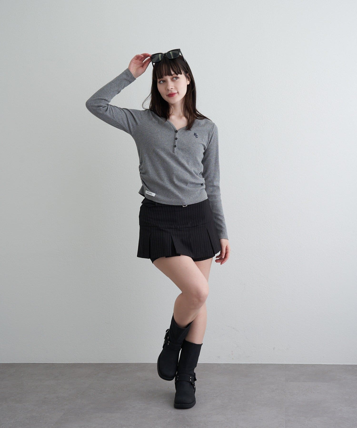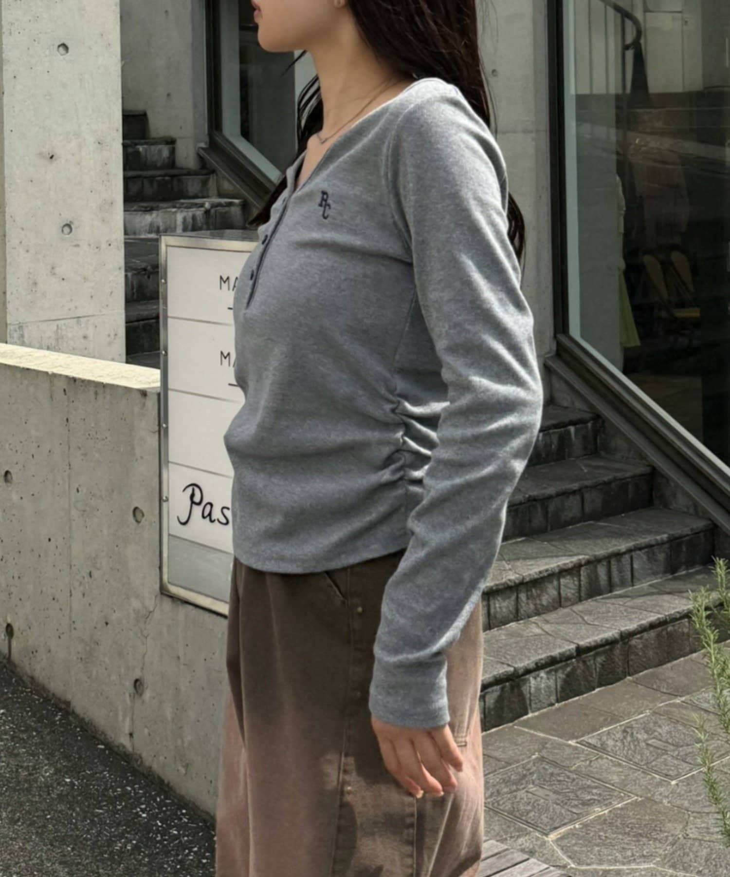 海外ファッション / ヘンリーネック / ロンT / 刺繍デザイン